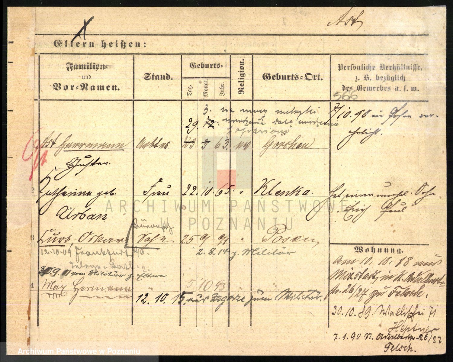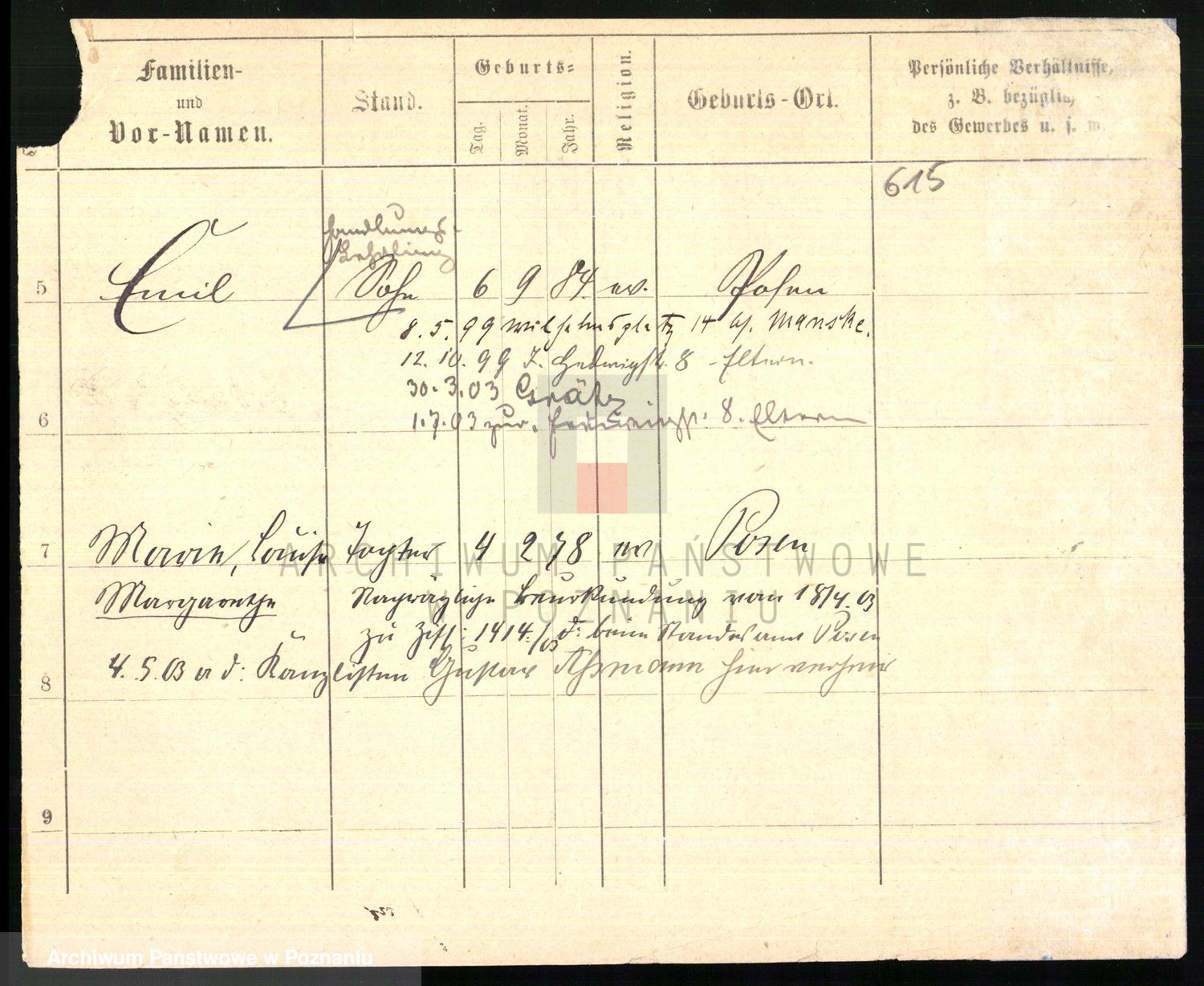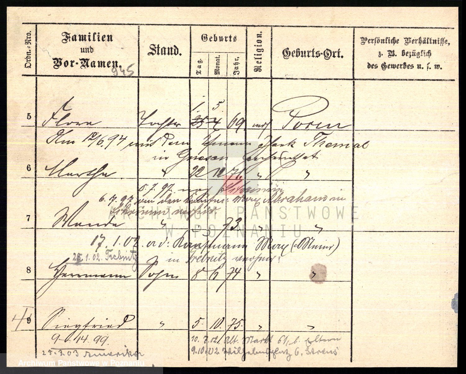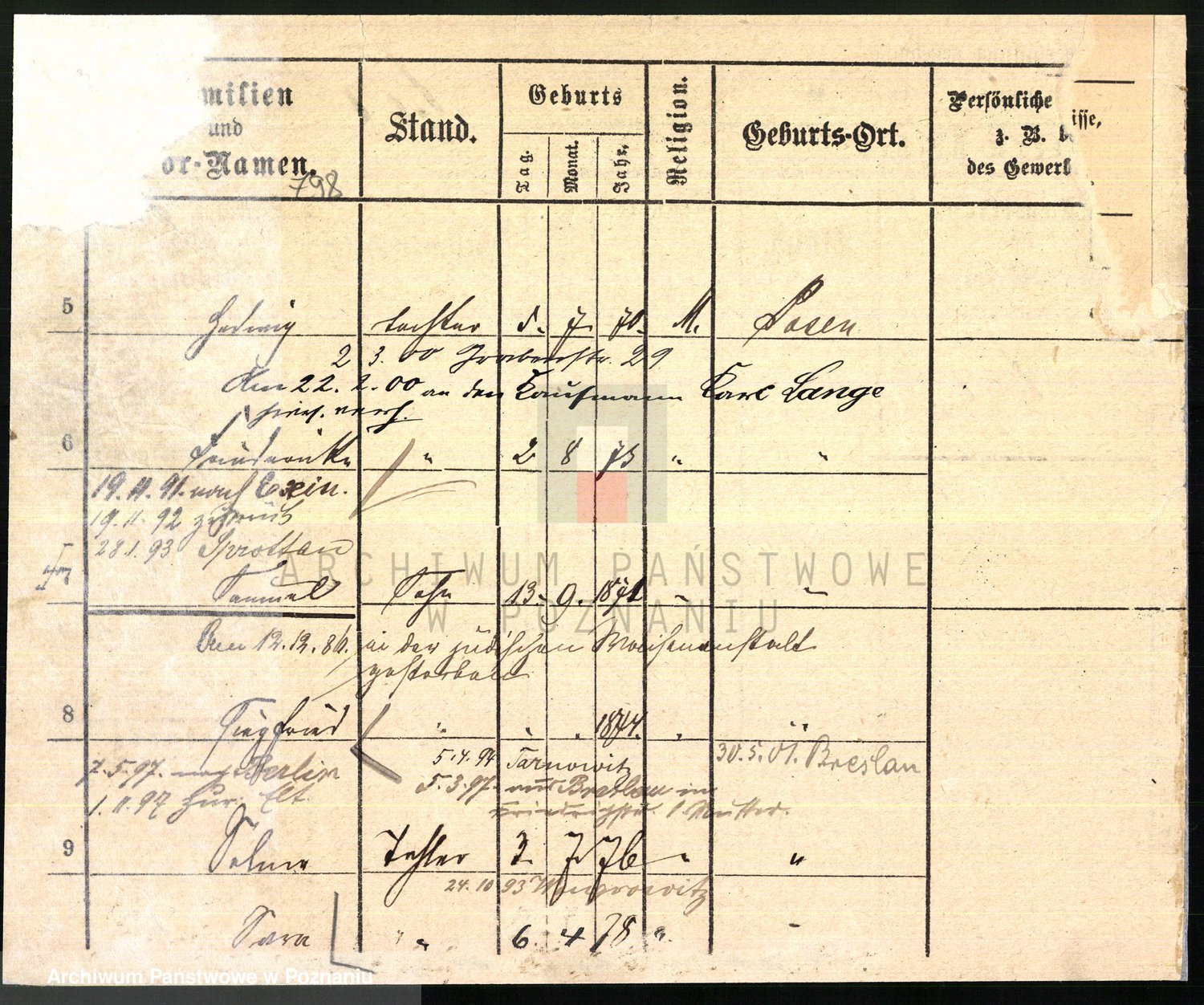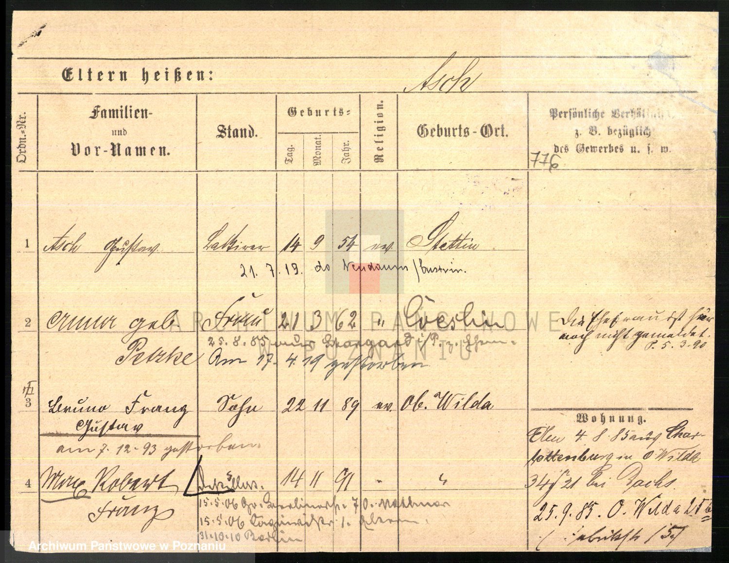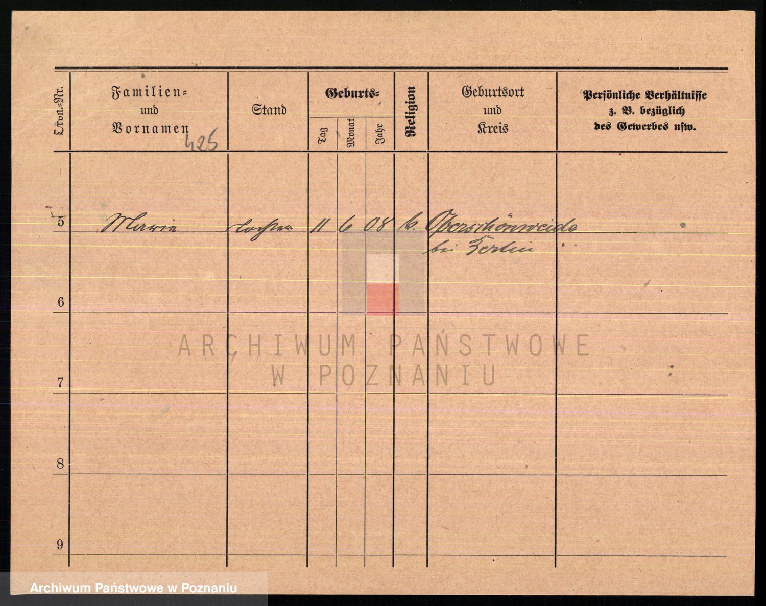 Podgląd karty osobowej dostępny jest po kliknięciu na nazwisko lub ikonkę karty. Można dokonywać powiększenia (ikony na górze) lub przechodzić między kolejnymi skanami (strzałki po bokach).