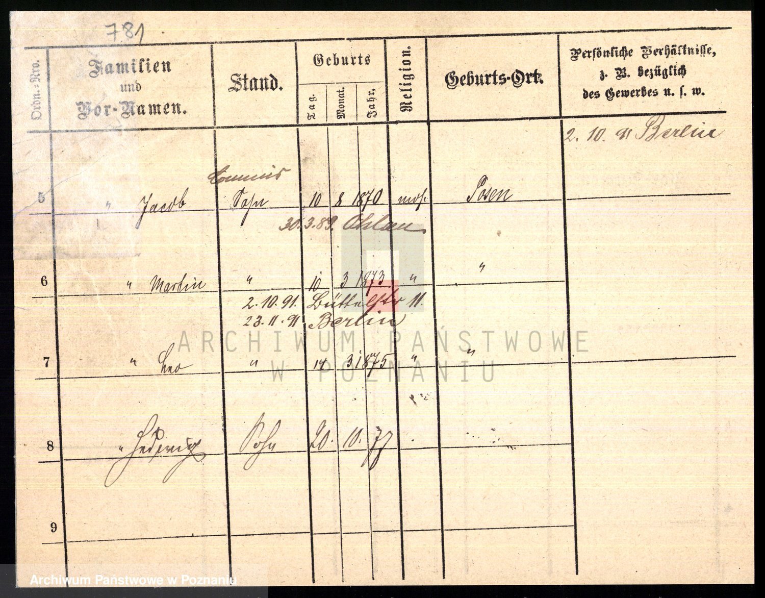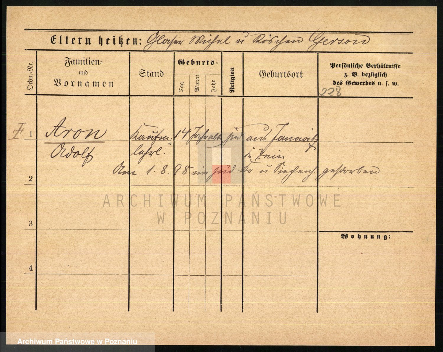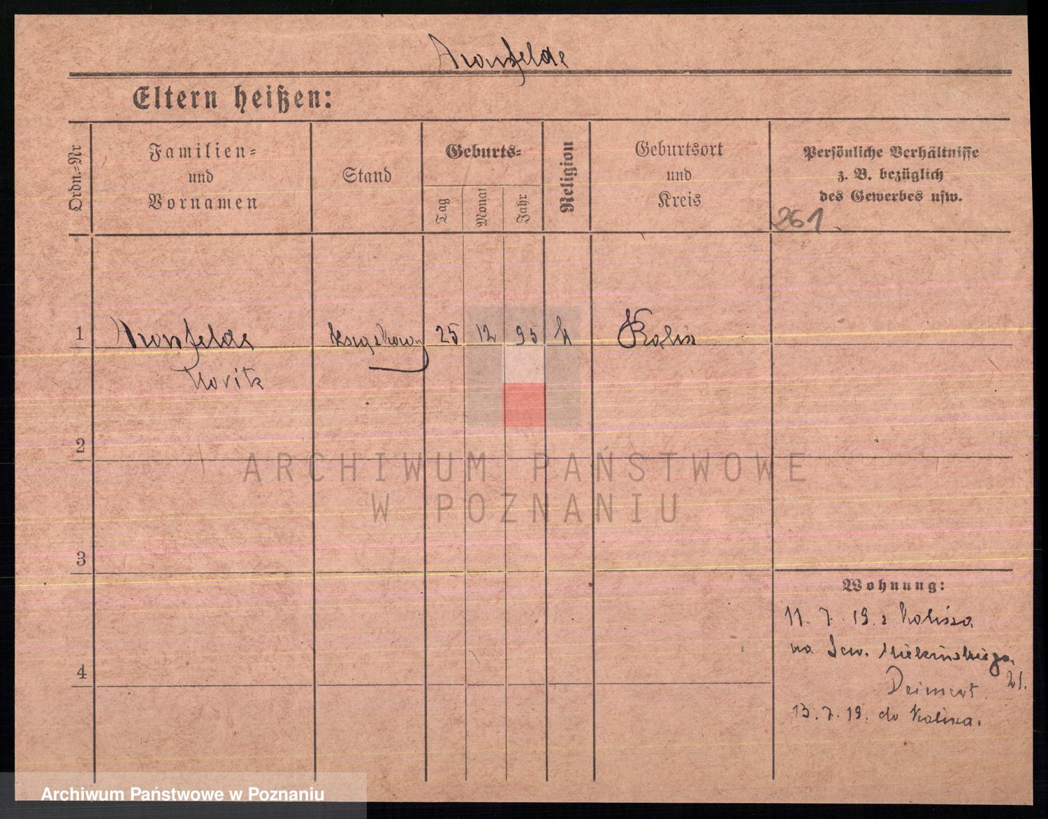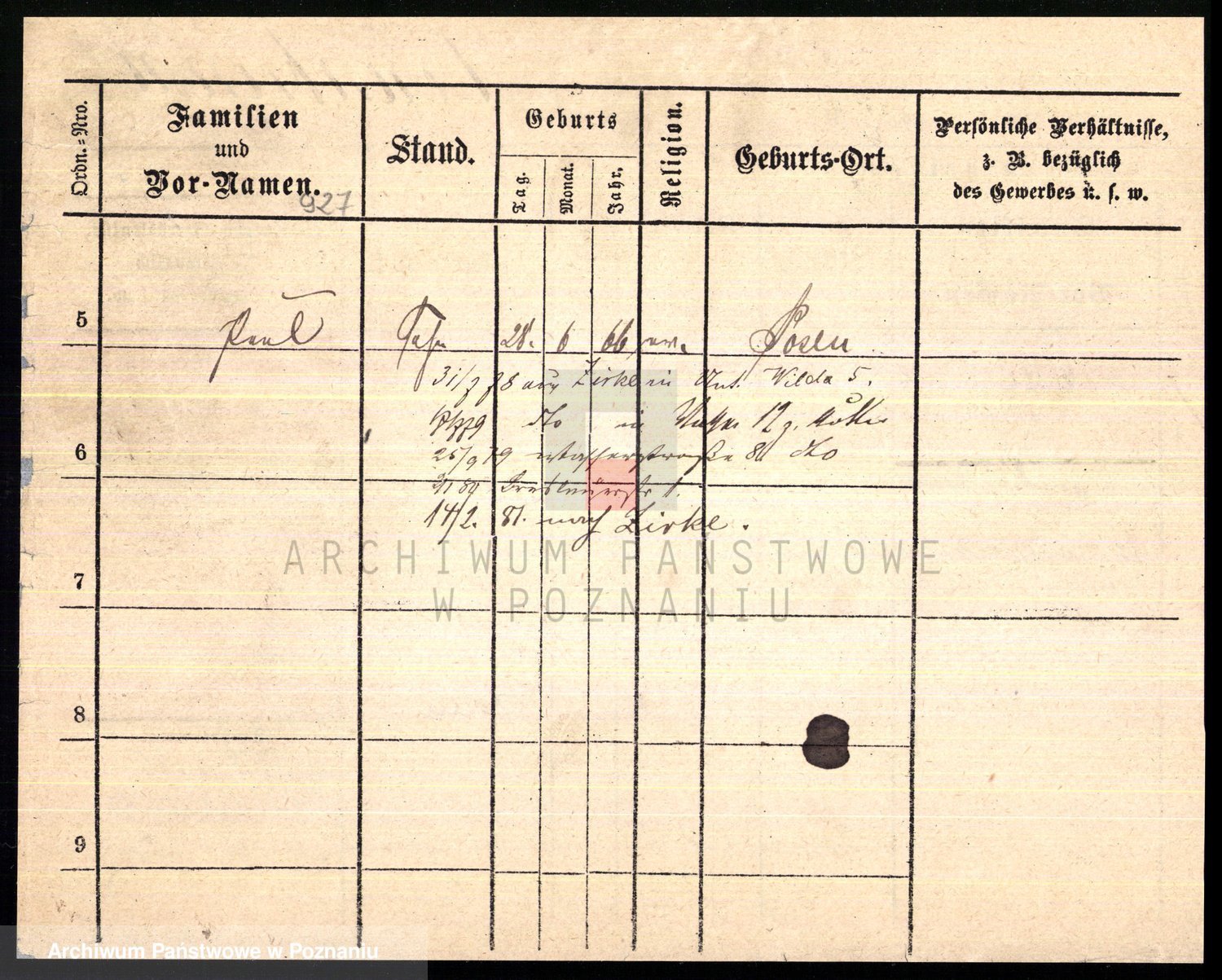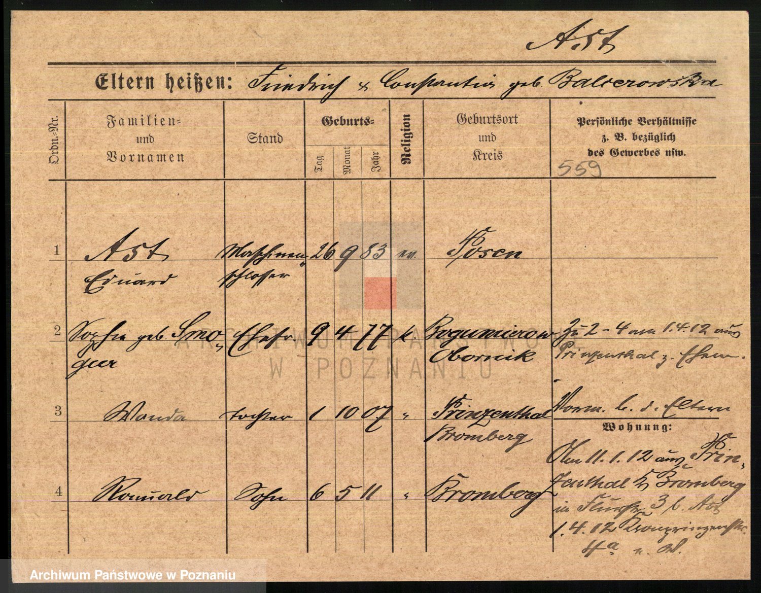Podgląd karty osobowej dostępny jest po kliknięciu na nazwisko lub ikonkę karty. Można dokonywać powiększenia (ikony na górze) lub przechodzić między kolejnymi skanami (strzałki po bokach).
