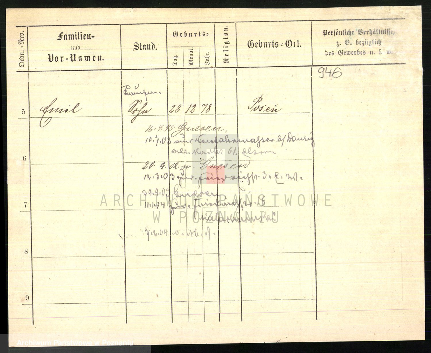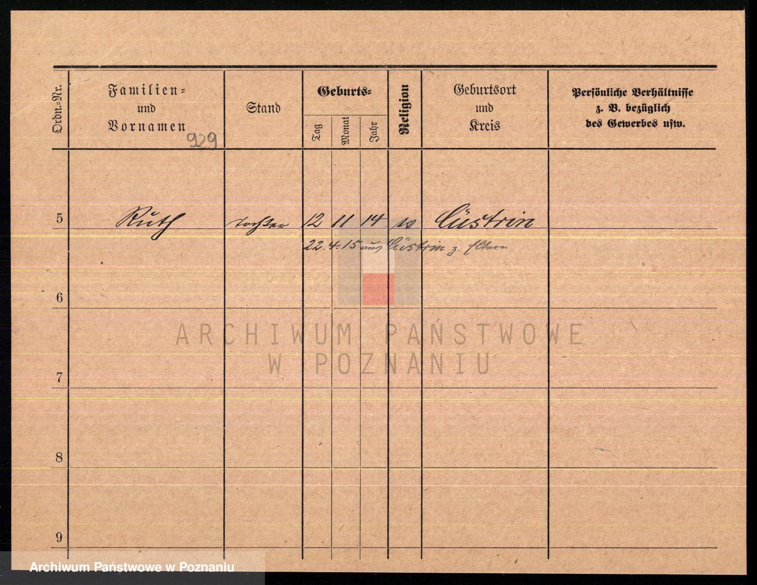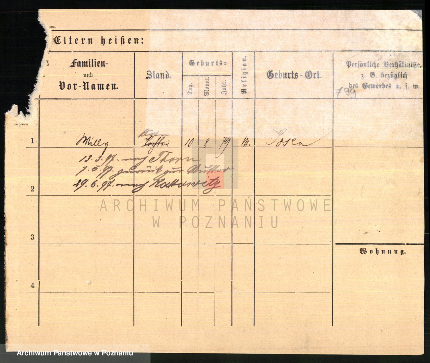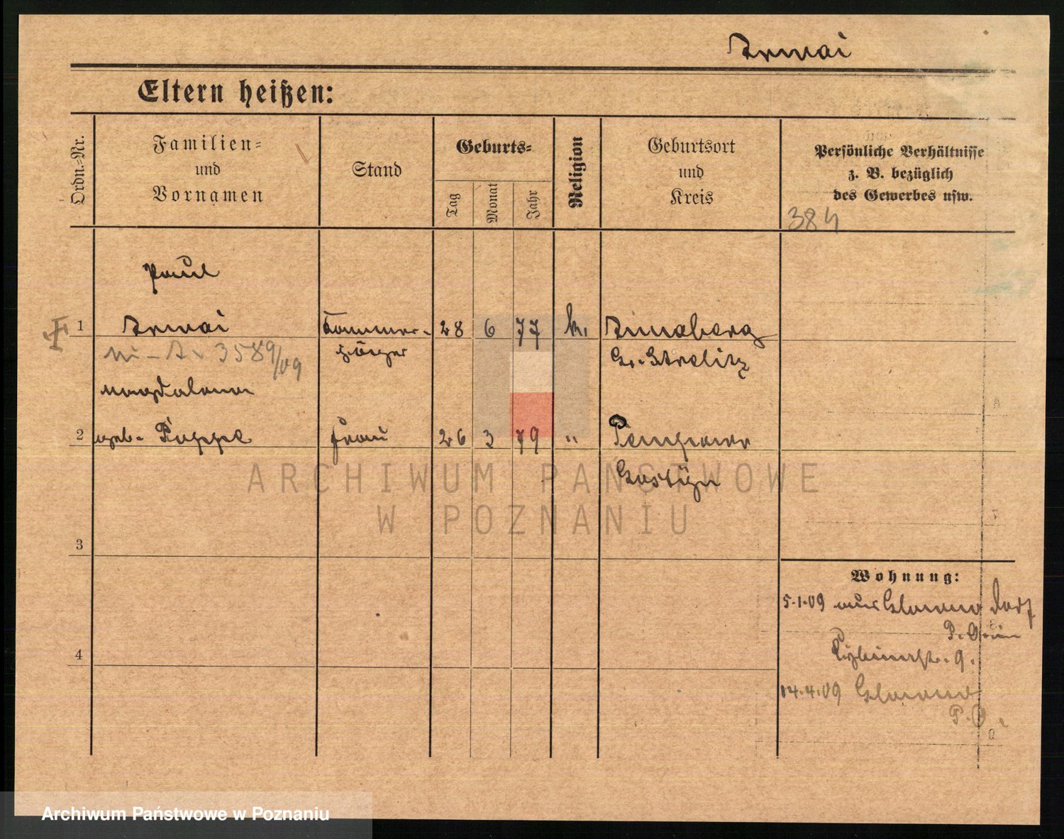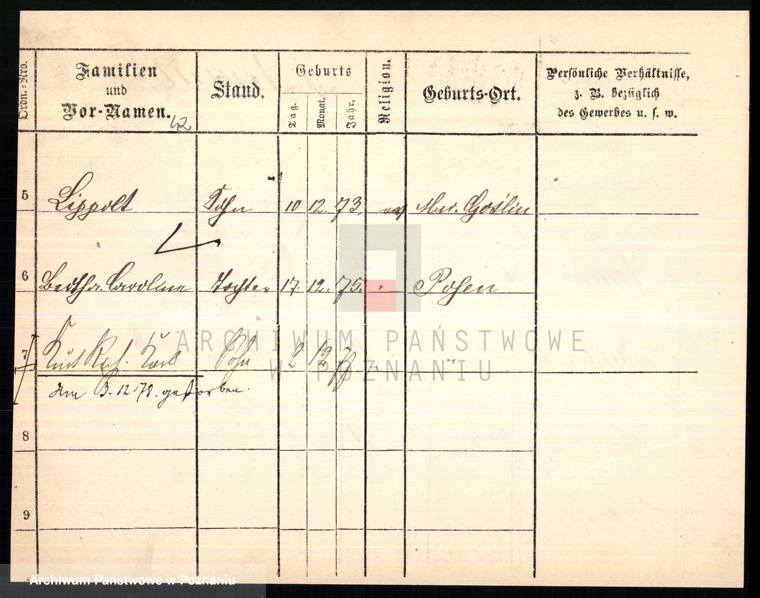 Podgląd karty osobowej dostępny jest po kliknięciu na nazwisko lub ikonkę karty. Można dokonywać powiększenia (ikony na górze) lub przechodzić między kolejnymi skanami (strzałki po bokach).