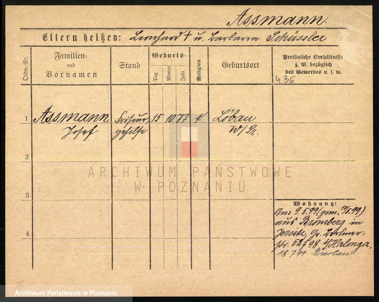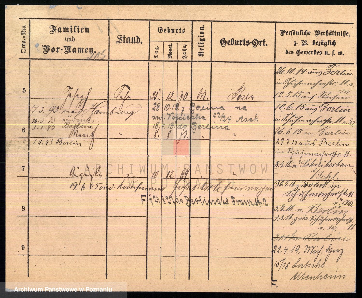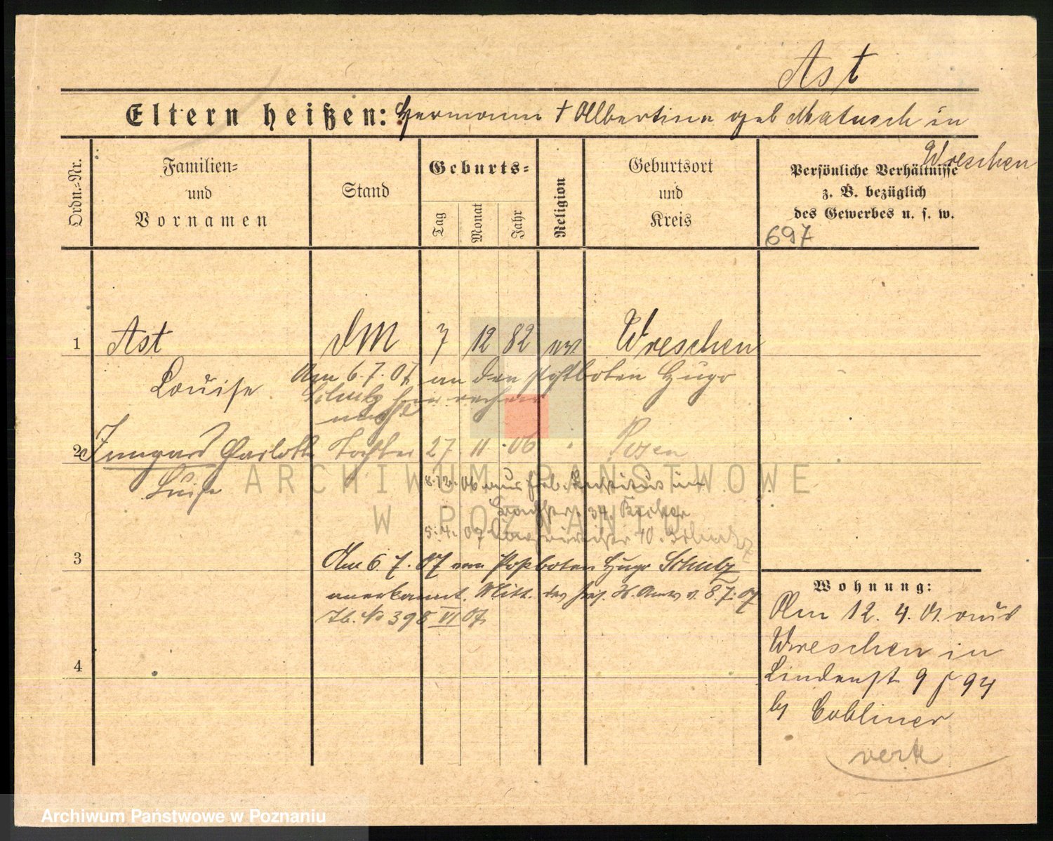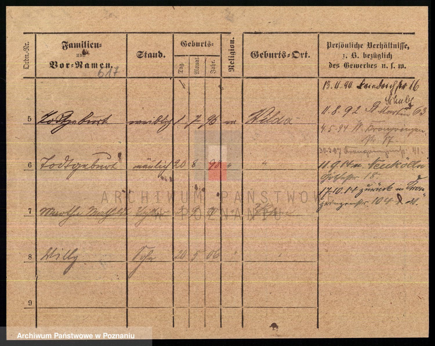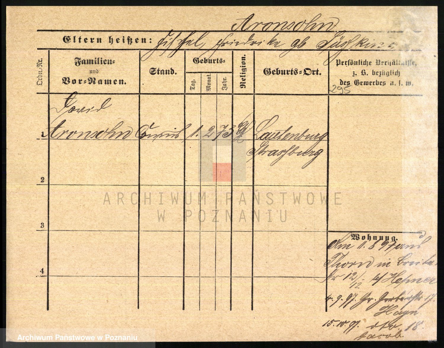 Podgląd karty osobowej dostępny jest po kliknięciu na nazwisko lub ikonkę karty. Można dokonywać powiększenia (ikony na górze) lub przechodzić między kolejnymi skanami (strzałki po bokach).
