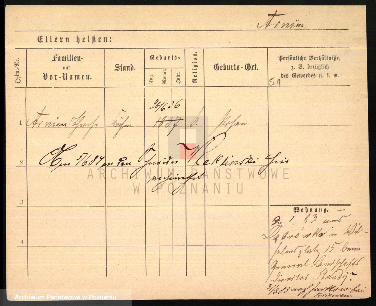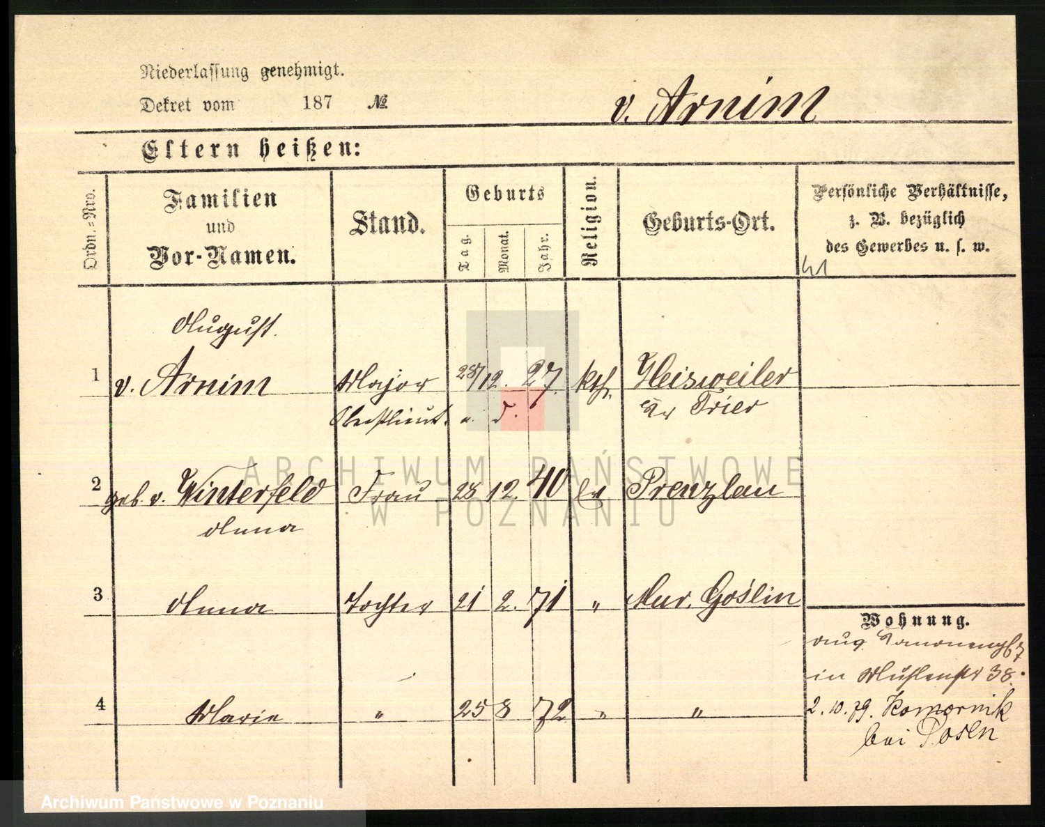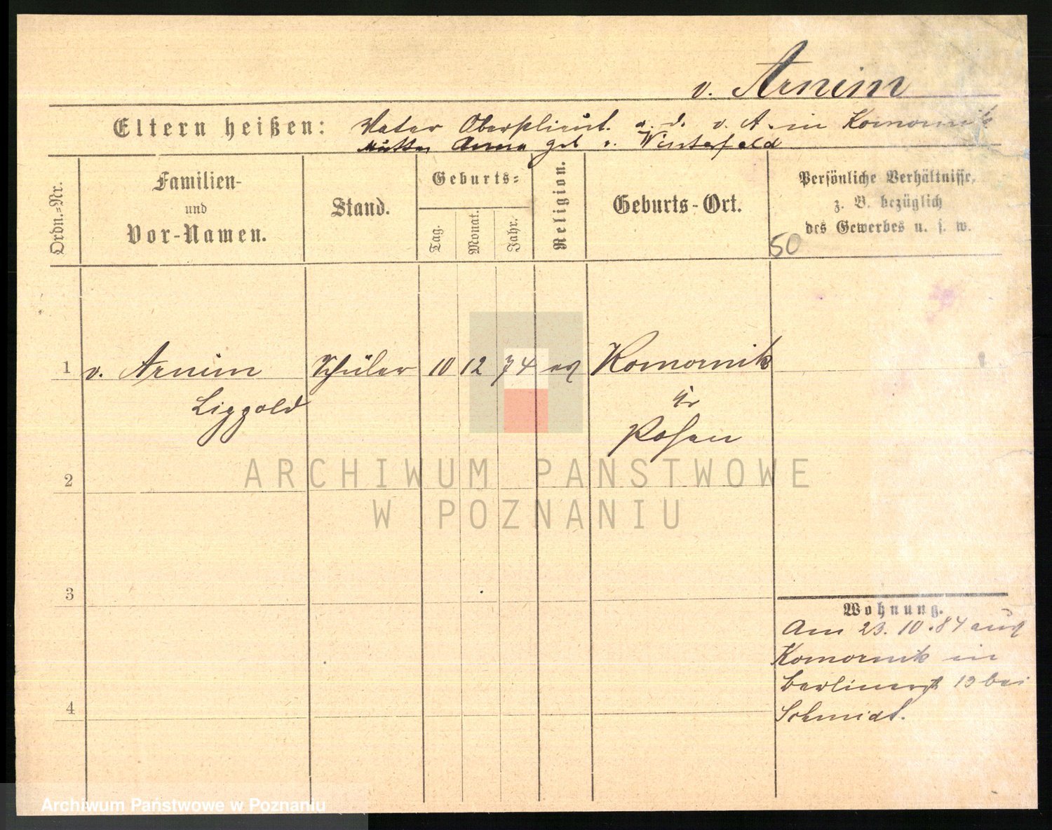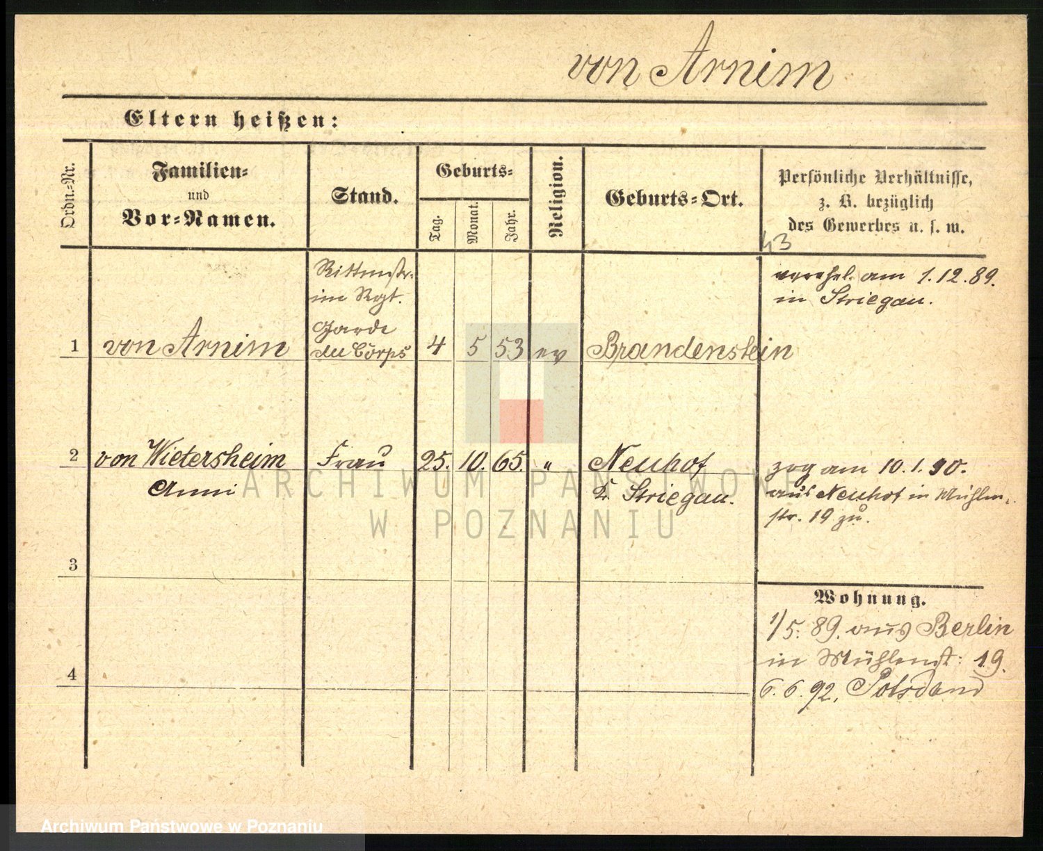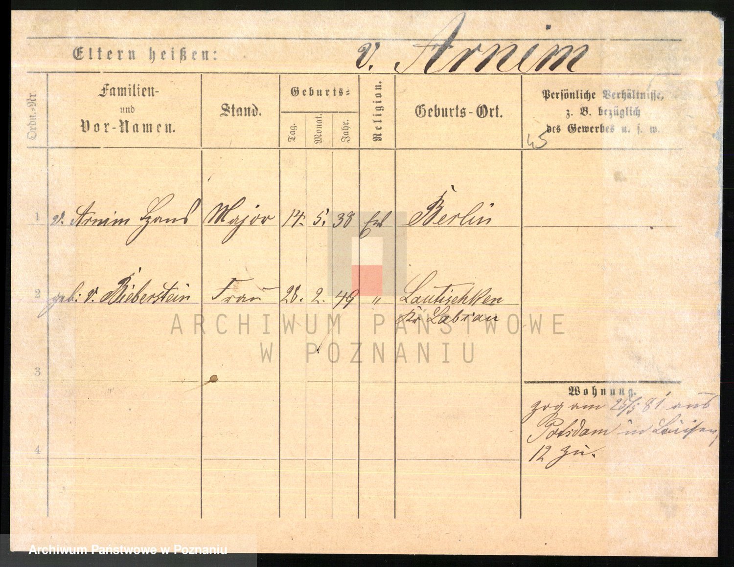 Arnim v. z.d. Bieberstein, brak imienia