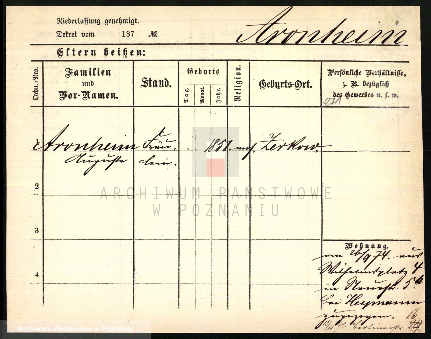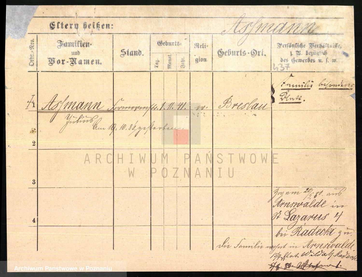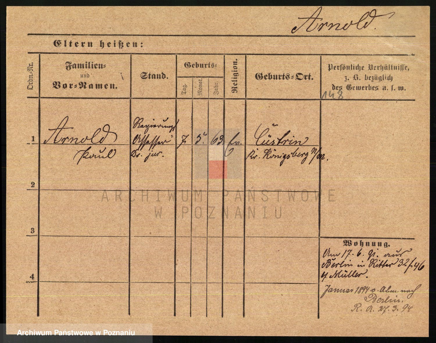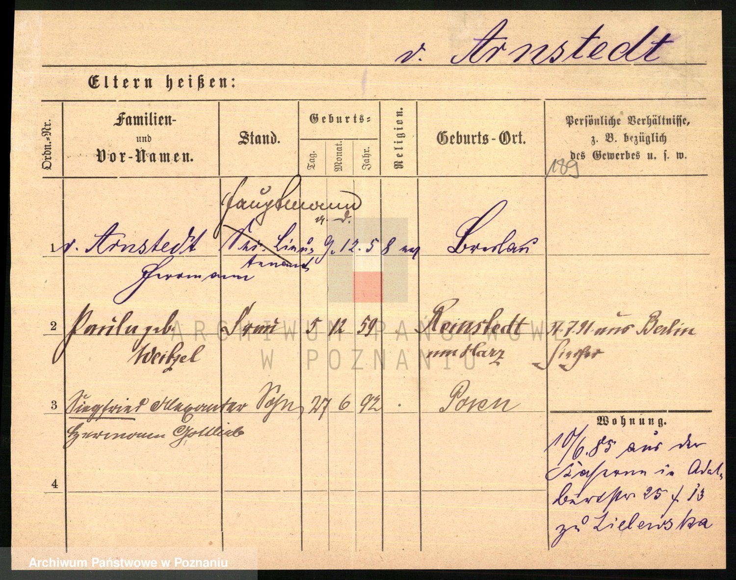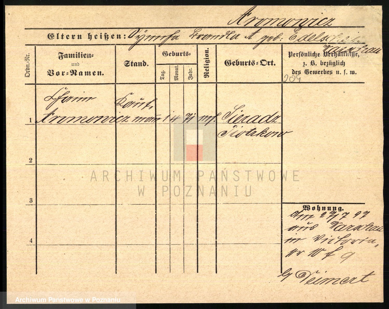 Arnim v. z.d. Bieberstein, brak imienia