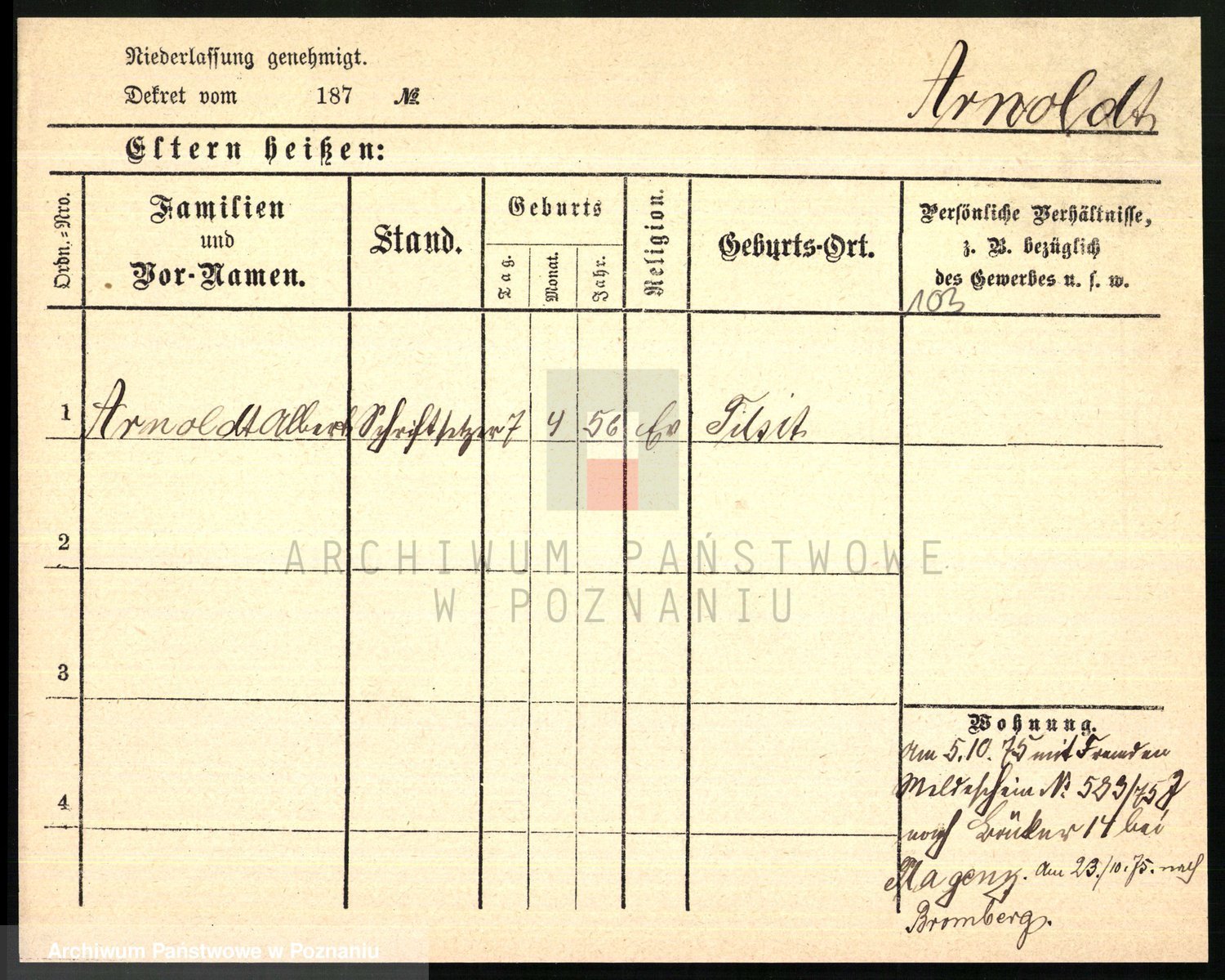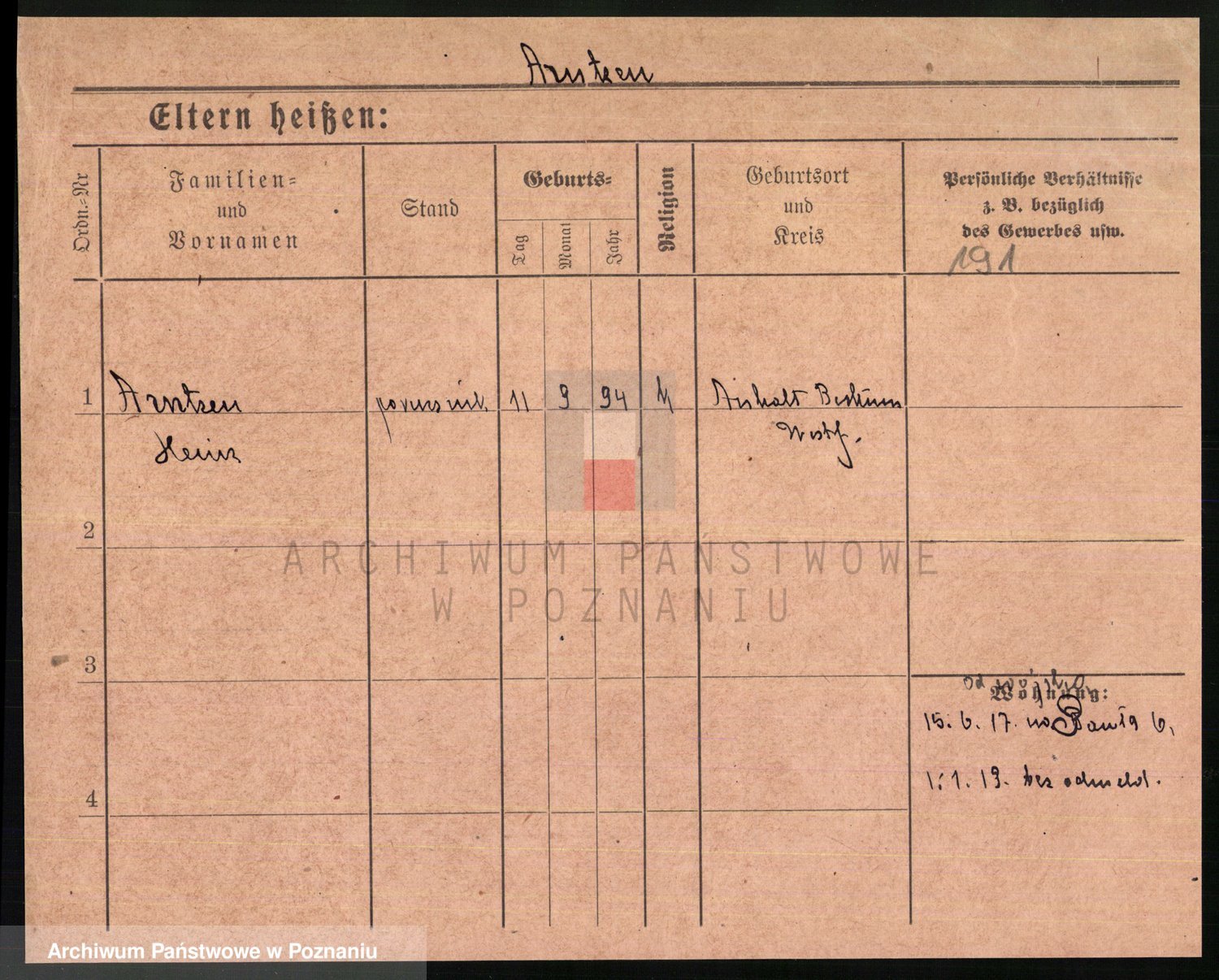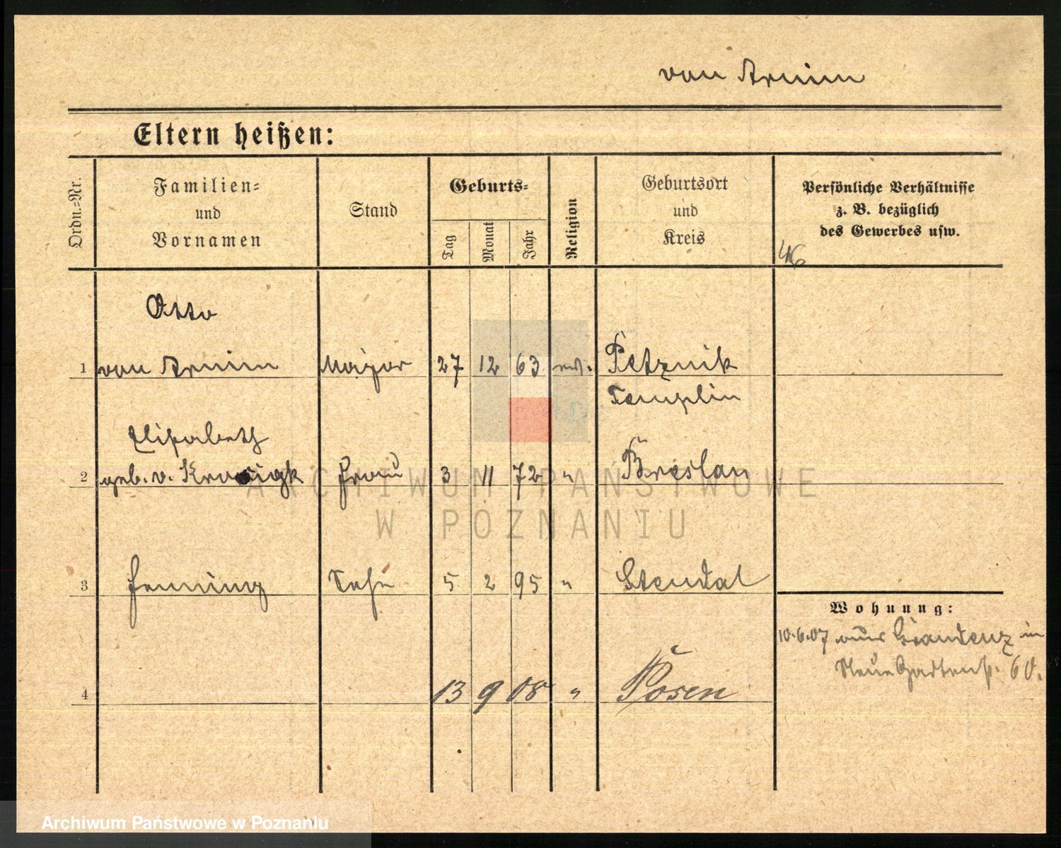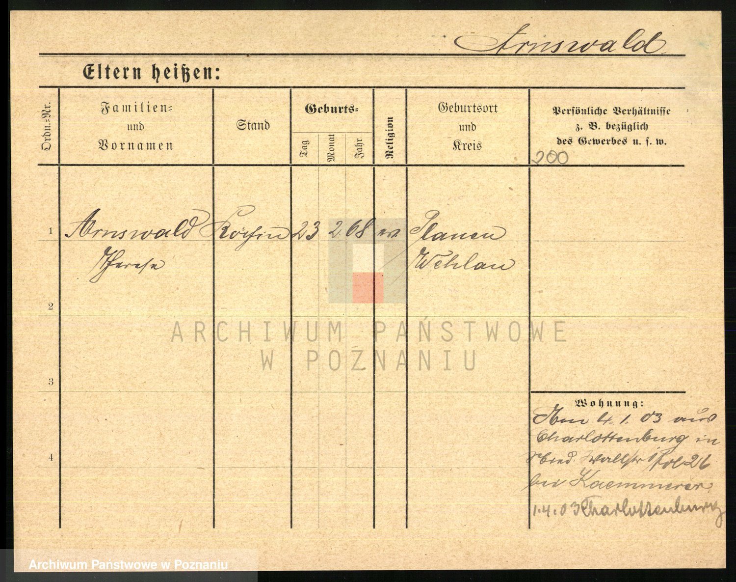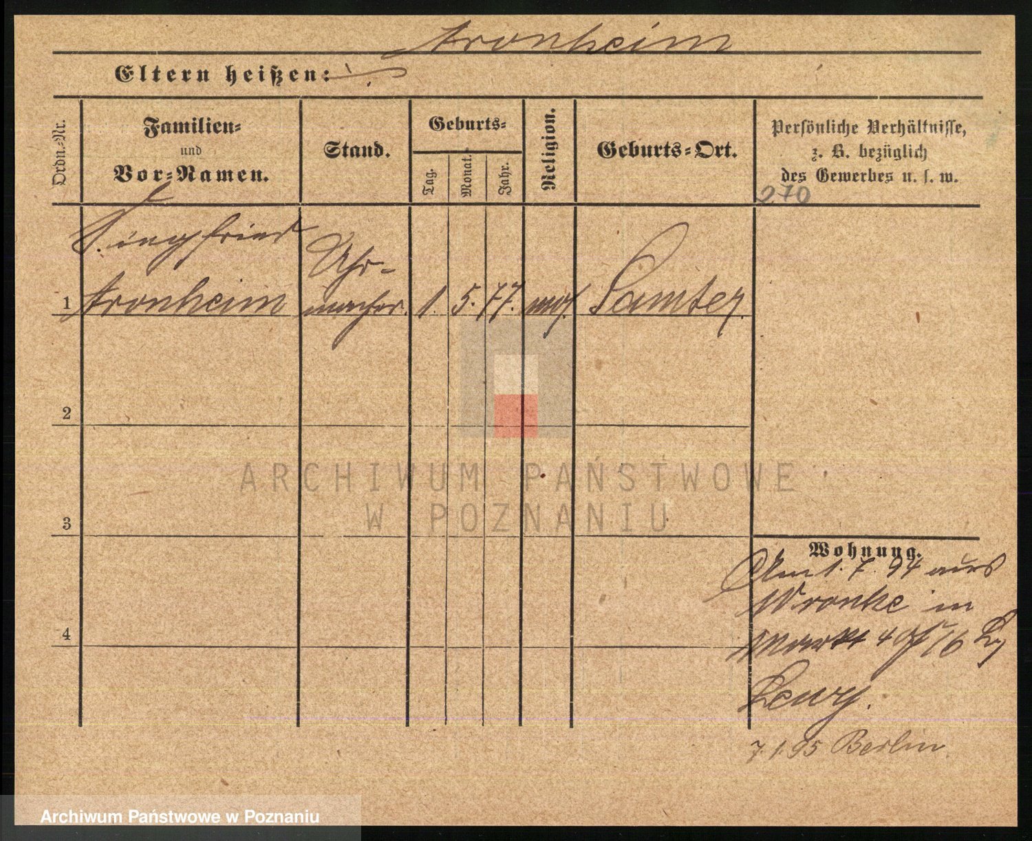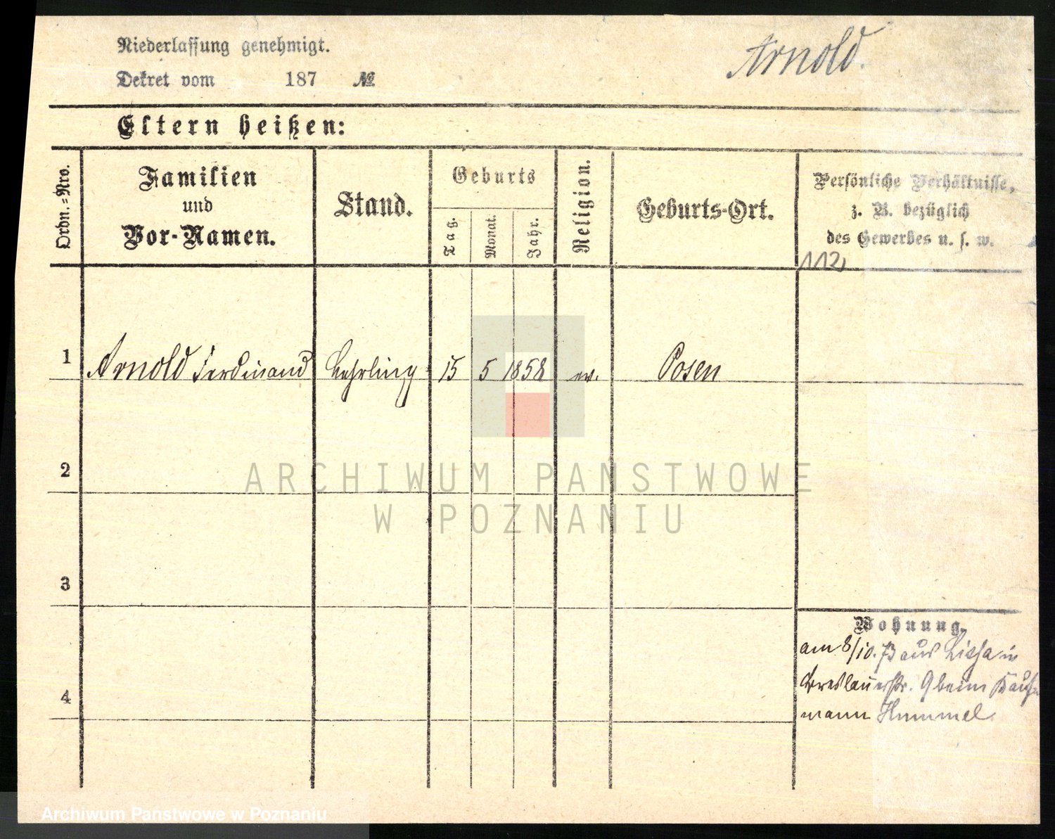 Arnim v. z.d. Bieberstein, brak imienia