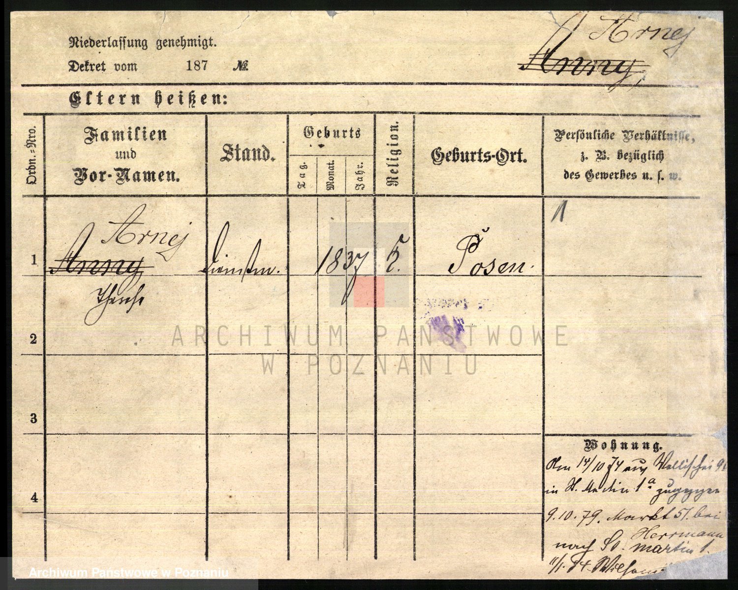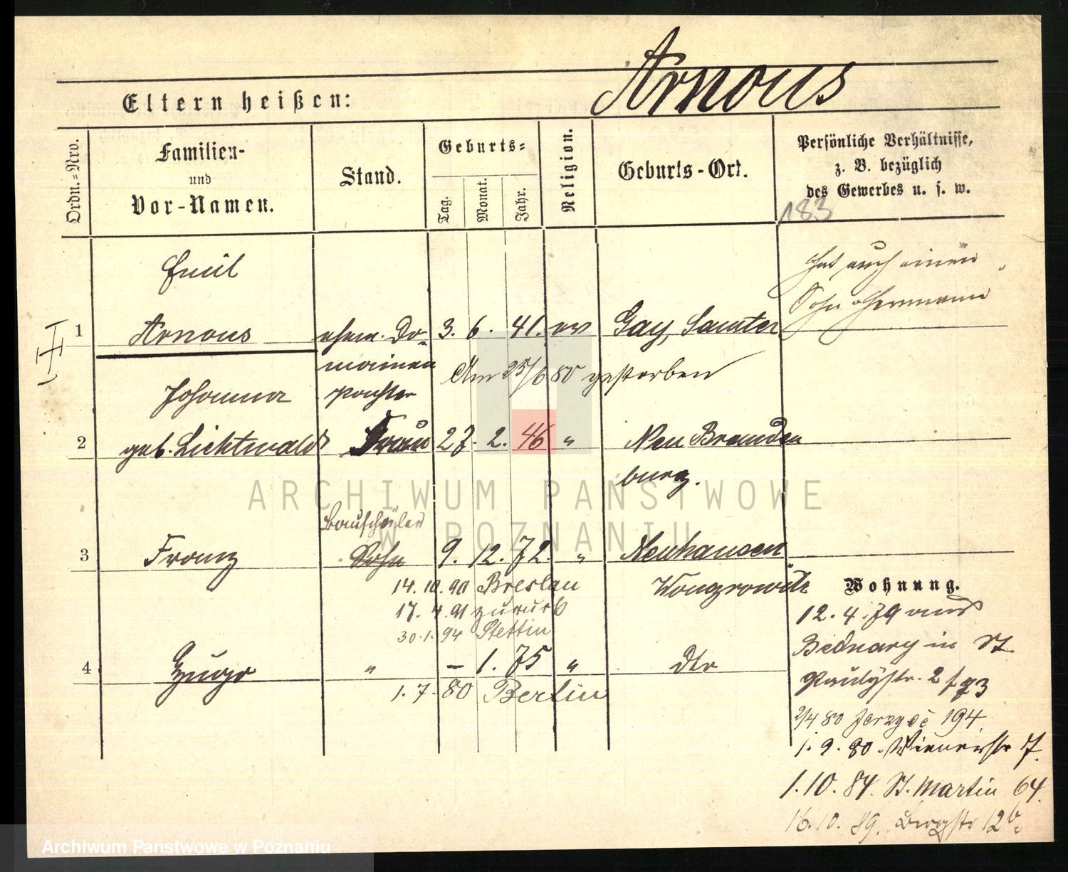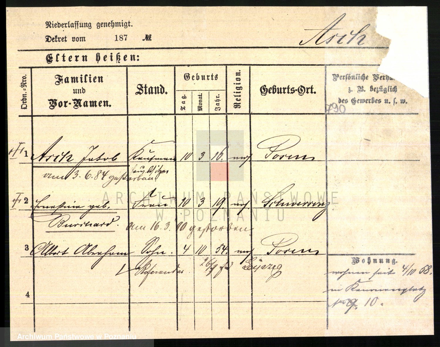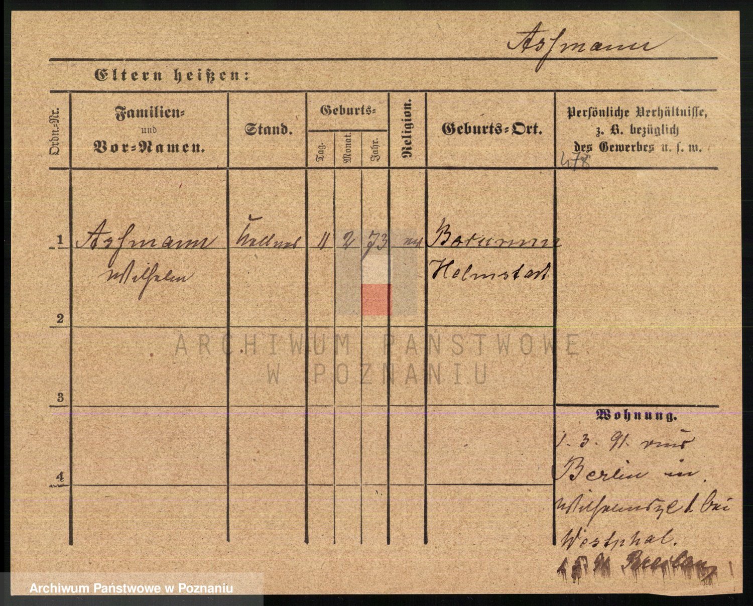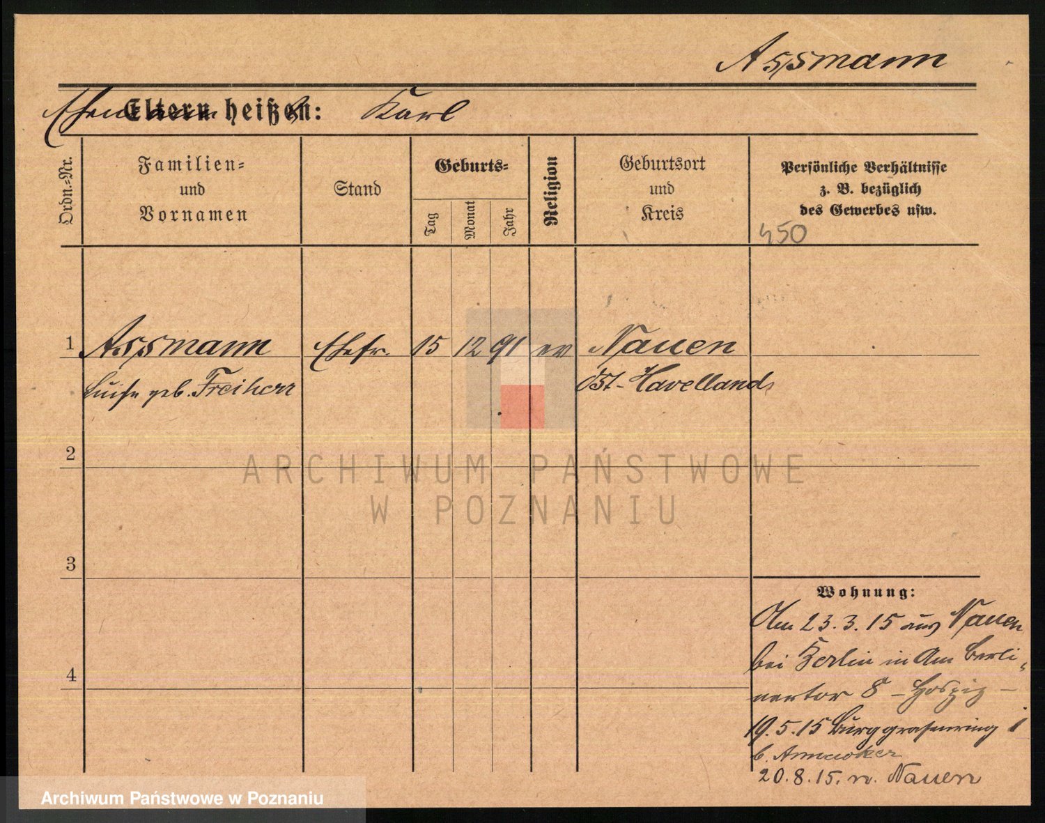 Arnim v. z.d. Bieberstein, brak imienia