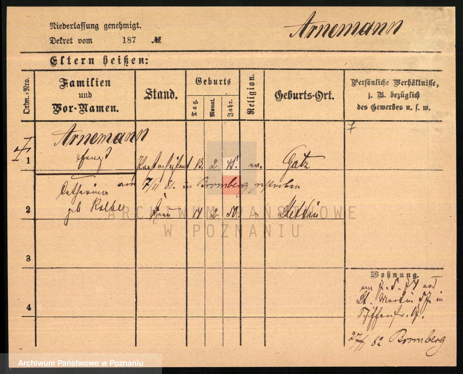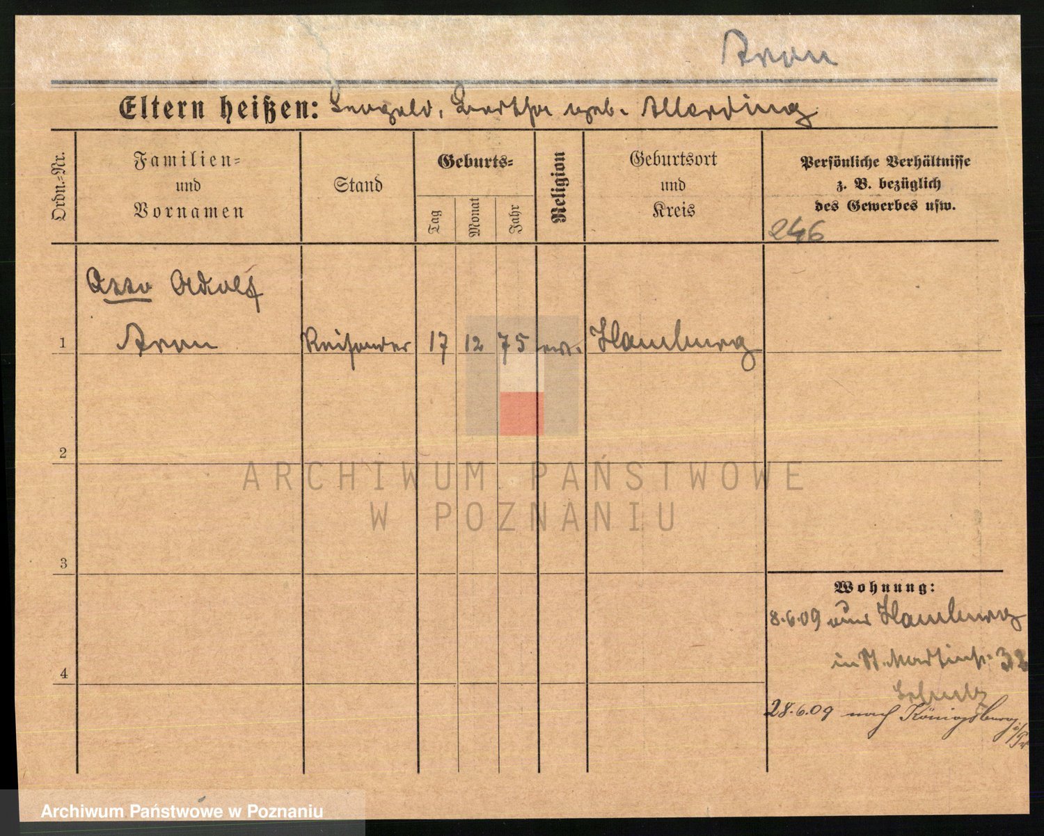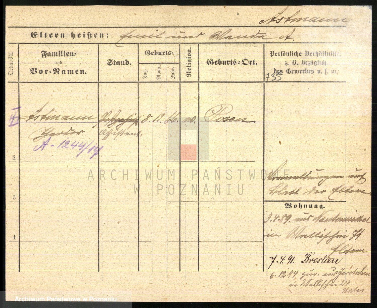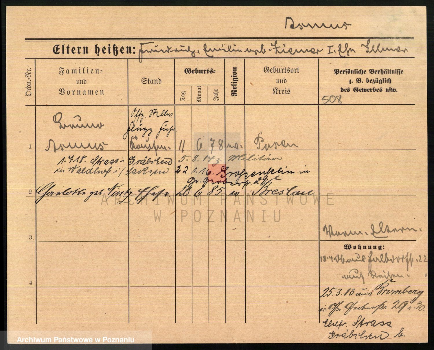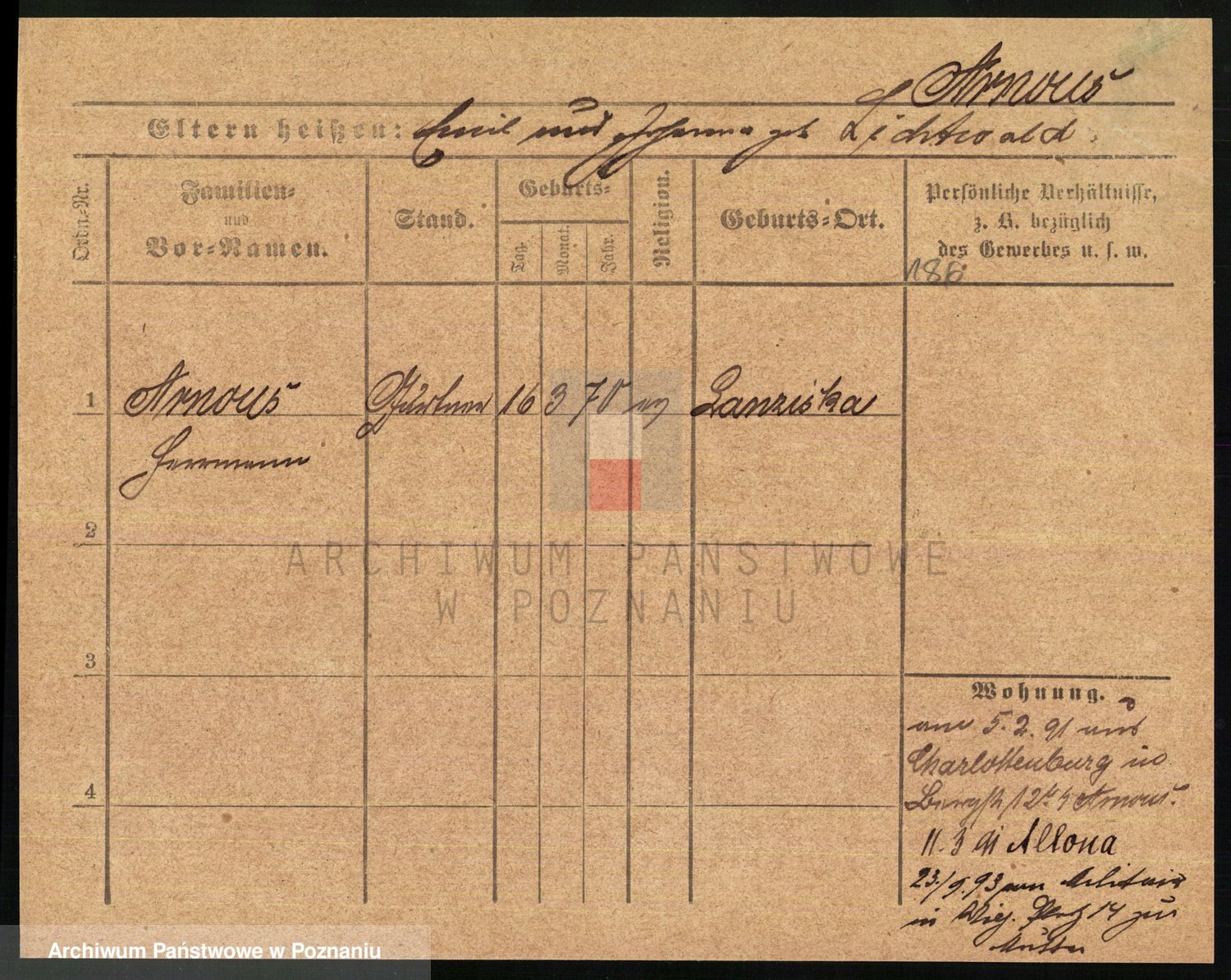 Arnim v. z.d. Bieberstein, brak imienia
