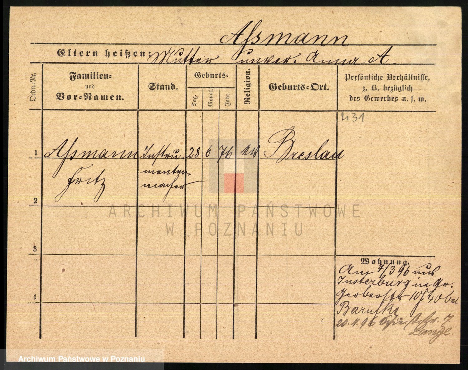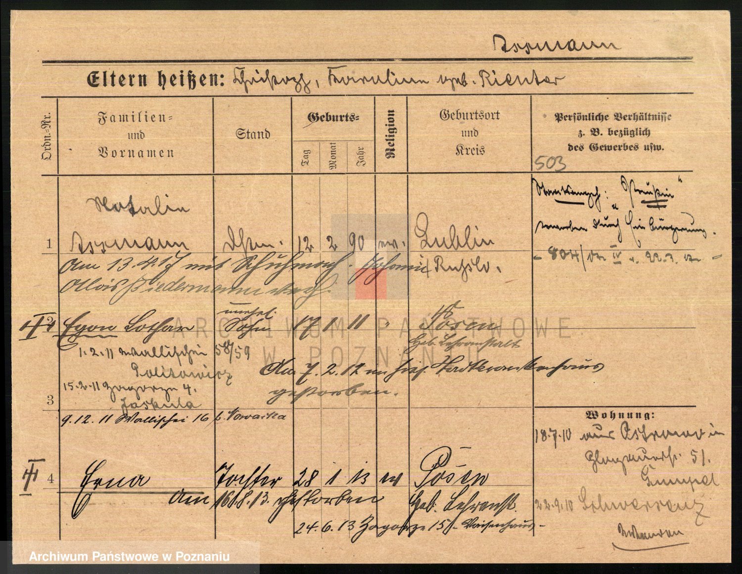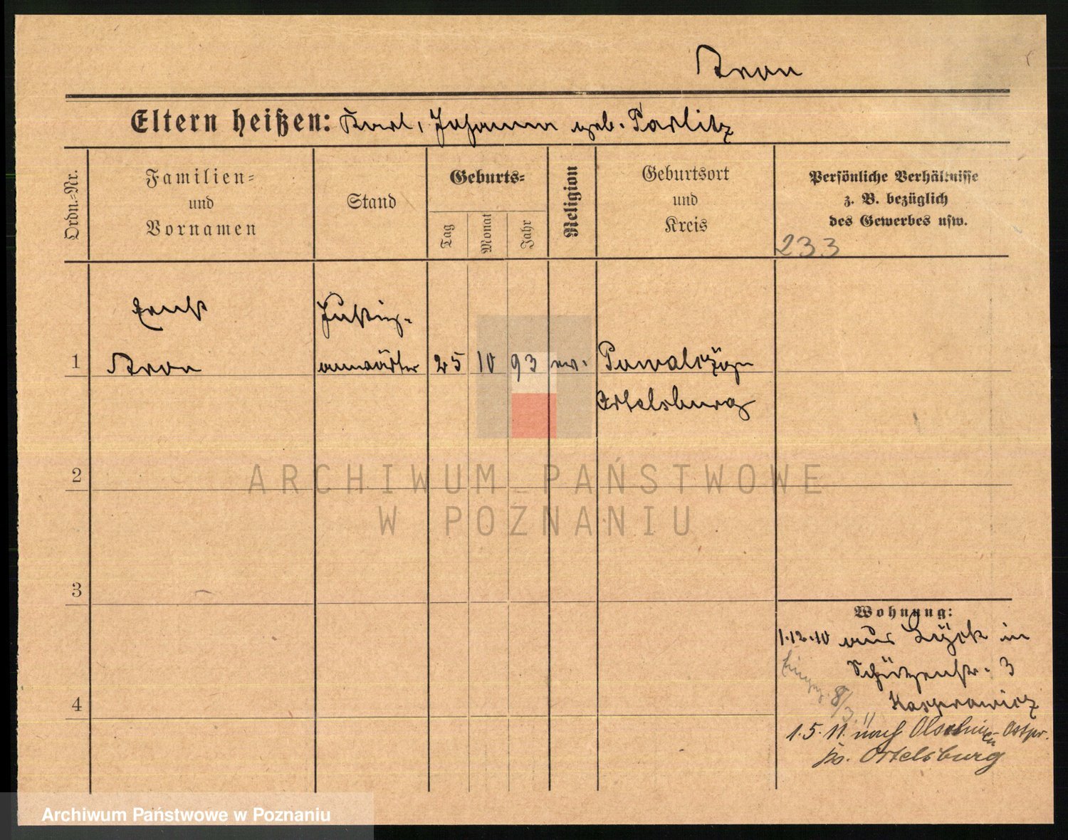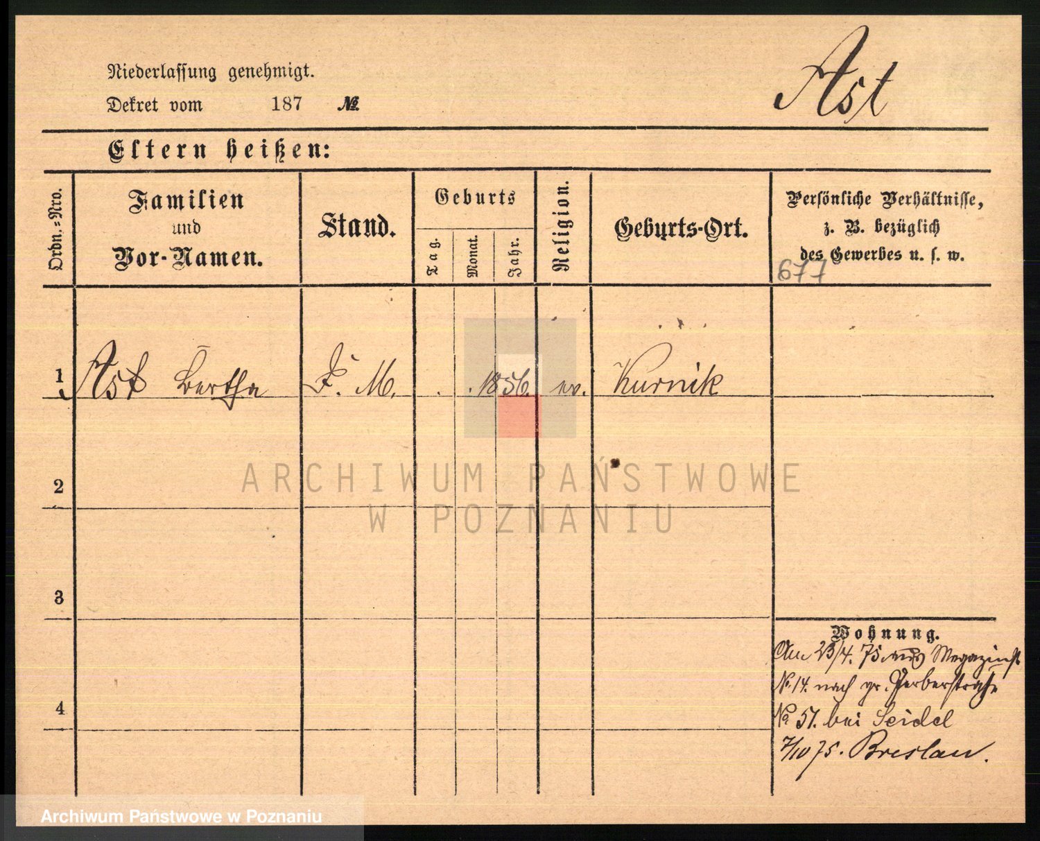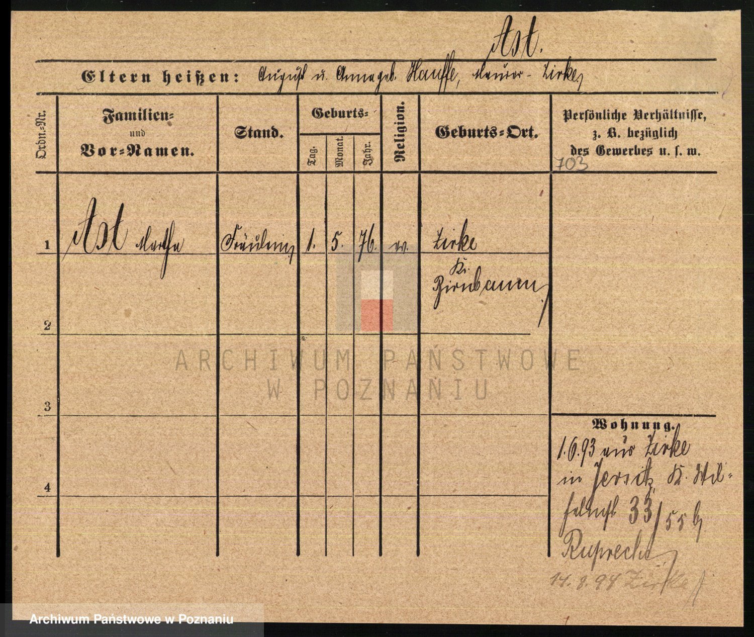 Arnim v. z.d. Bieberstein, brak imienia