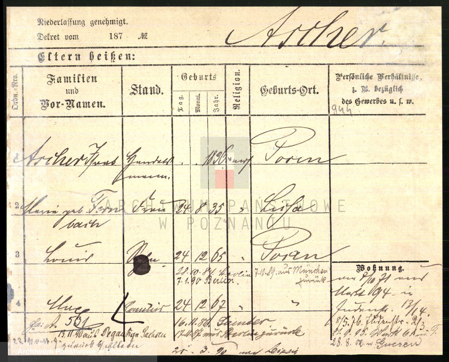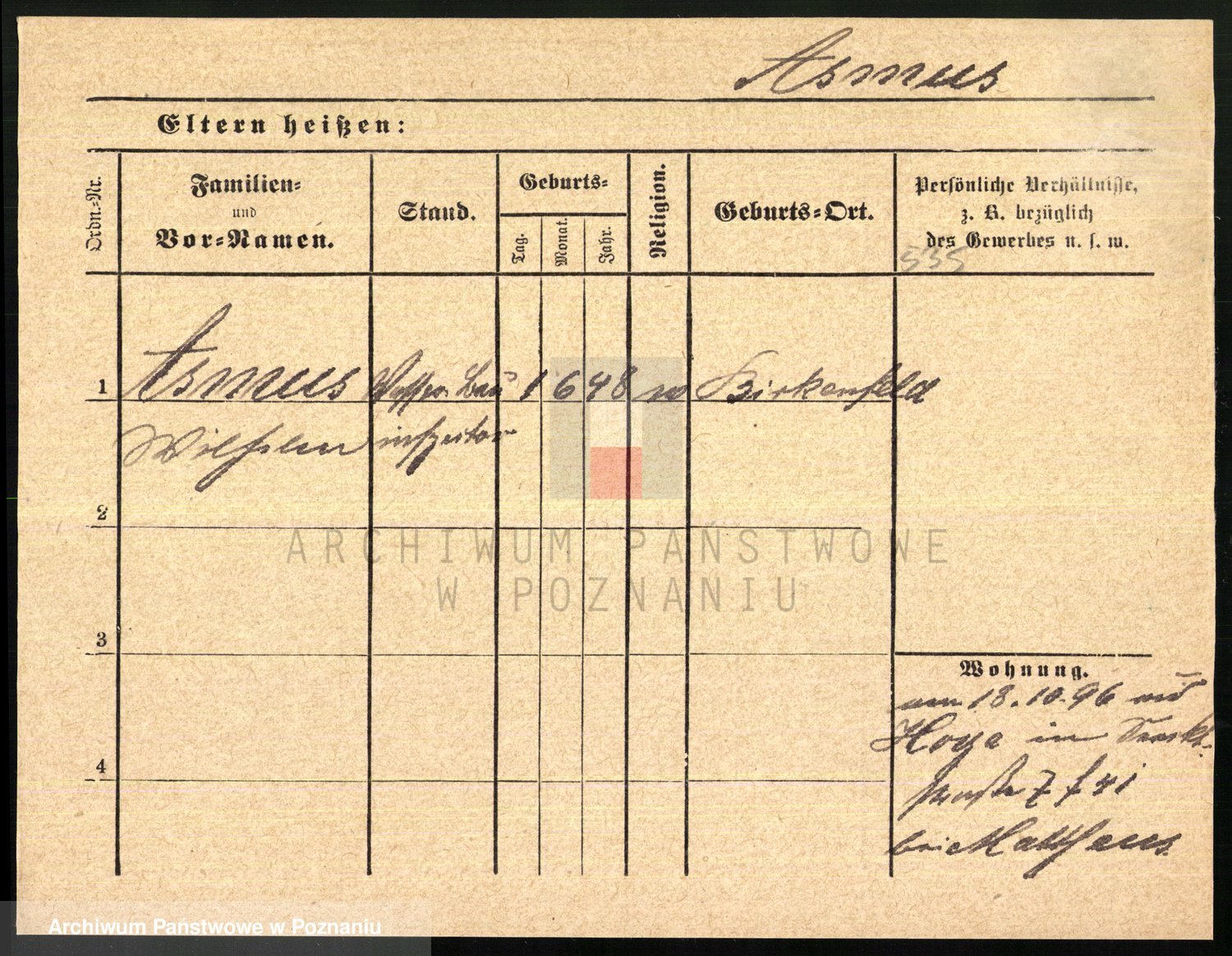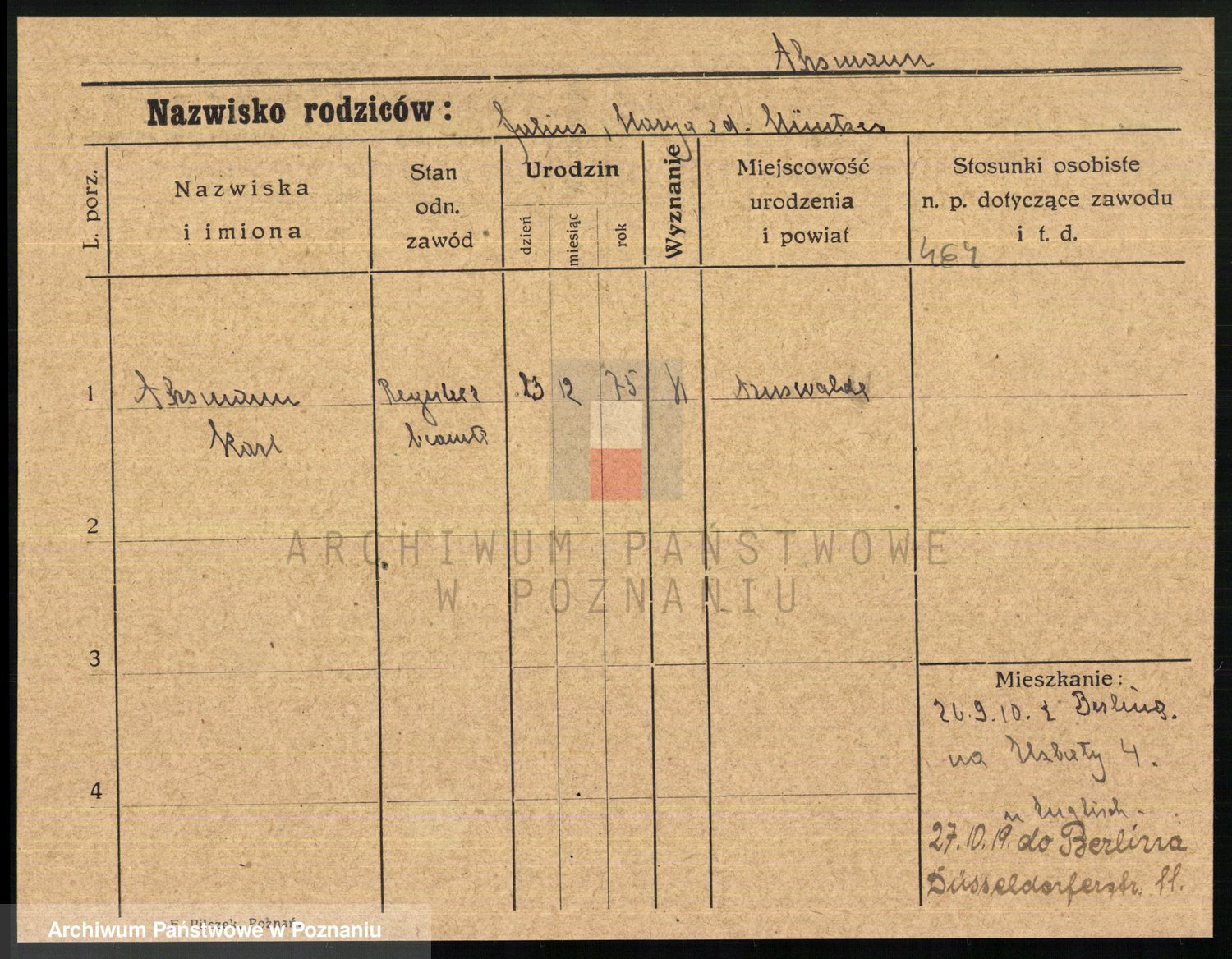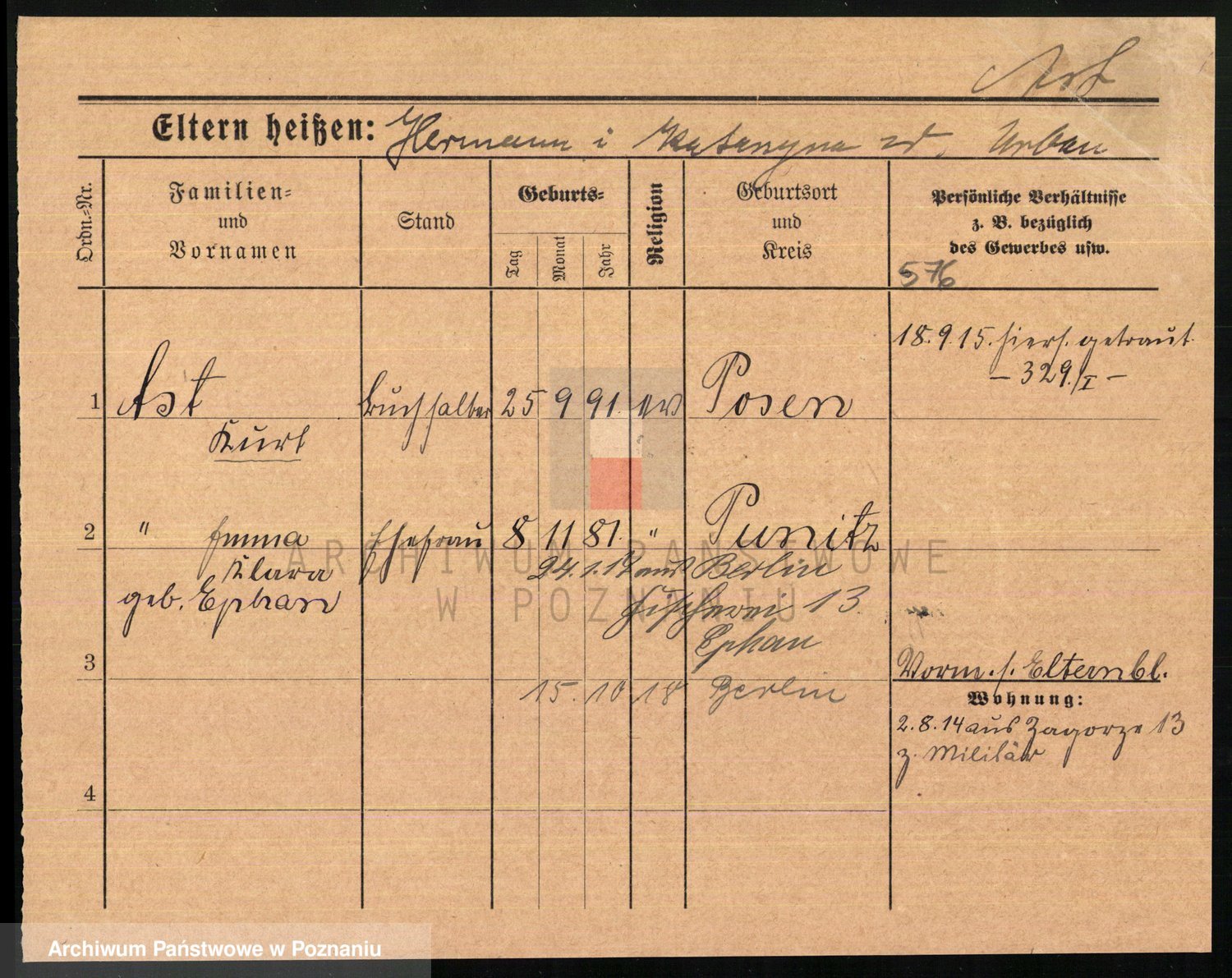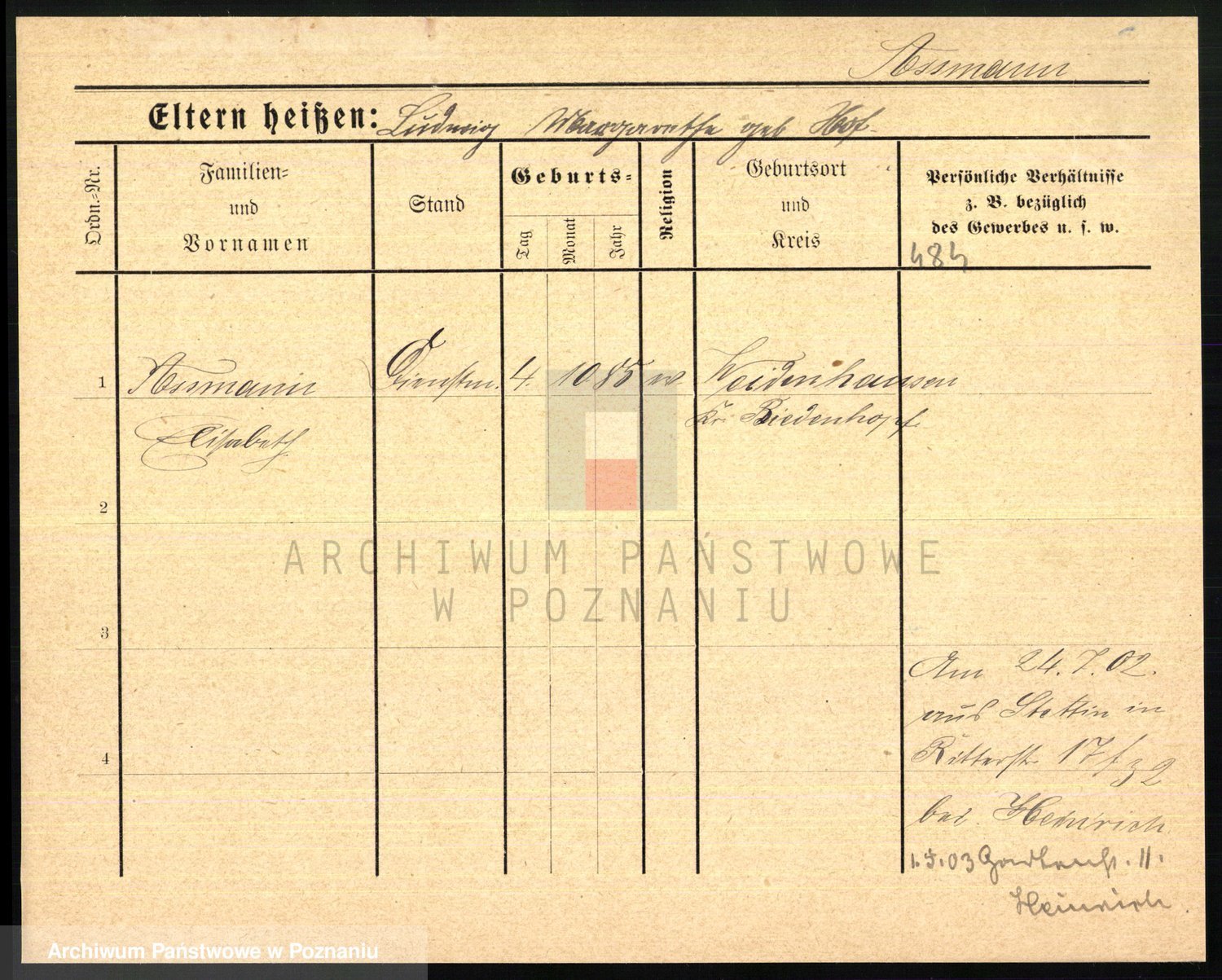 Arnim v. z.d. Bieberstein, brak imienia