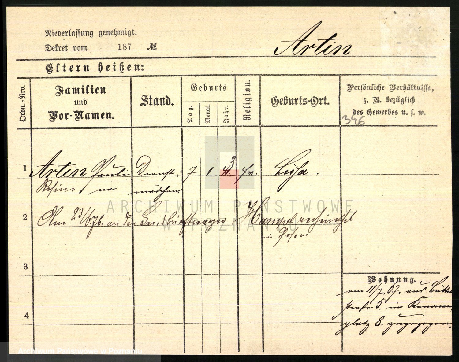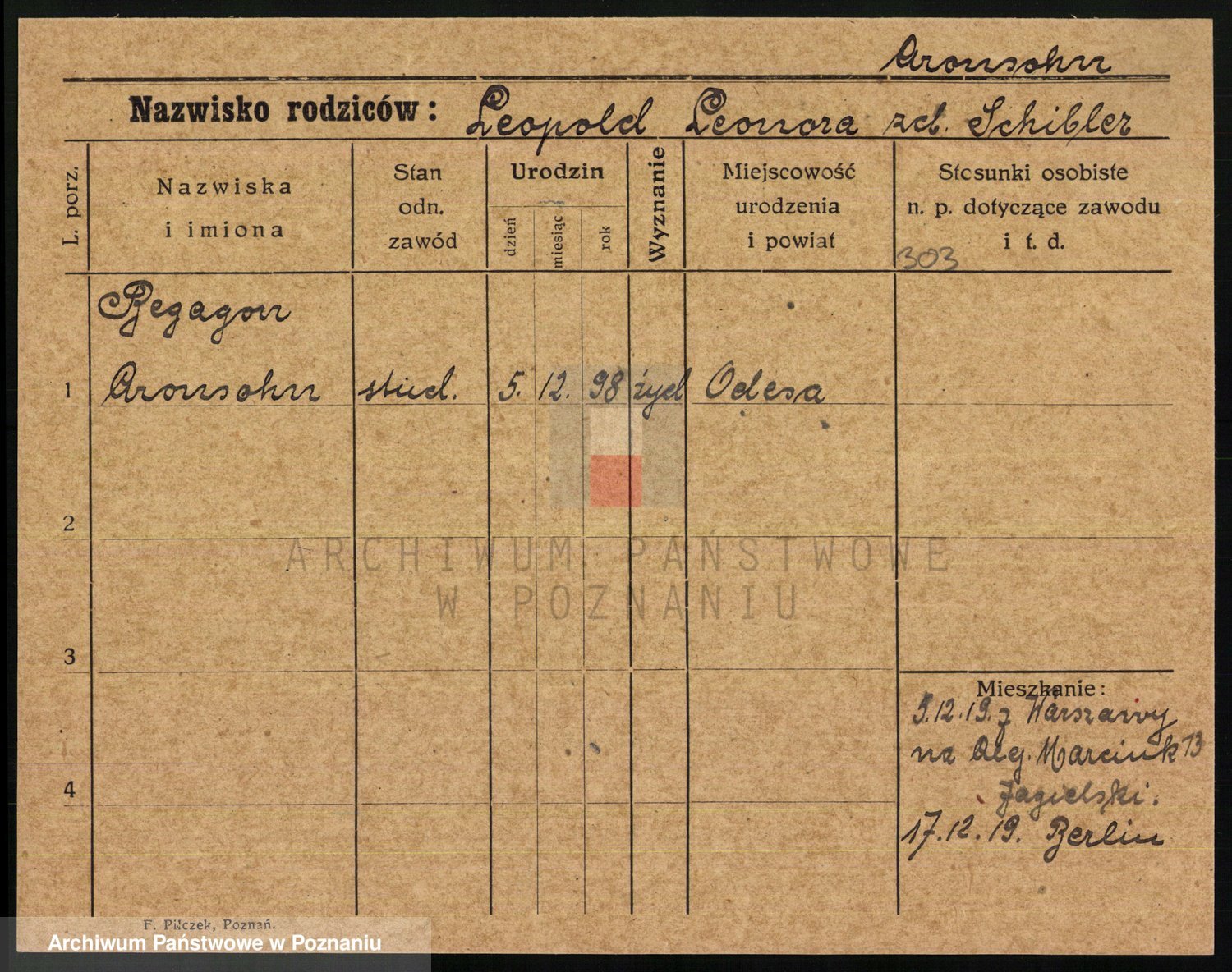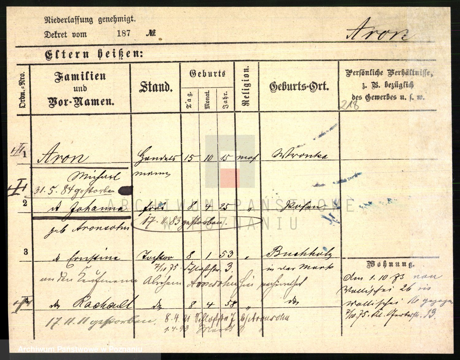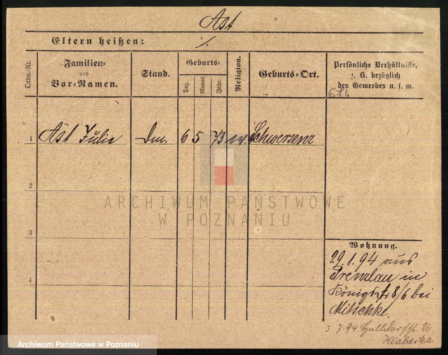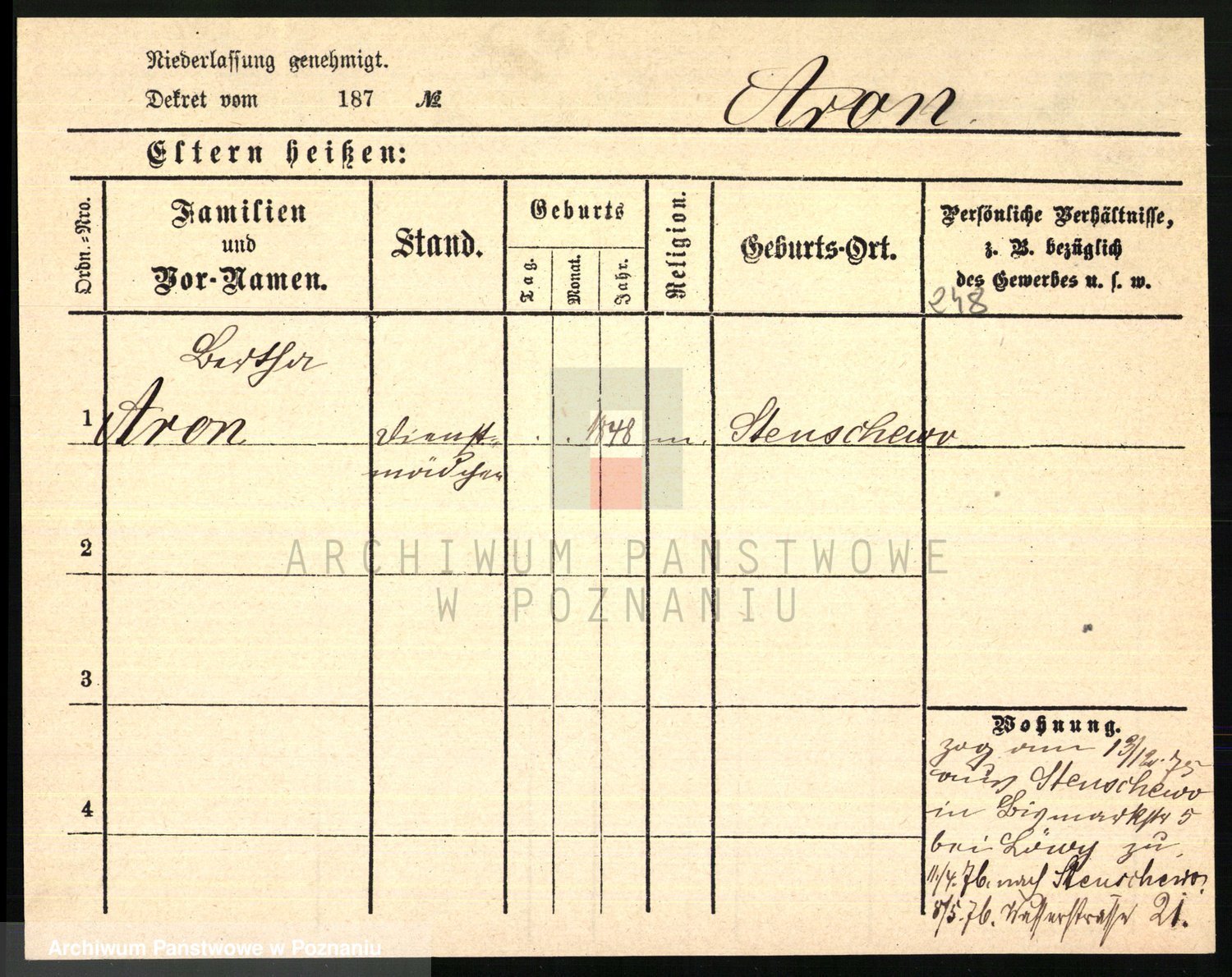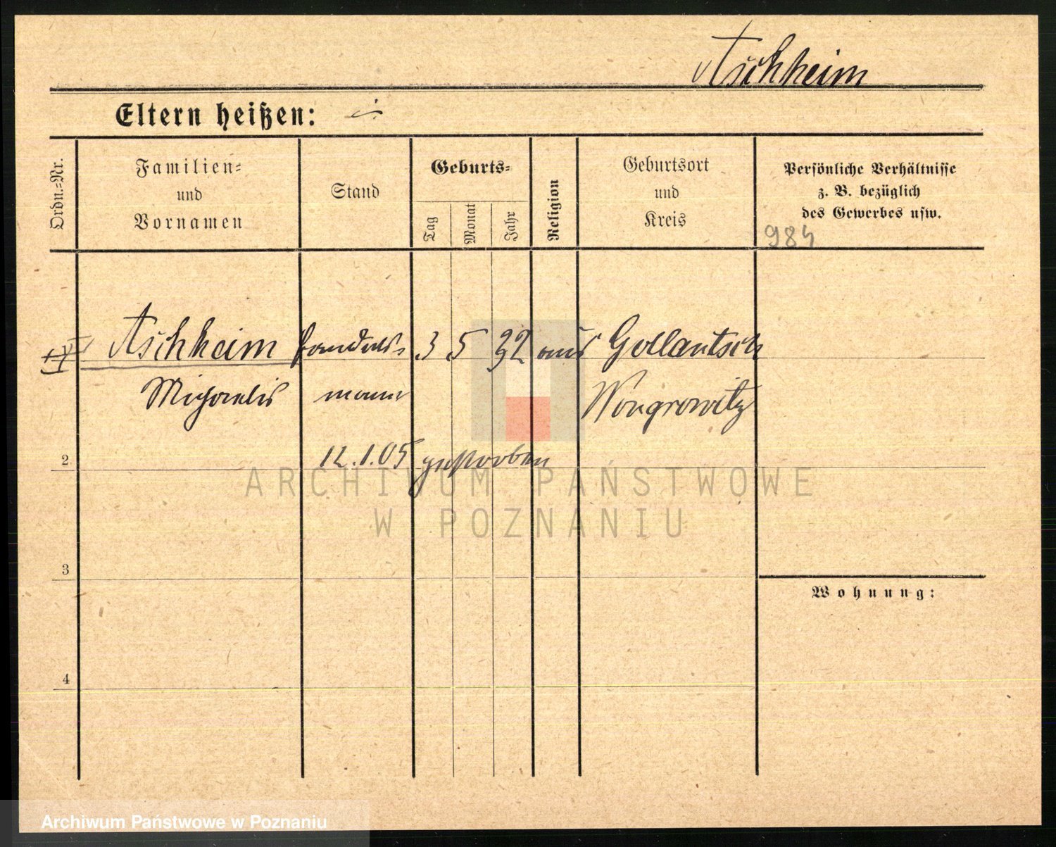 Arnim v. z.d. Bieberstein, brak imienia