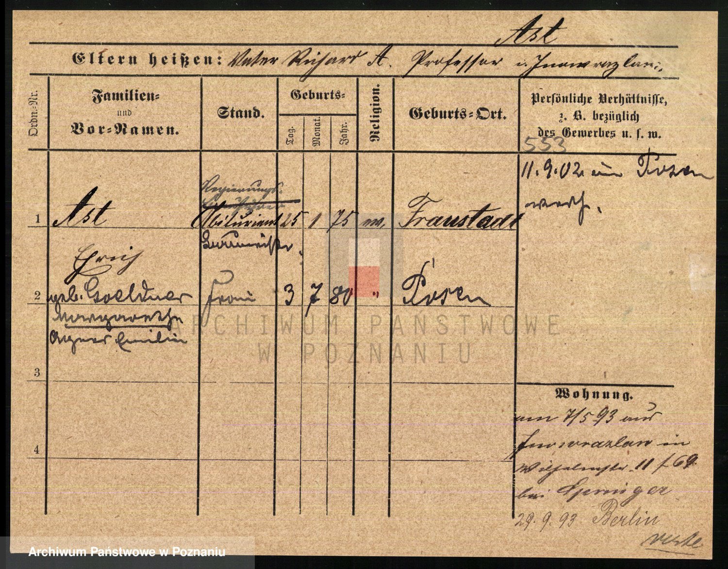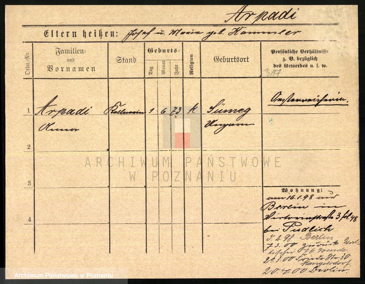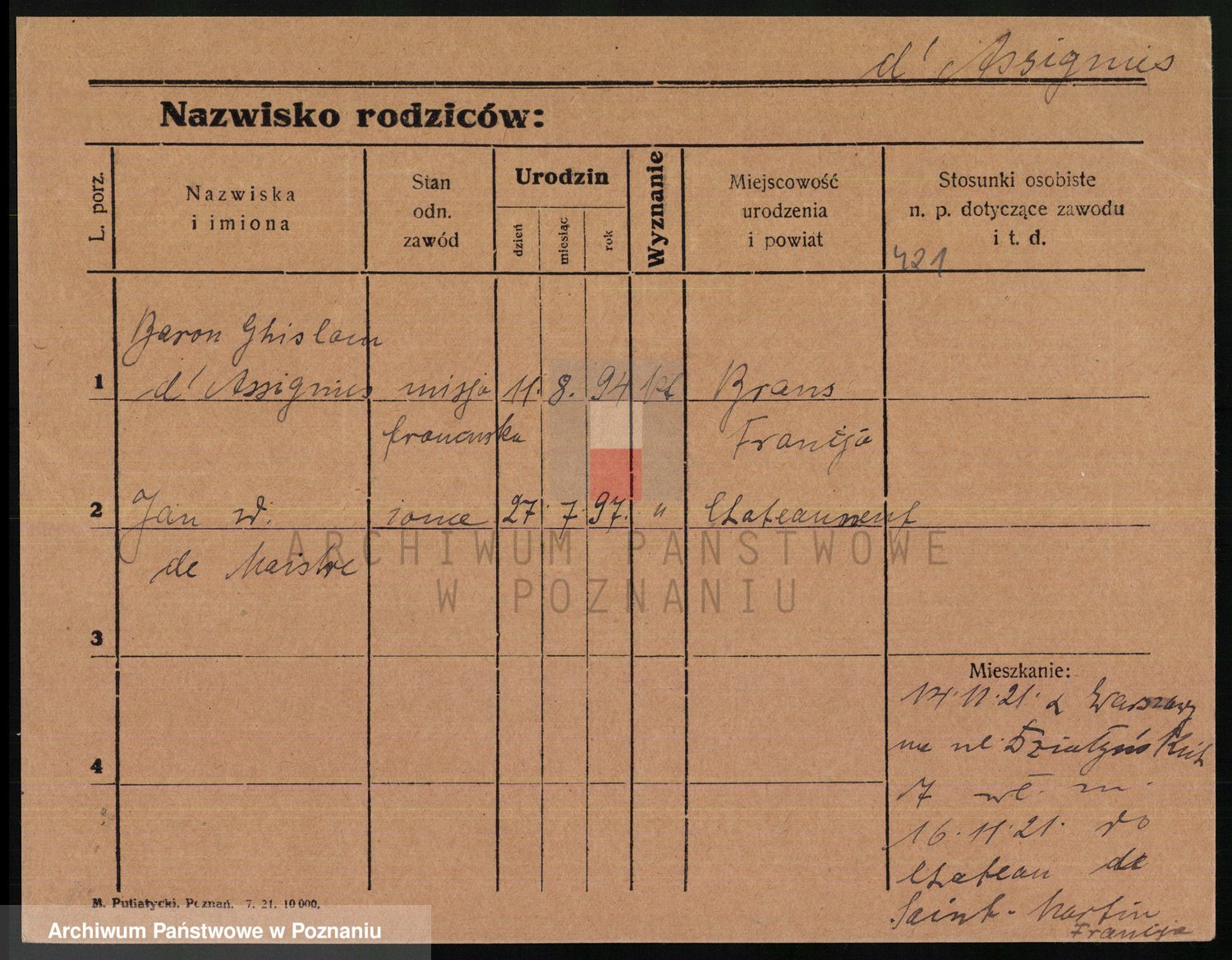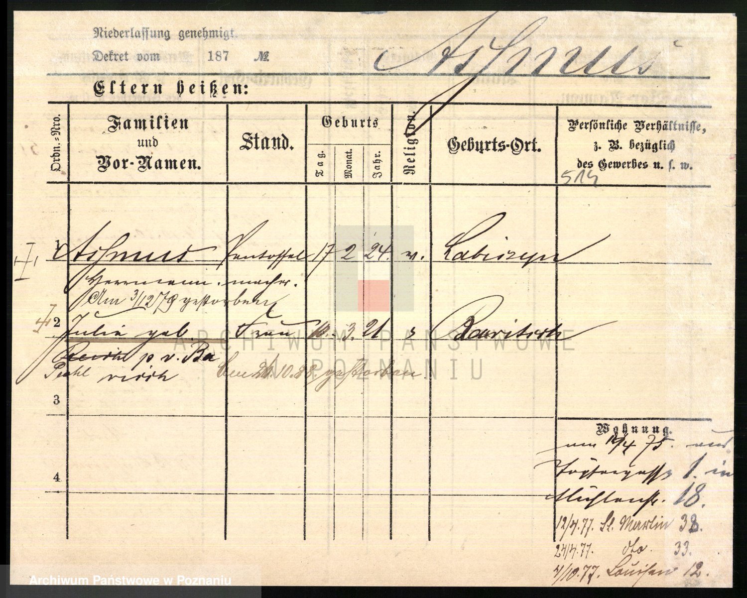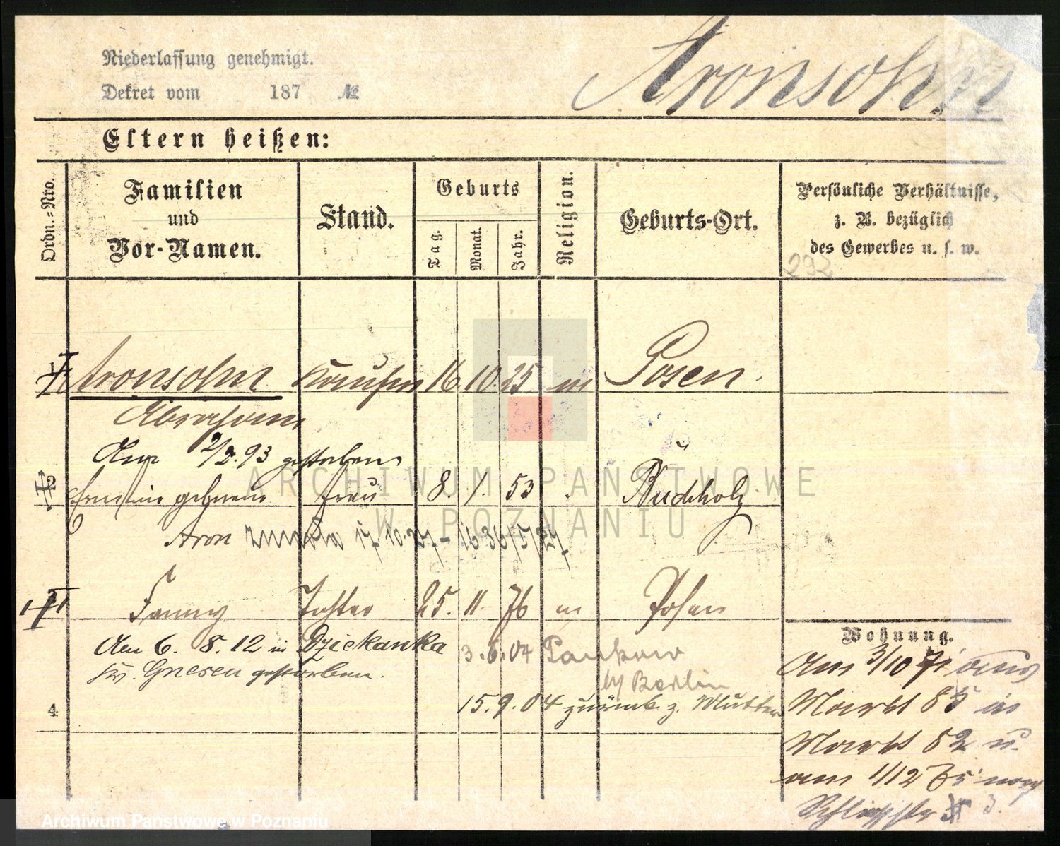 Arnim v. z.d. Bieberstein, brak imienia