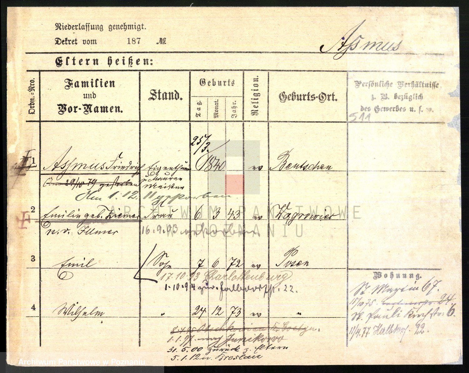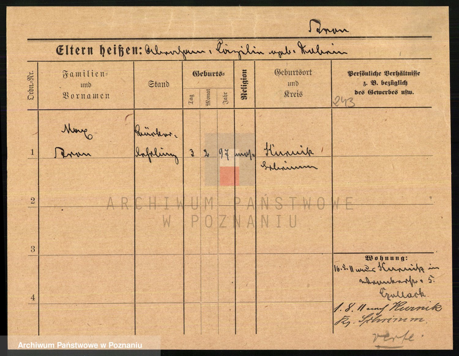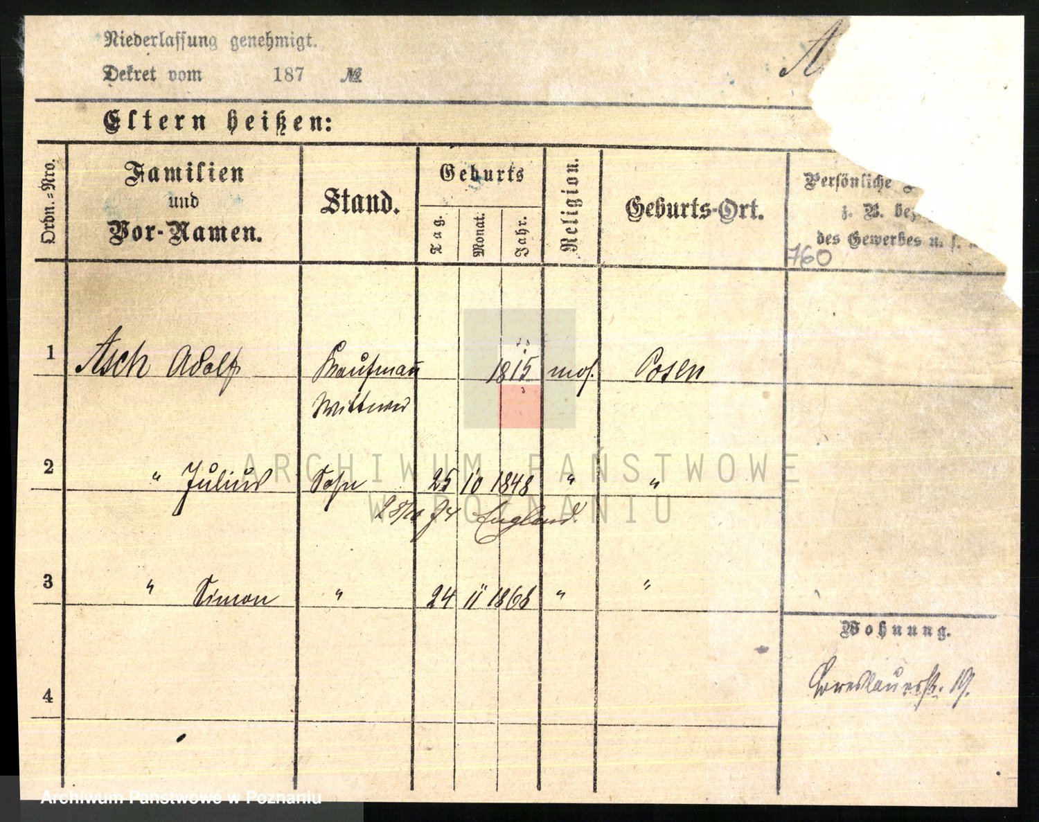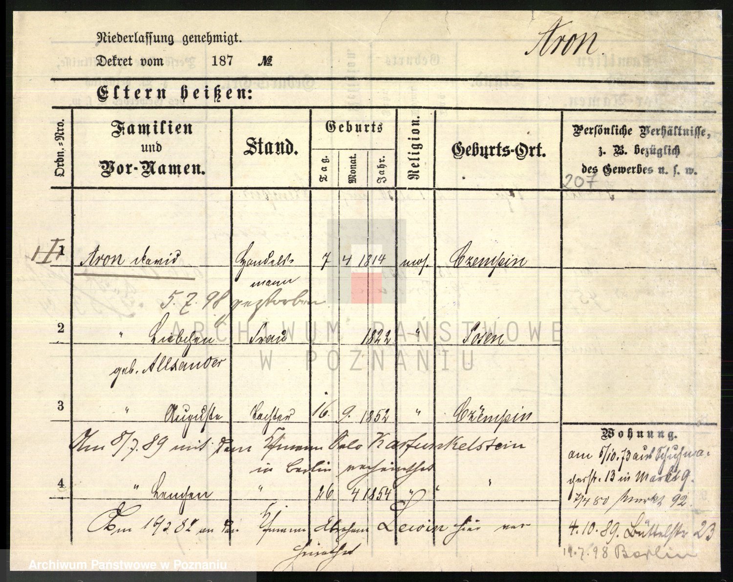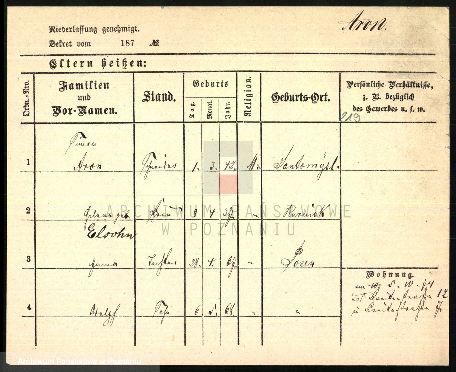 Arnim v. z.d. Bieberstein, brak imienia