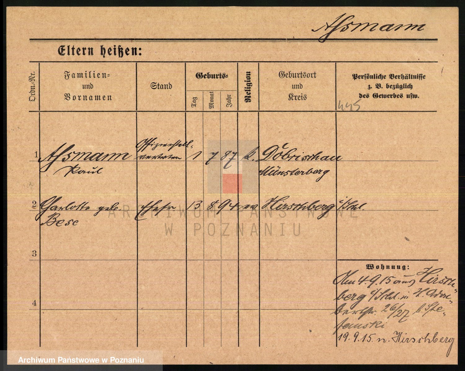 Aschheim z.d. Kantorowicz, Rinka