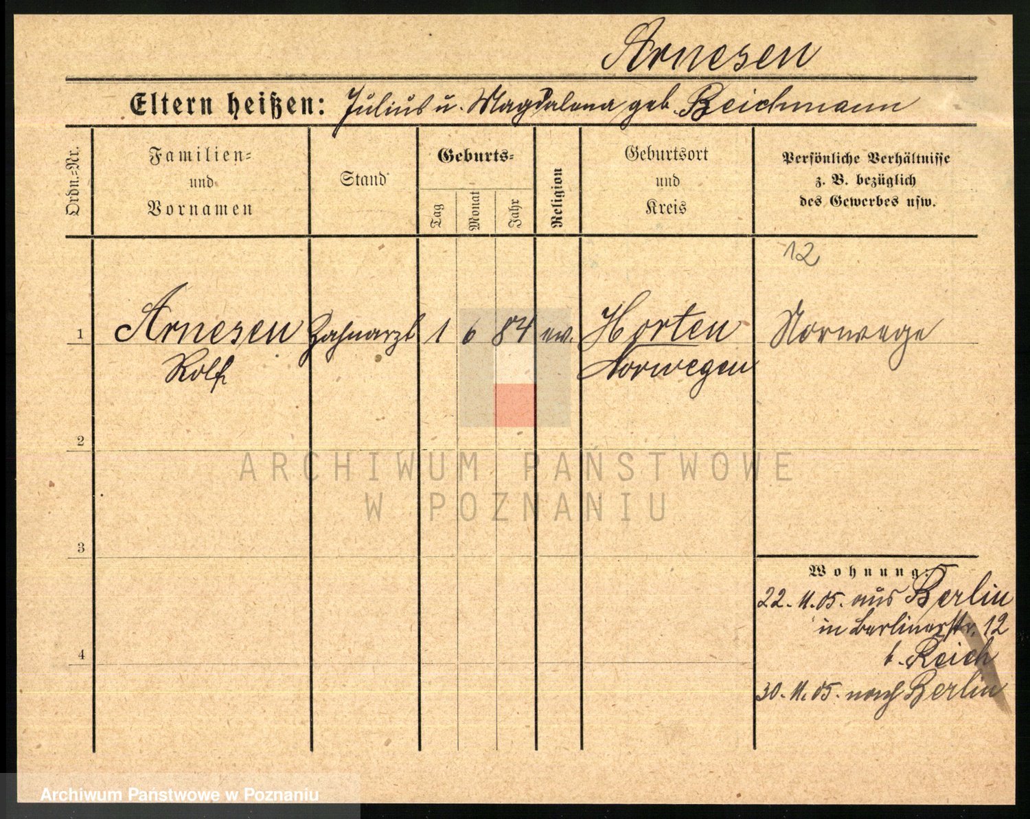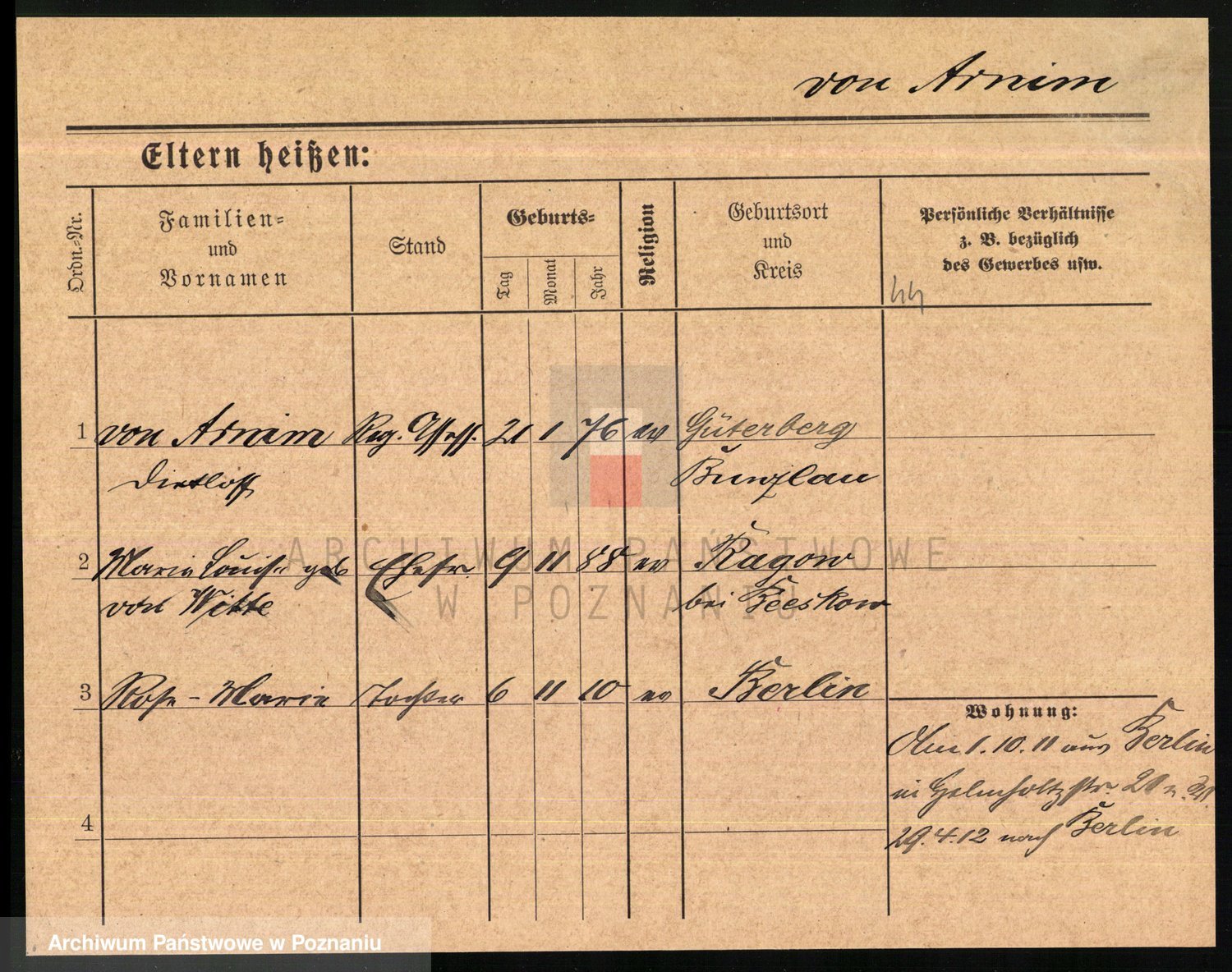 Arnim v., Bertha Carolina