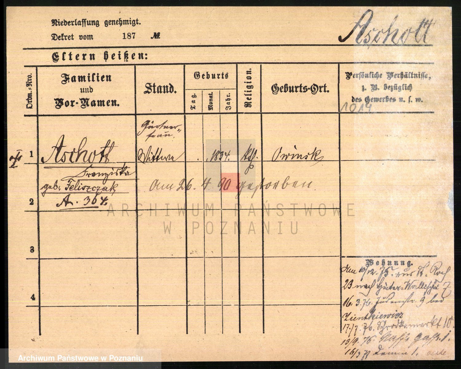 Aschott z.d. Feliszczak, Franziska