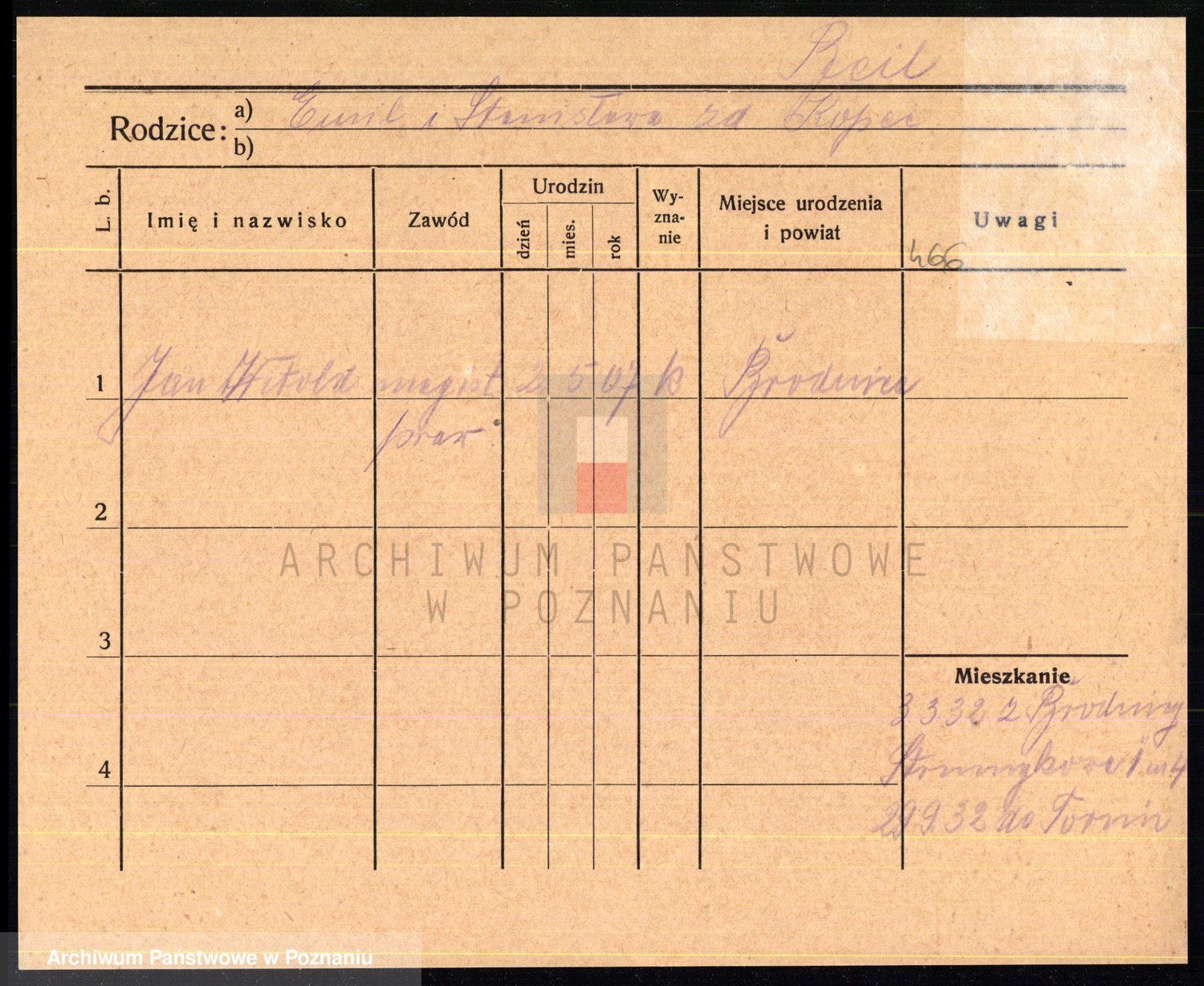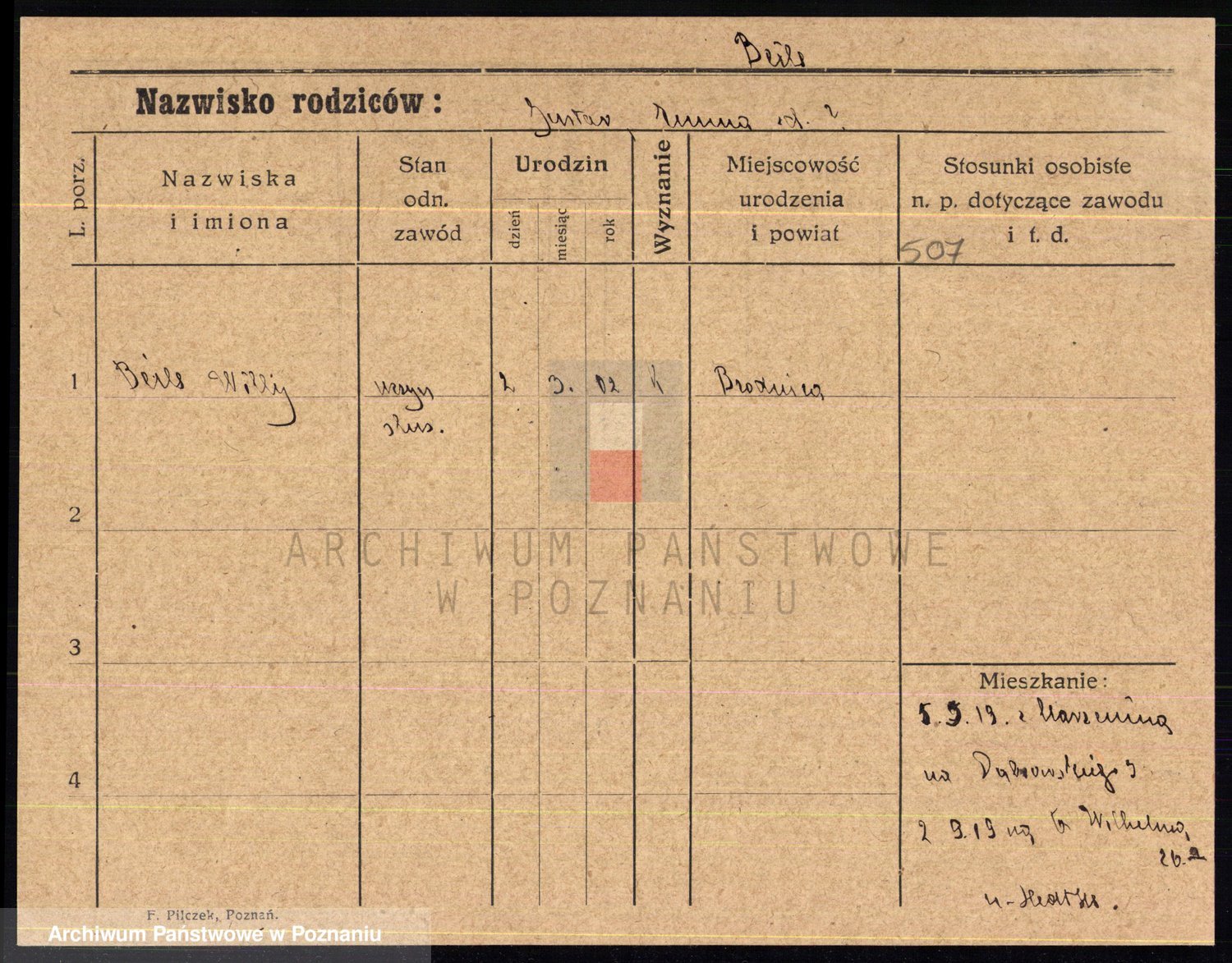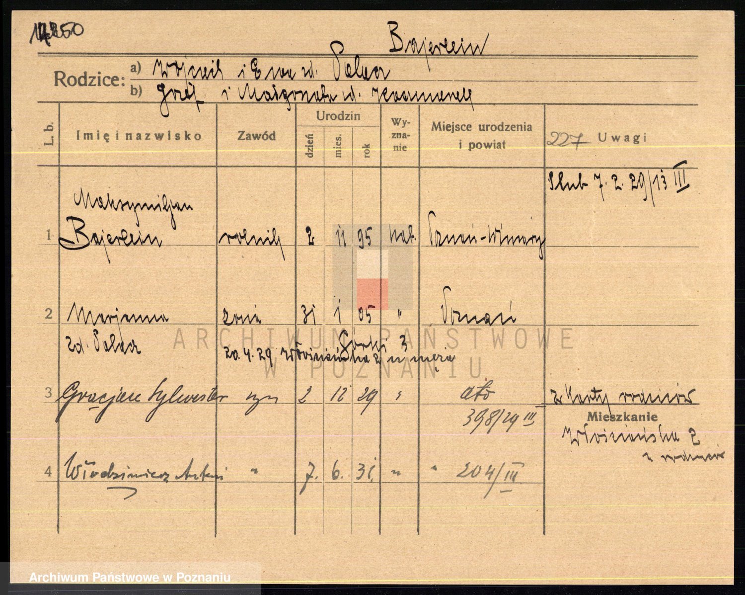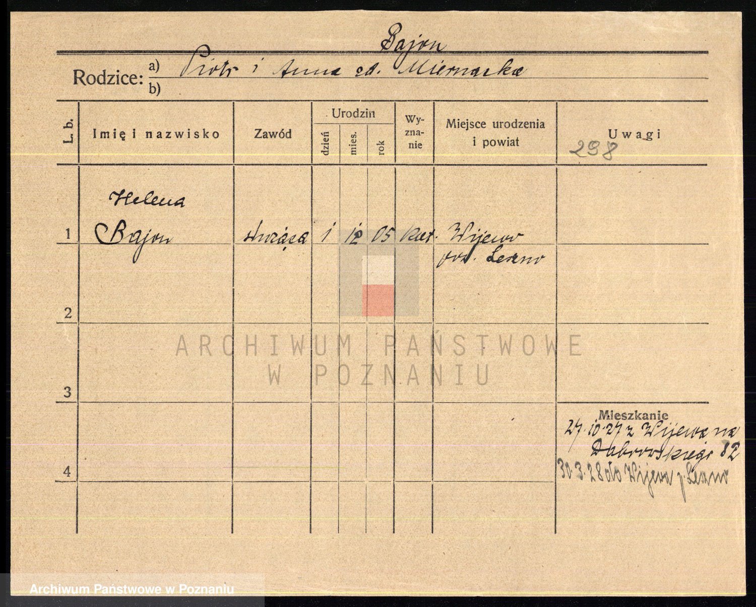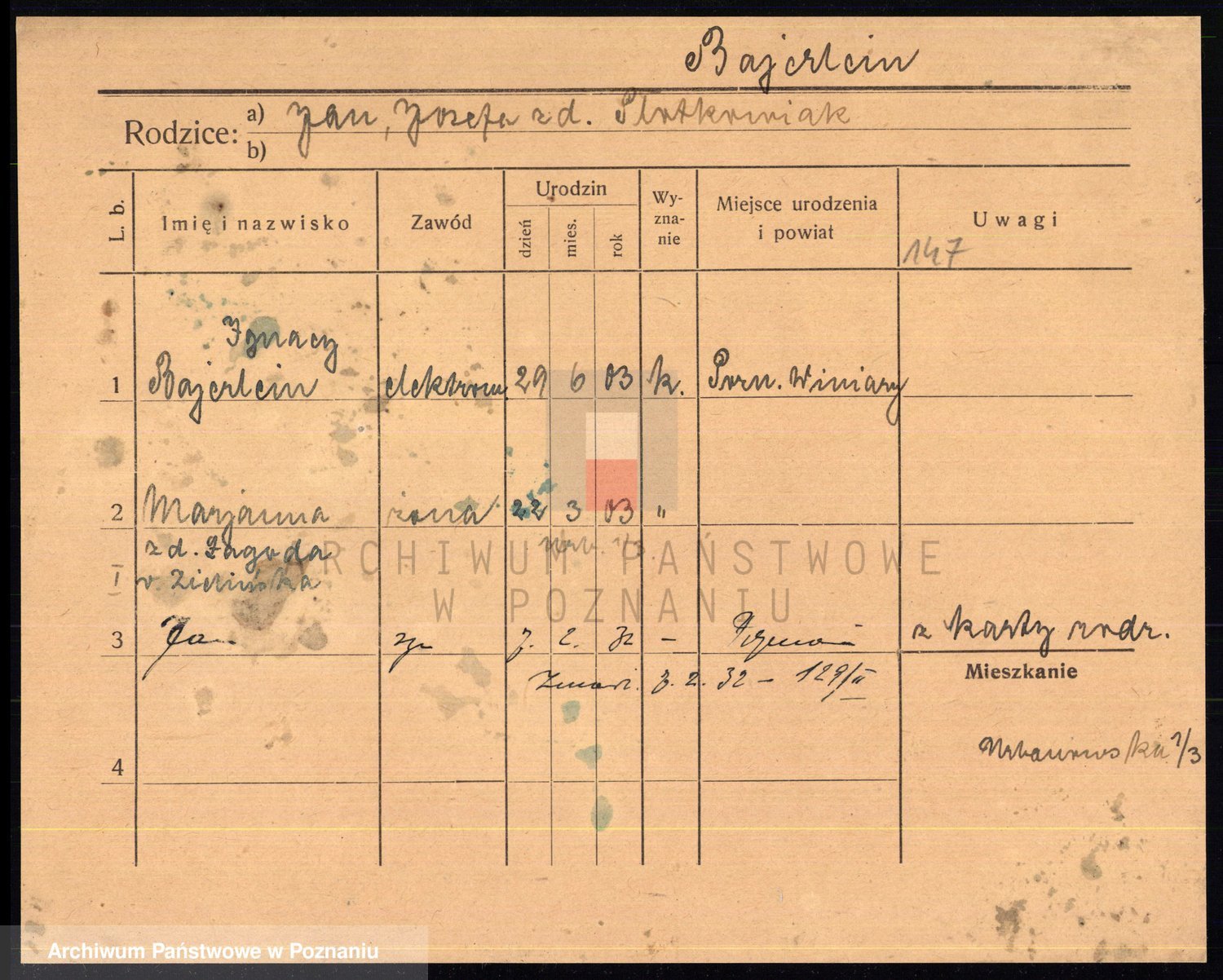 Podgląd karty osobowej dostępny jest po kliknięciu na nazwisko lub ikonkę karty. Można dokonywać powiększenia (ikony na górze) lub przechodzić między kolejnymi skanami (strzałki po bokach).