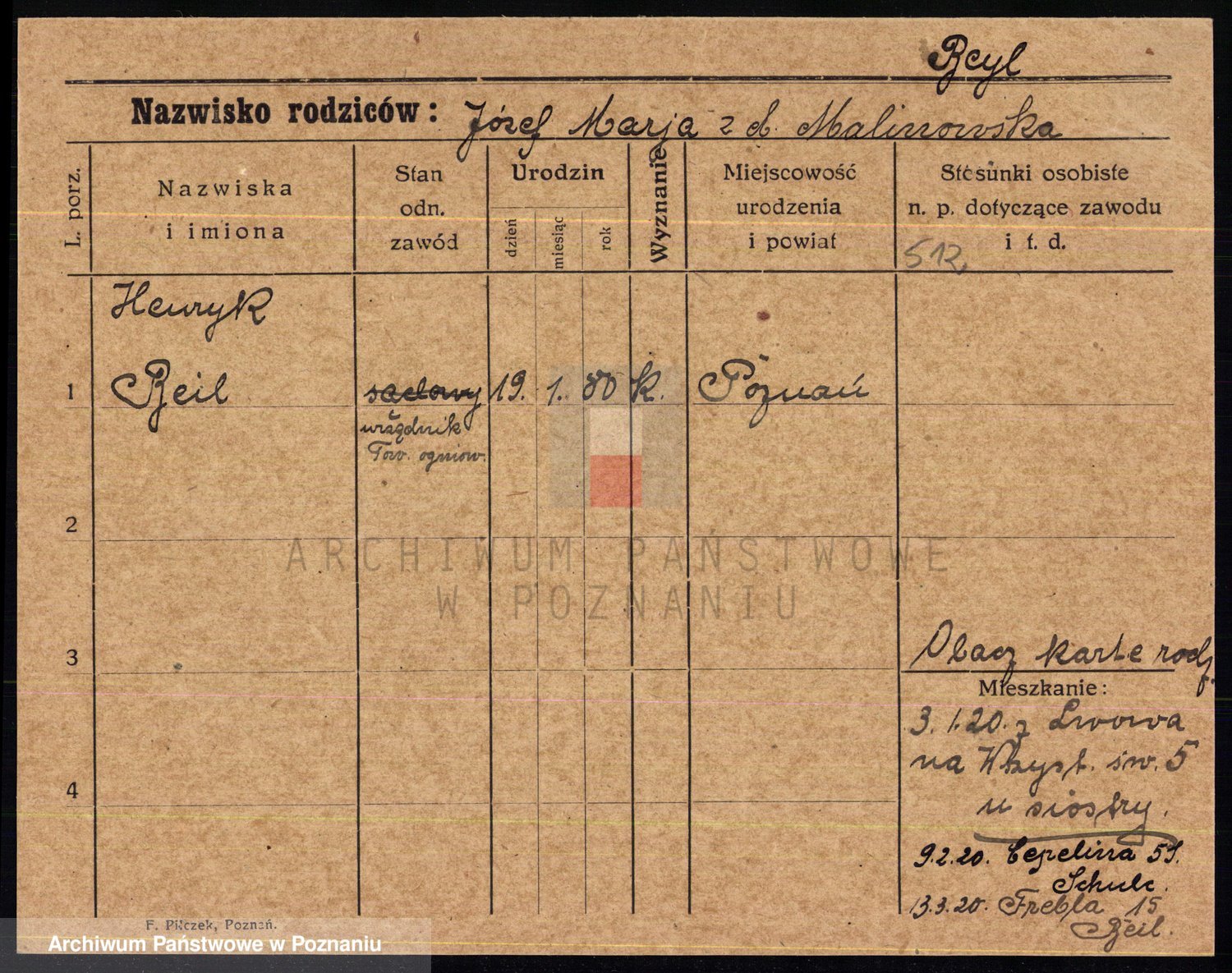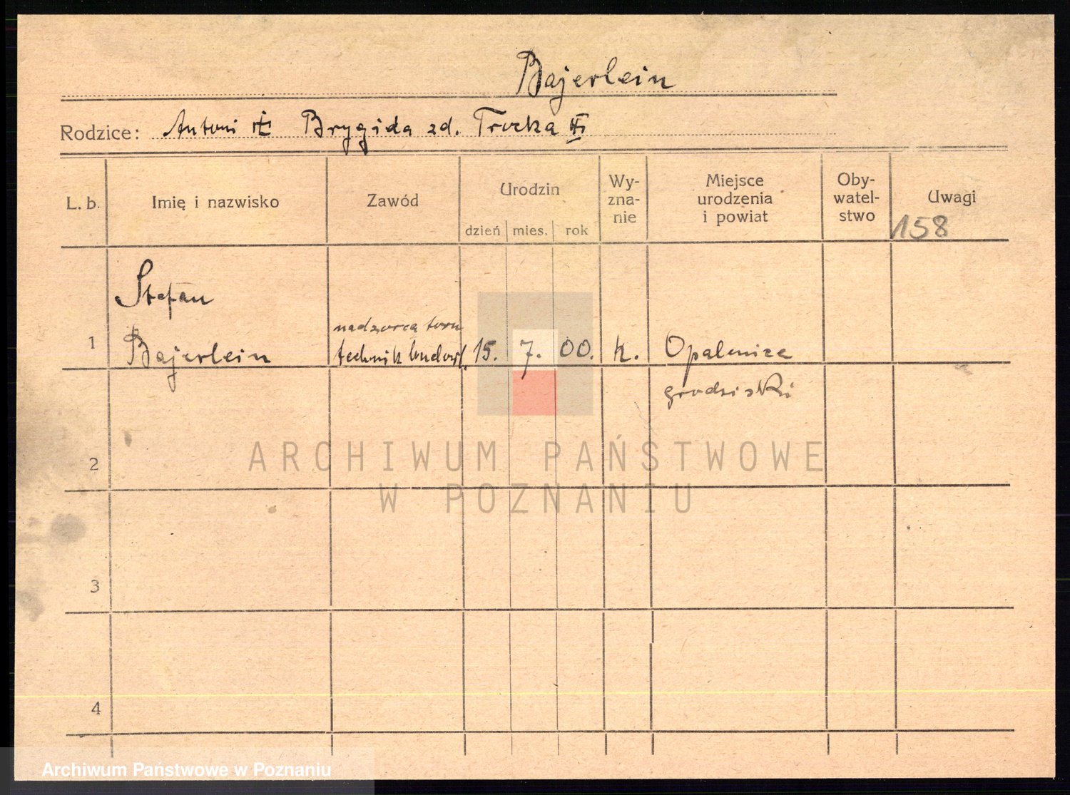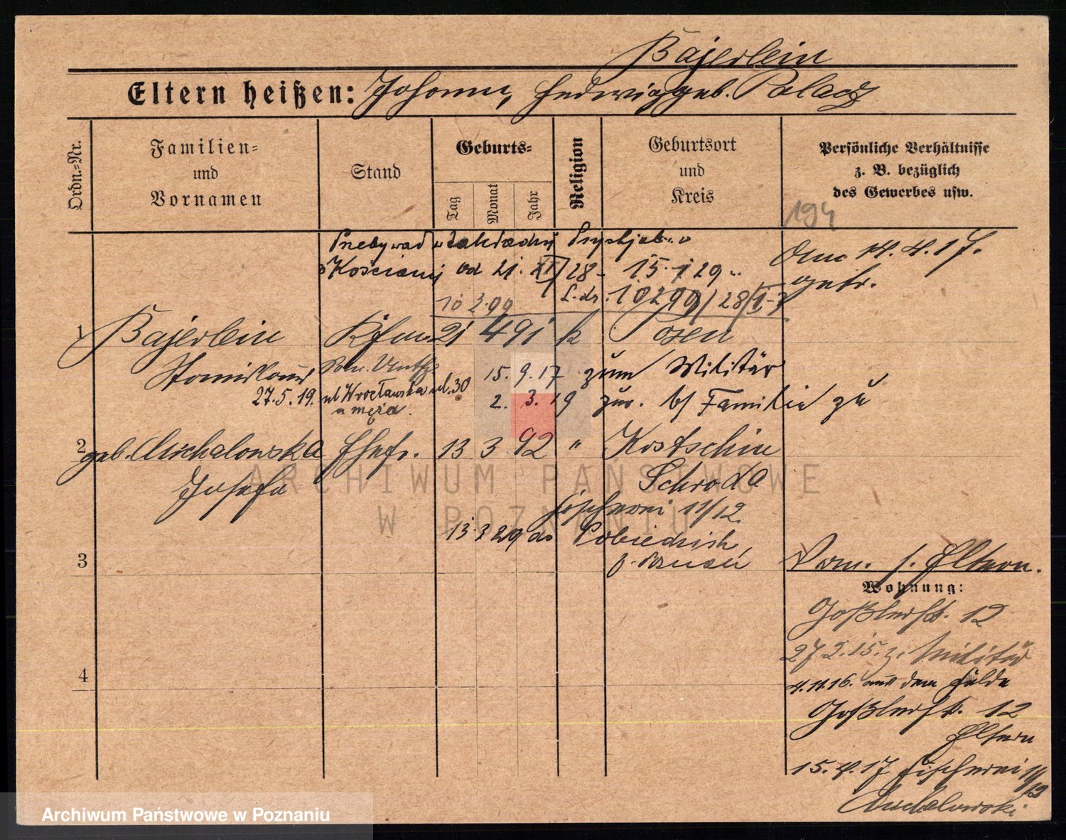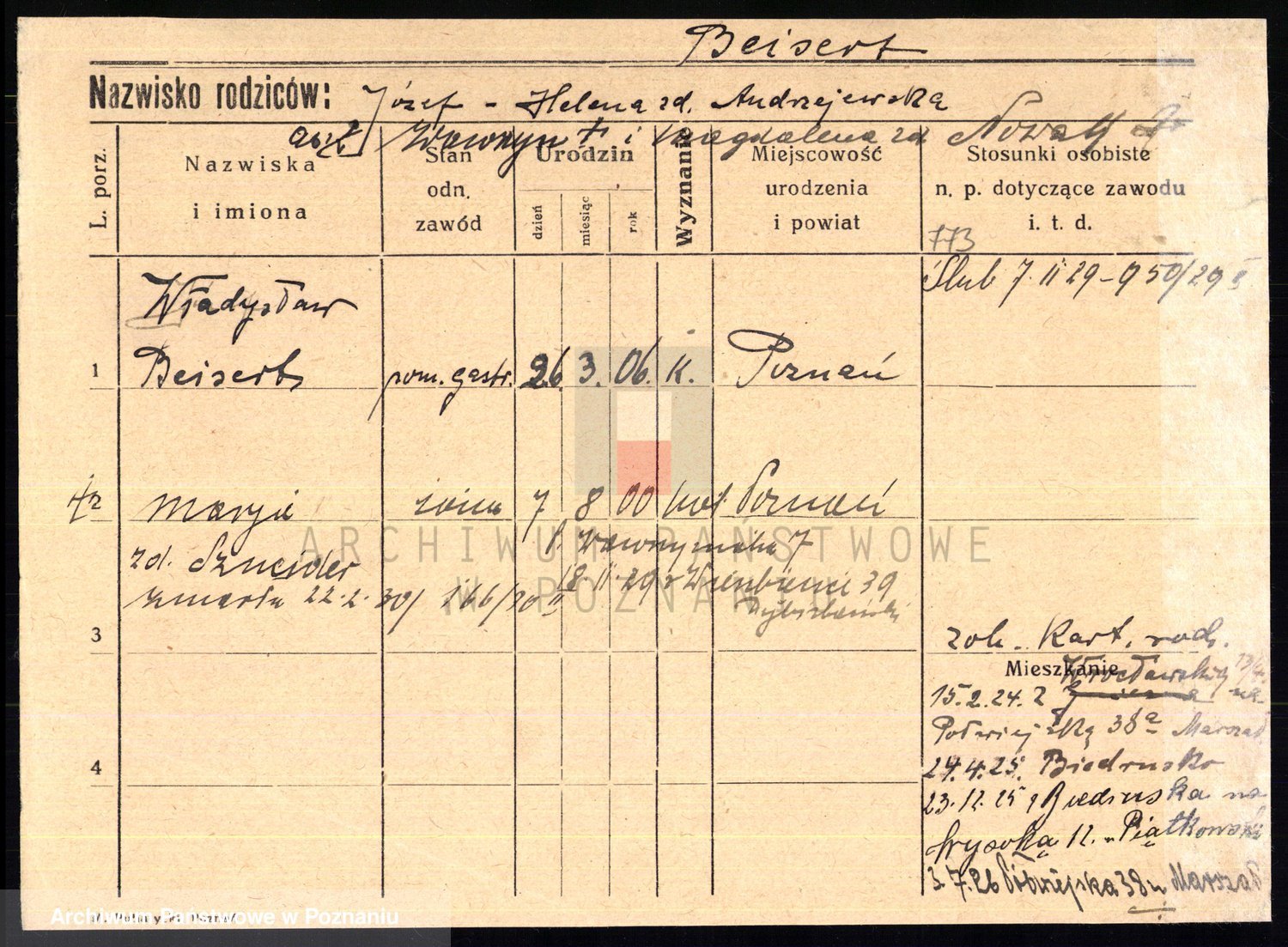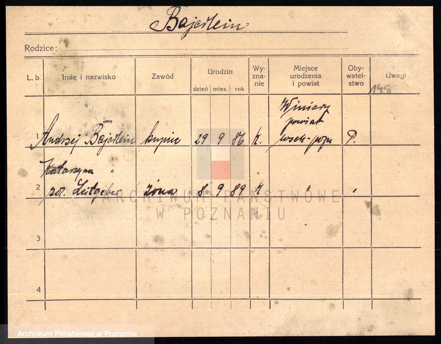 Podgląd karty osobowej dostępny jest po kliknięciu na nazwisko lub ikonkę karty. Można dokonywać powiększenia (ikony na górze) lub przechodzić między kolejnymi skanami (strzałki po bokach).