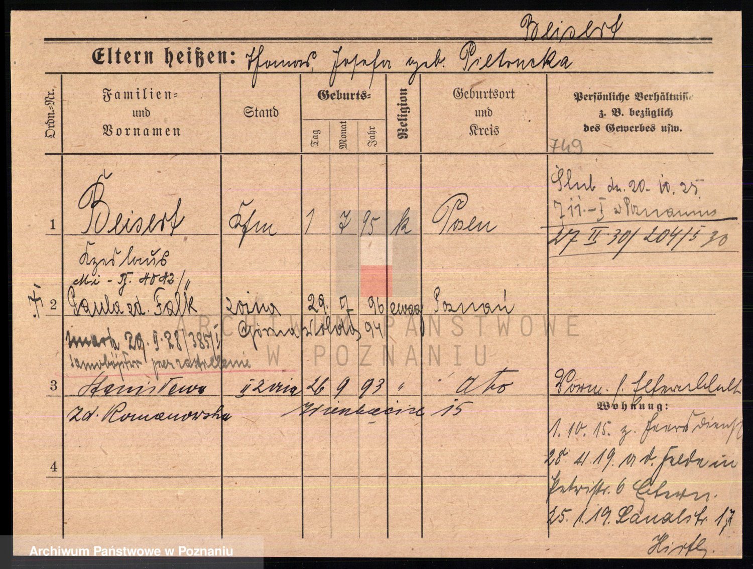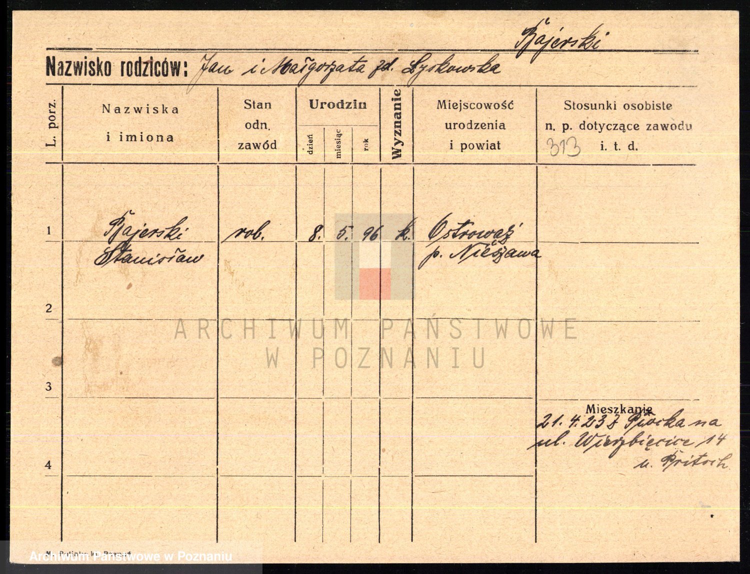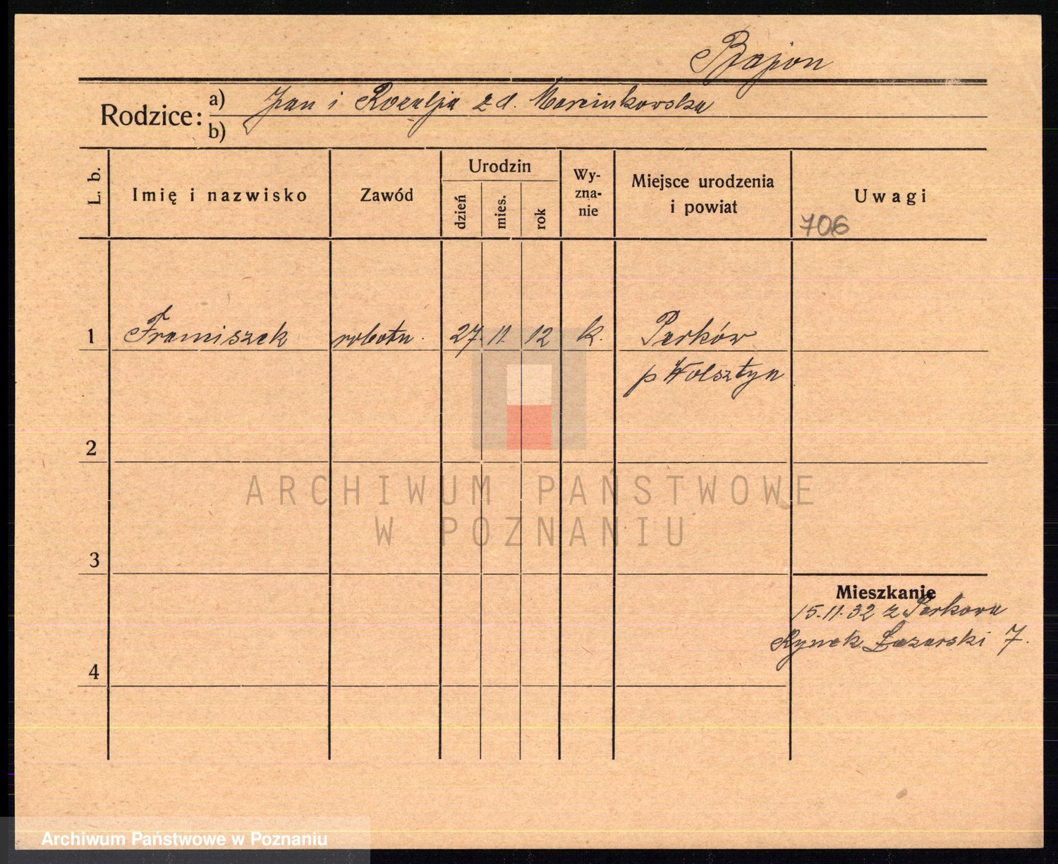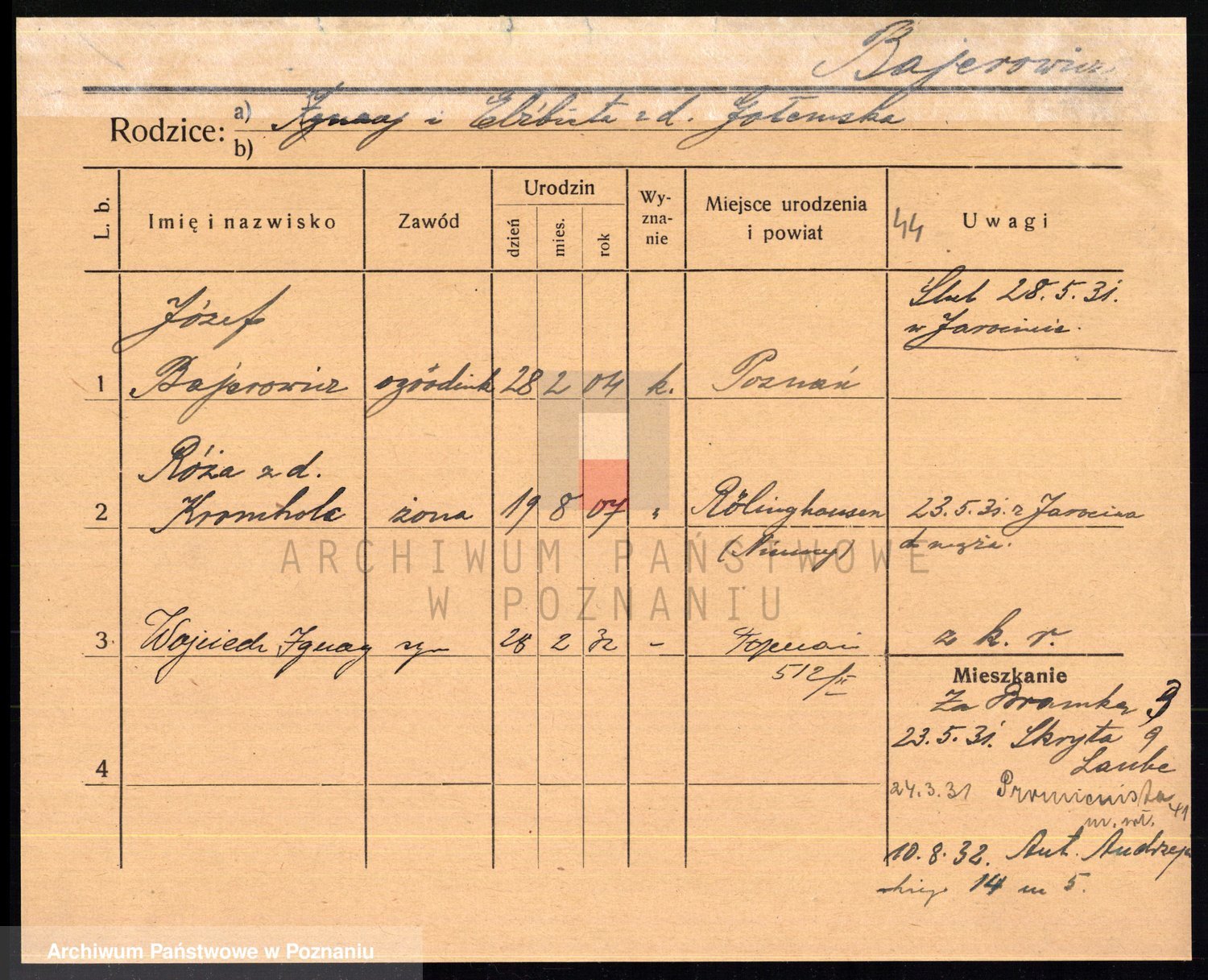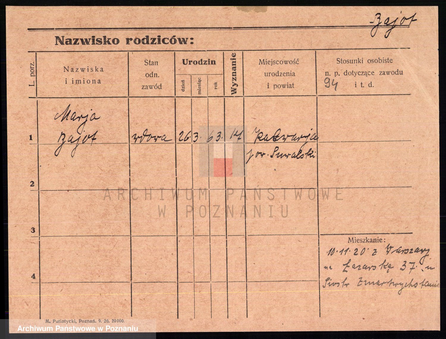 Podgląd karty osobowej dostępny jest po kliknięciu na nazwisko lub ikonkę karty. Można dokonywać powiększenia (ikony na górze) lub przechodzić między kolejnymi skanami (strzałki po bokach).