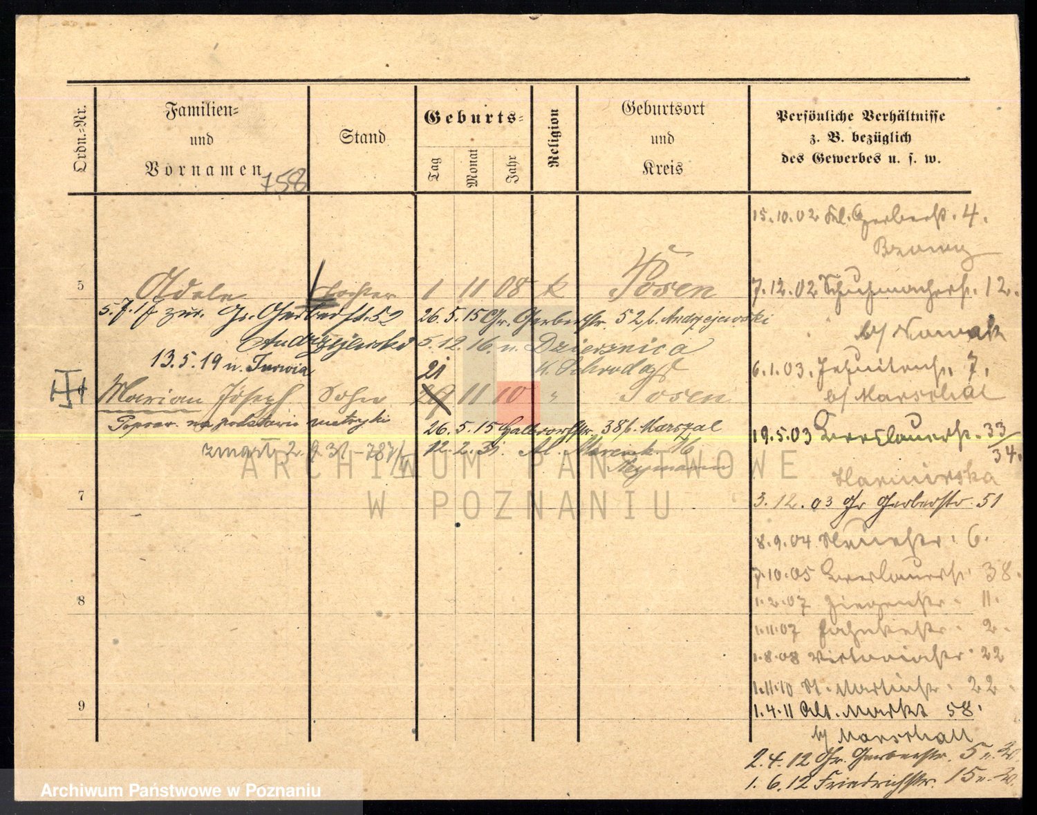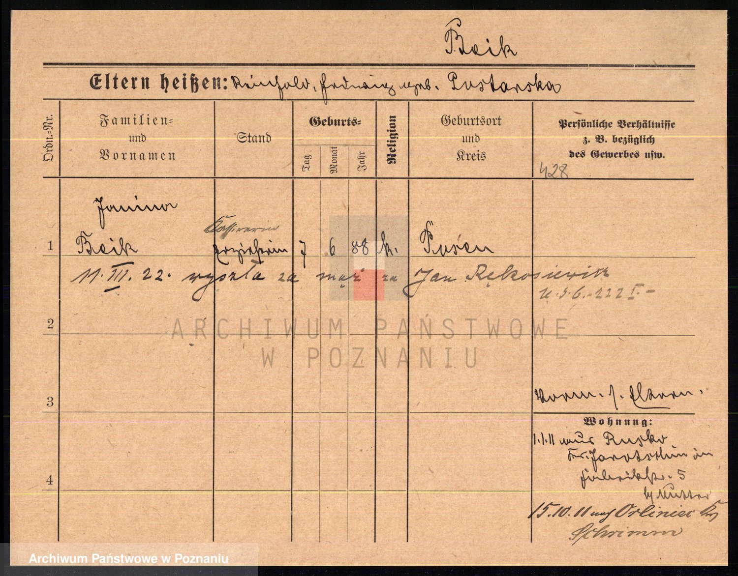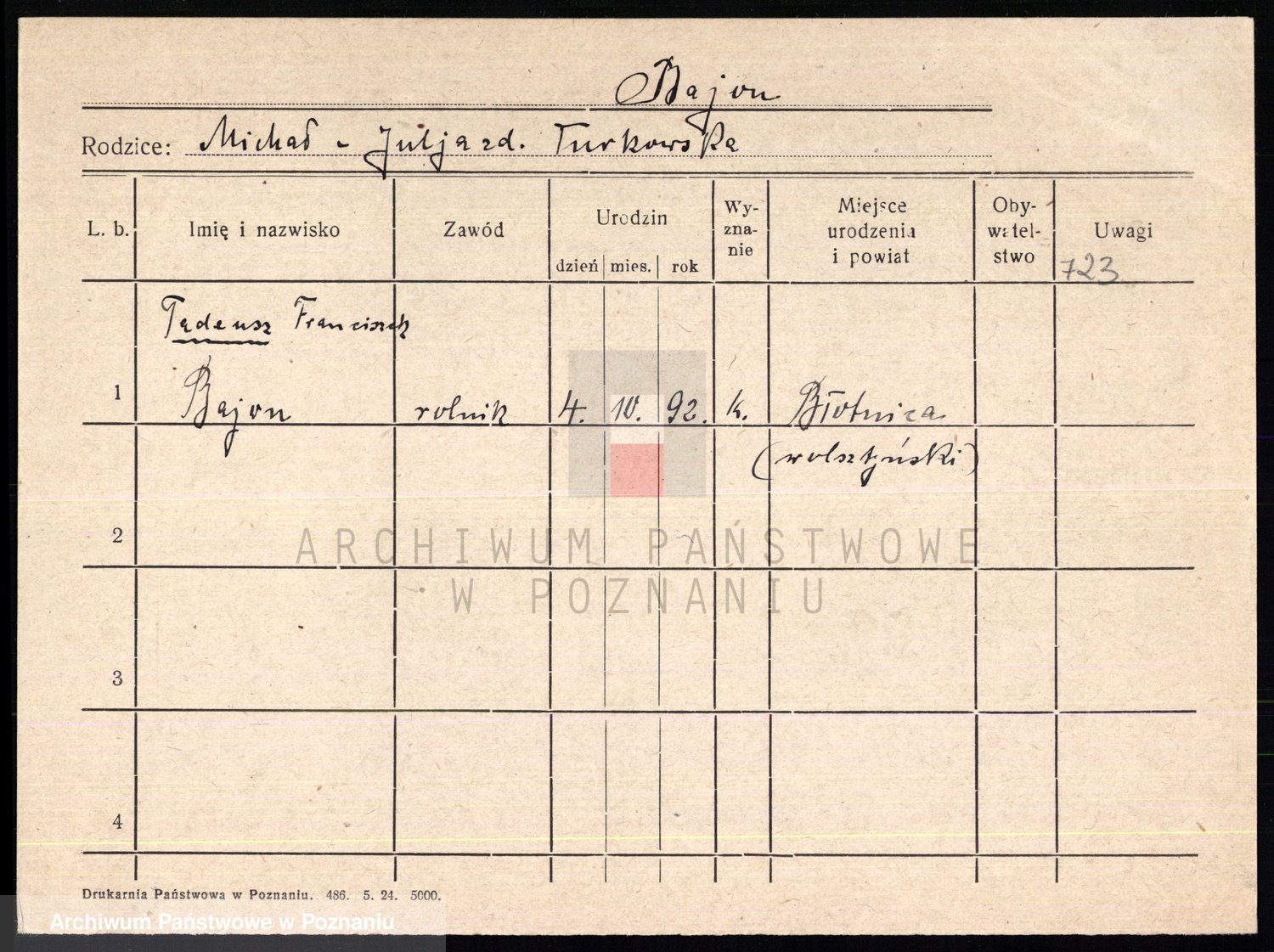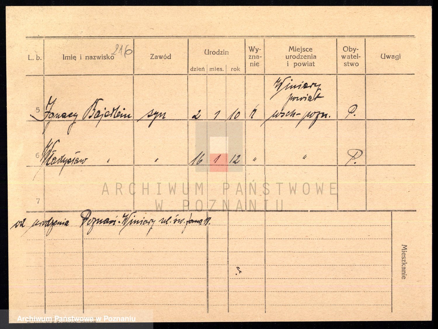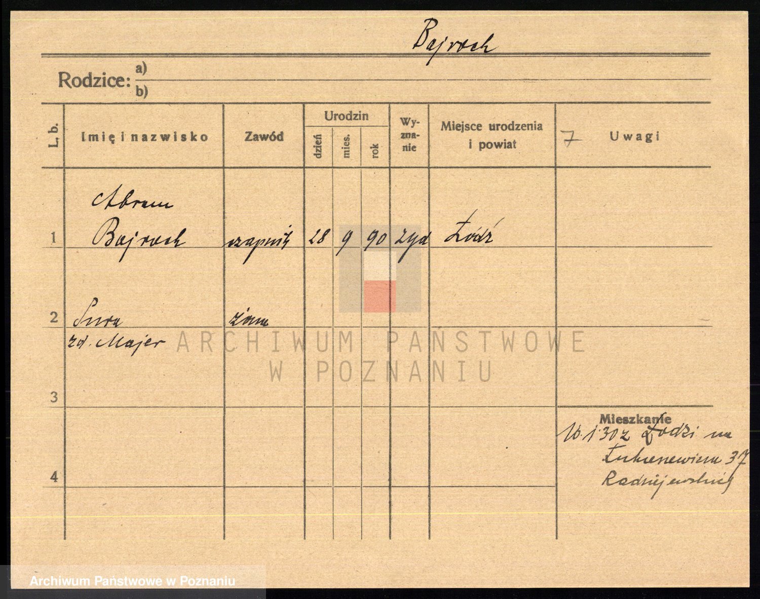 Podgląd karty osobowej dostępny jest po kliknięciu na nazwisko lub ikonkę karty. Można dokonywać powiększenia (ikony na górze) lub przechodzić między kolejnymi skanami (strzałki po bokach).