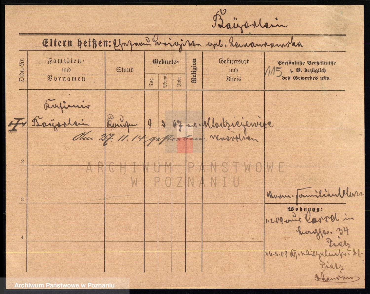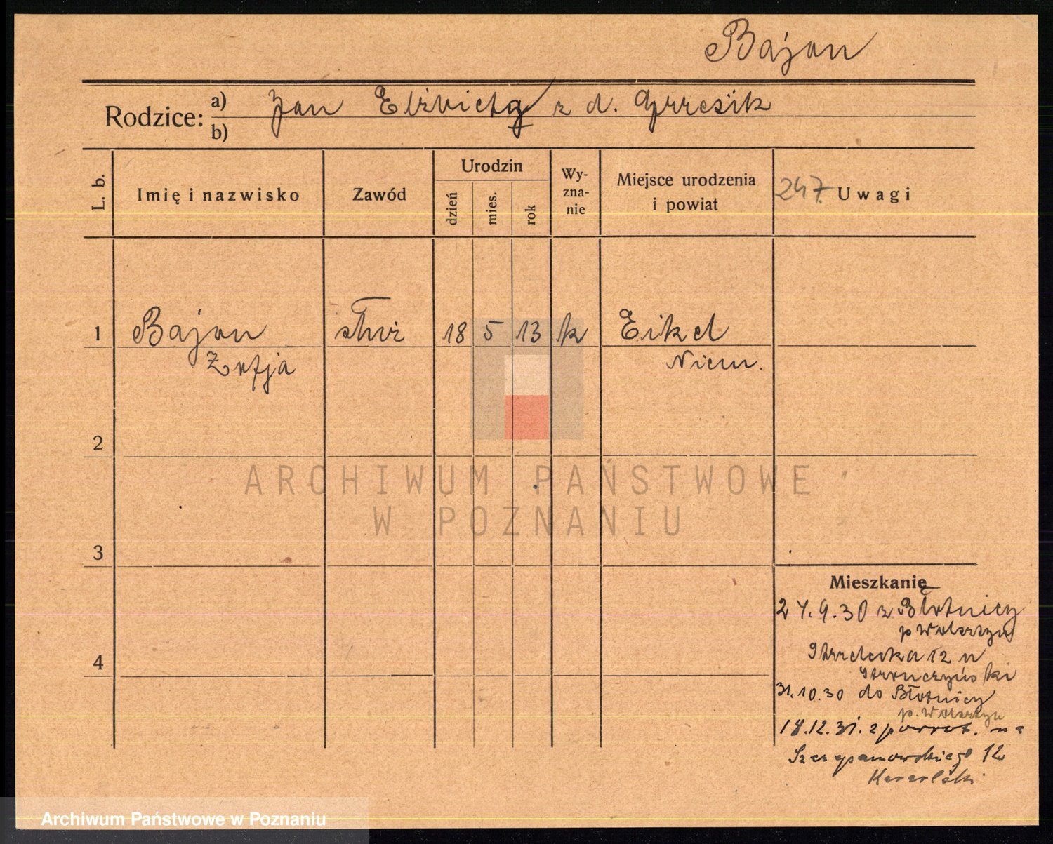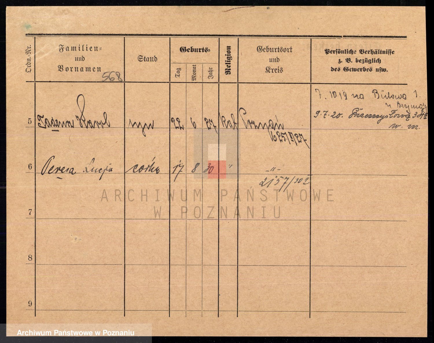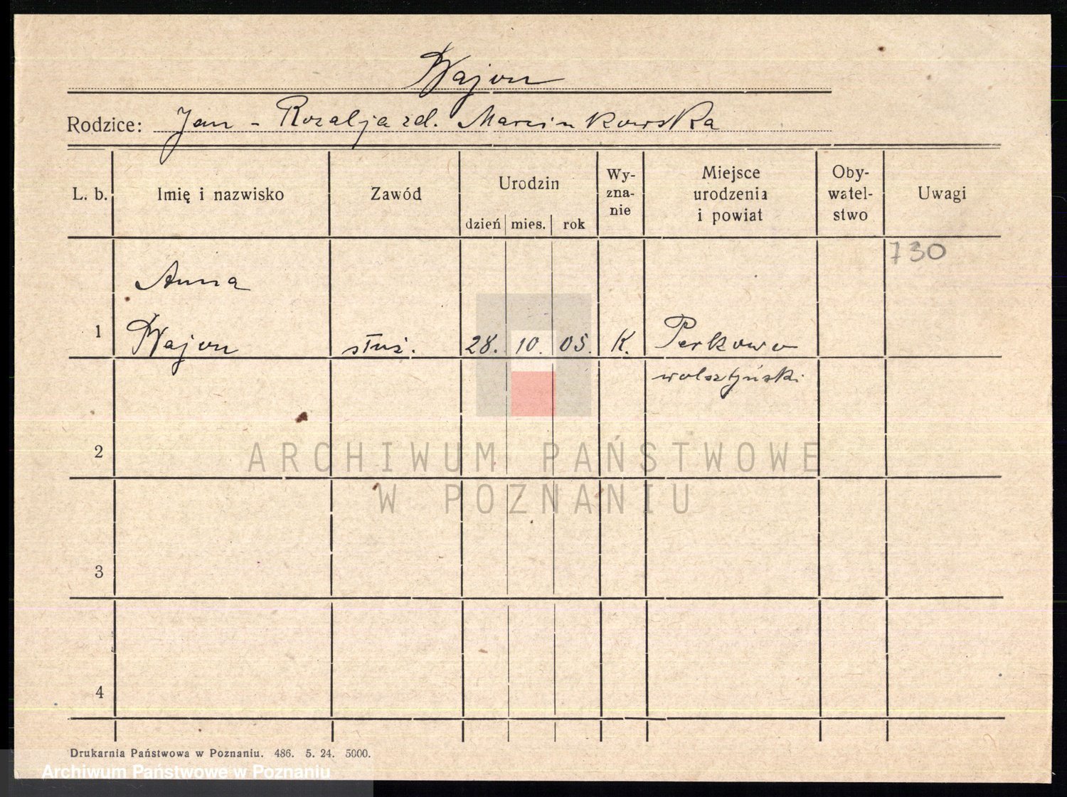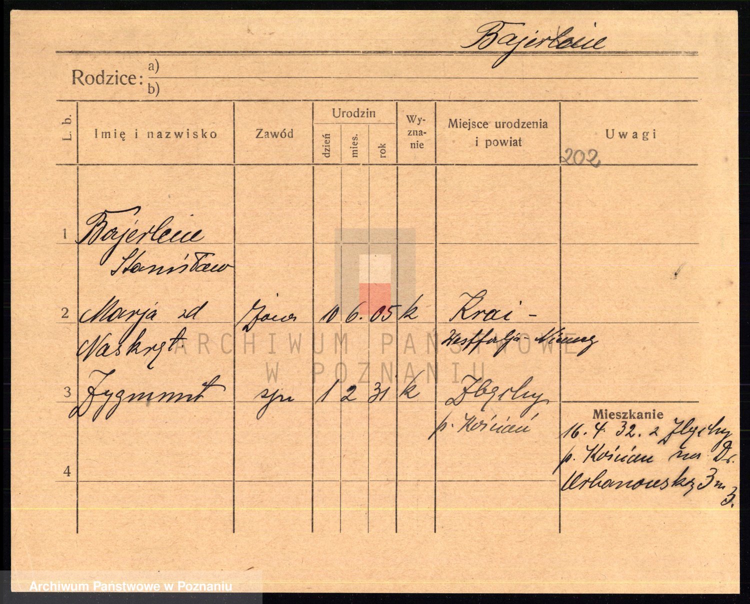 Podgląd karty osobowej dostępny jest po kliknięciu na nazwisko lub ikonkę karty. Można dokonywać powiększenia (ikony na górze) lub przechodzić między kolejnymi skanami (strzałki po bokach).
