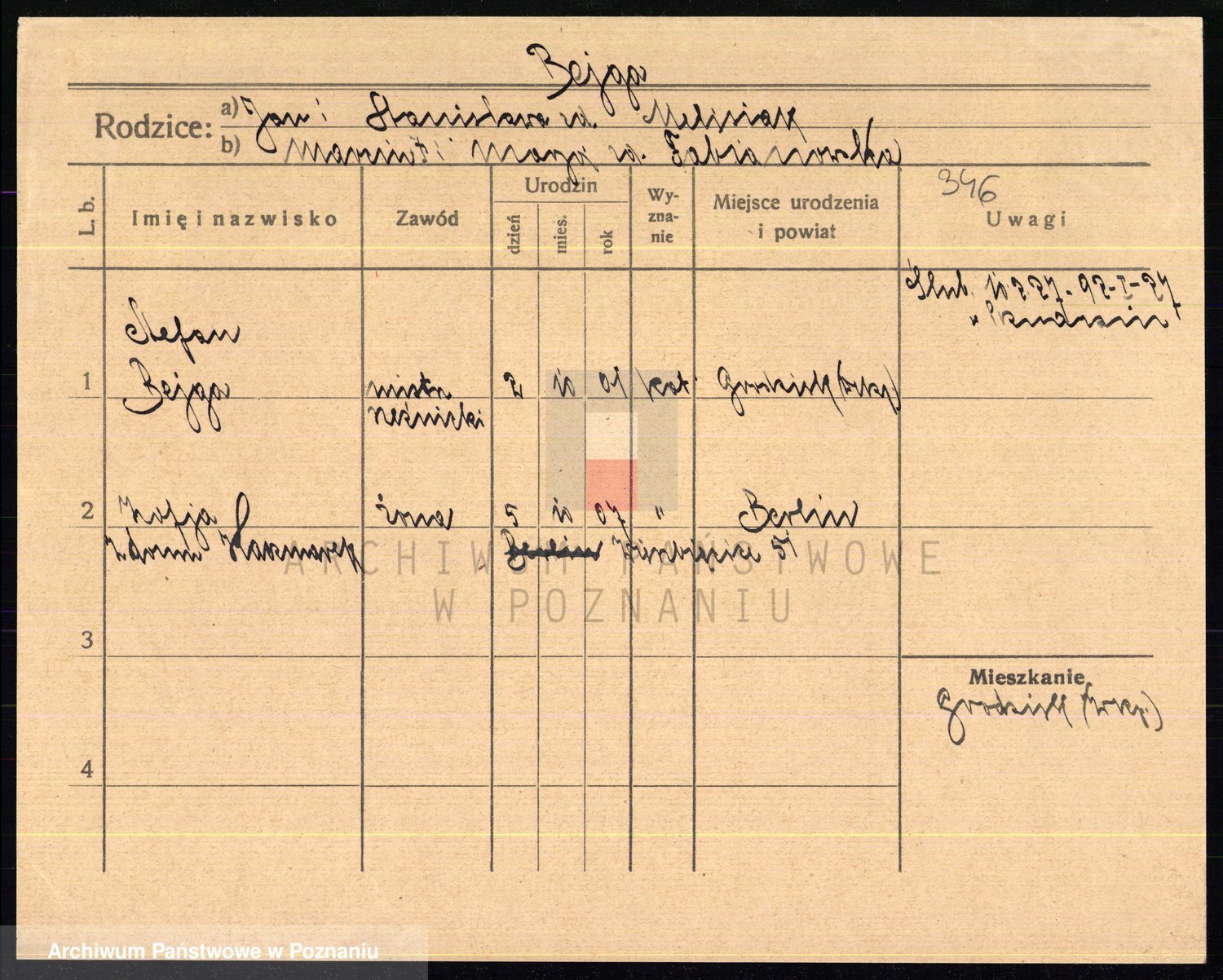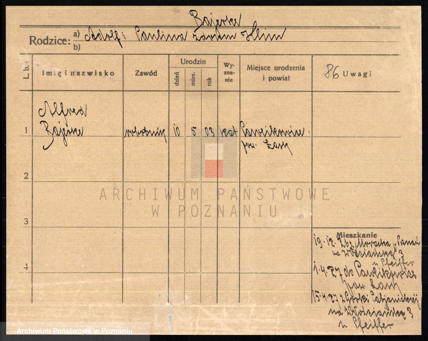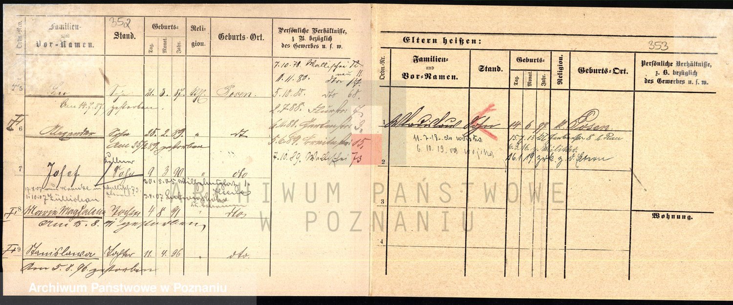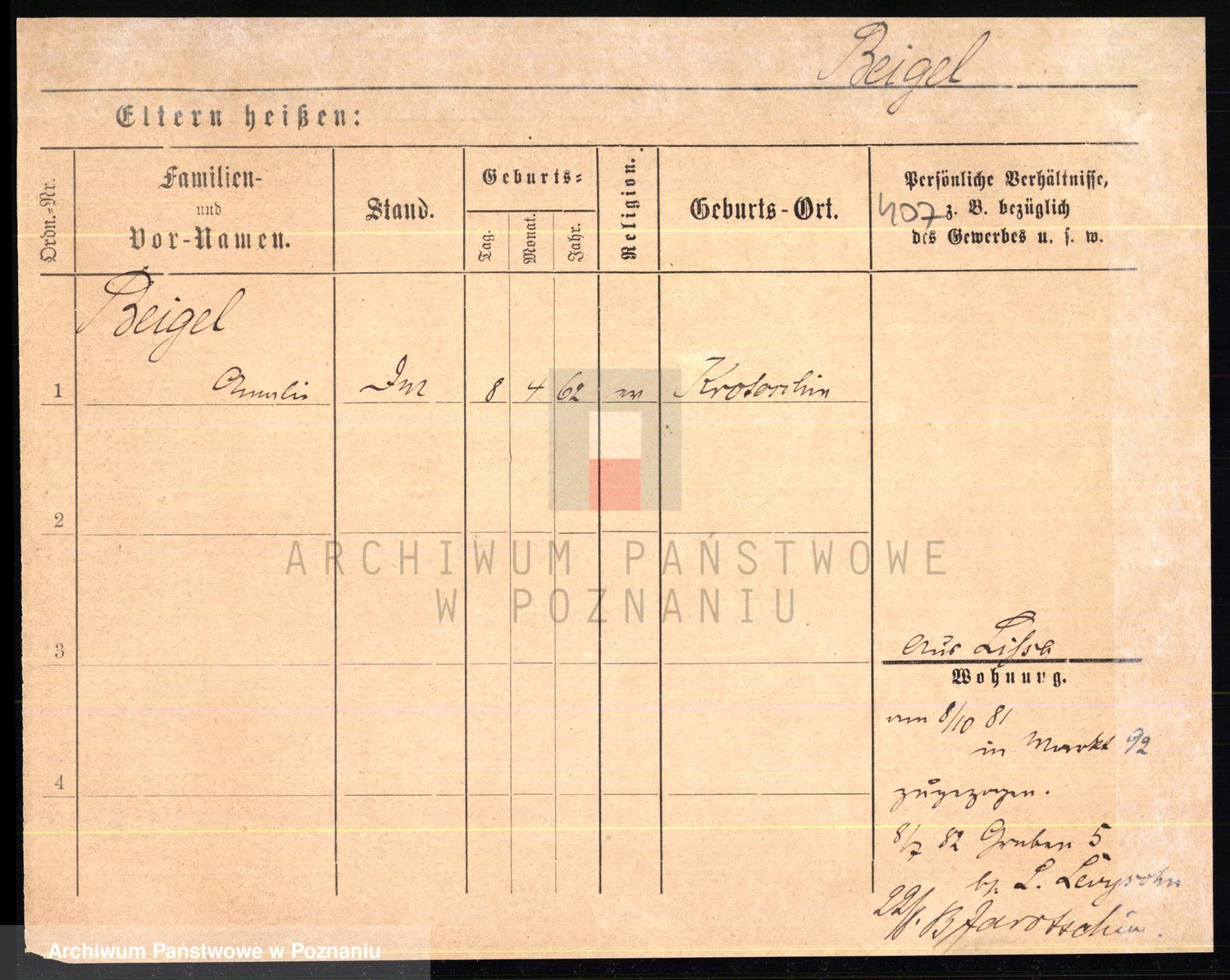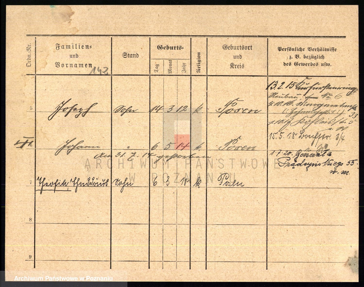 Podgląd karty osobowej dostępny jest po kliknięciu na nazwisko lub ikonkę karty. Można dokonywać powiększenia (ikony na górze) lub przechodzić między kolejnymi skanami (strzałki po bokach).