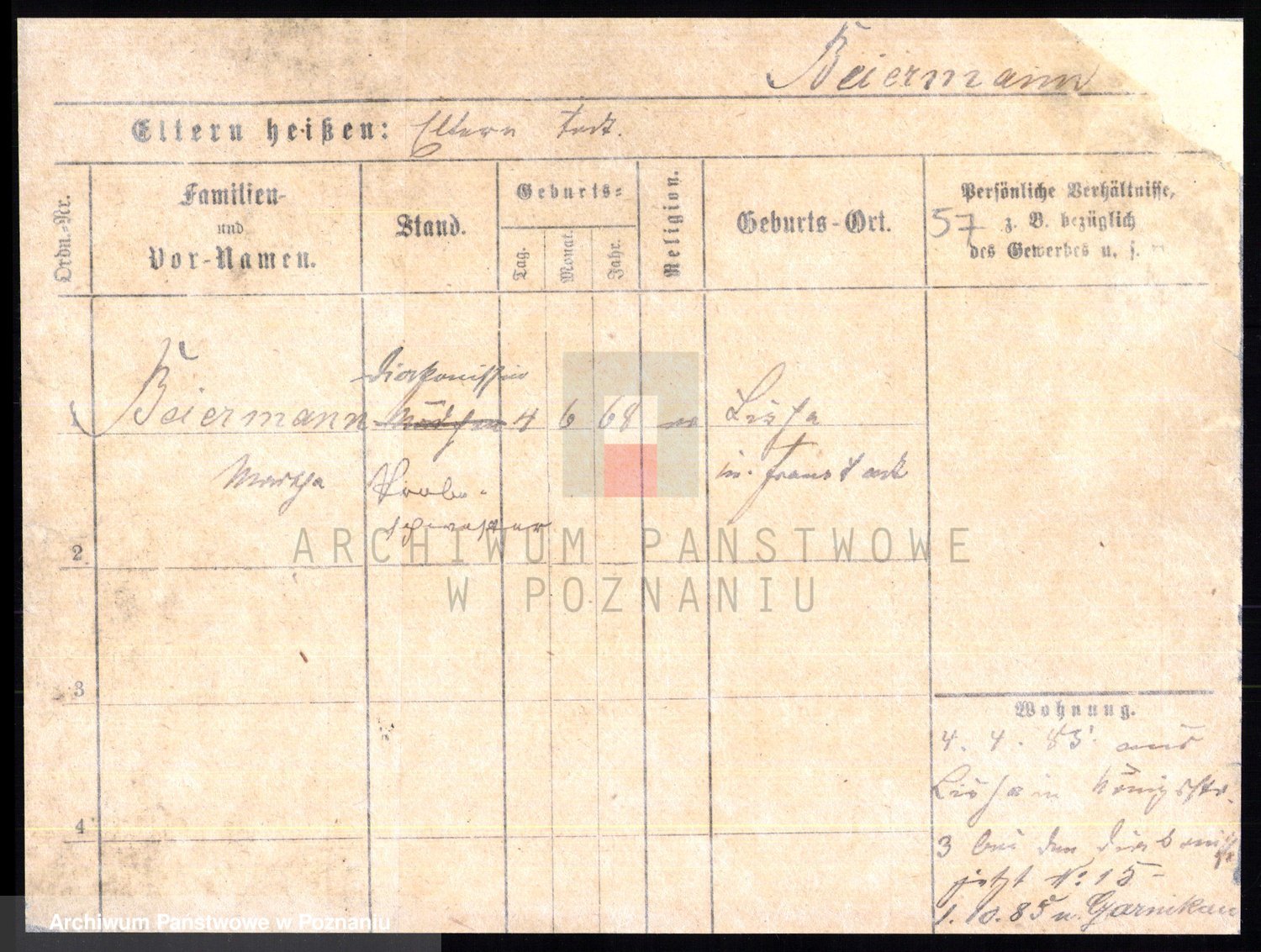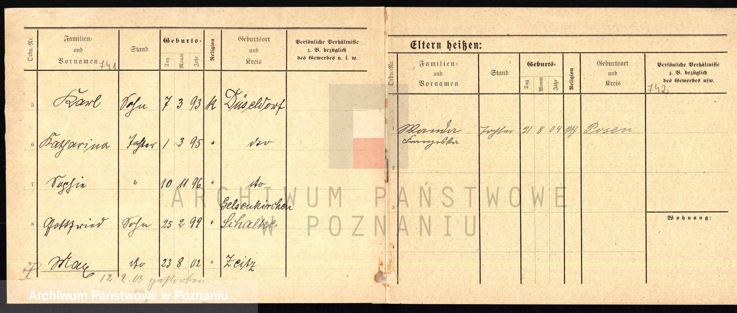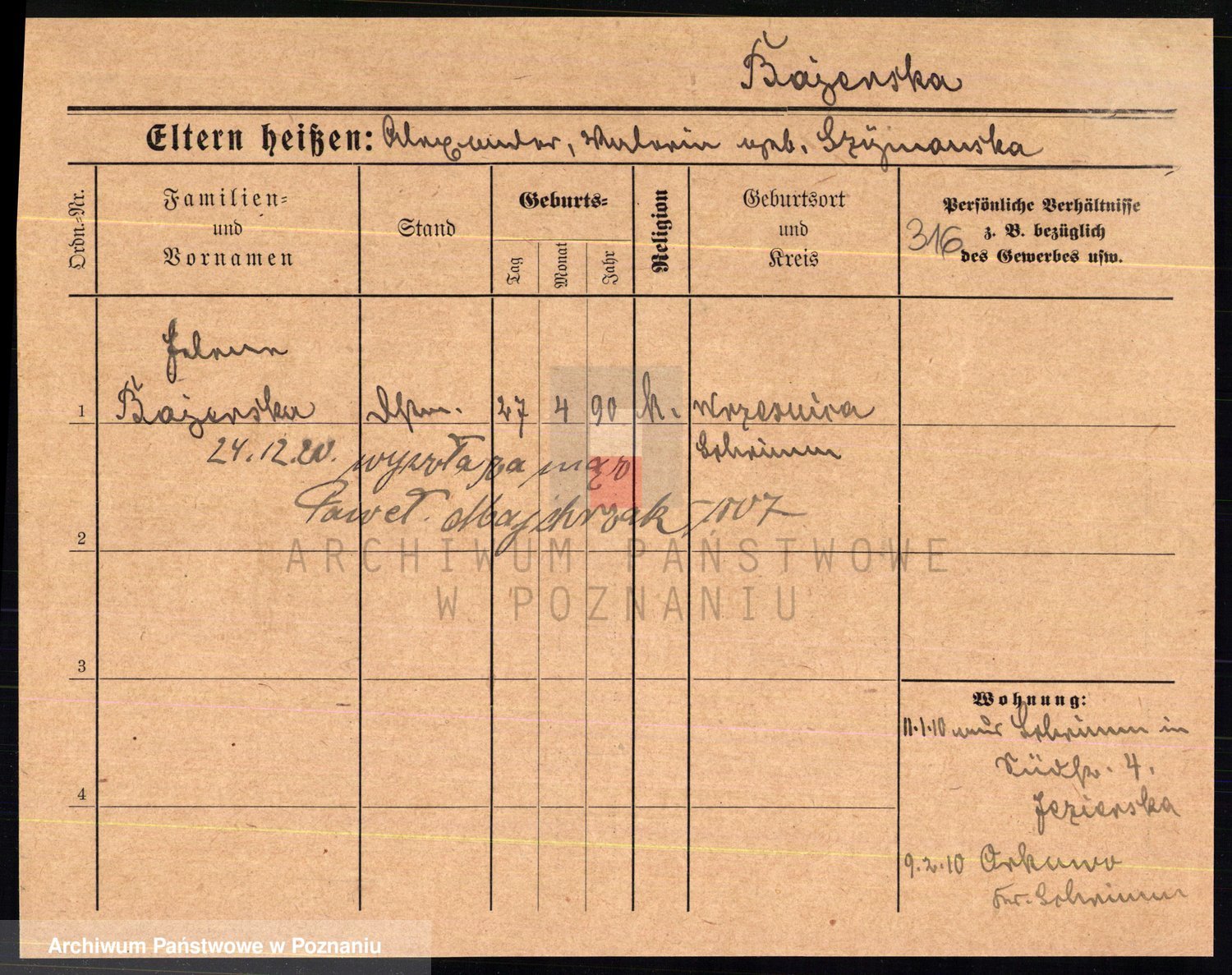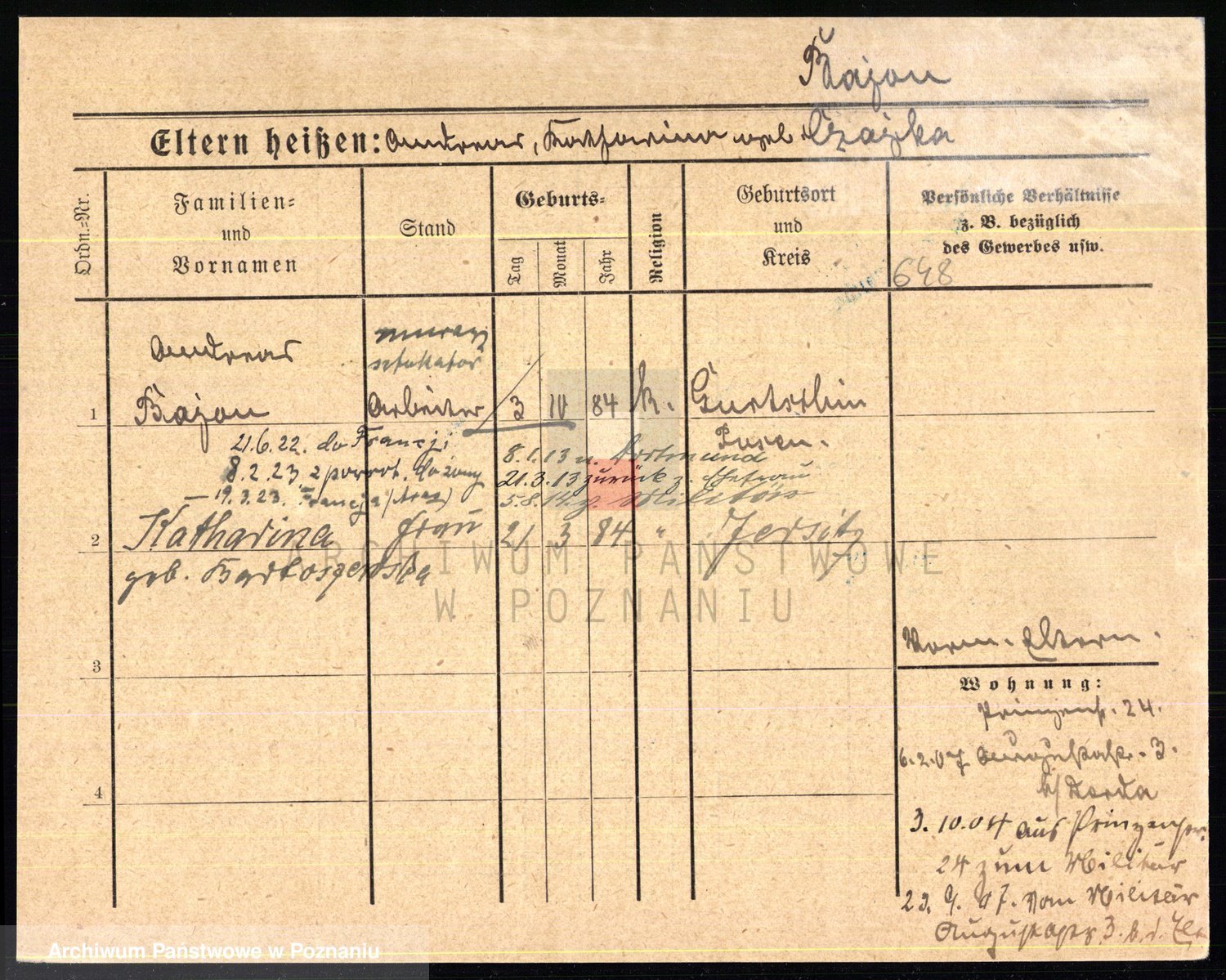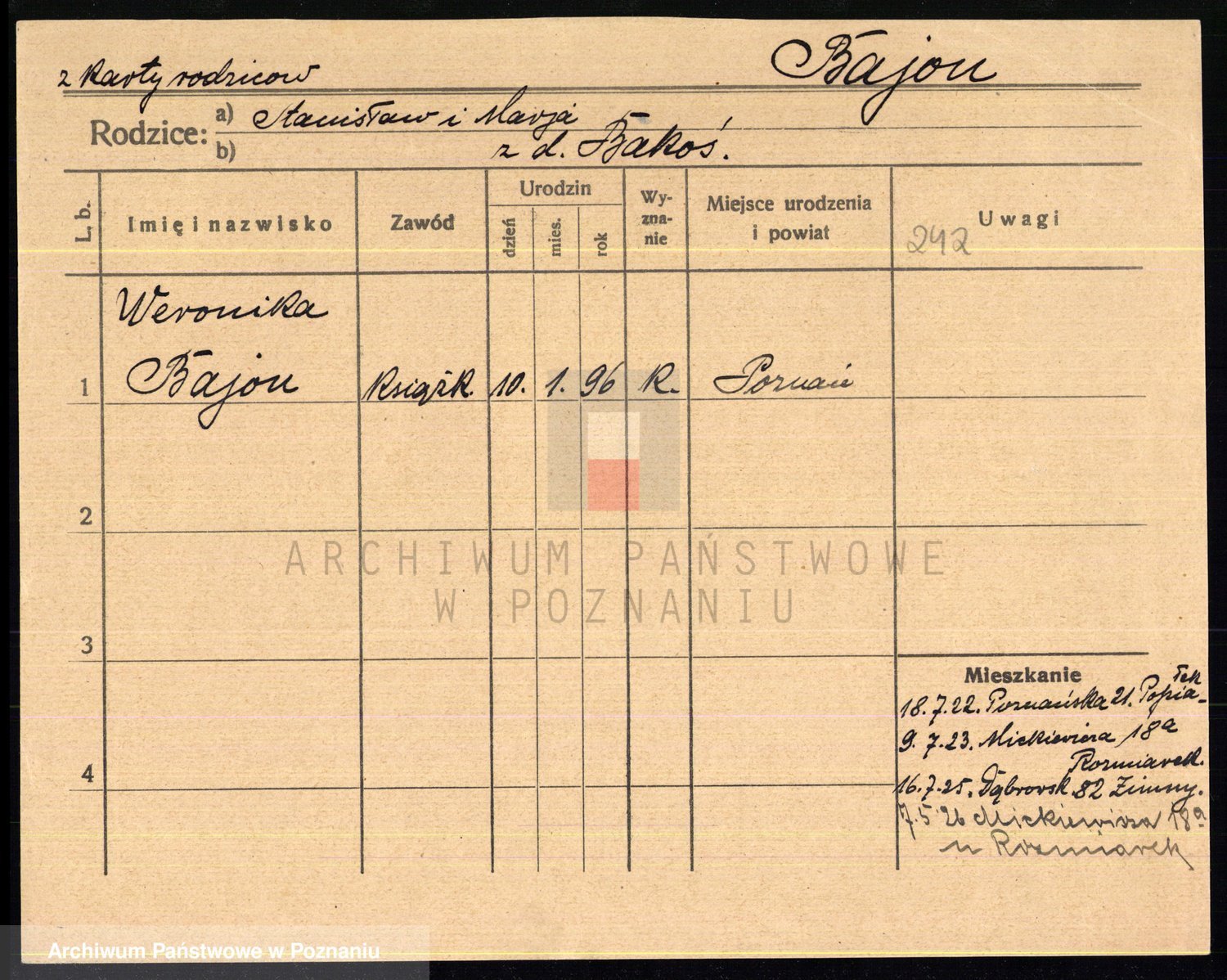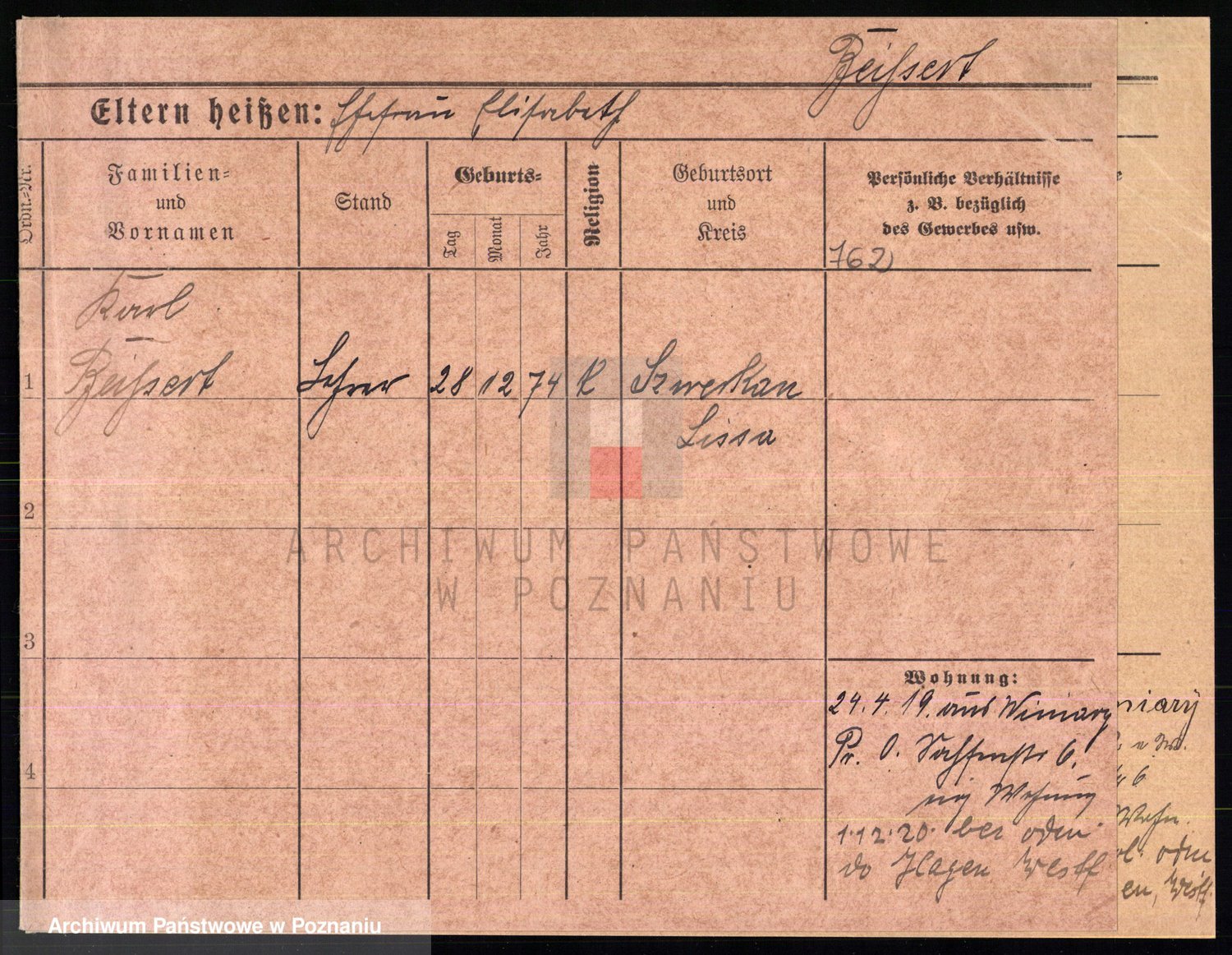 Podgląd karty osobowej dostępny jest po kliknięciu na nazwisko lub ikonkę karty. Można dokonywać powiększenia (ikony na górze) lub przechodzić między kolejnymi skanami (strzałki po bokach).