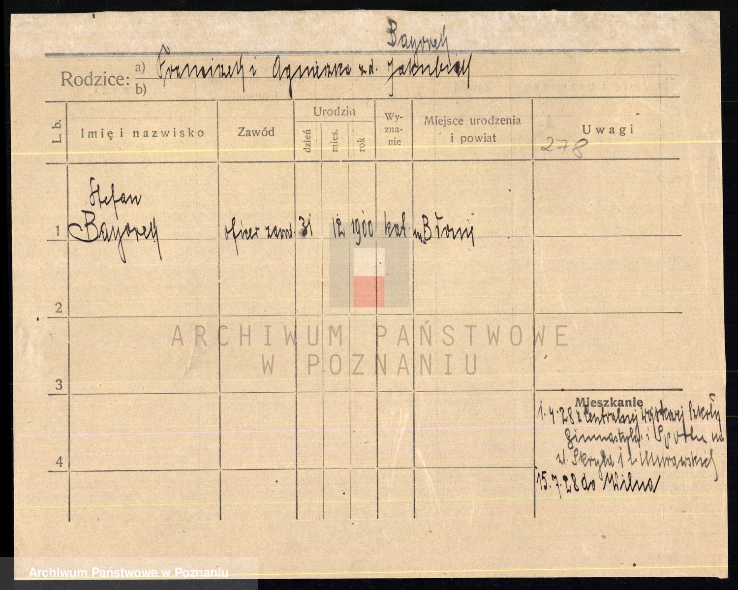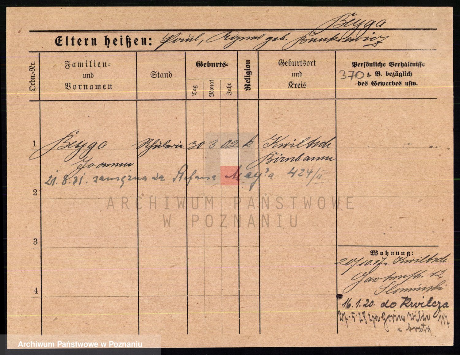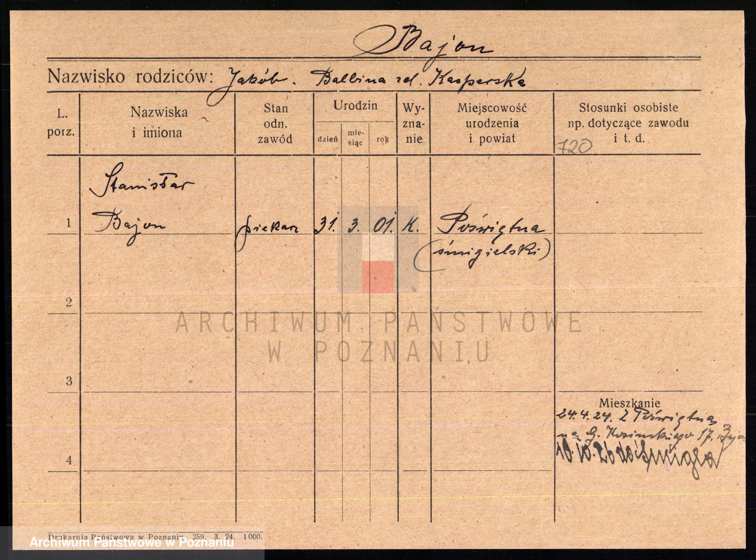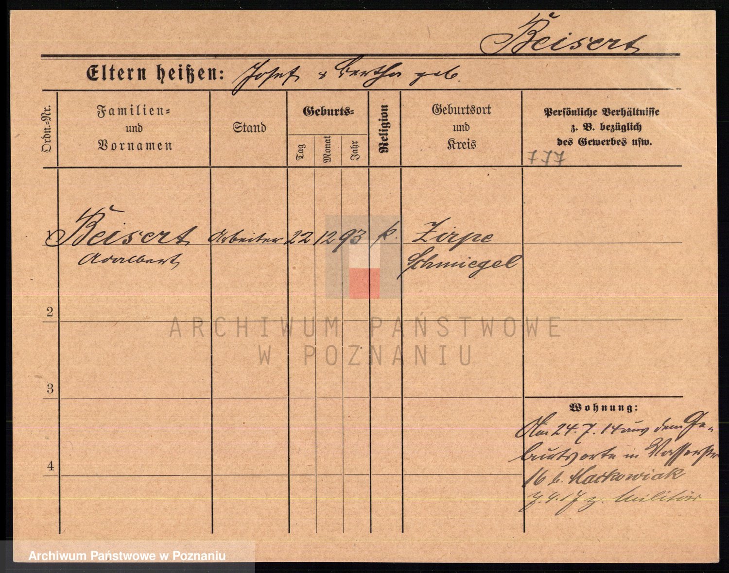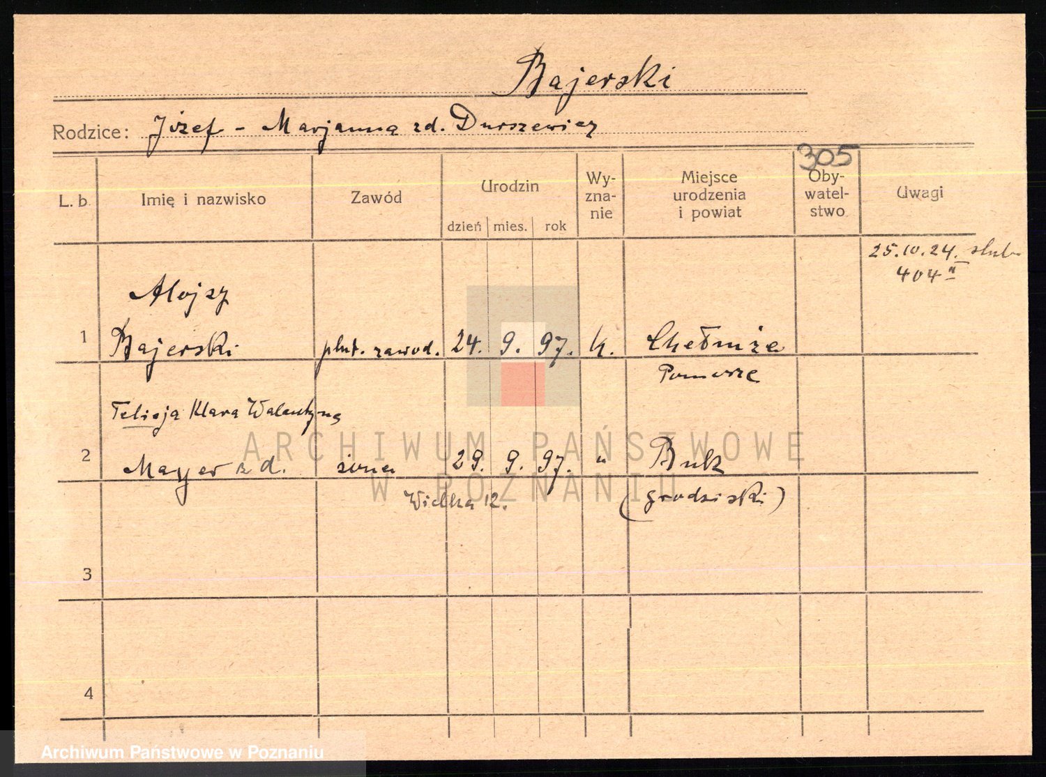Podgląd karty osobowej dostępny jest po kliknięciu na nazwisko lub ikonkę karty. Można dokonywać powiększenia (ikony na górze) lub przechodzić między kolejnymi skanami (strzałki po bokach).