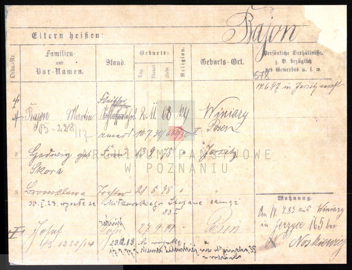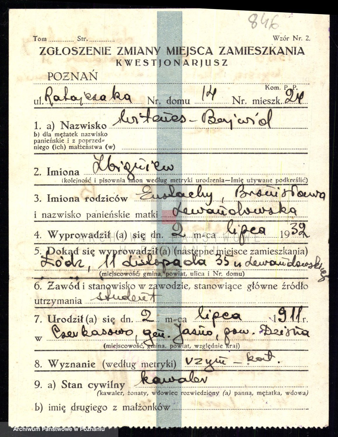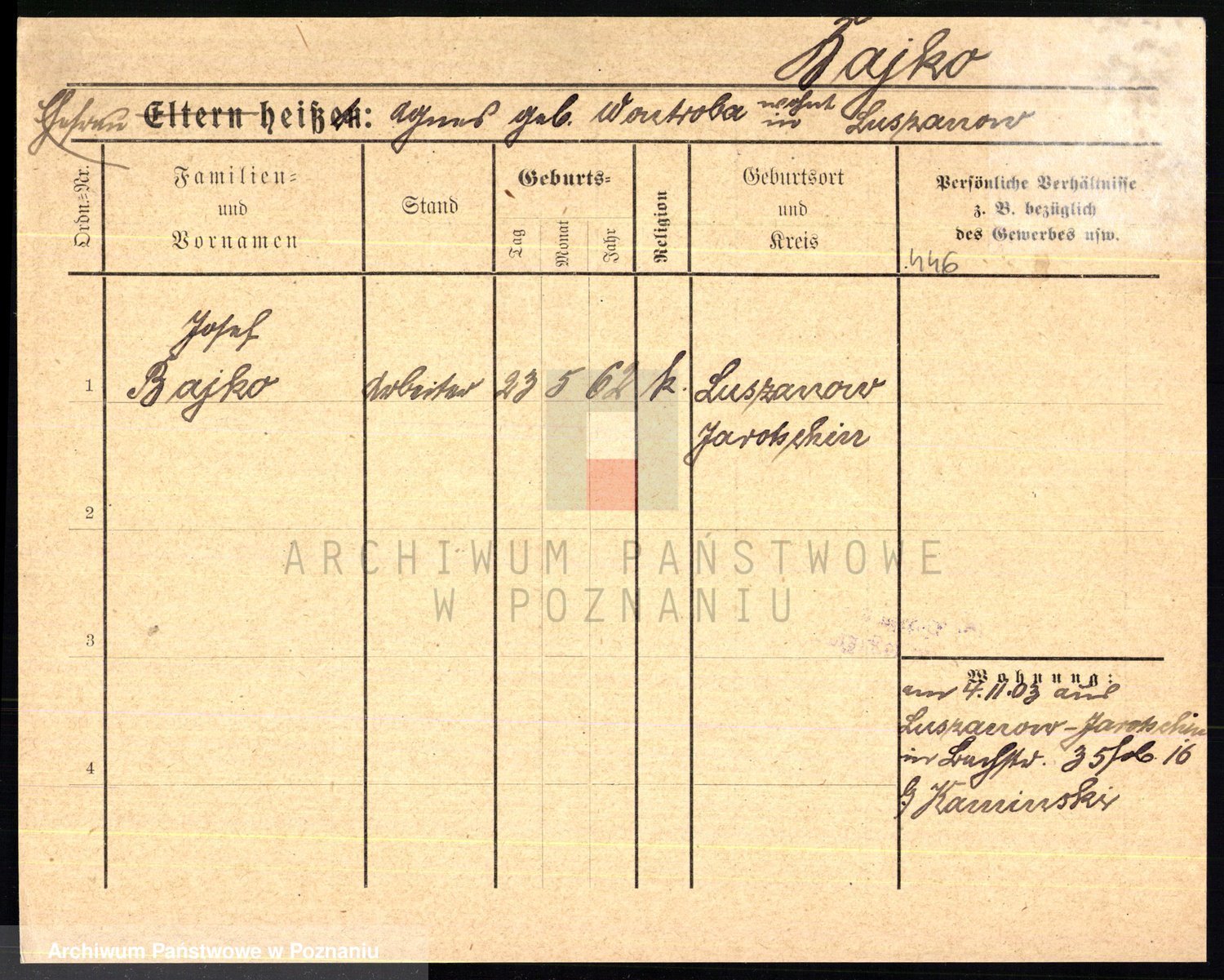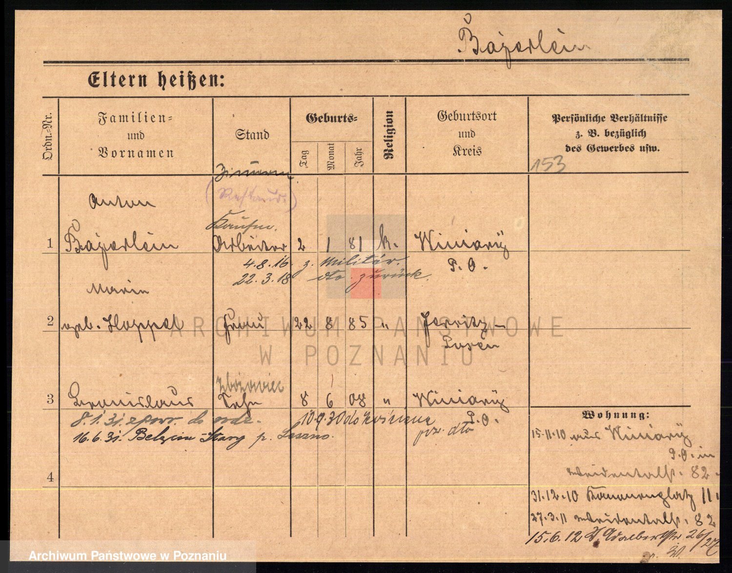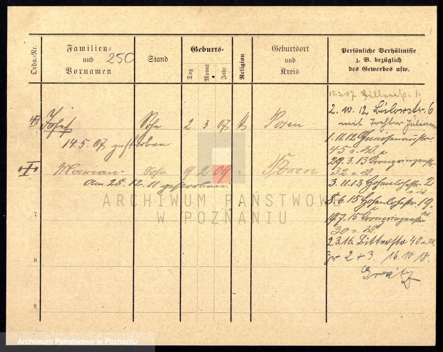 Podgląd karty osobowej dostępny jest po kliknięciu na nazwisko lub ikonkę karty. Można dokonywać powiększenia (ikony na górze) lub przechodzić między kolejnymi skanami (strzałki po bokach).