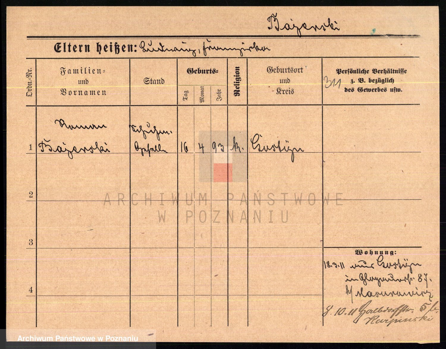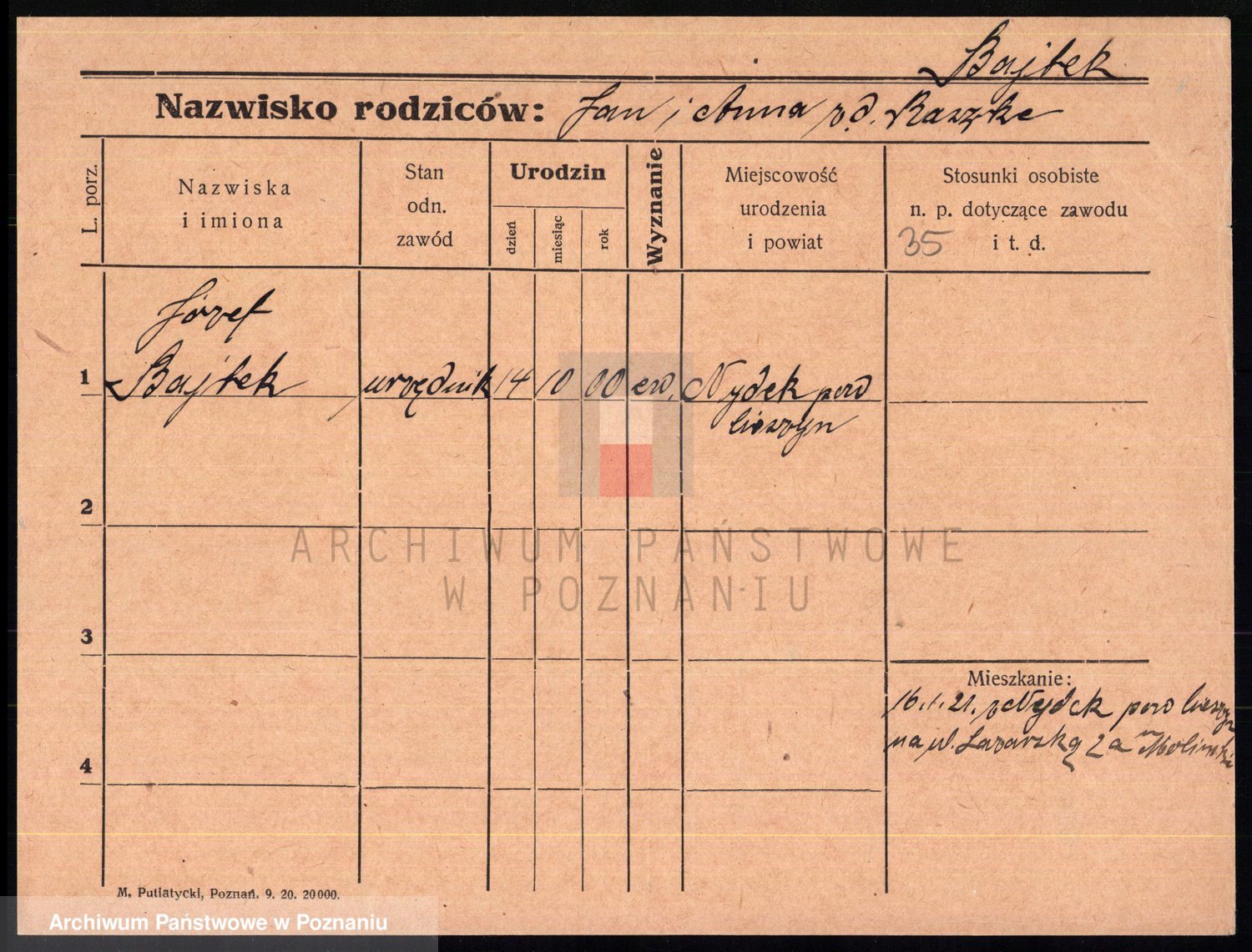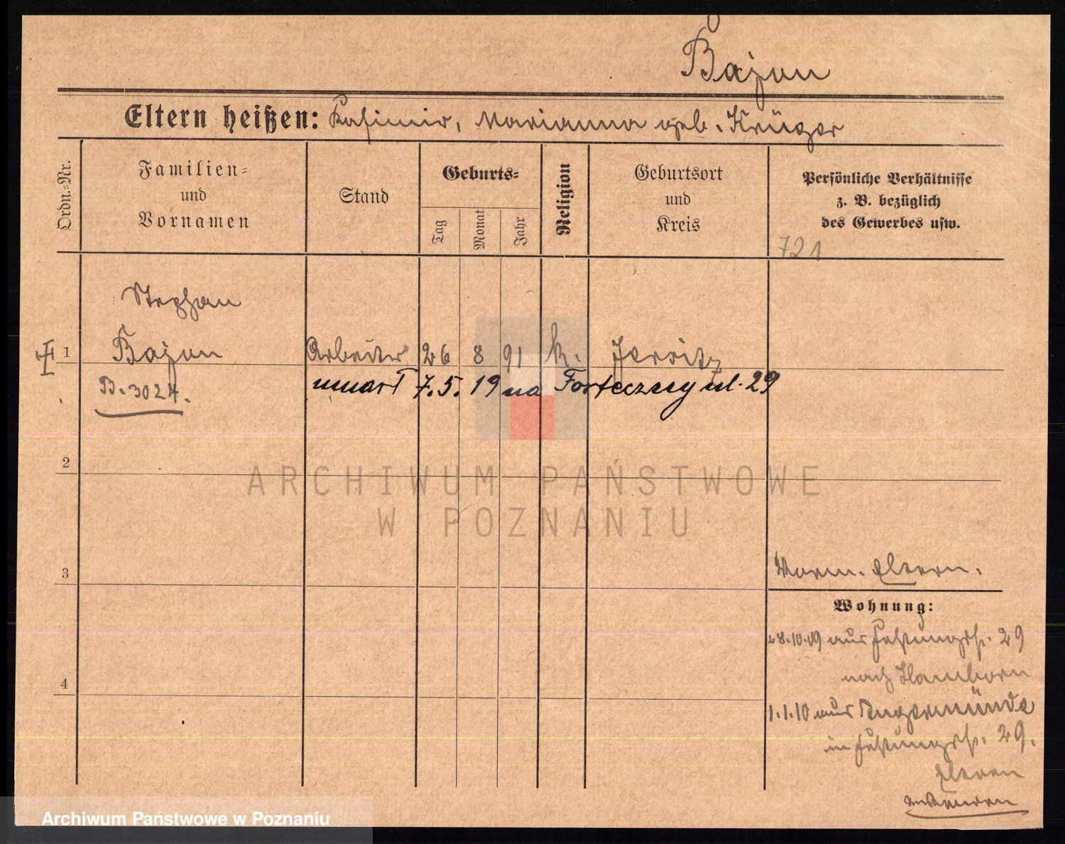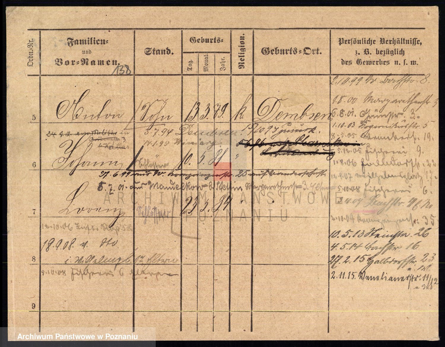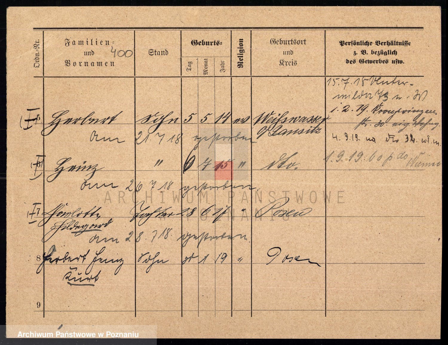 Podgląd karty osobowej dostępny jest po kliknięciu na nazwisko lub ikonkę karty. Można dokonywać powiększenia (ikony na górze) lub przechodzić między kolejnymi skanami (strzałki po bokach).