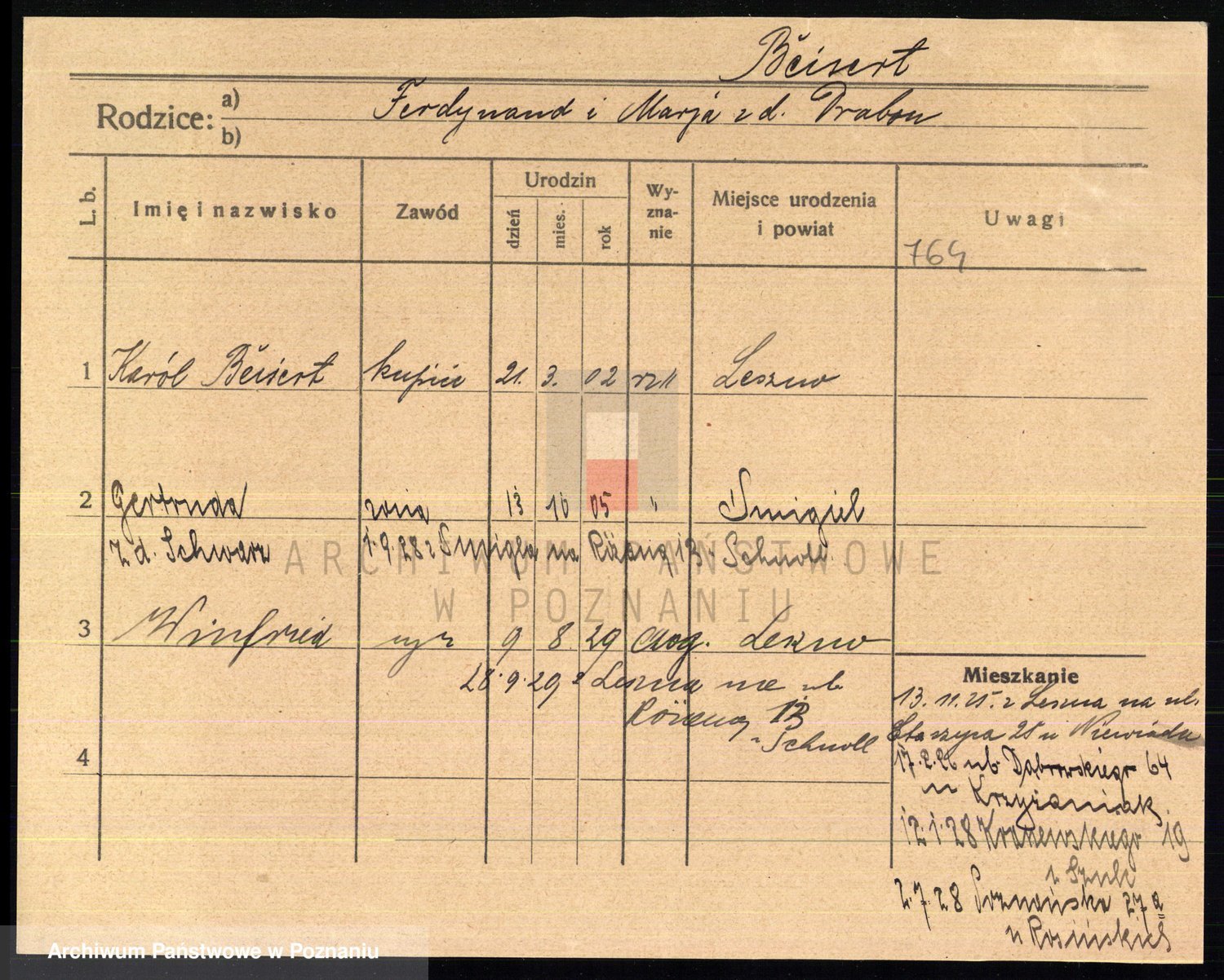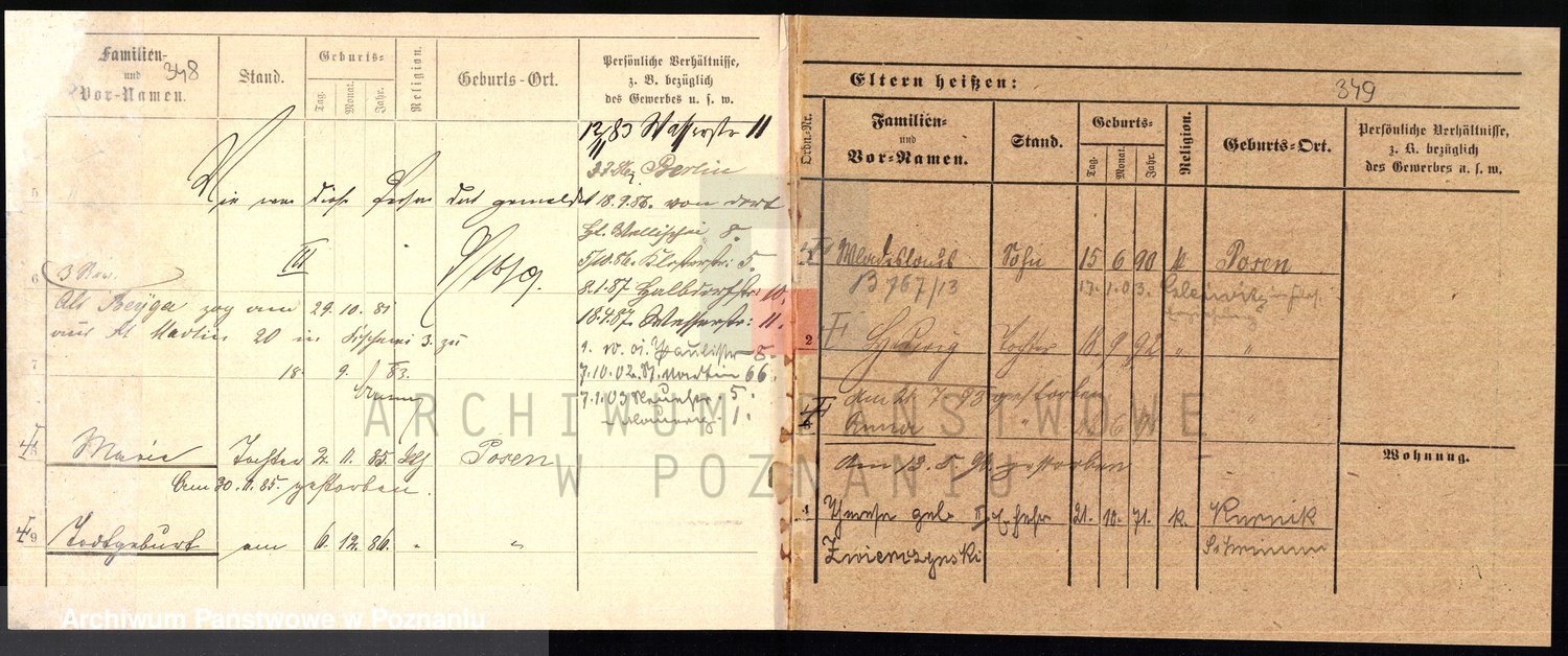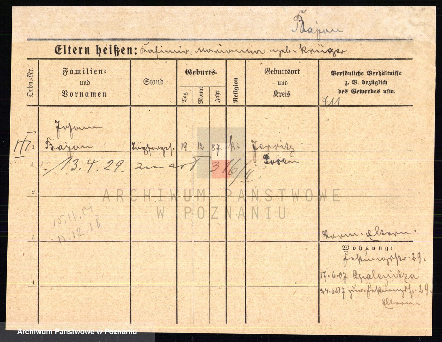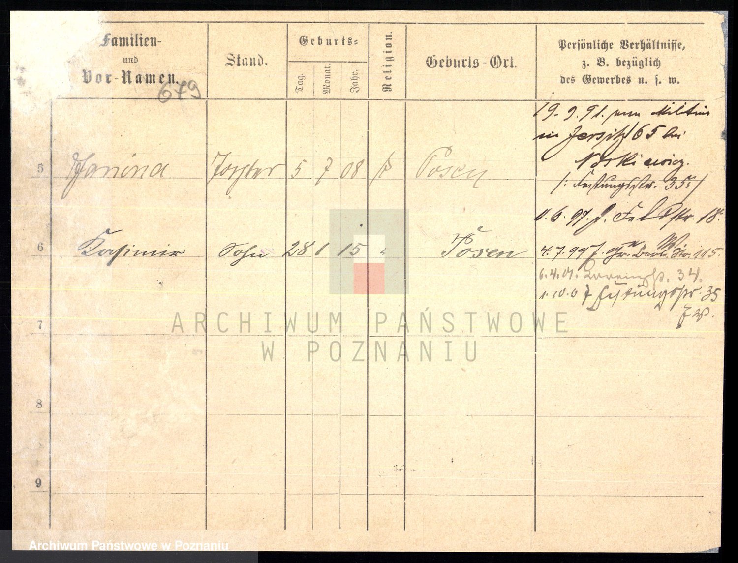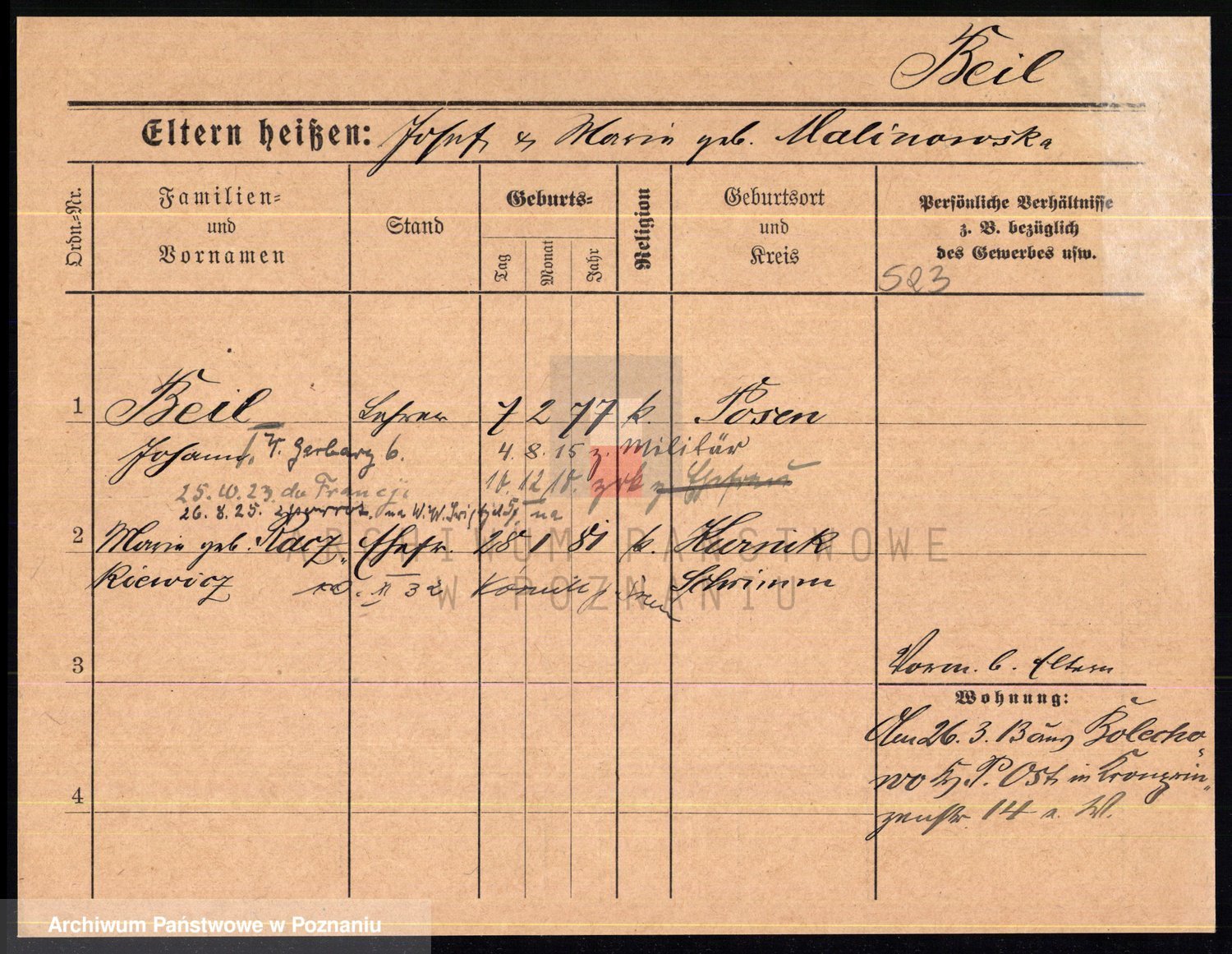 Podgląd karty osobowej dostępny jest po kliknięciu na nazwisko lub ikonkę karty. Można dokonywać powiększenia (ikony na górze) lub przechodzić między kolejnymi skanami (strzałki po bokach).