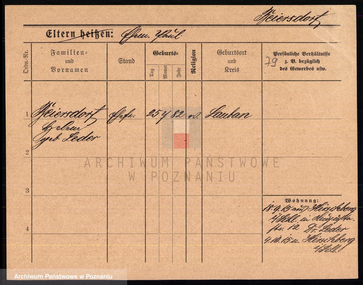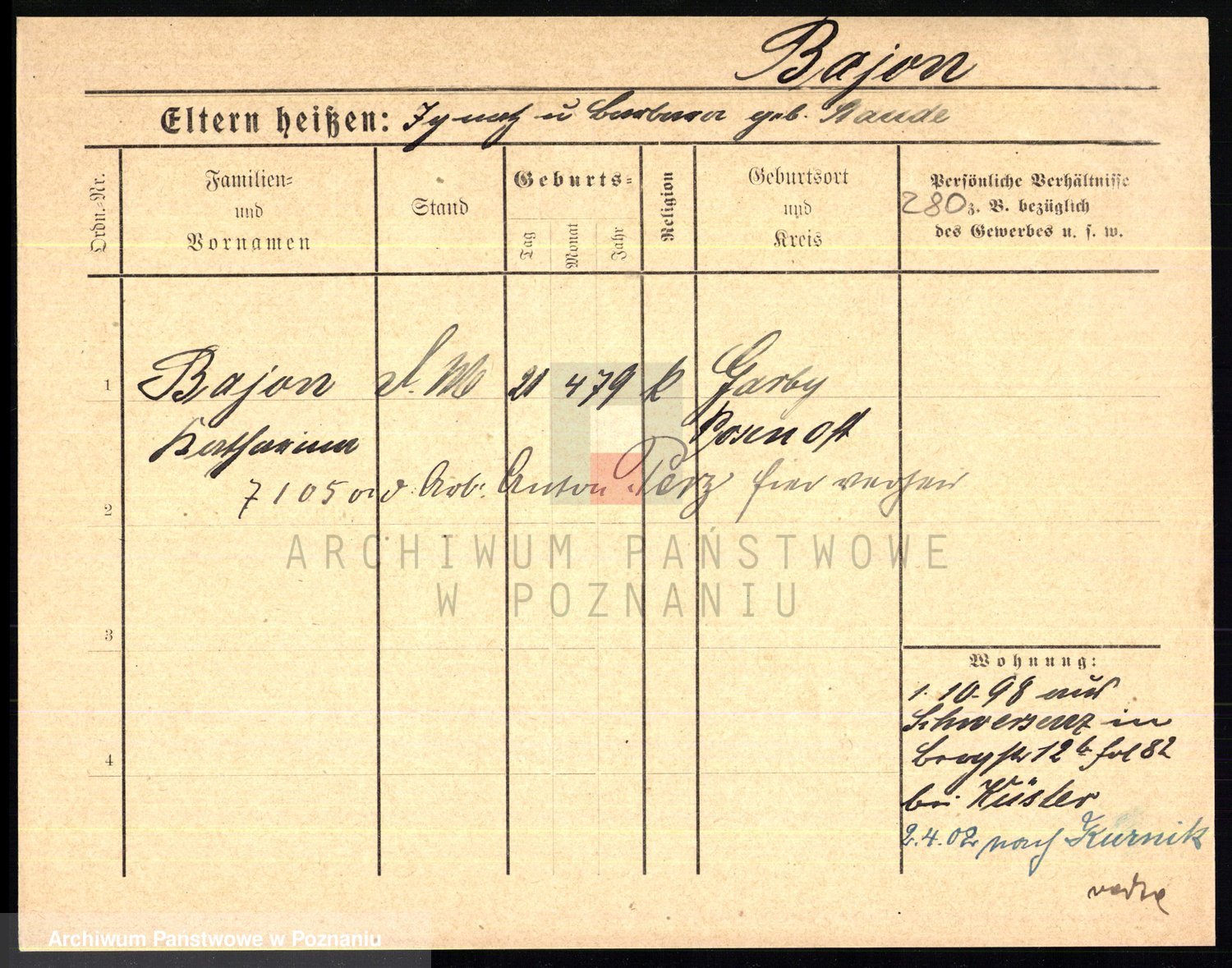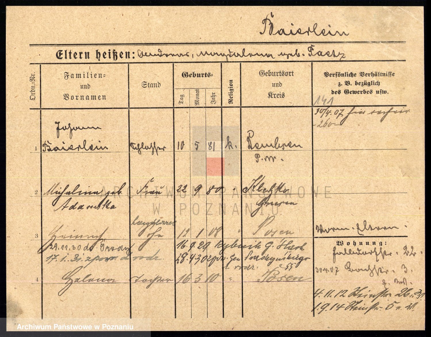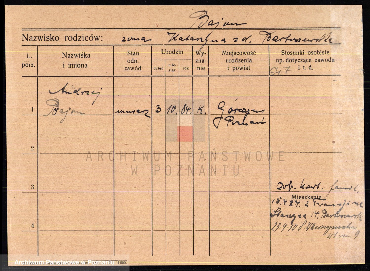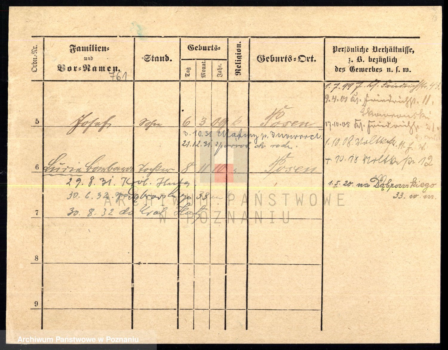 Podgląd karty osobowej dostępny jest po kliknięciu na nazwisko lub ikonkę karty. Można dokonywać powiększenia (ikony na górze) lub przechodzić między kolejnymi skanami (strzałki po bokach).