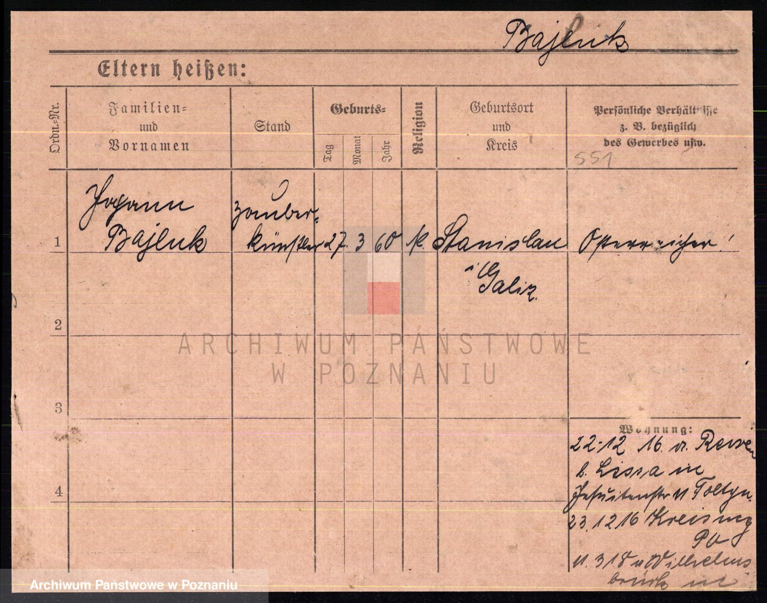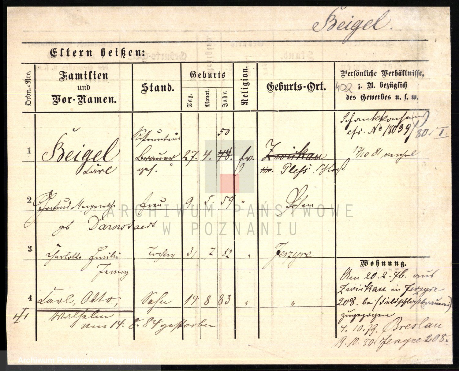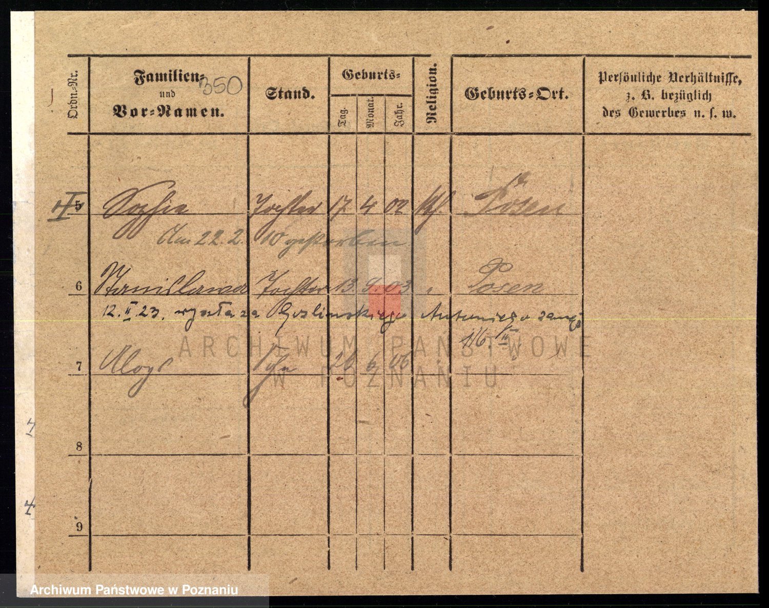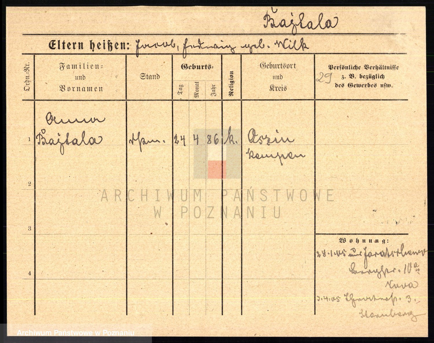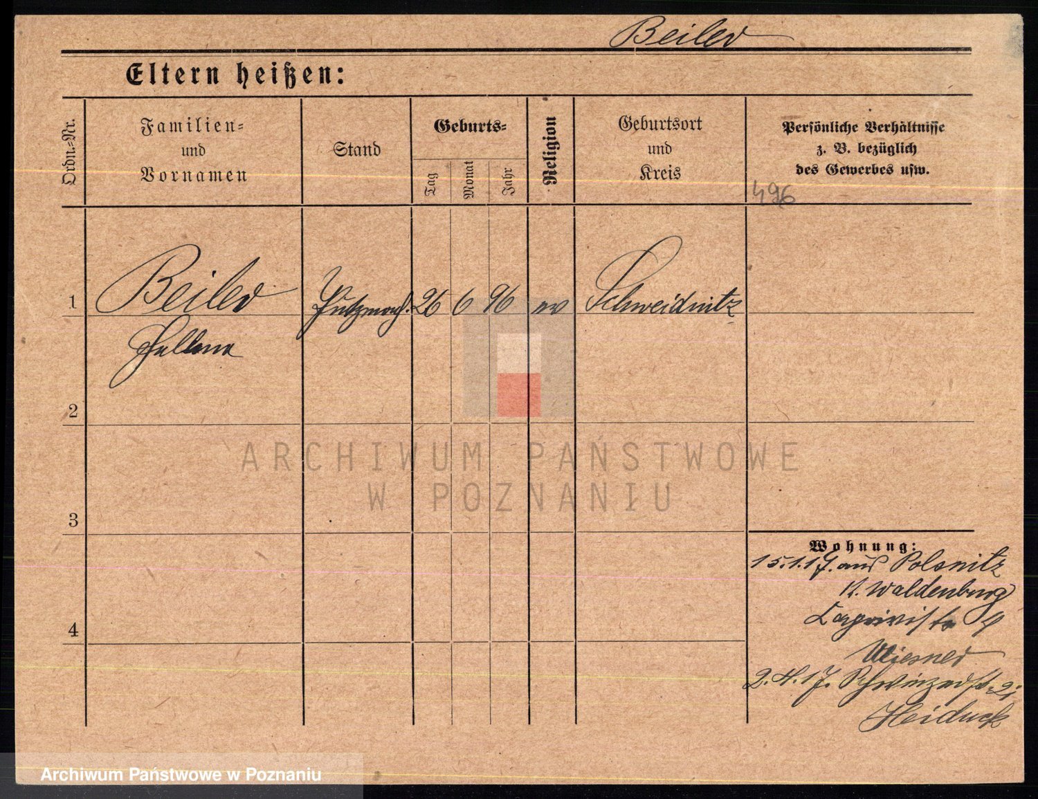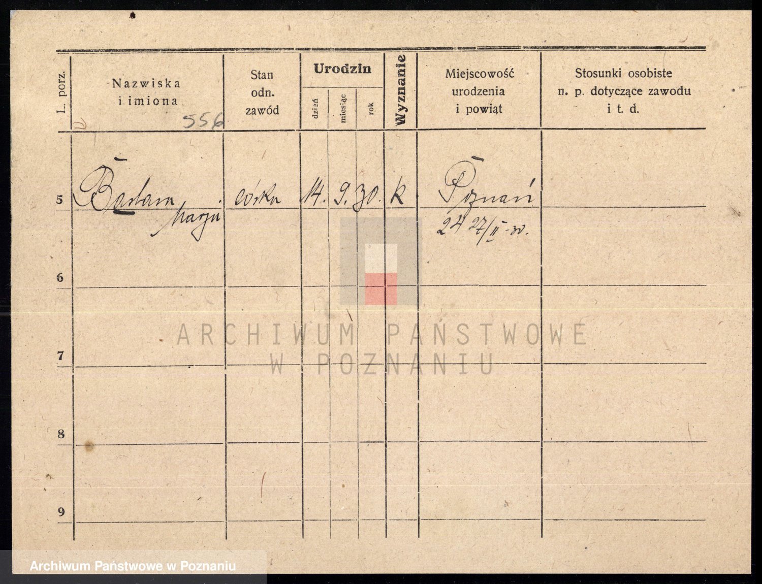 Podgląd karty osobowej dostępny jest po kliknięciu na nazwisko lub ikonkę karty. Można dokonywać powiększenia (ikony na górze) lub przechodzić między kolejnymi skanami (strzałki po bokach).