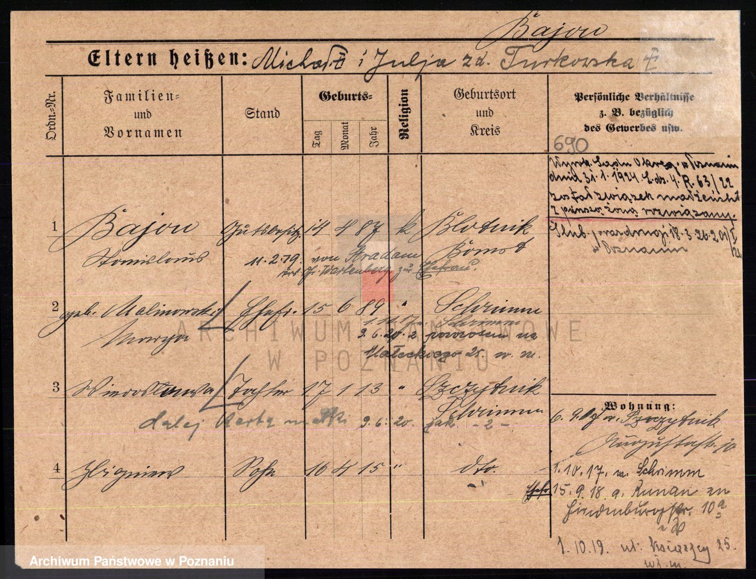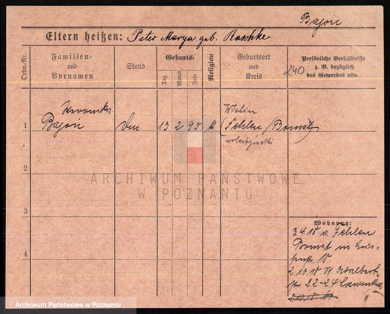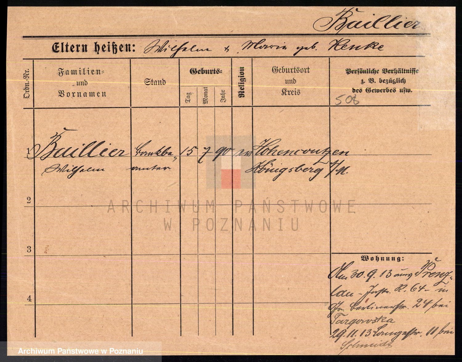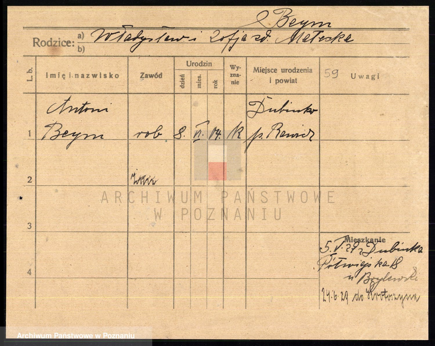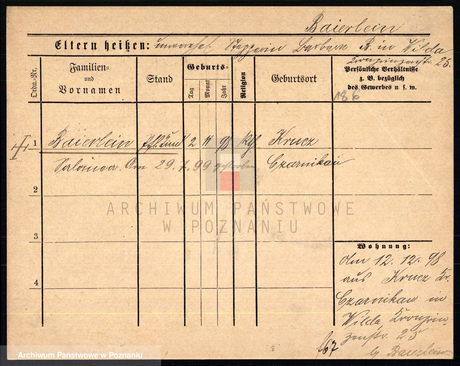 Podgląd karty osobowej dostępny jest po kliknięciu na nazwisko lub ikonkę karty. Można dokonywać powiększenia (ikony na górze) lub przechodzić między kolejnymi skanami (strzałki po bokach).