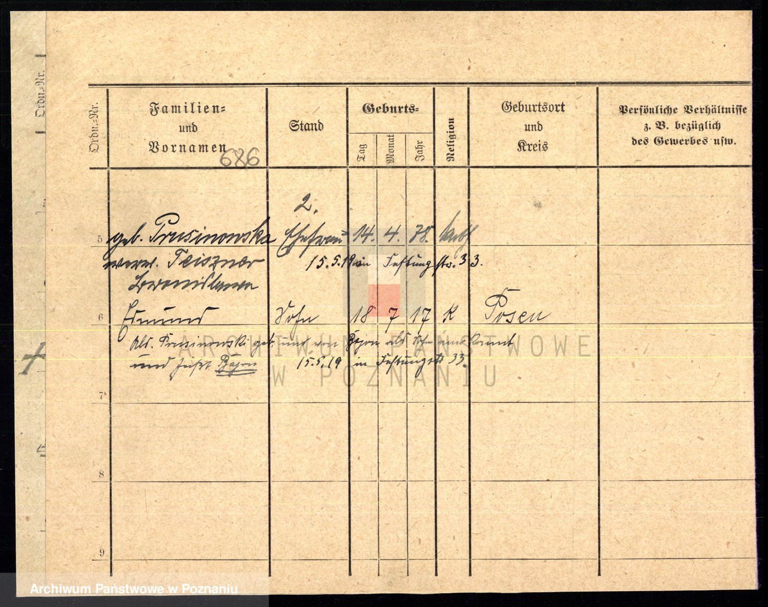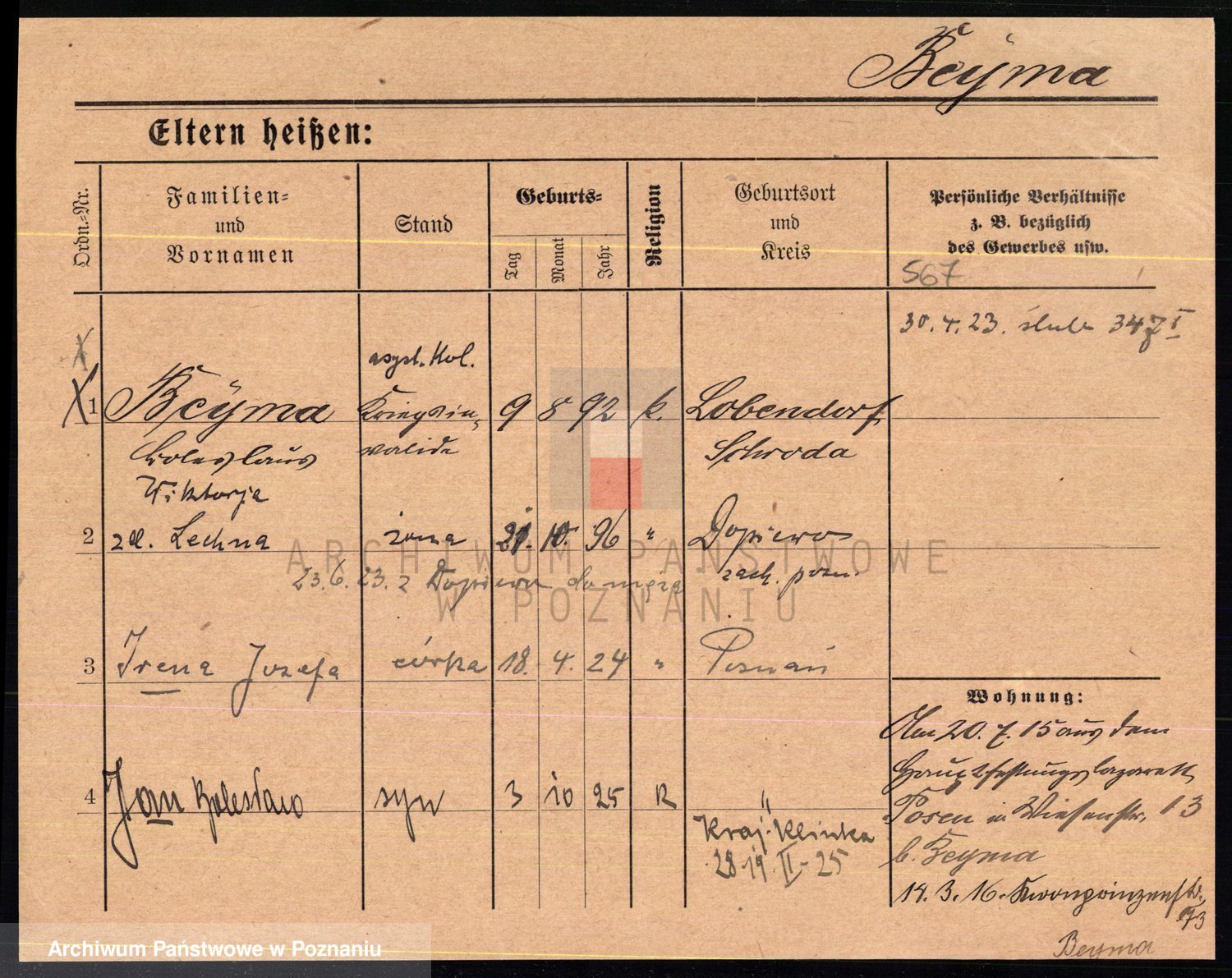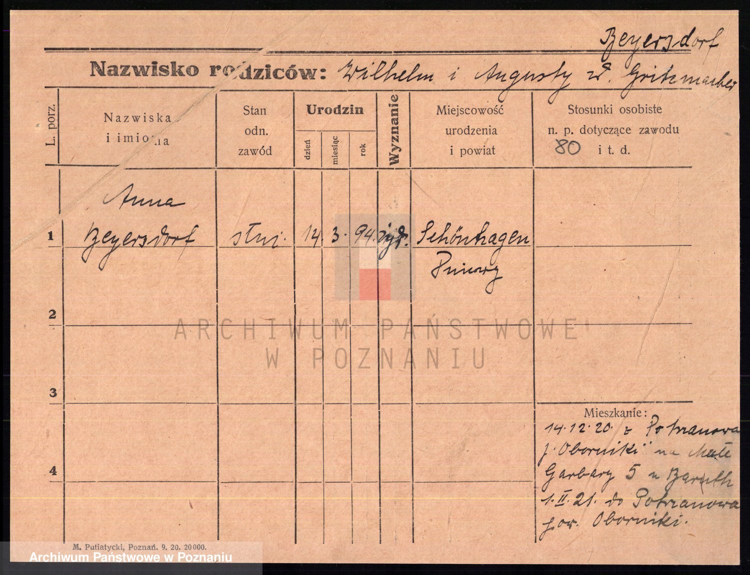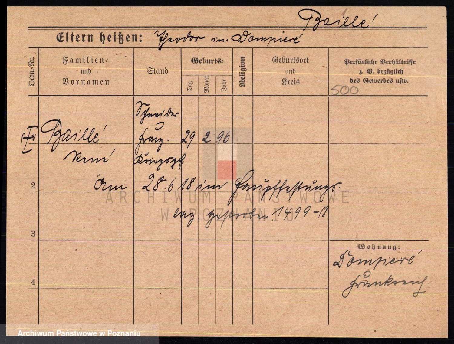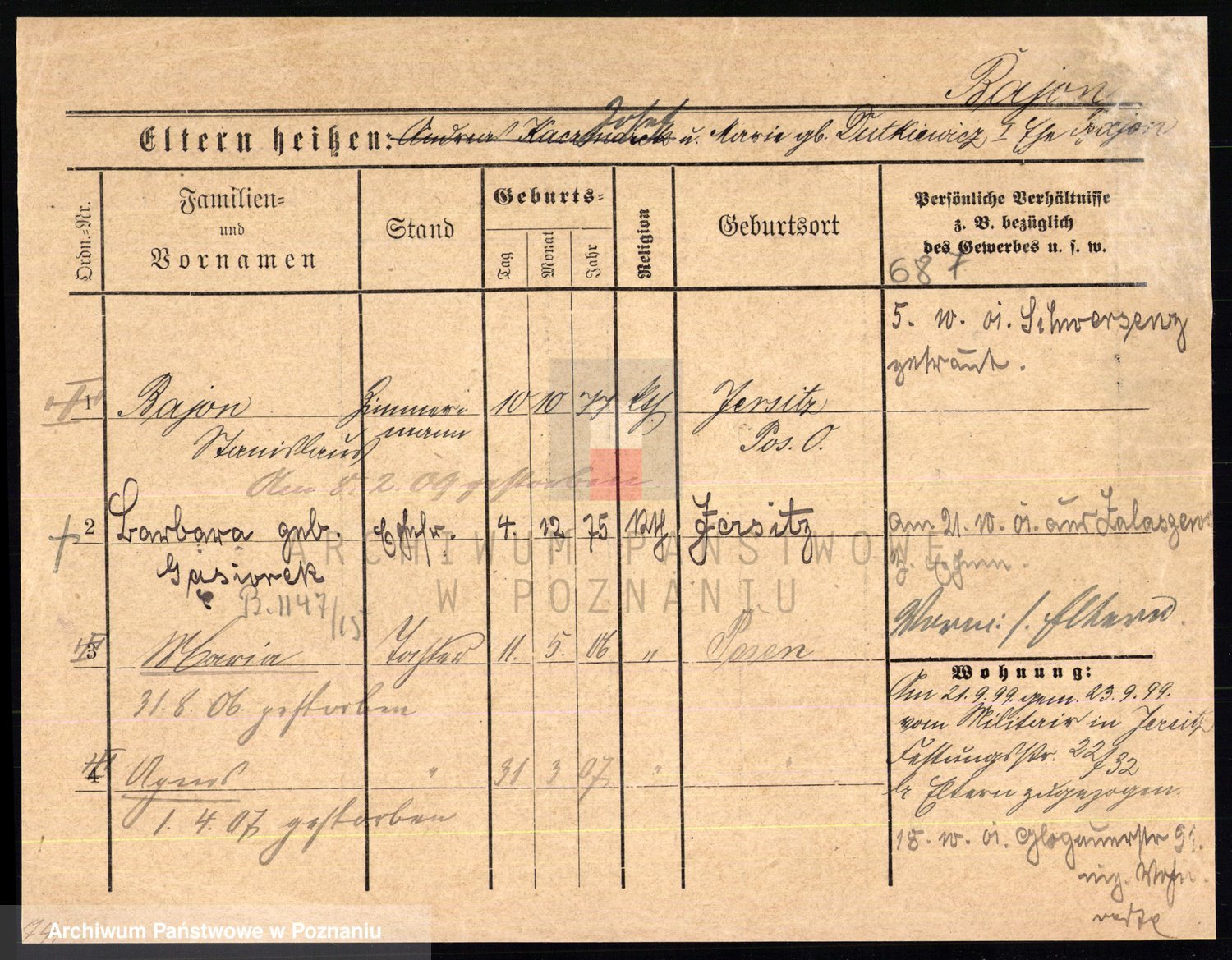 Podgląd karty osobowej dostępny jest po kliknięciu na nazwisko lub ikonkę karty. Można dokonywać powiększenia (ikony na górze) lub przechodzić między kolejnymi skanami (strzałki po bokach).