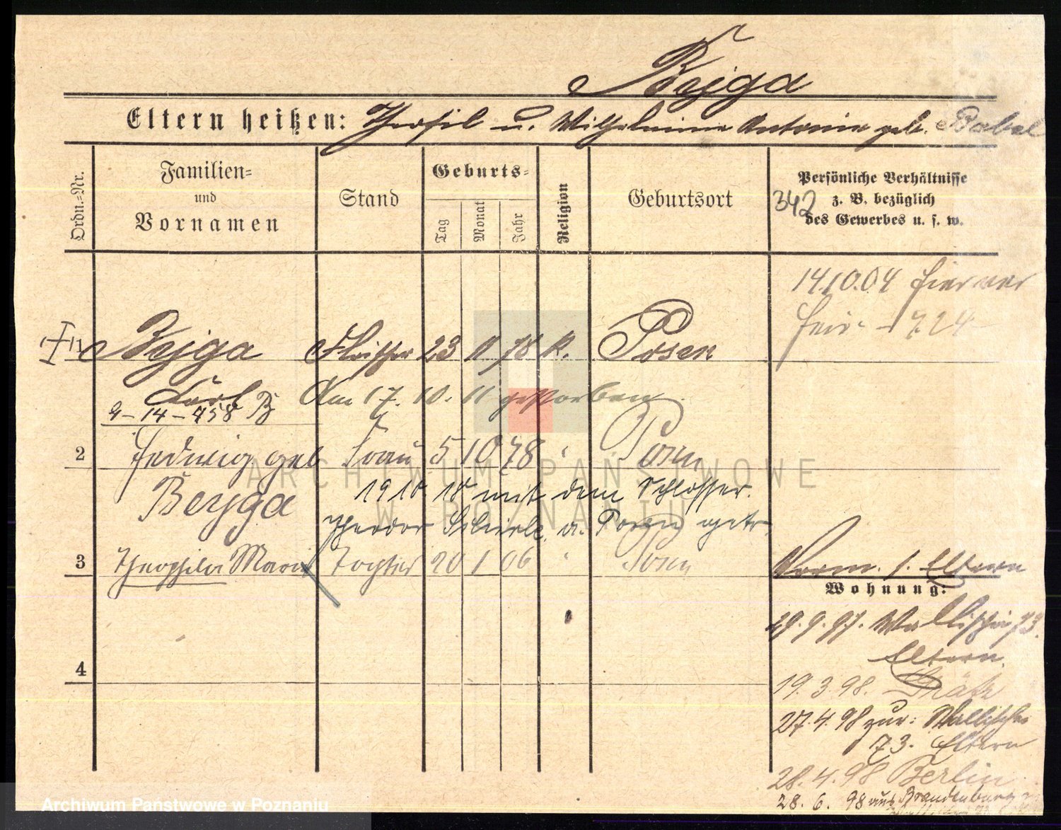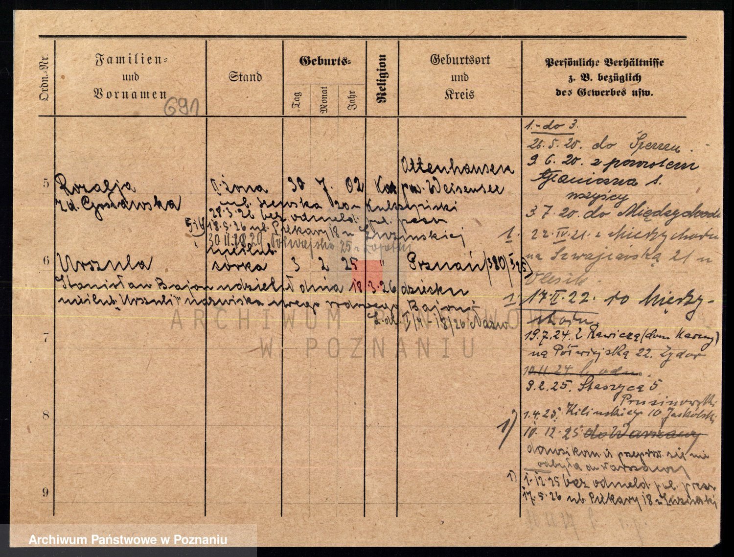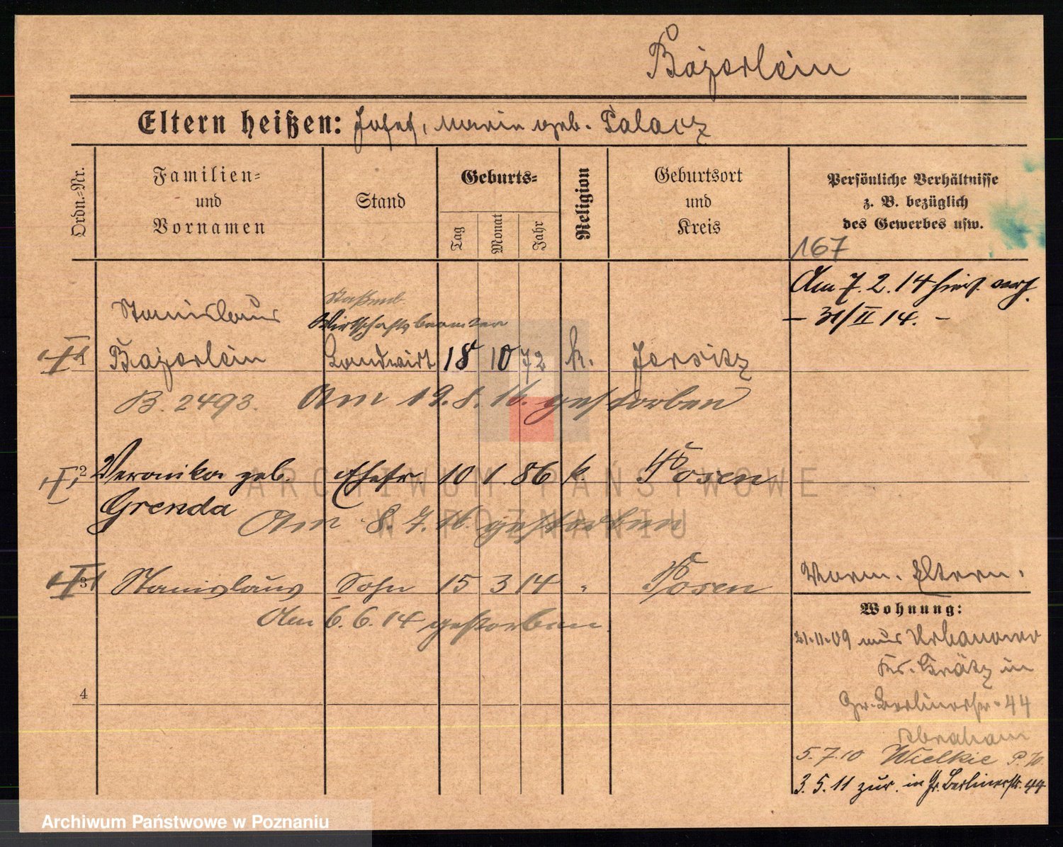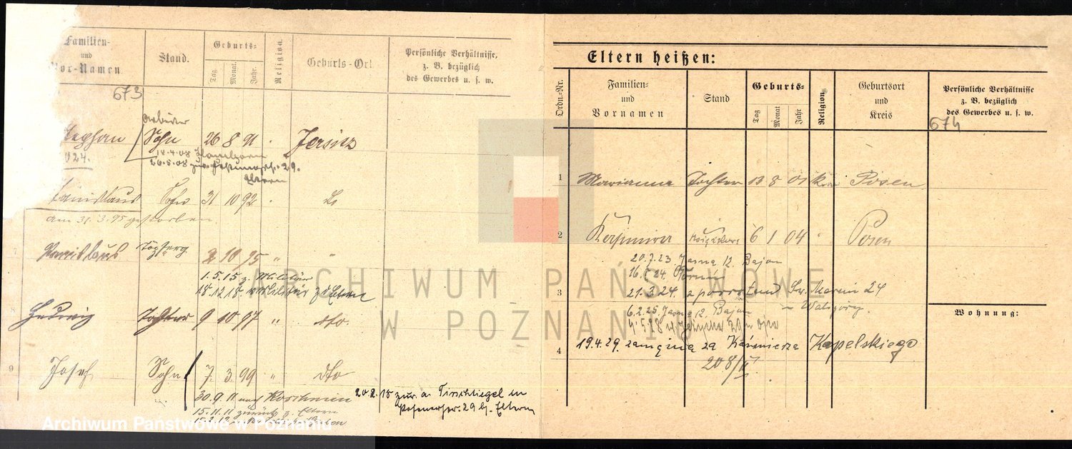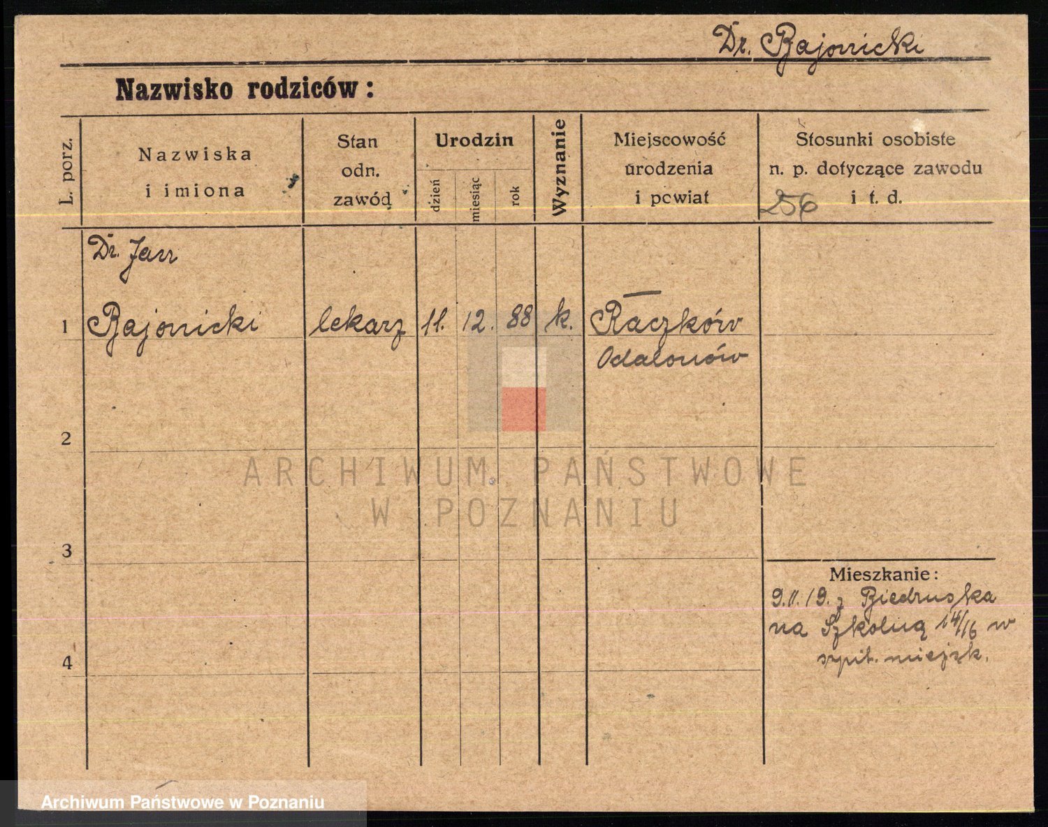 Podgląd karty osobowej dostępny jest po kliknięciu na nazwisko lub ikonkę karty. Można dokonywać powiększenia (ikony na górze) lub przechodzić między kolejnymi skanami (strzałki po bokach).