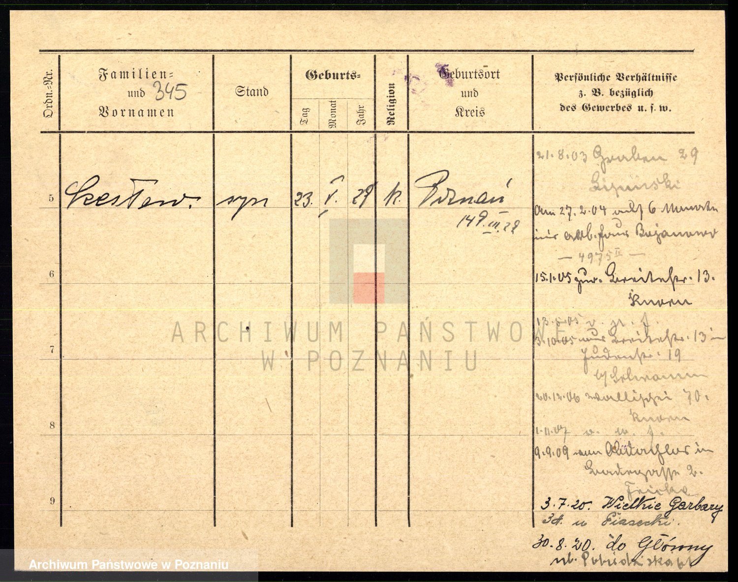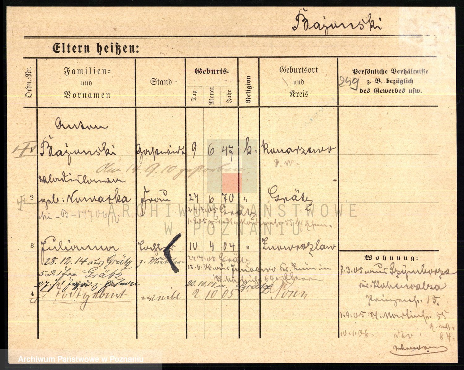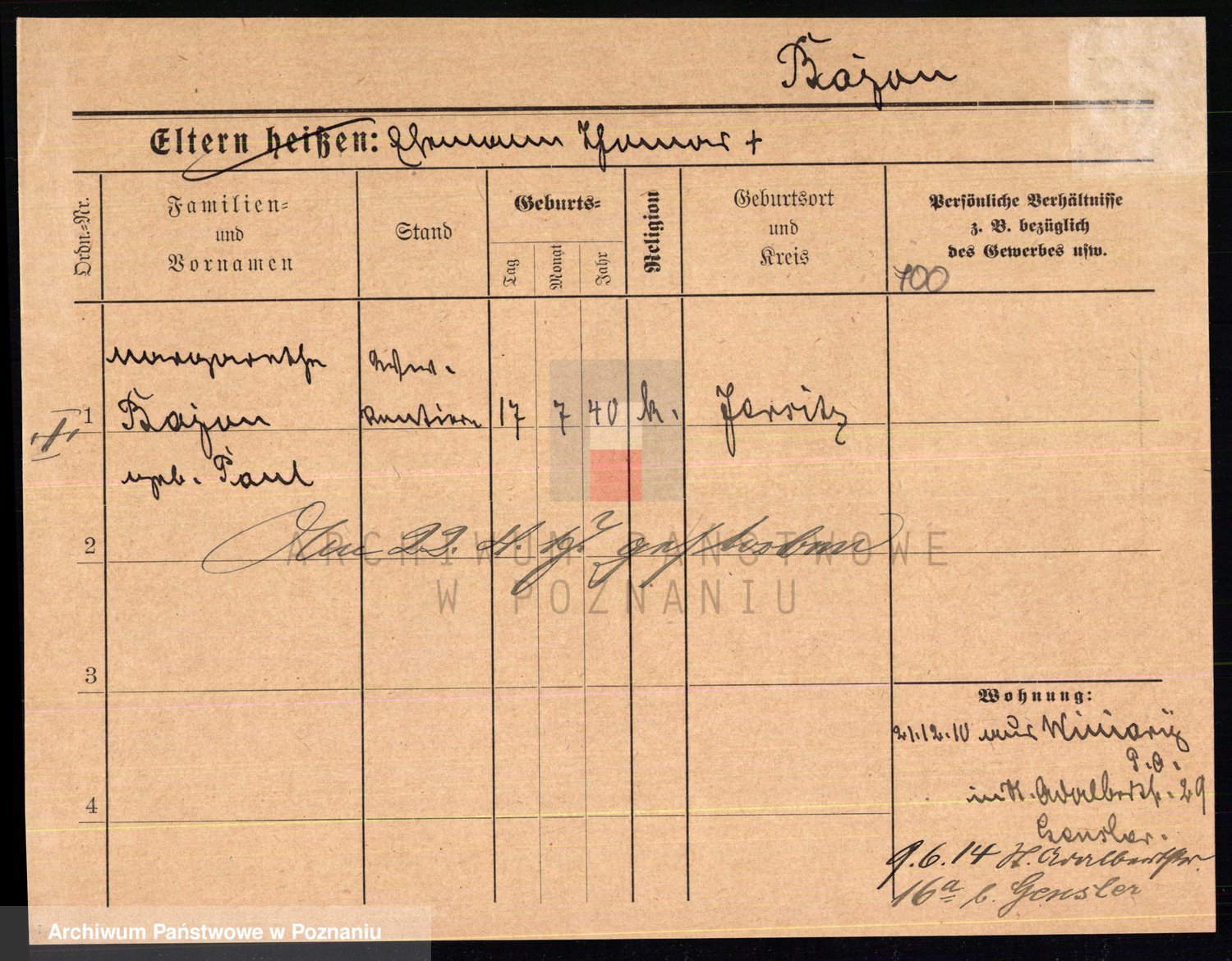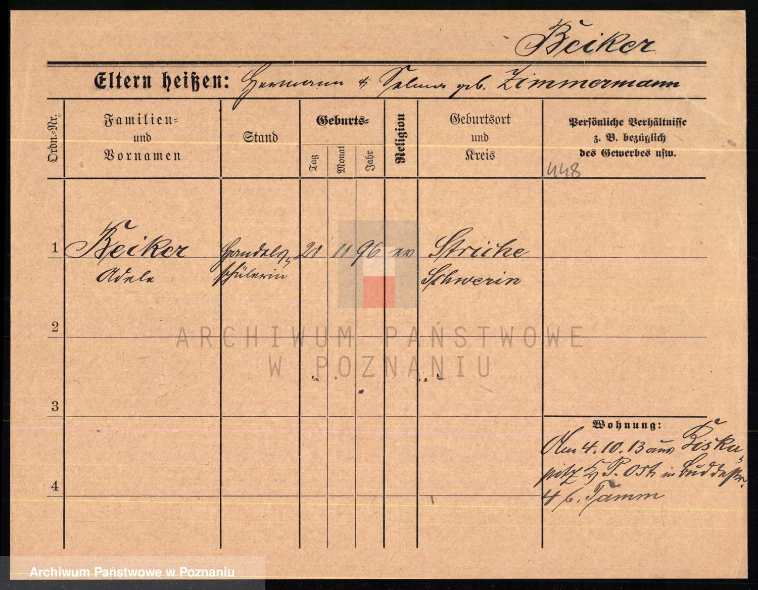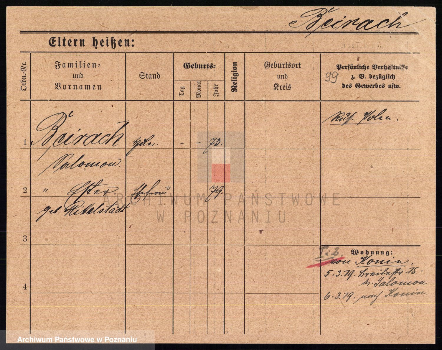 Podgląd karty osobowej dostępny jest po kliknięciu na nazwisko lub ikonkę karty. Można dokonywać powiększenia (ikony na górze) lub przechodzić między kolejnymi skanami (strzałki po bokach).
