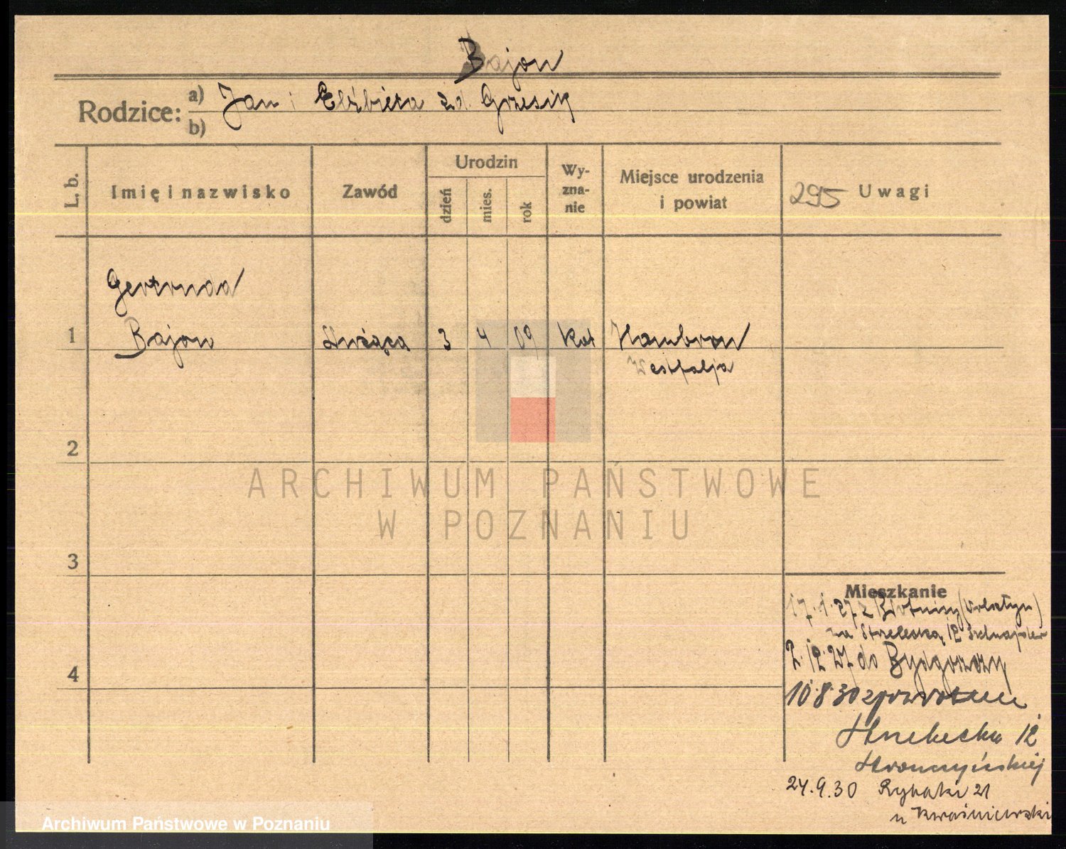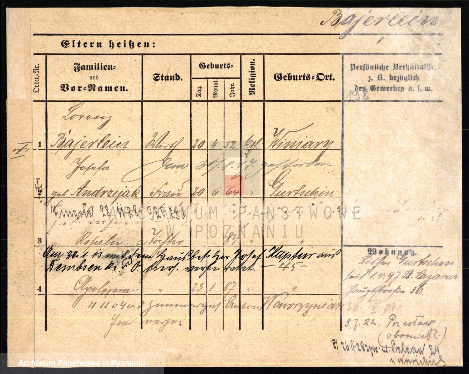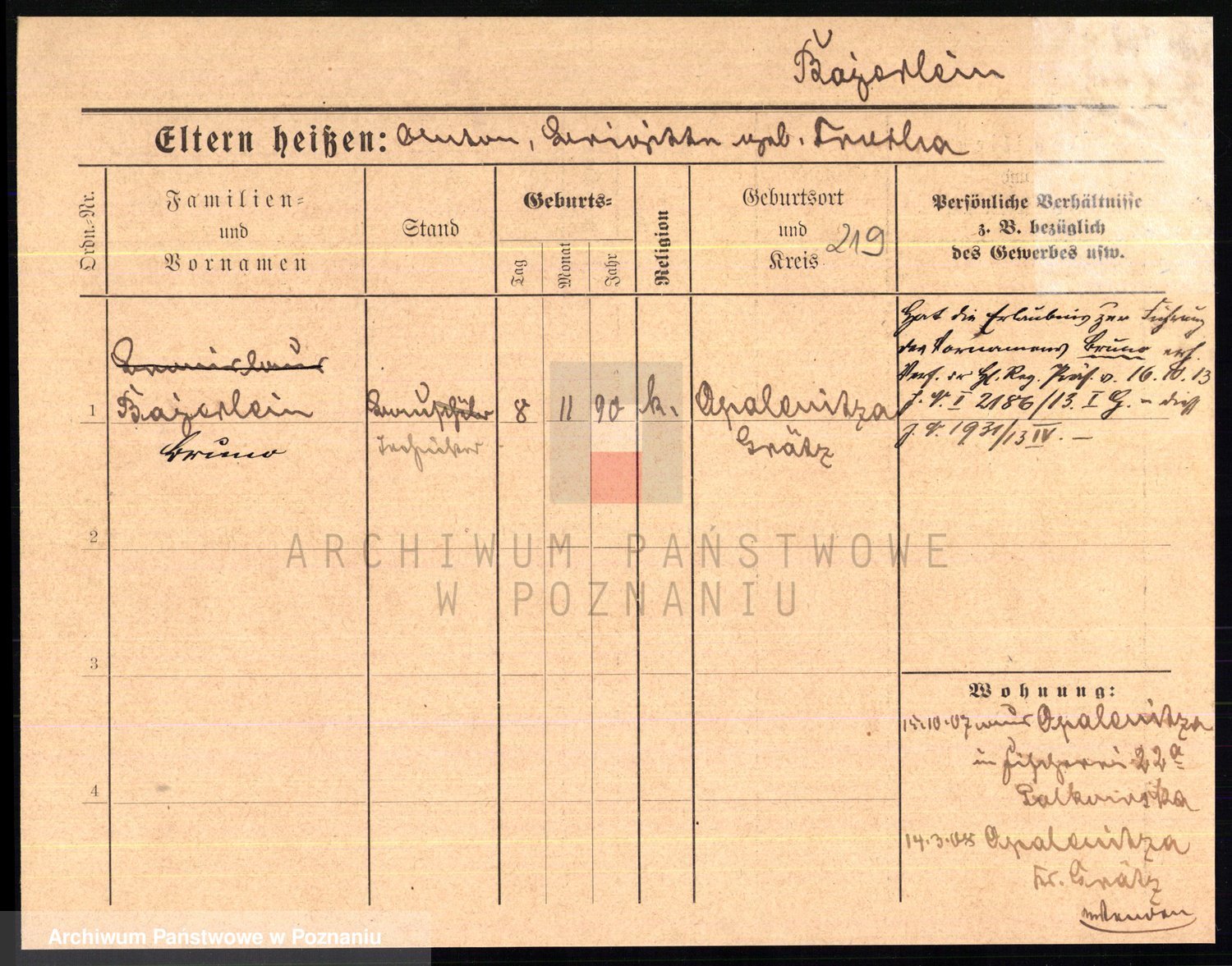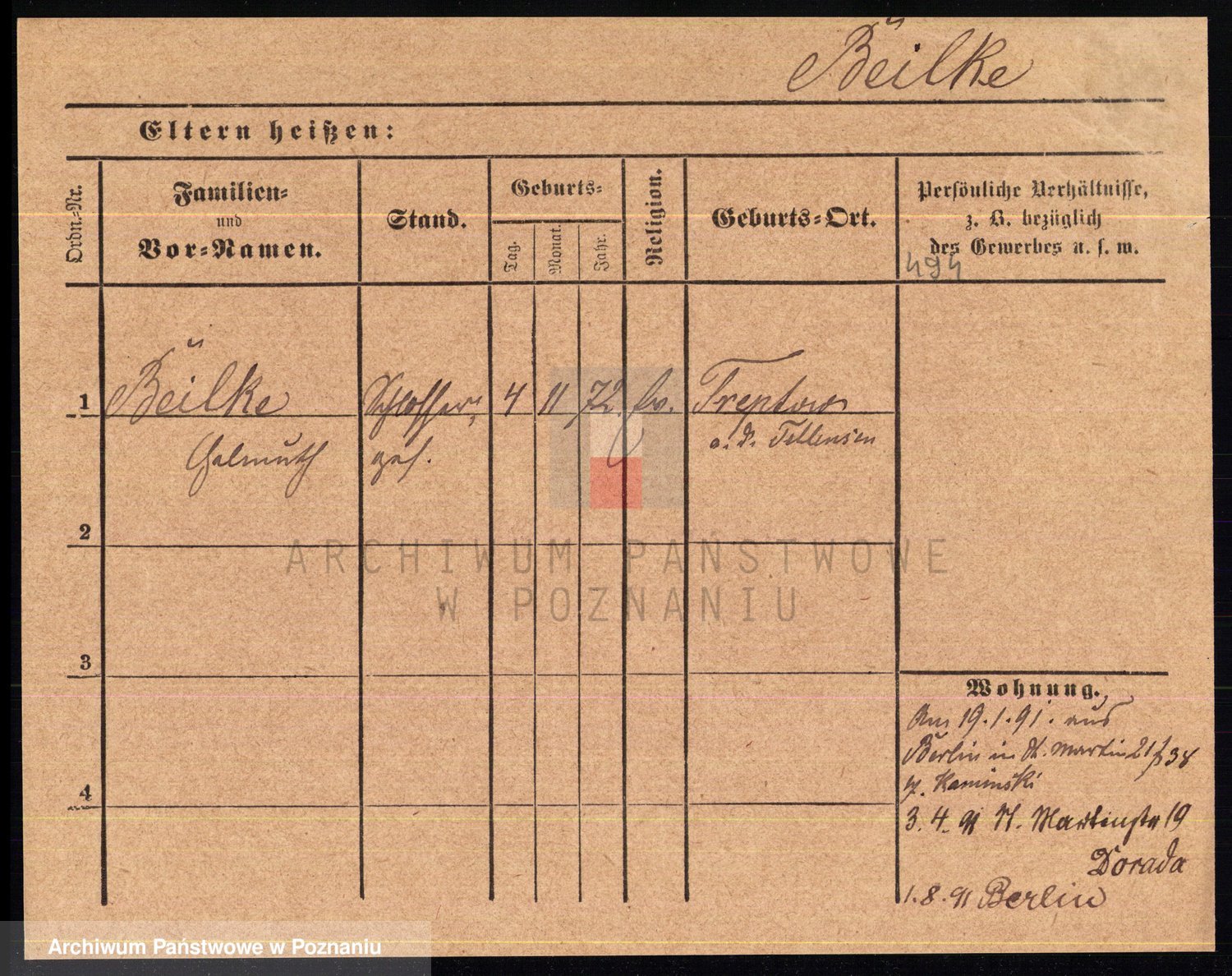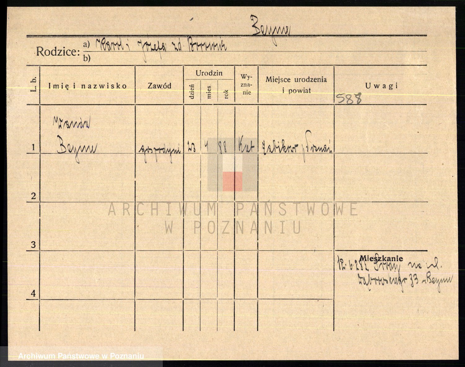 Podgląd karty osobowej dostępny jest po kliknięciu na nazwisko lub ikonkę karty. Można dokonywać powiększenia (ikony na górze) lub przechodzić między kolejnymi skanami (strzałki po bokach).