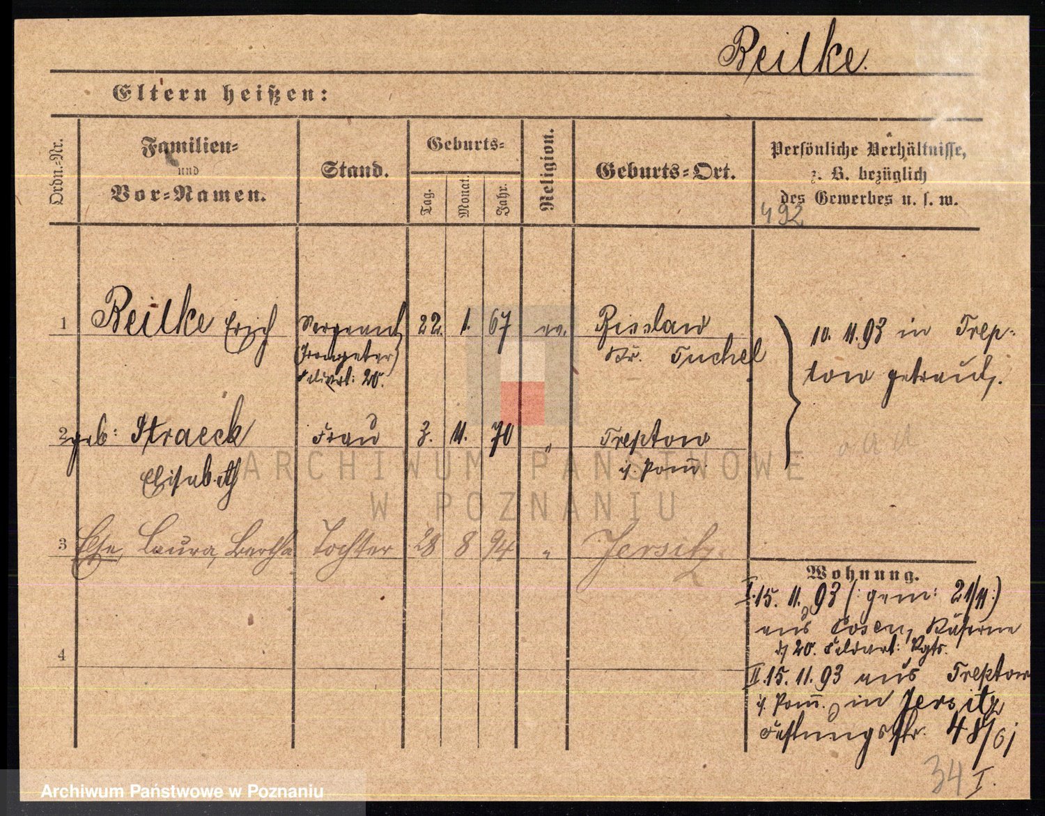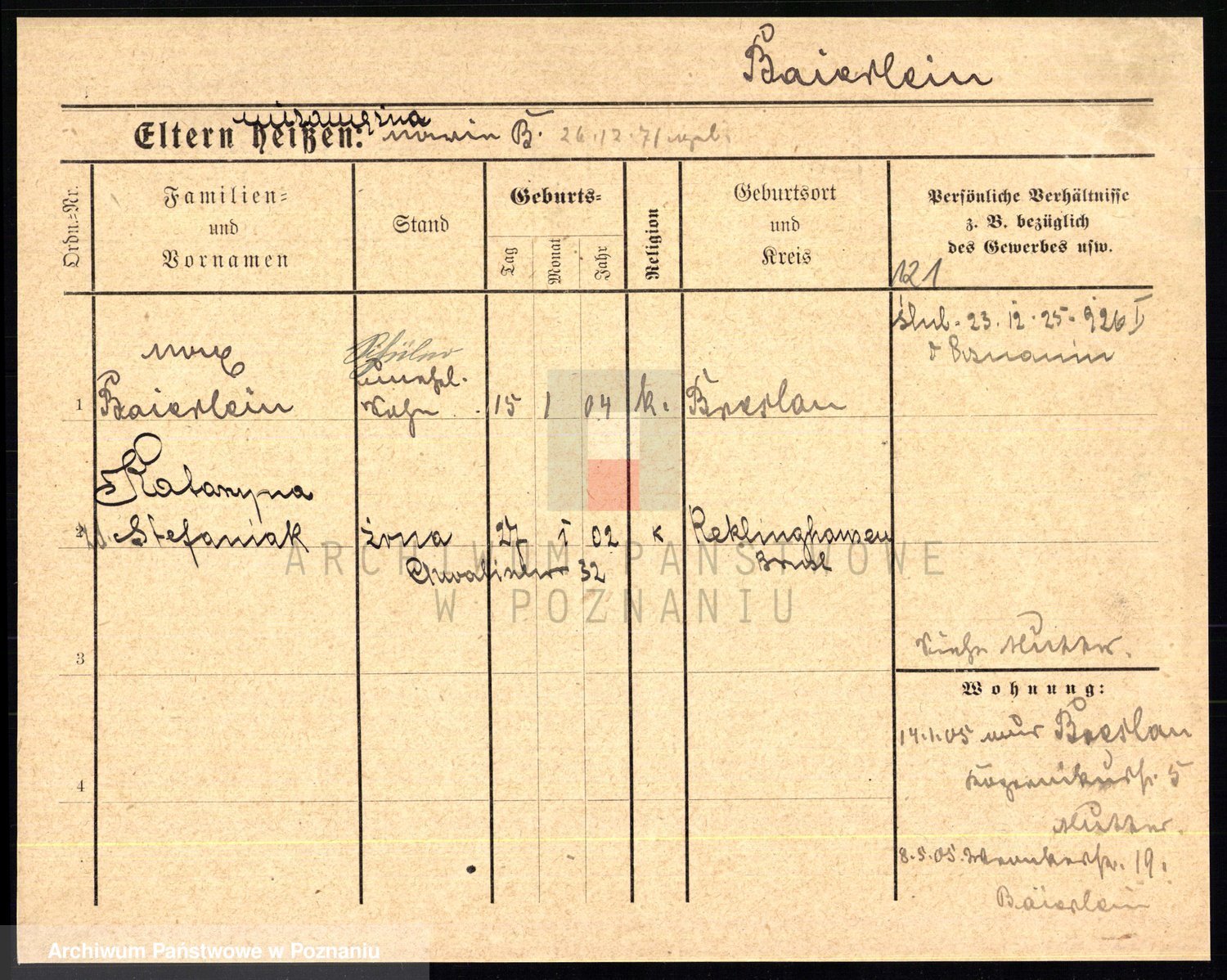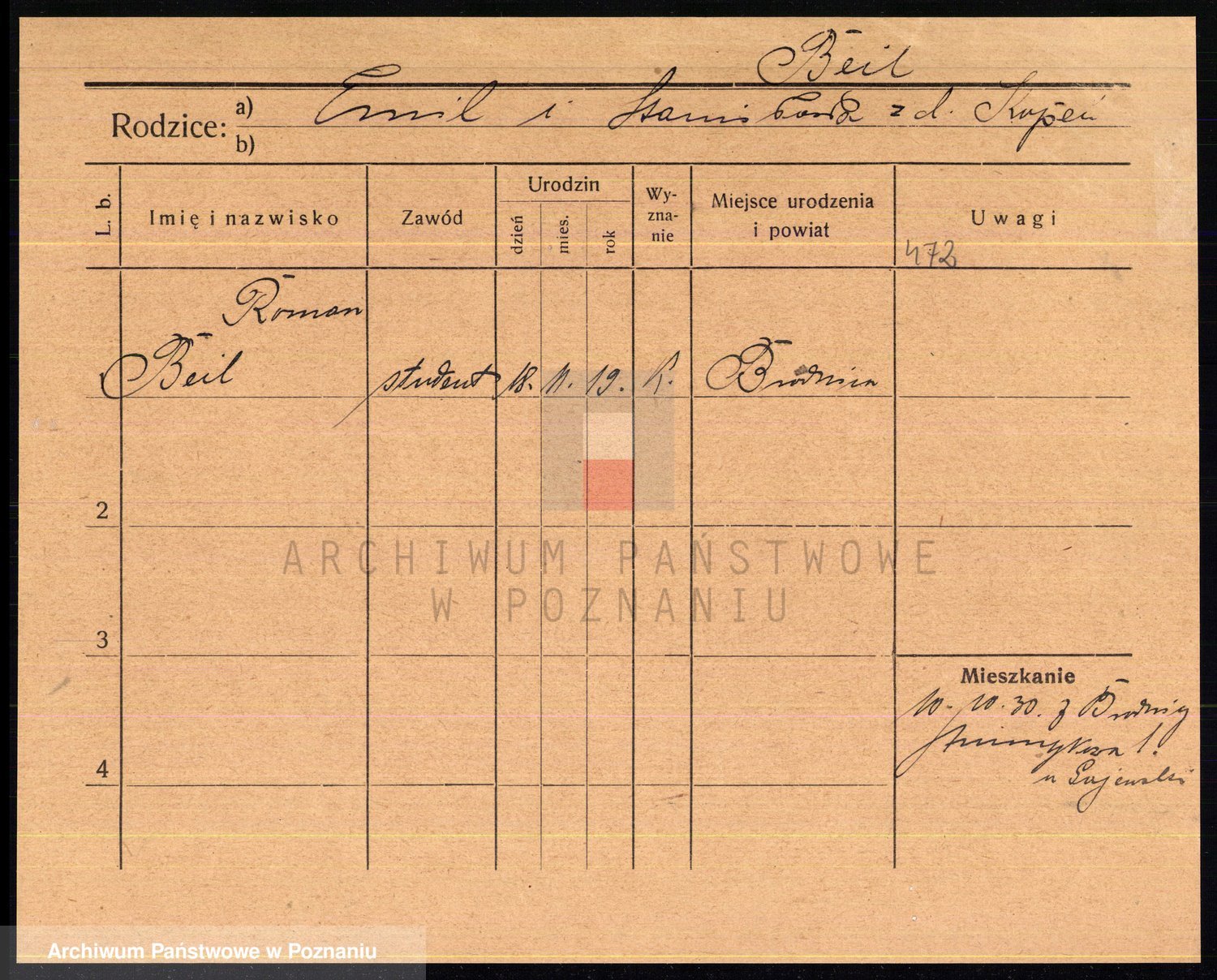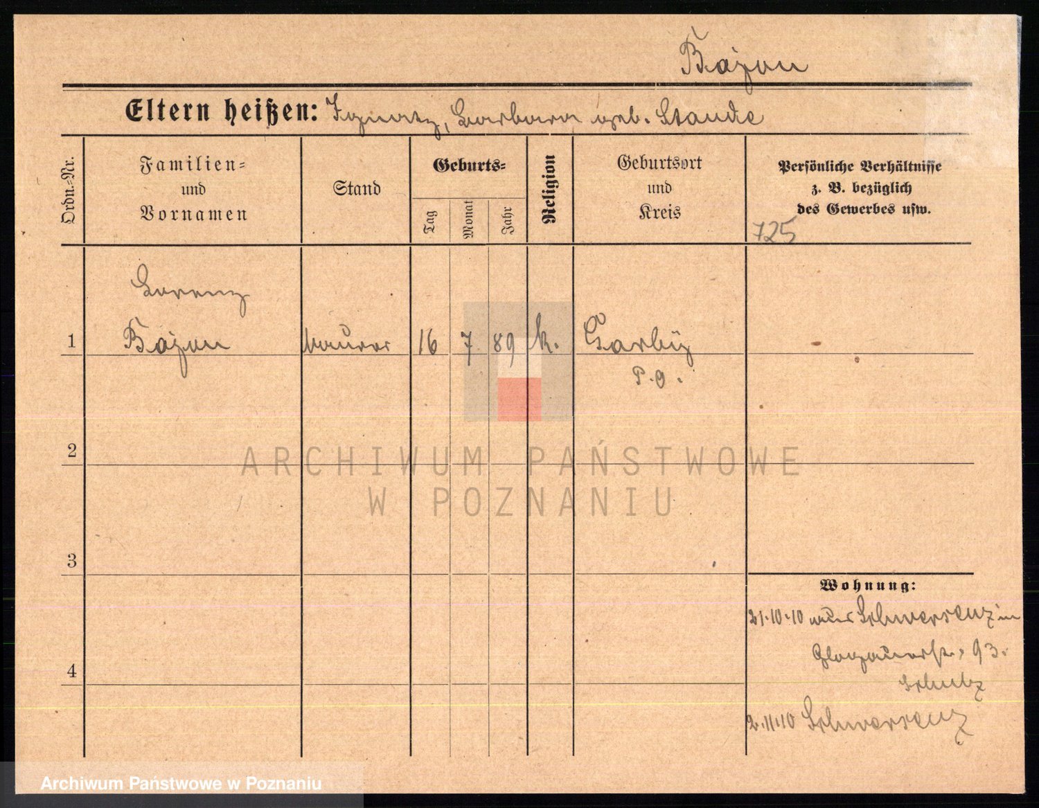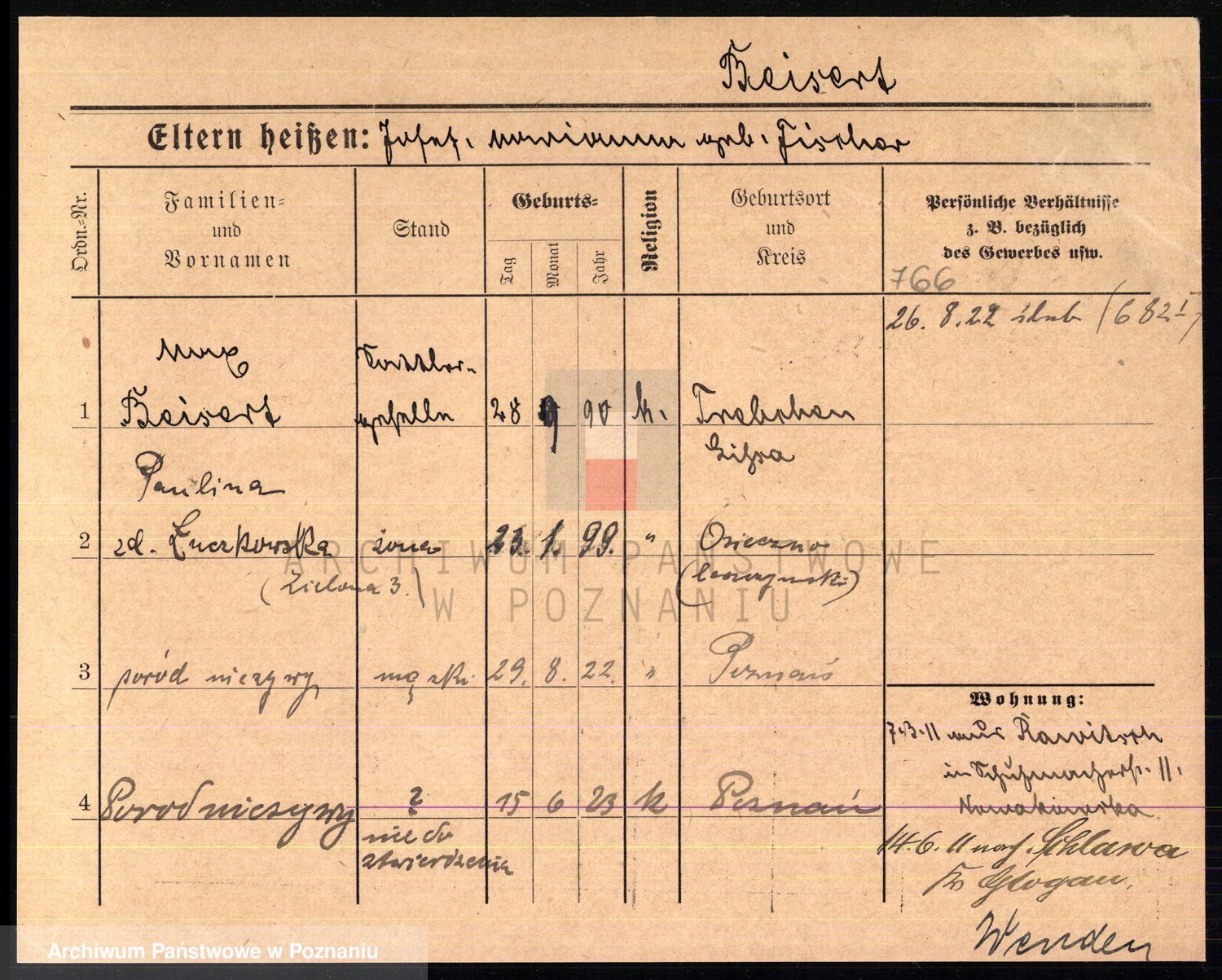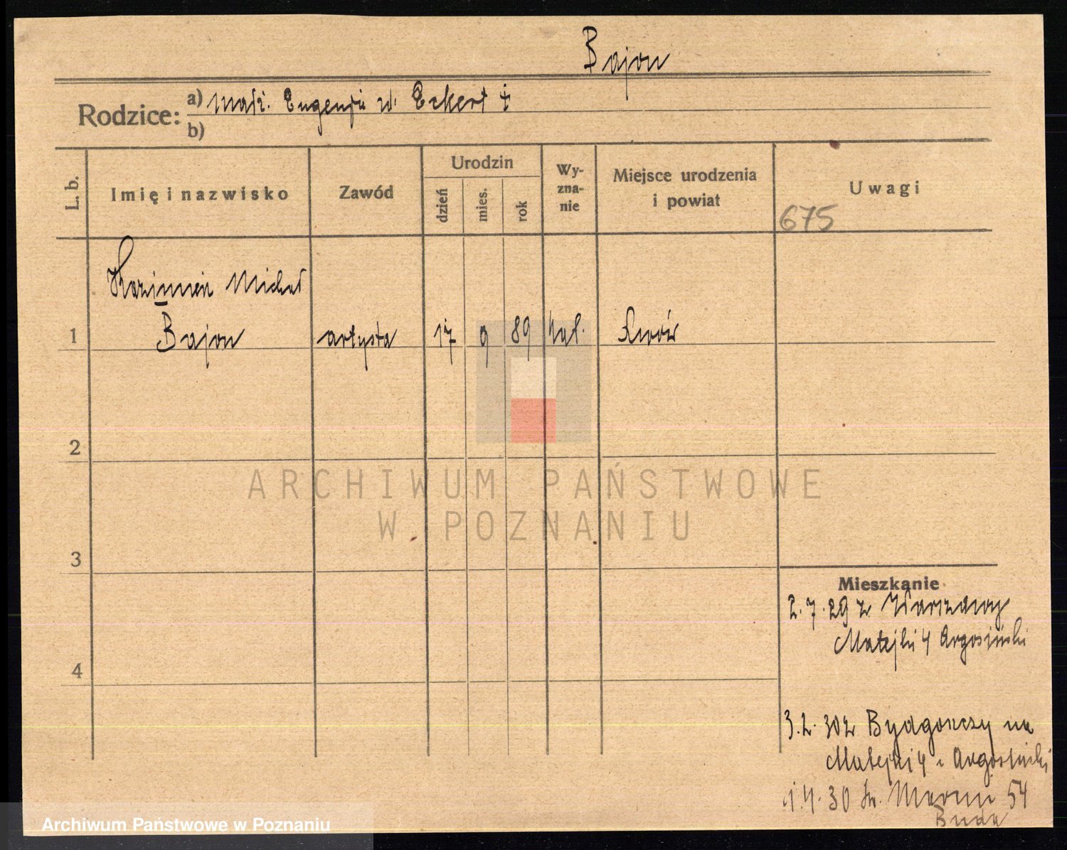Podgląd karty osobowej dostępny jest po kliknięciu na nazwisko lub ikonkę karty. Można dokonywać powiększenia (ikony na górze) lub przechodzić między kolejnymi skanami (strzałki po bokach).