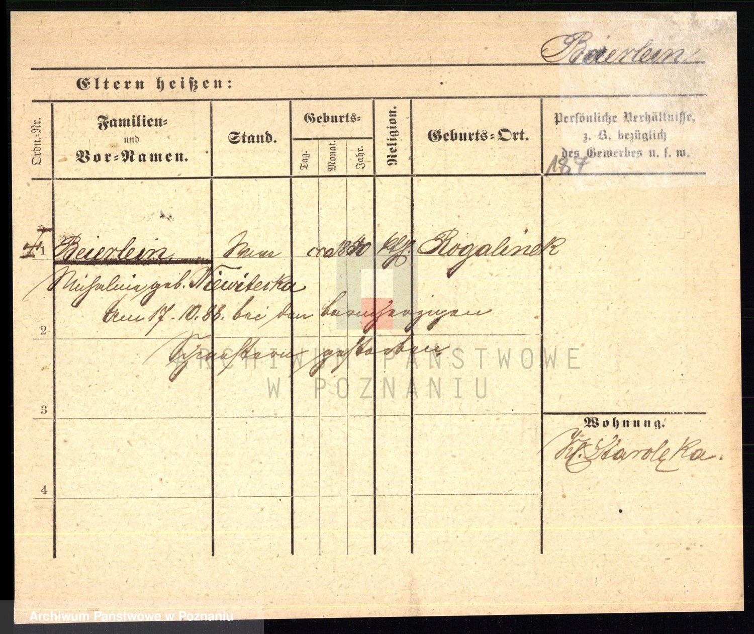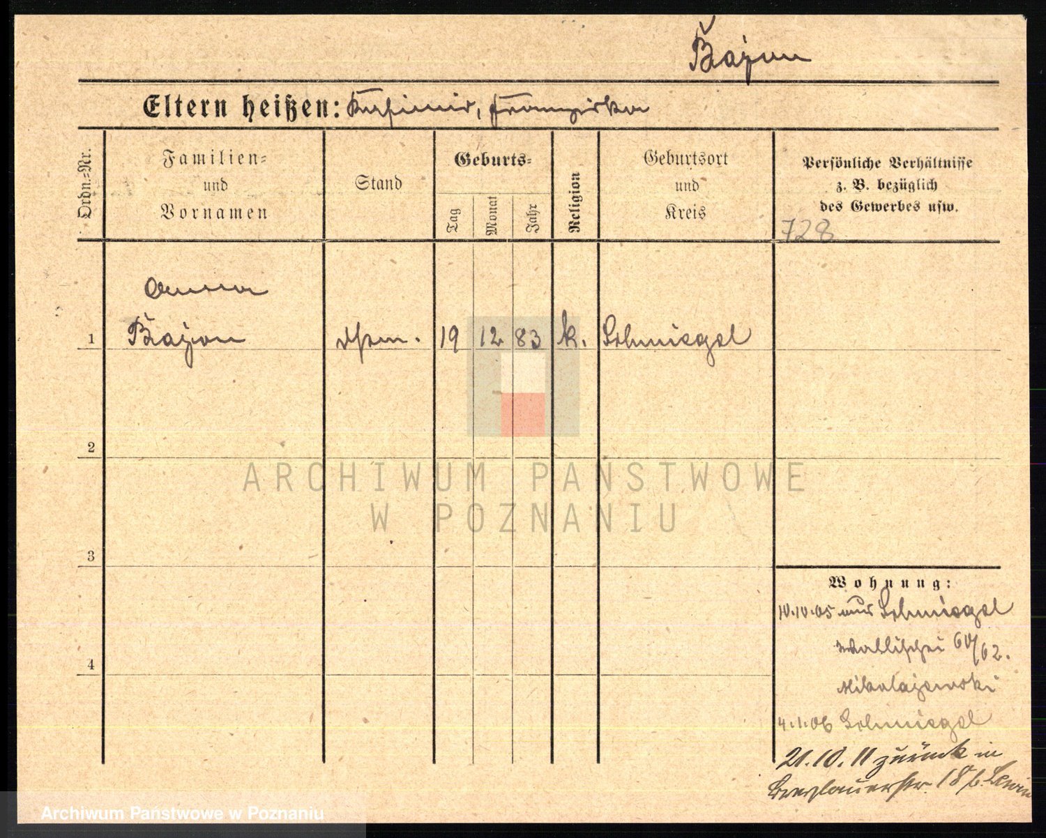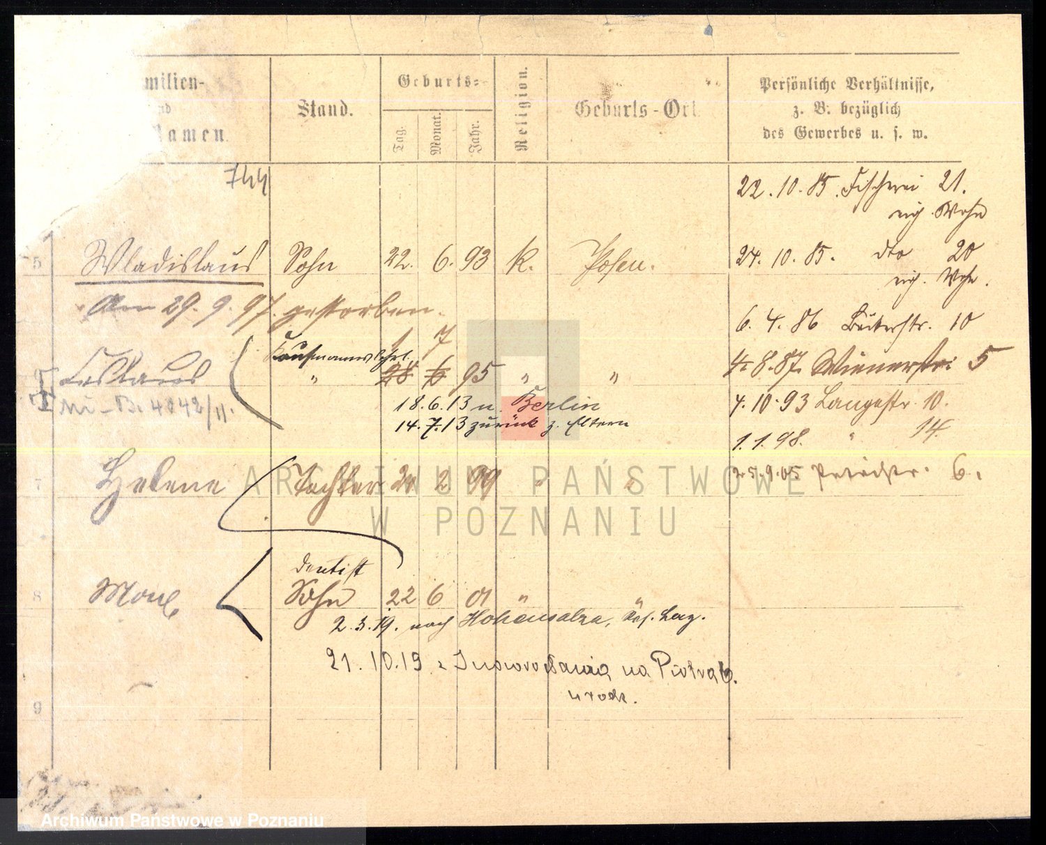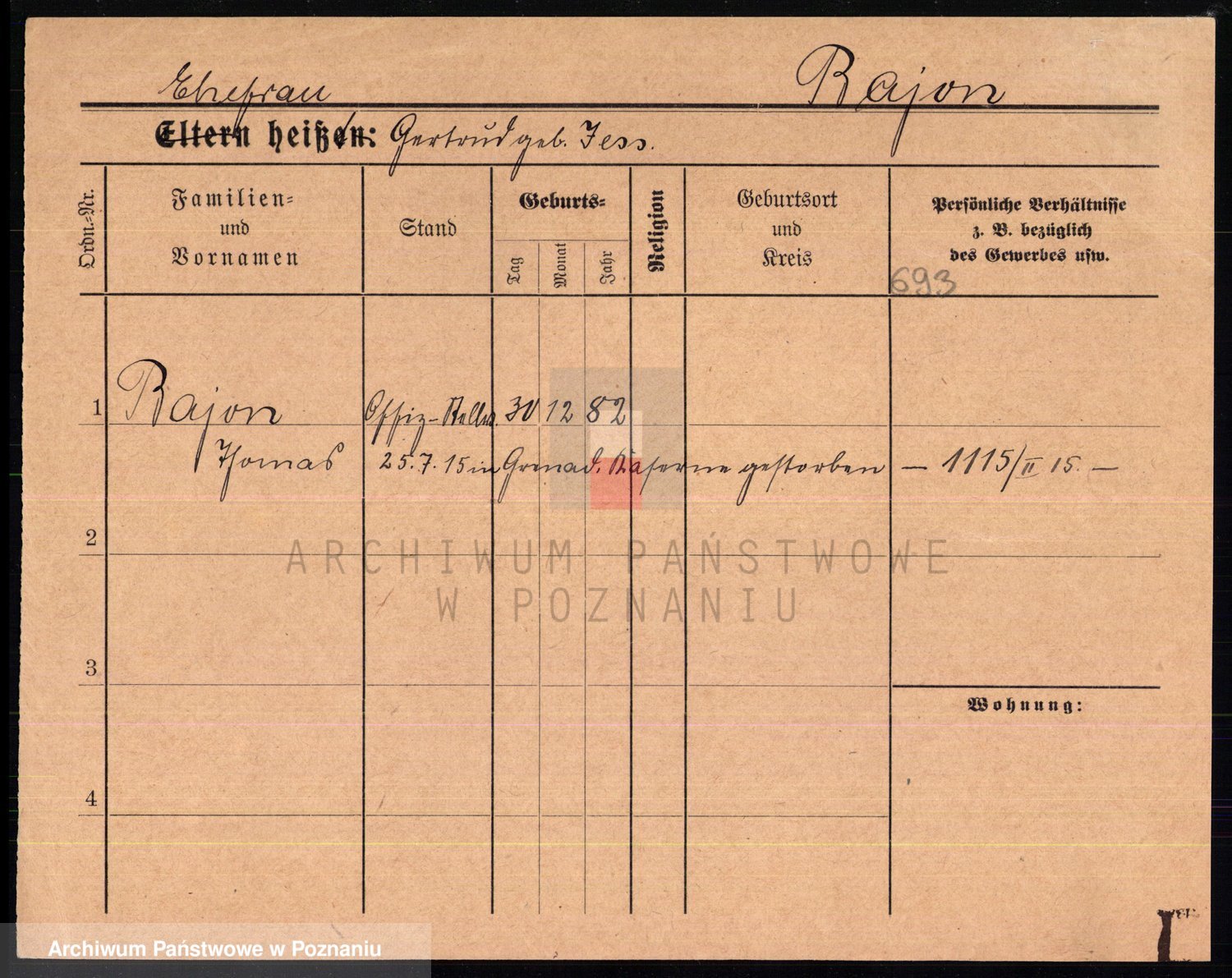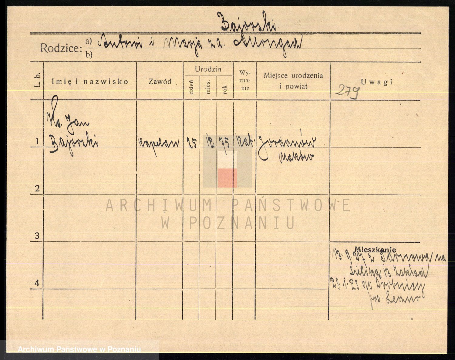 Podgląd karty osobowej dostępny jest po kliknięciu na nazwisko lub ikonkę karty. Można dokonywać powiększenia (ikony na górze) lub przechodzić między kolejnymi skanami (strzałki po bokach).