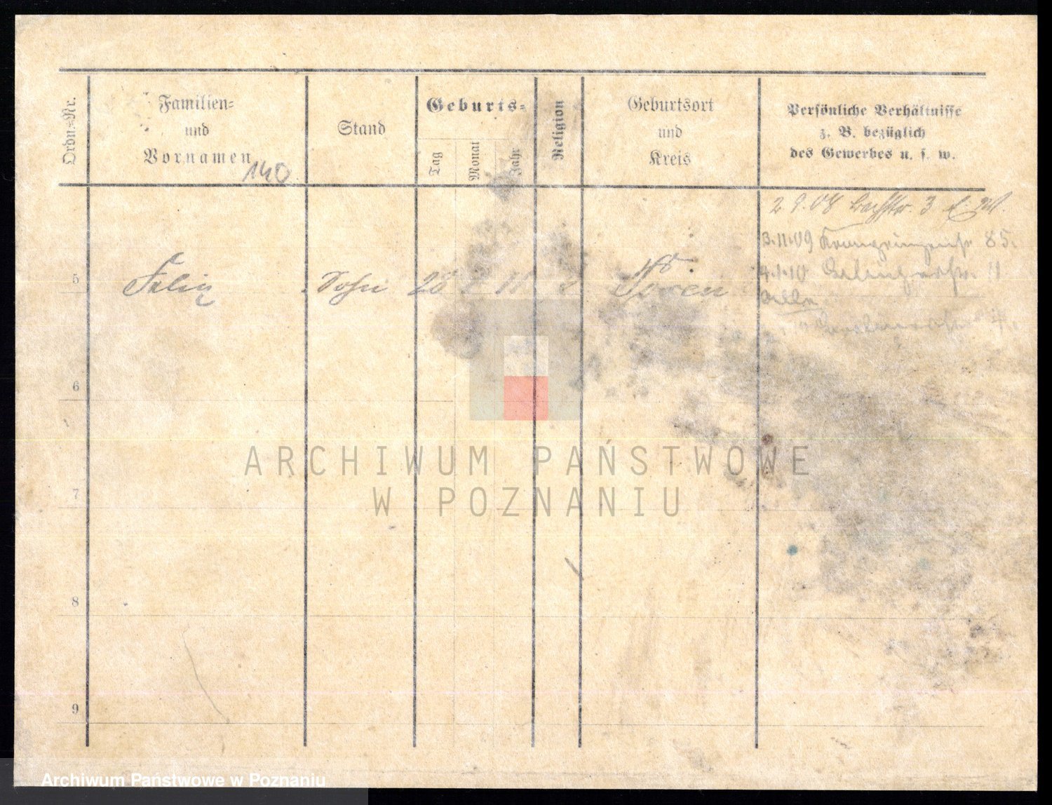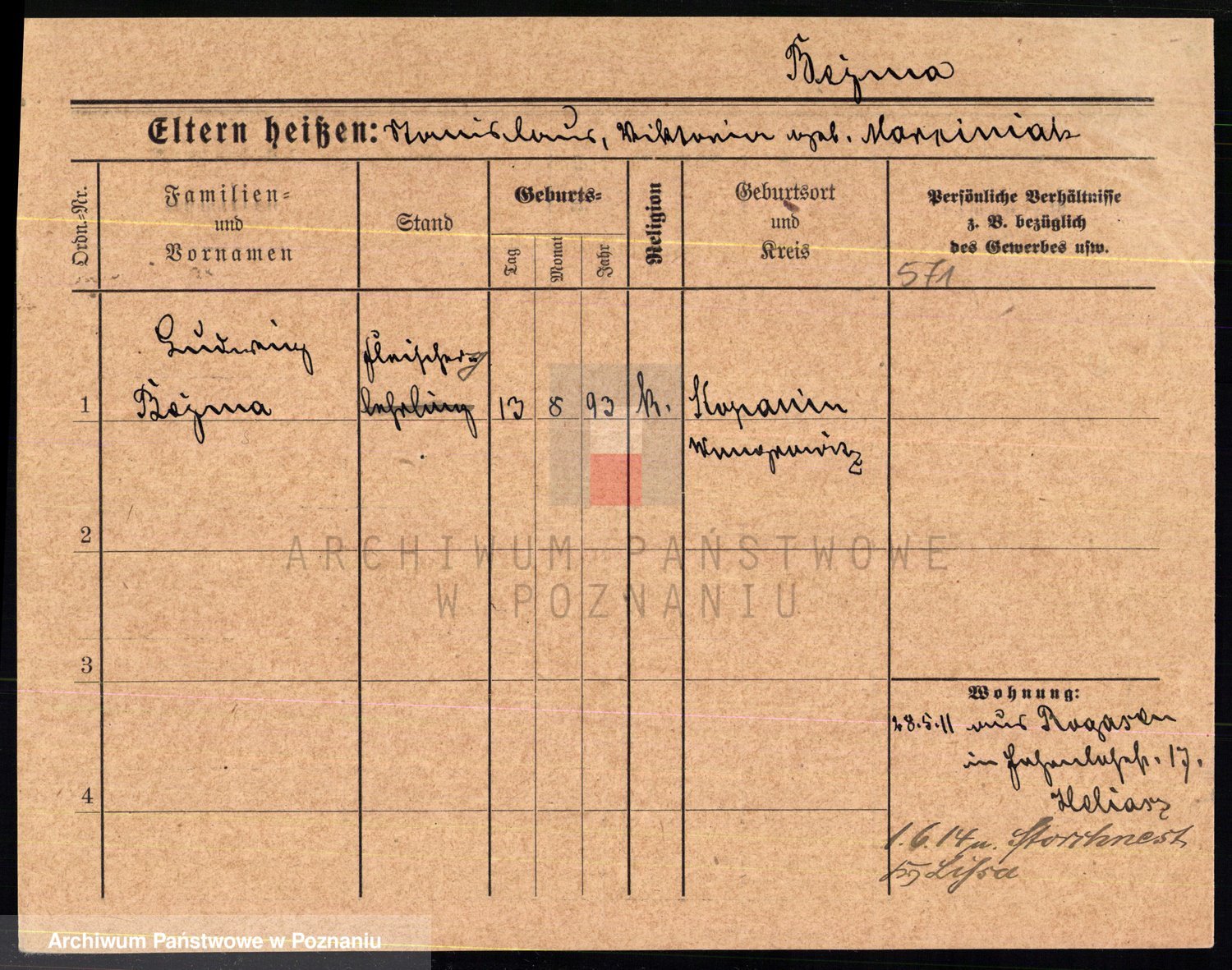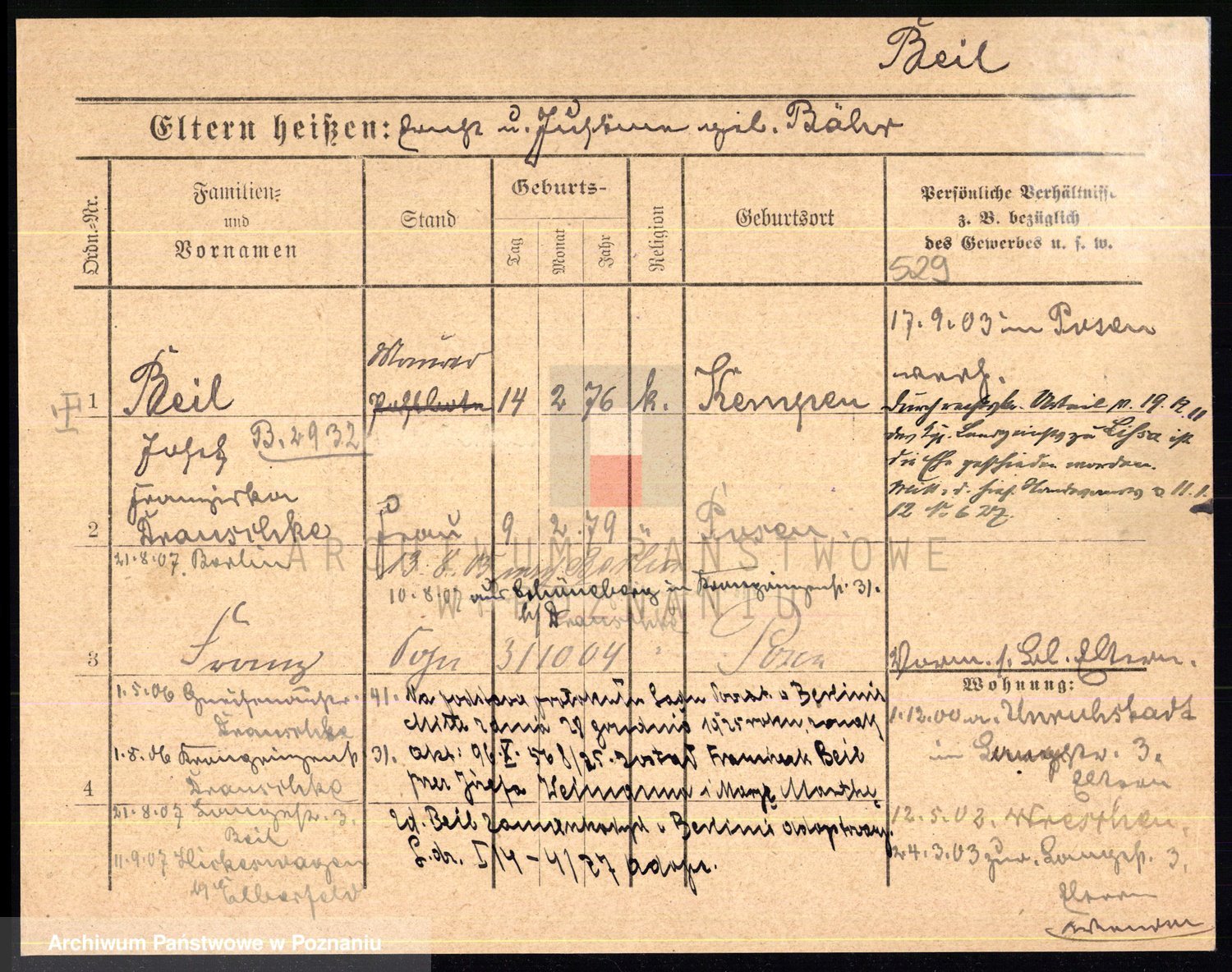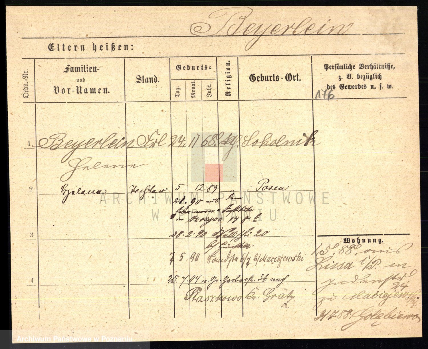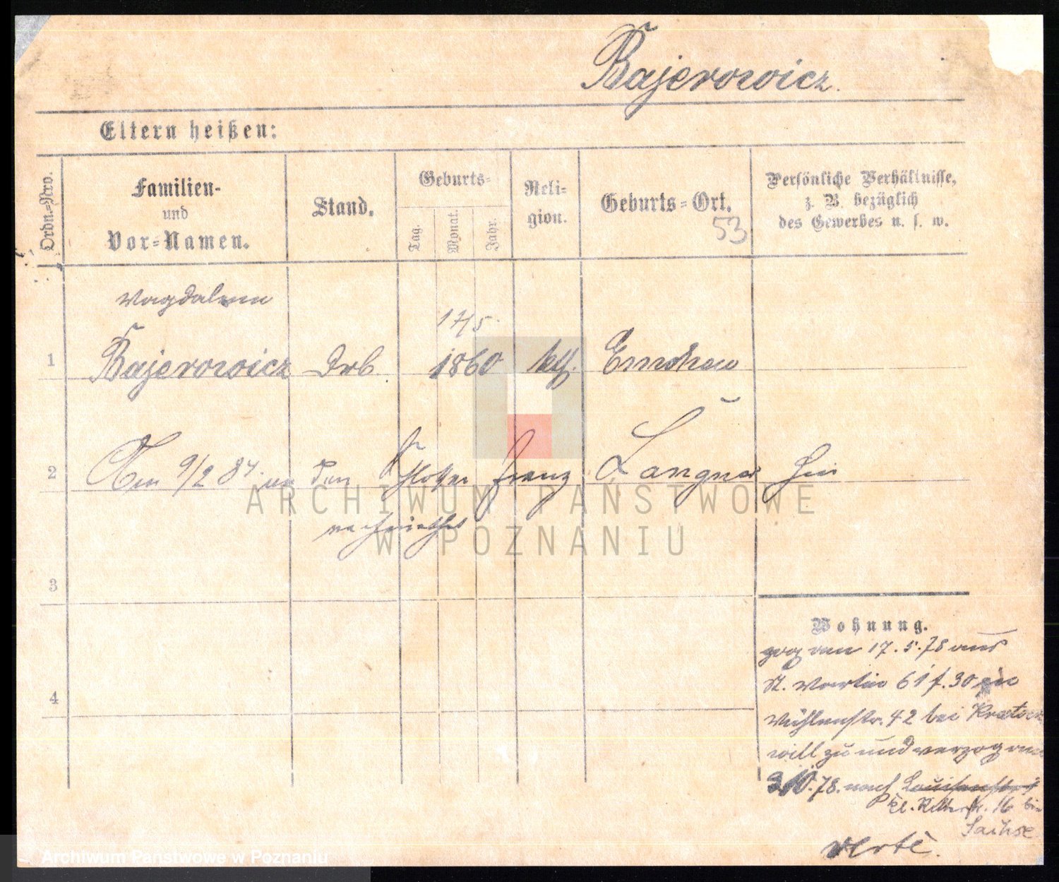 Podgląd karty osobowej dostępny jest po kliknięciu na nazwisko lub ikonkę karty. Można dokonywać powiększenia (ikony na górze) lub przechodzić między kolejnymi skanami (strzałki po bokach).