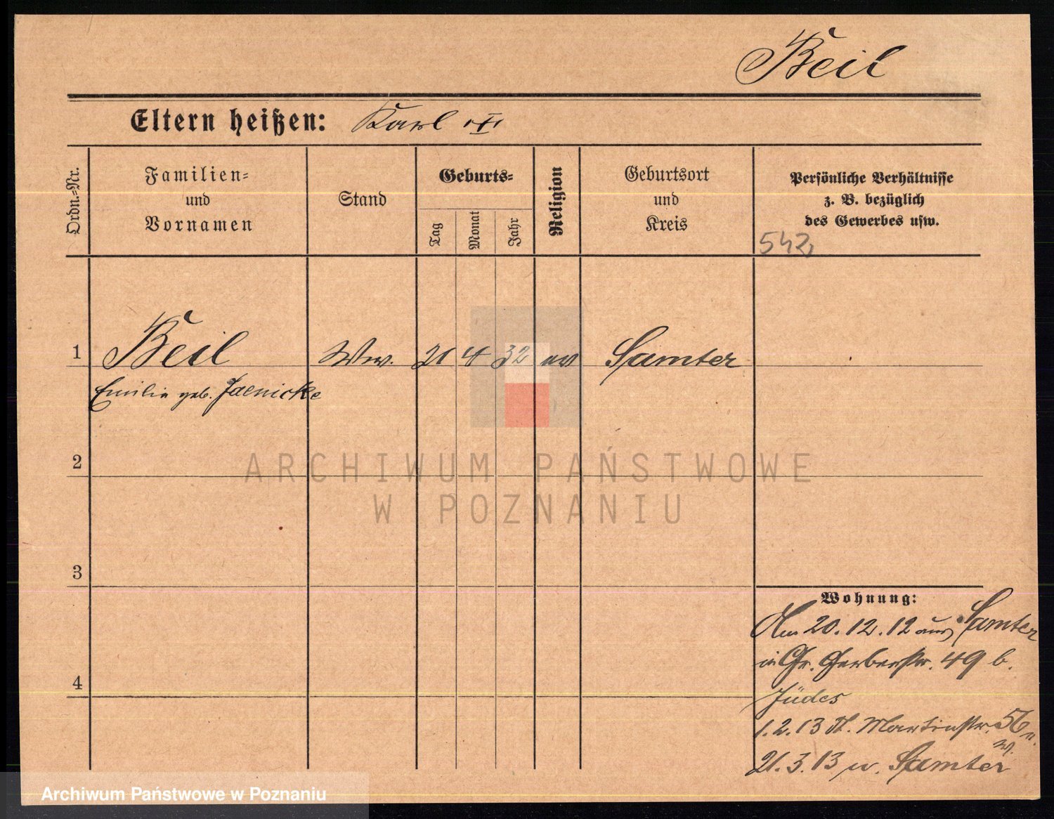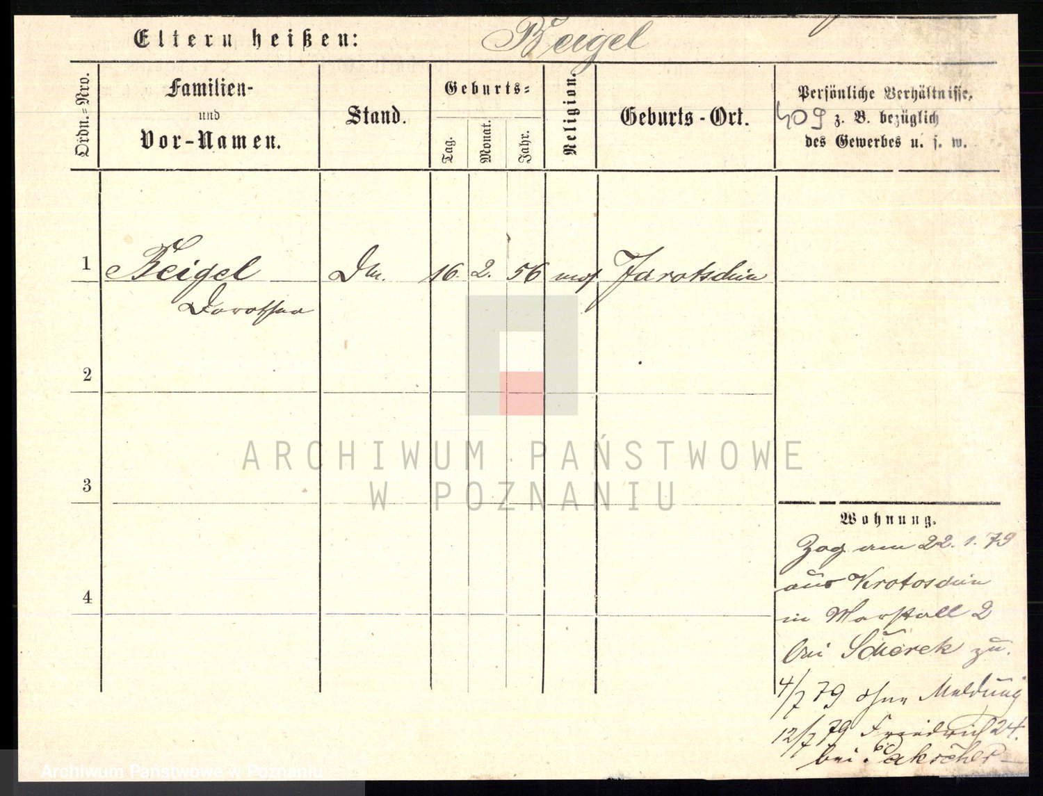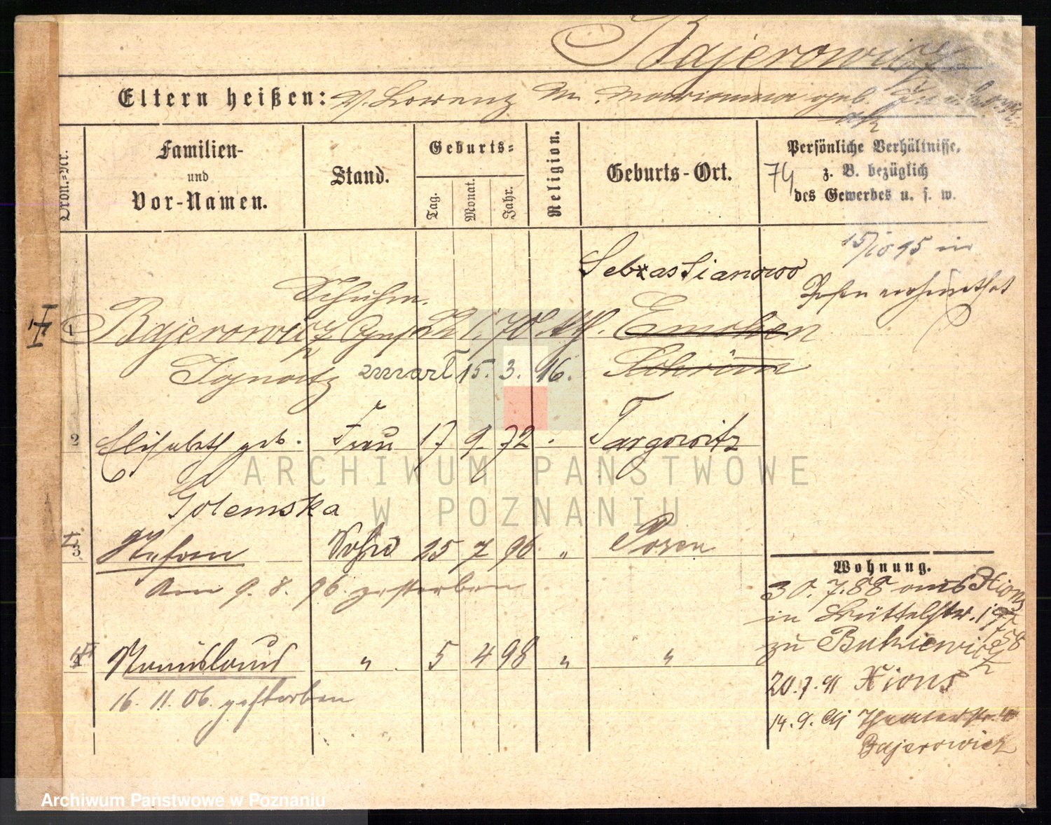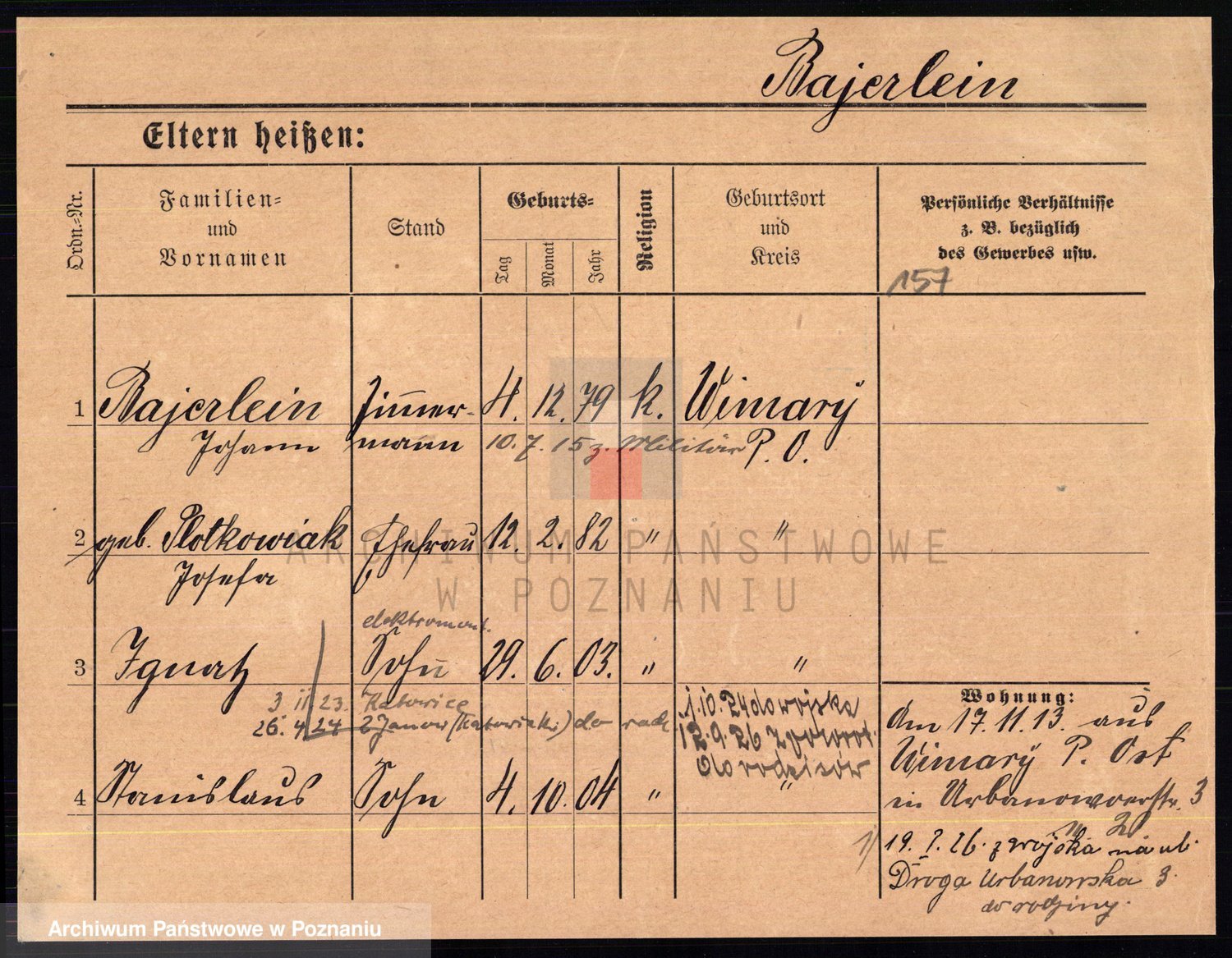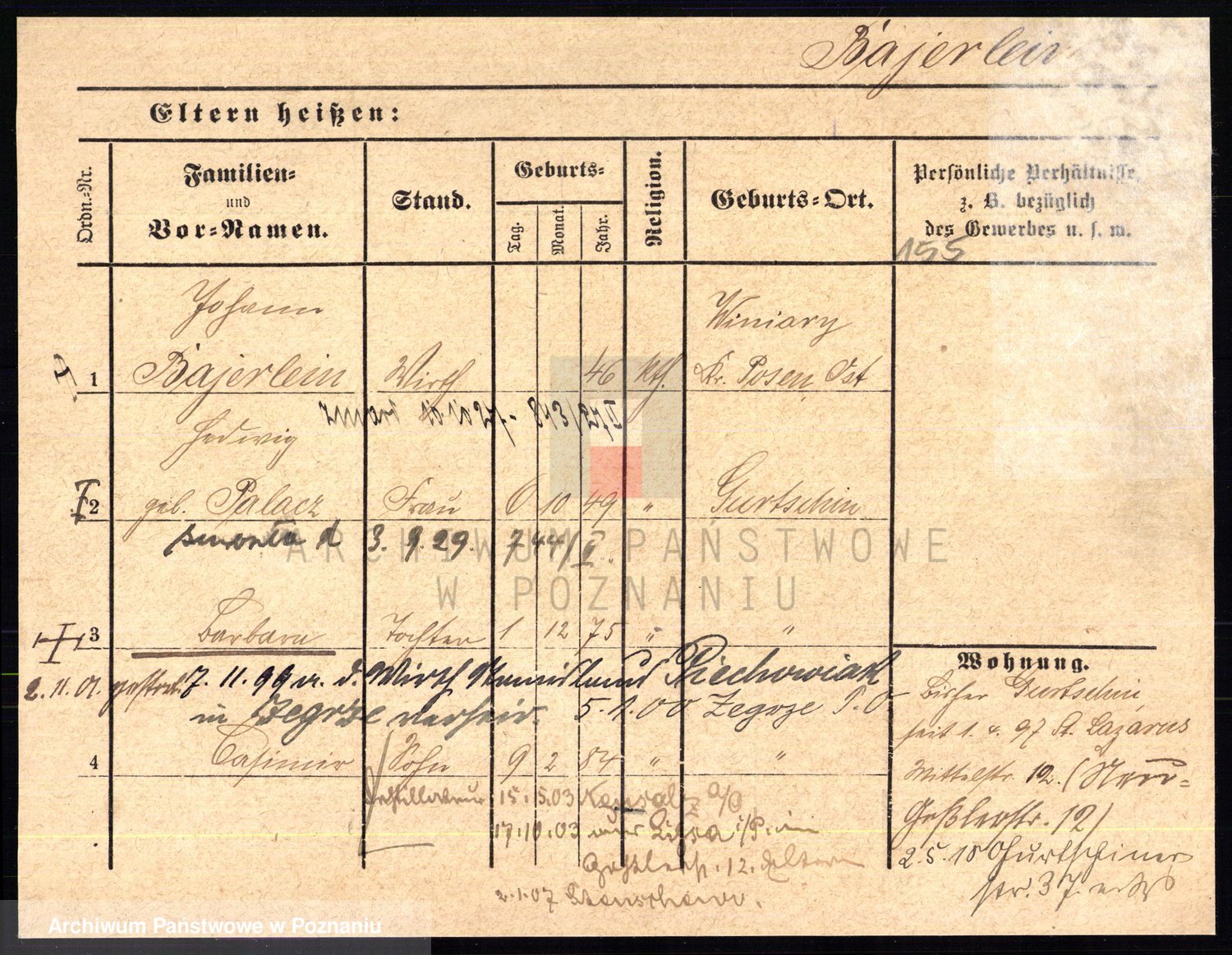 Podgląd karty osobowej dostępny jest po kliknięciu na nazwisko lub ikonkę karty. Można dokonywać powiększenia (ikony na górze) lub przechodzić między kolejnymi skanami (strzałki po bokach).