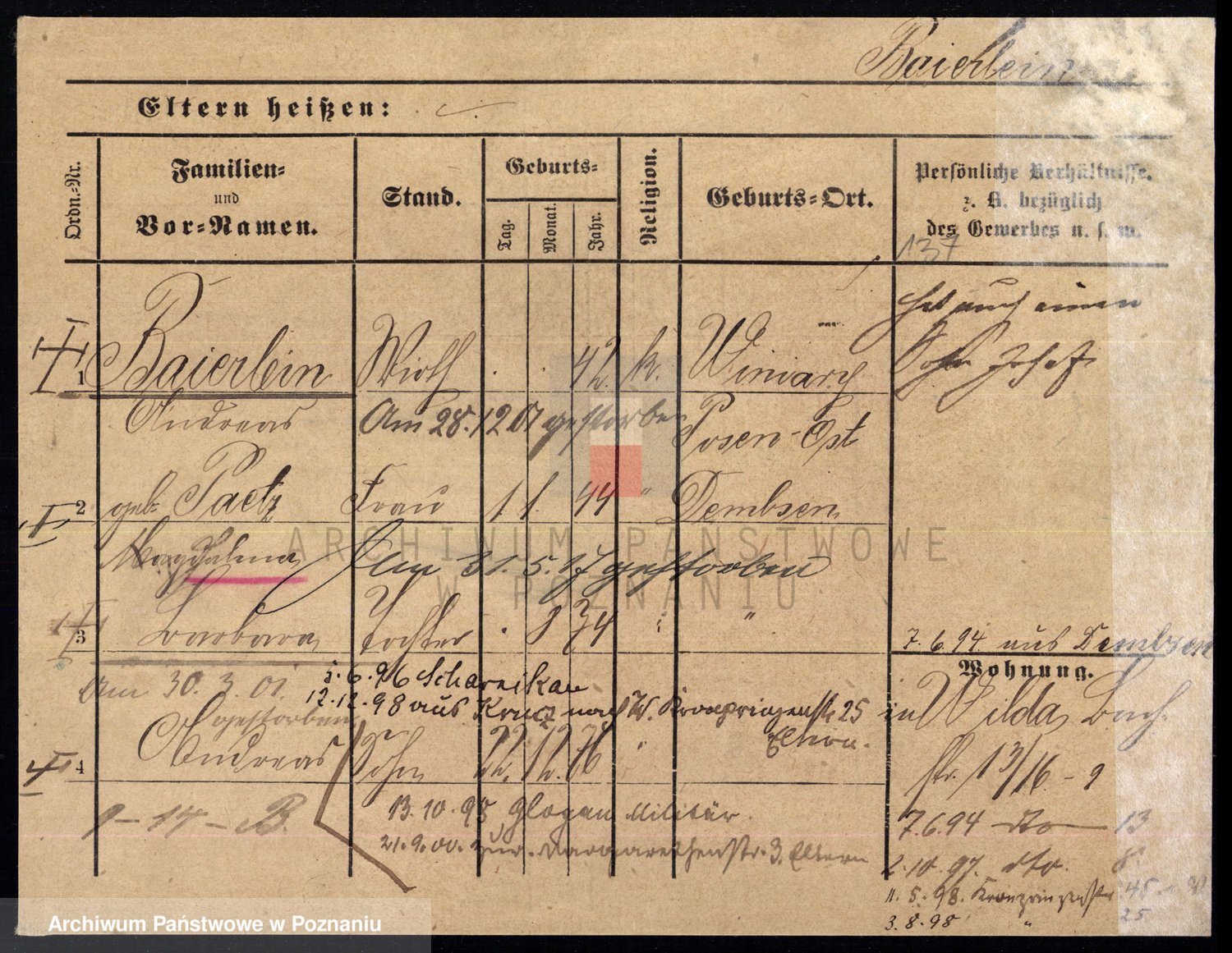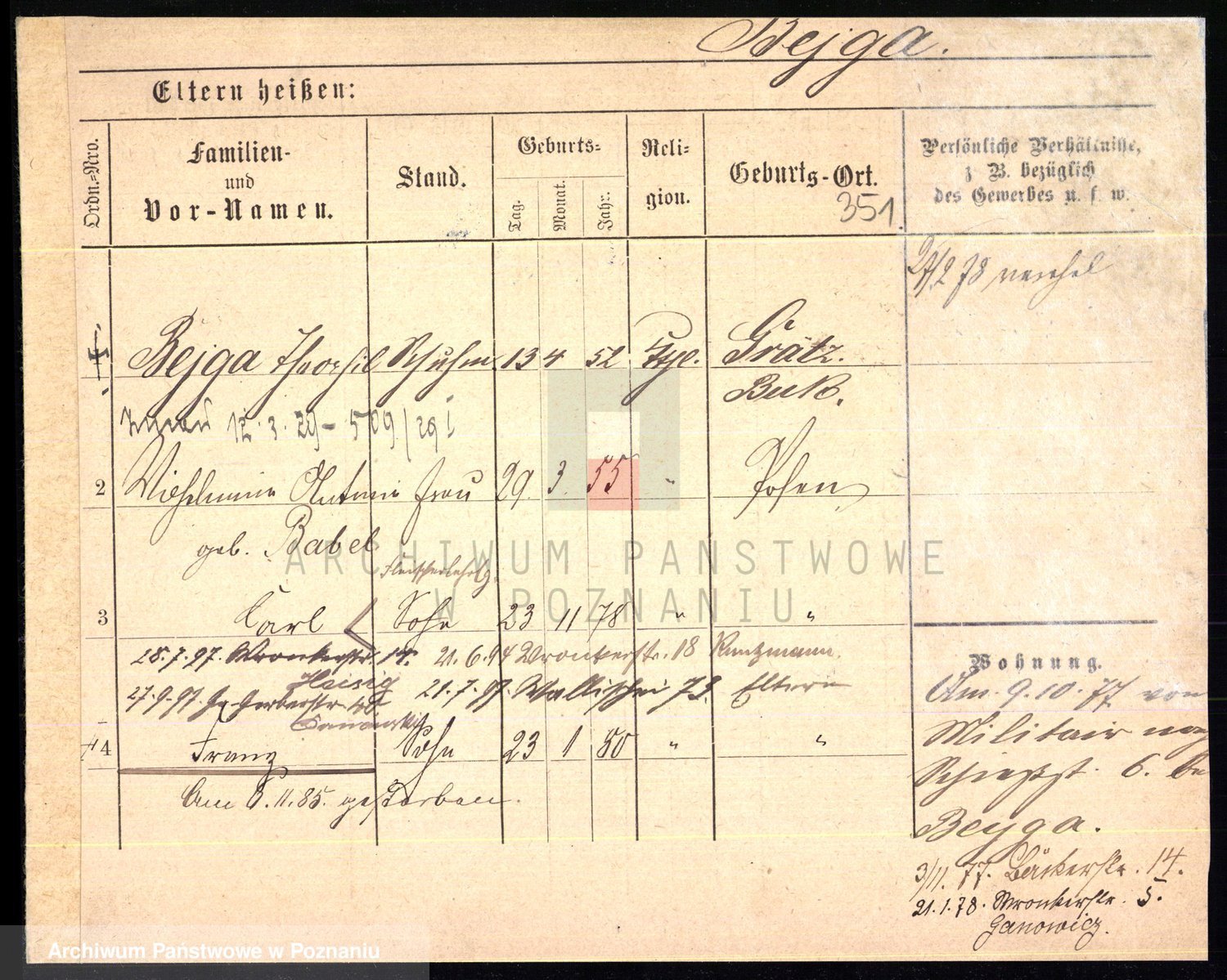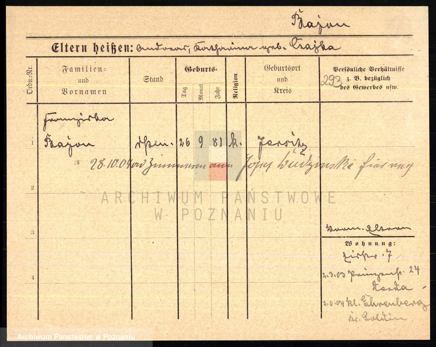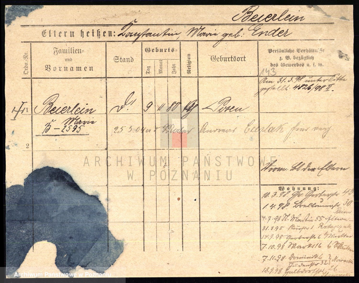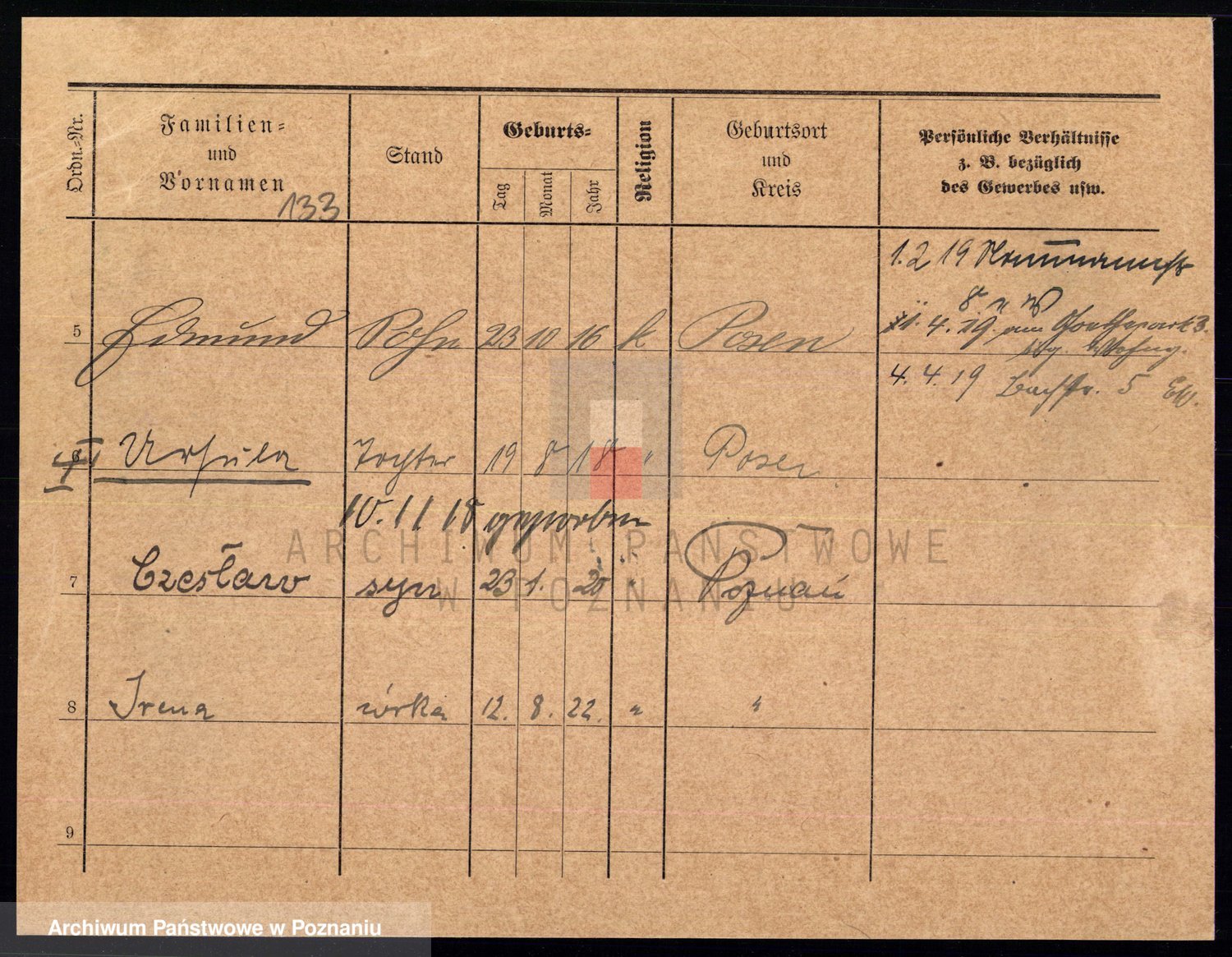 Podgląd karty osobowej dostępny jest po kliknięciu na nazwisko lub ikonkę karty. Można dokonywać powiększenia (ikony na górze) lub przechodzić między kolejnymi skanami (strzałki po bokach).
