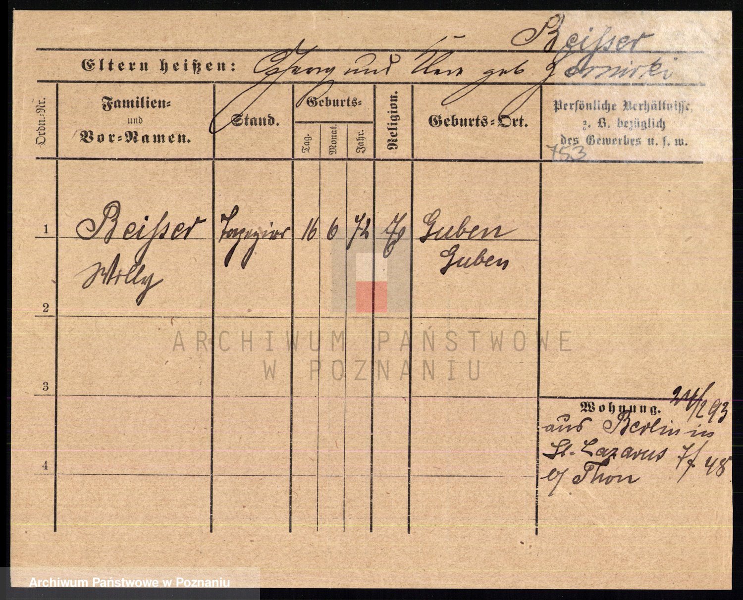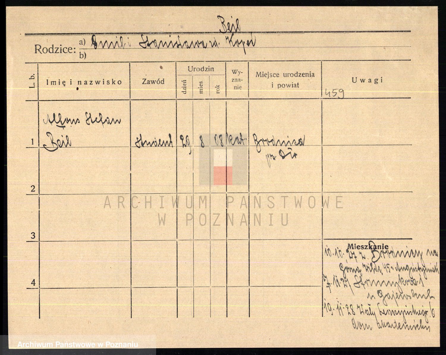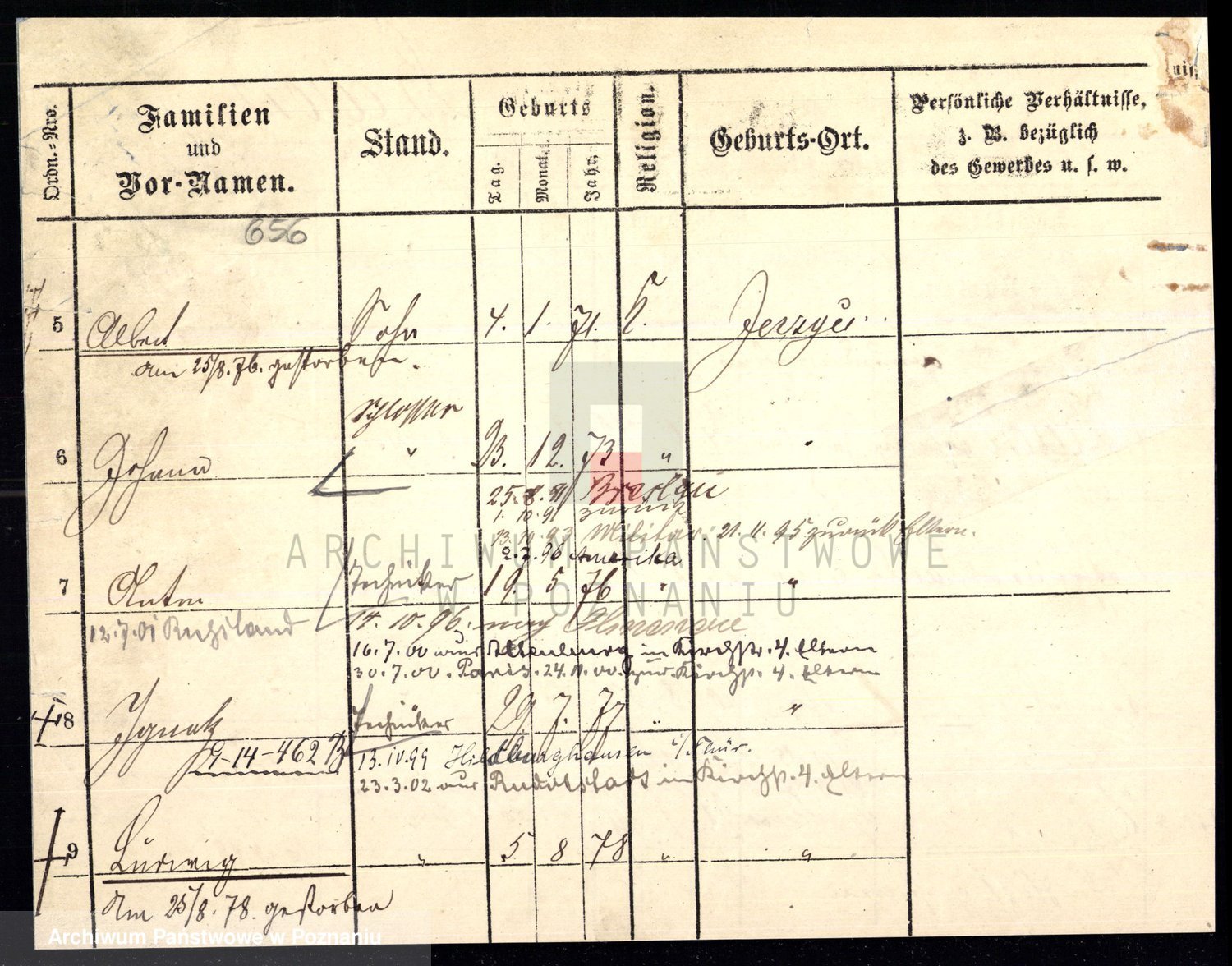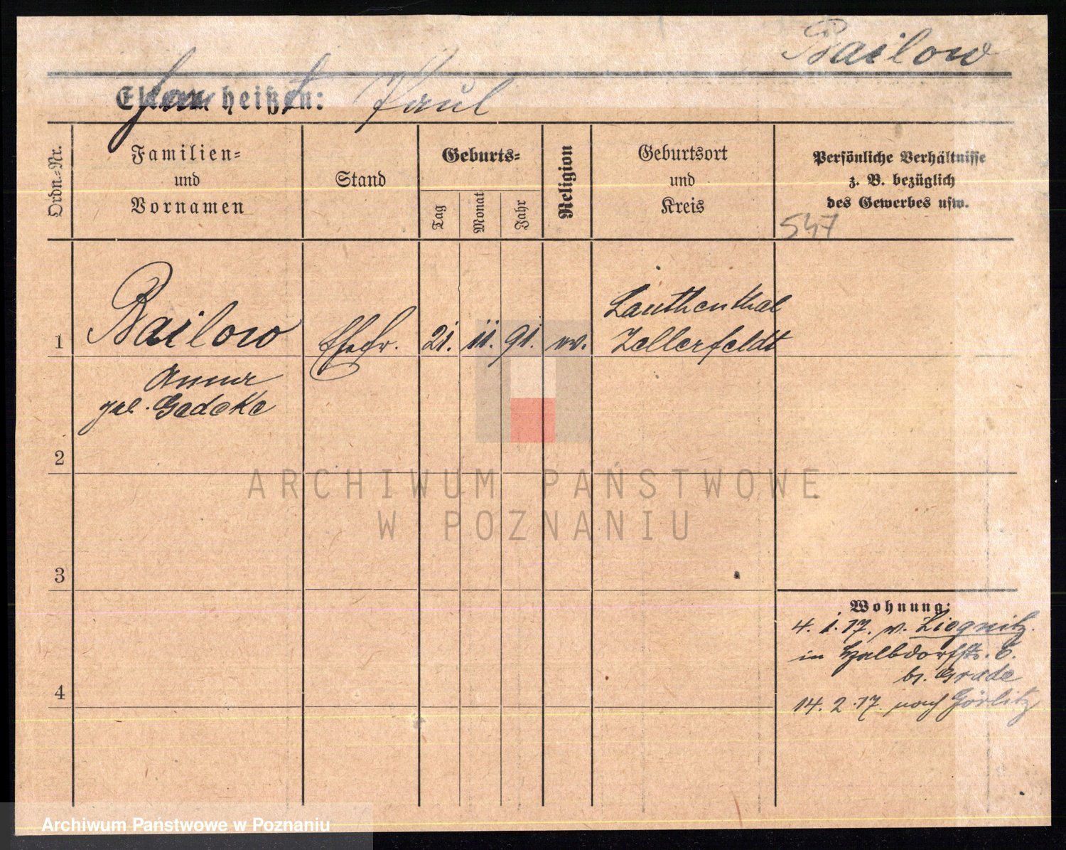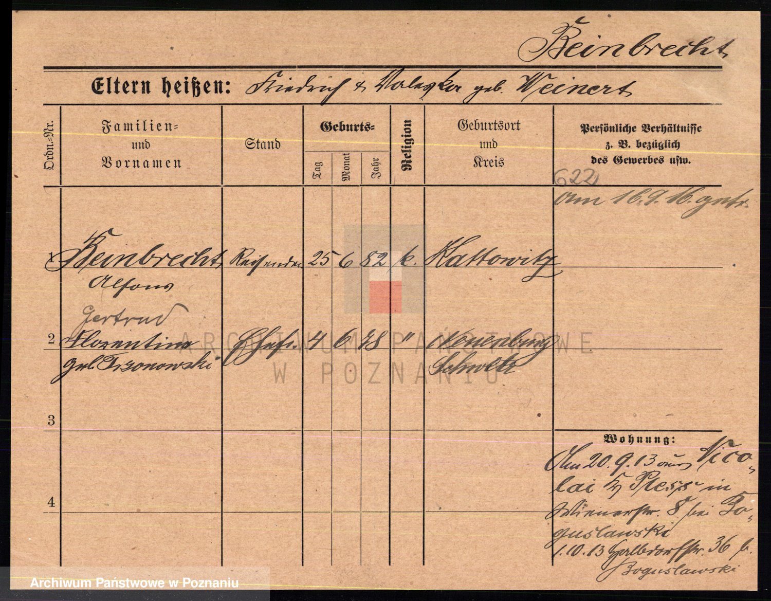 Podgląd karty osobowej dostępny jest po kliknięciu na nazwisko lub ikonkę karty. Można dokonywać powiększenia (ikony na górze) lub przechodzić między kolejnymi skanami (strzałki po bokach).
