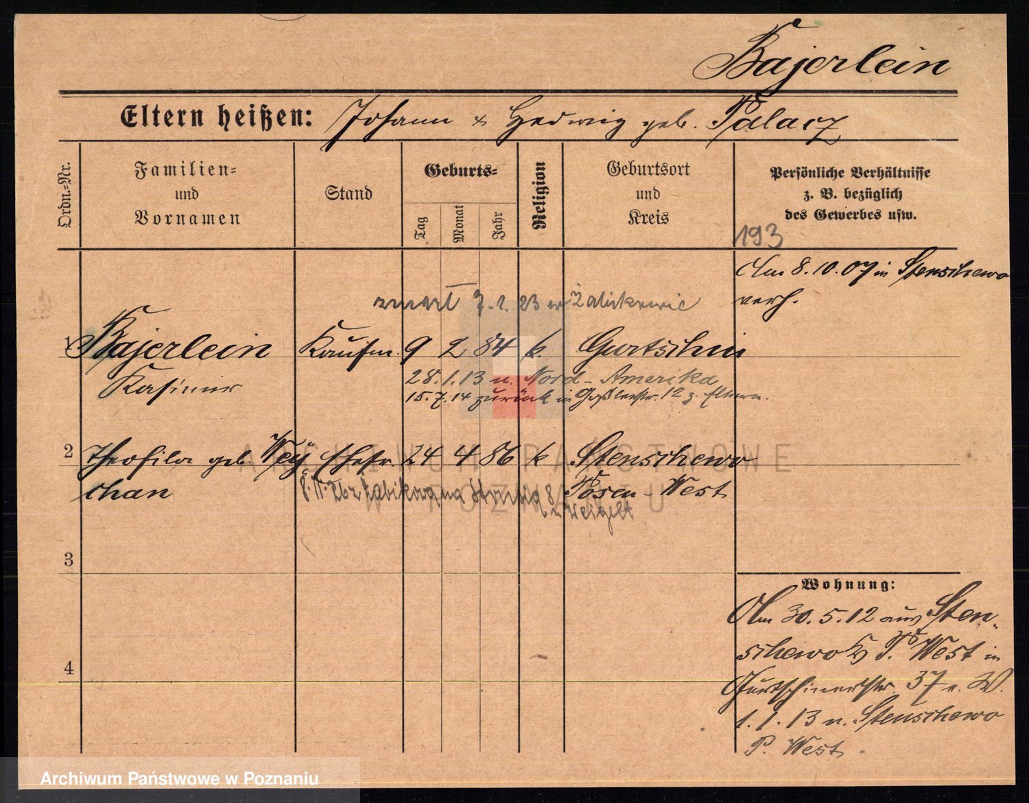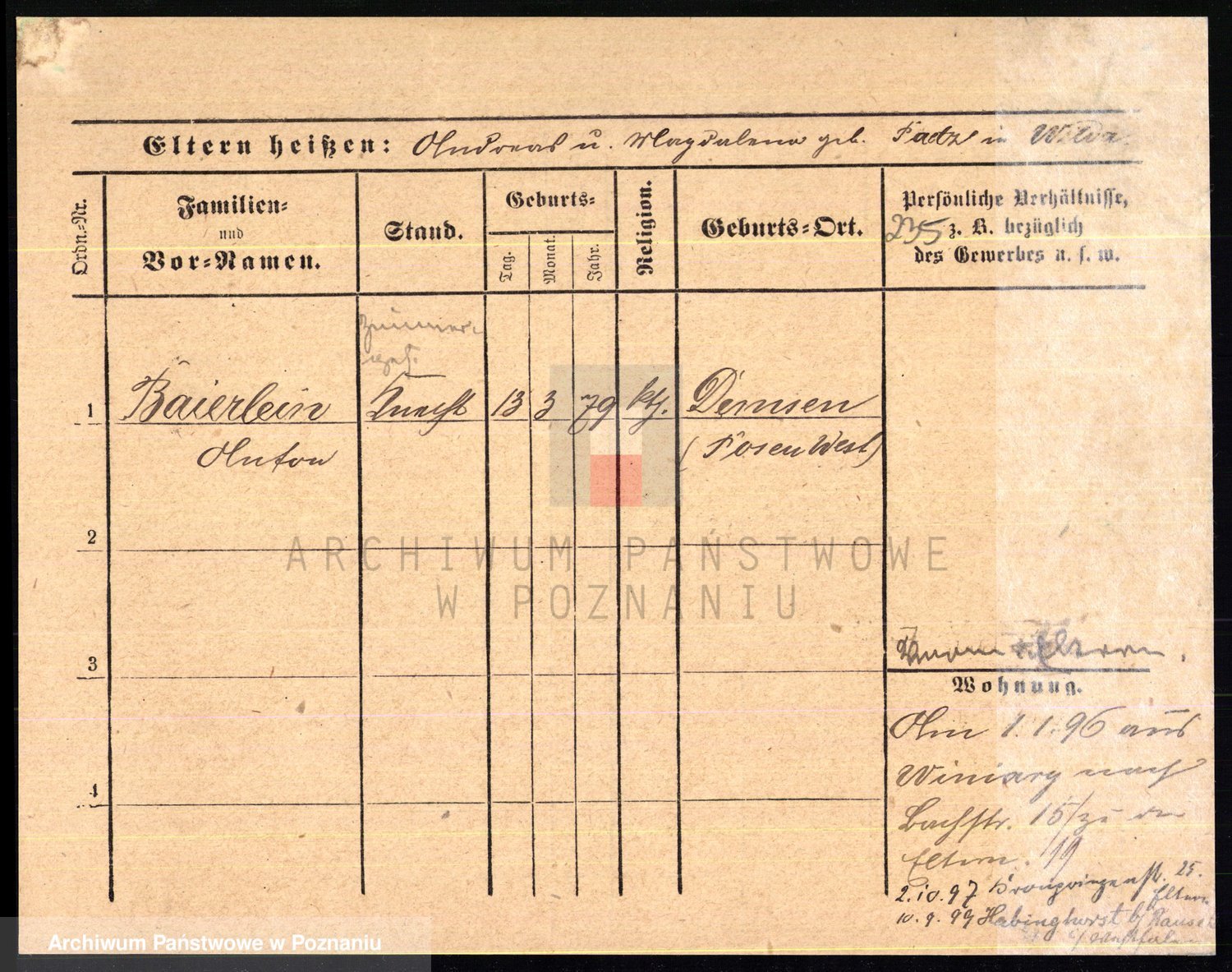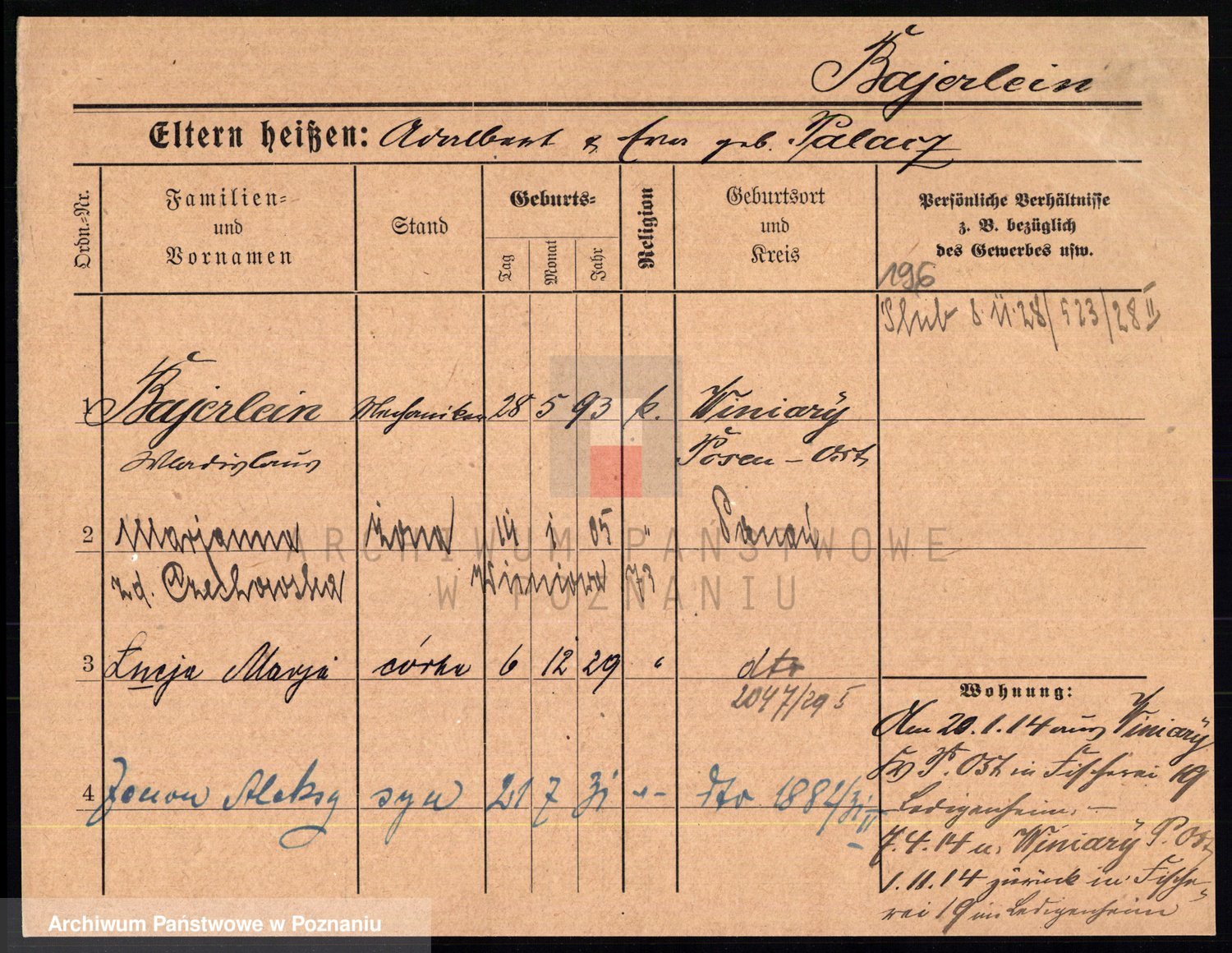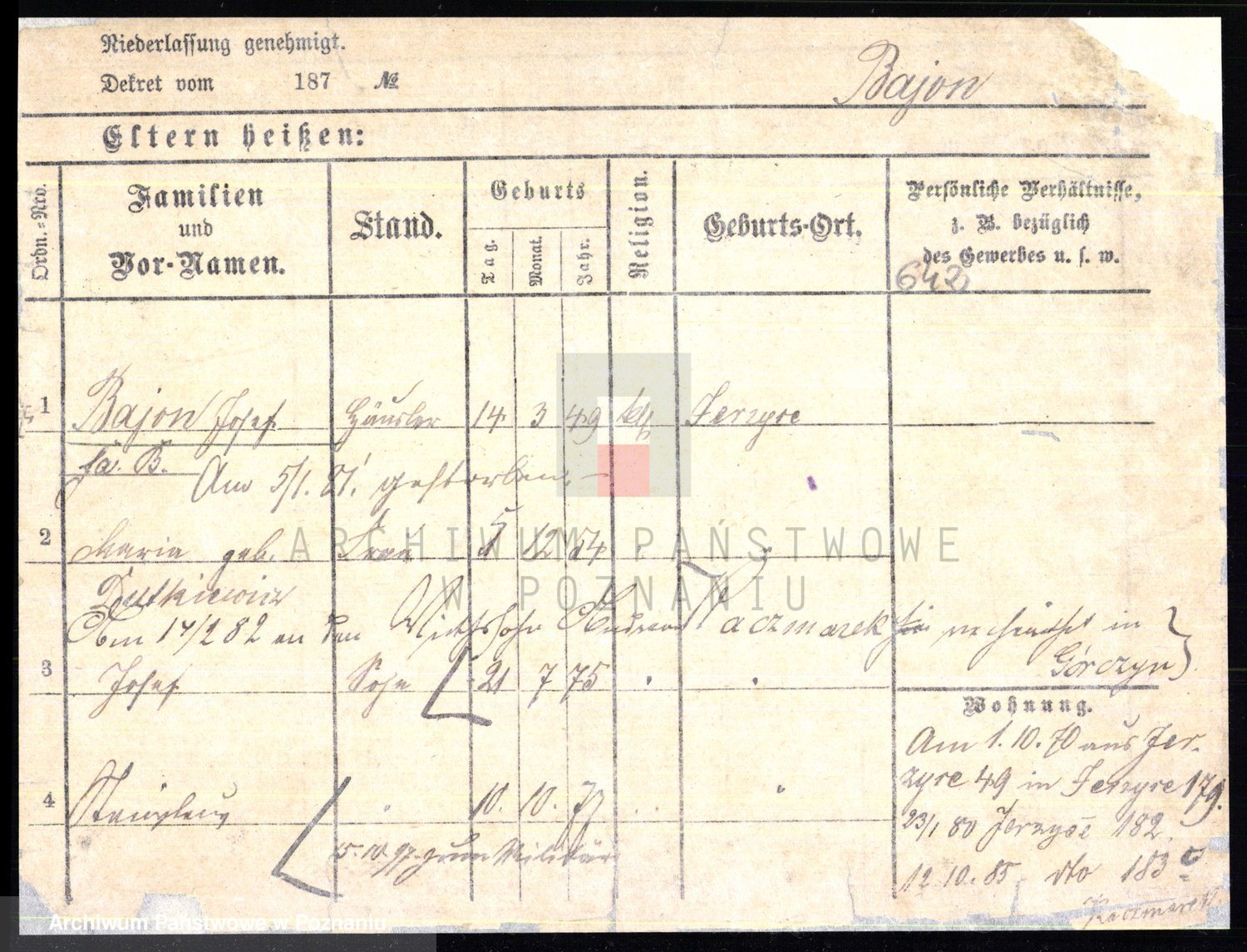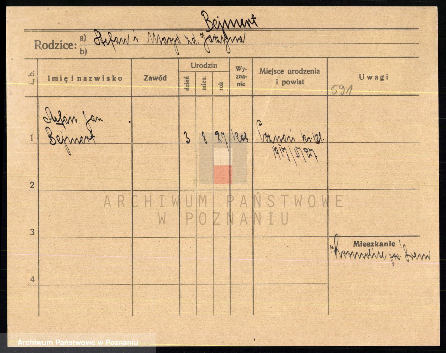 Podgląd karty osobowej dostępny jest po kliknięciu na nazwisko lub ikonkę karty. Można dokonywać powiększenia (ikony na górze) lub przechodzić między kolejnymi skanami (strzałki po bokach).