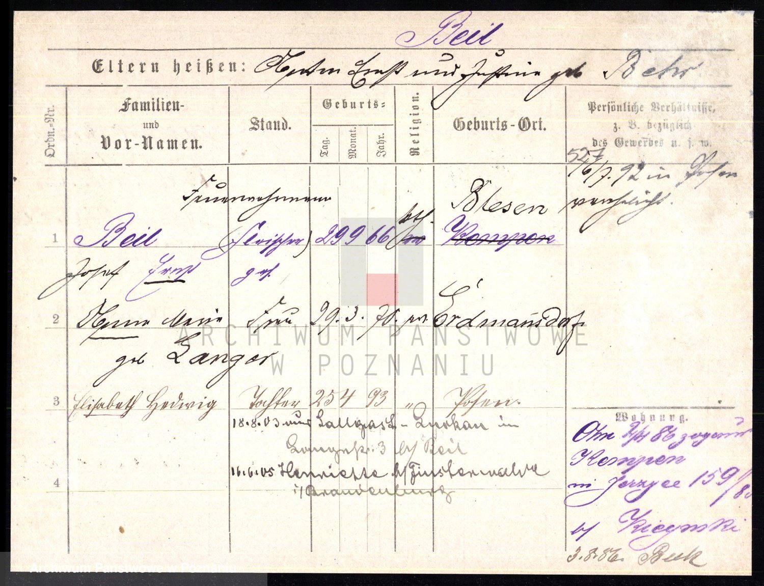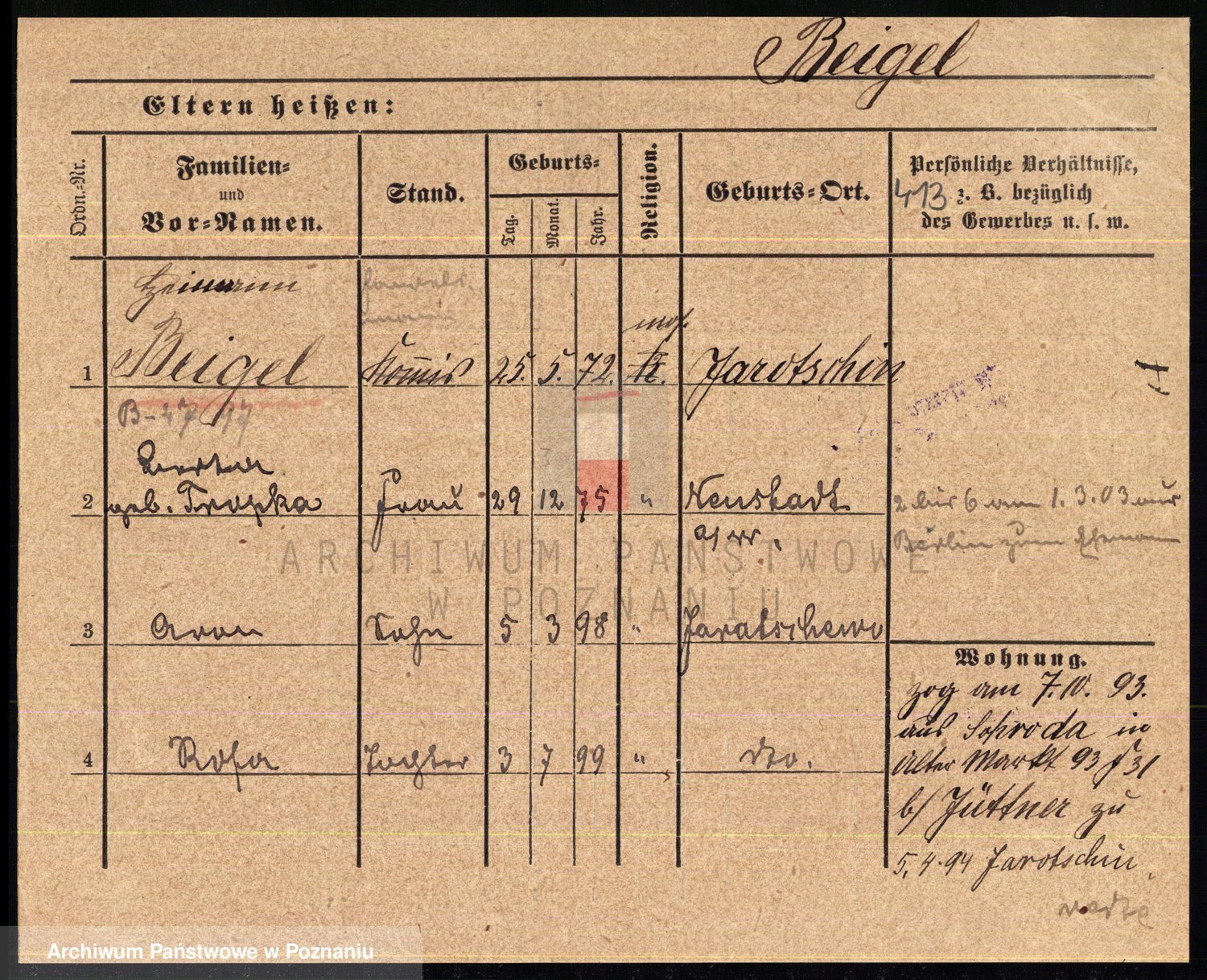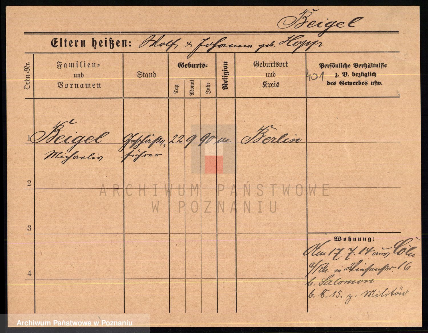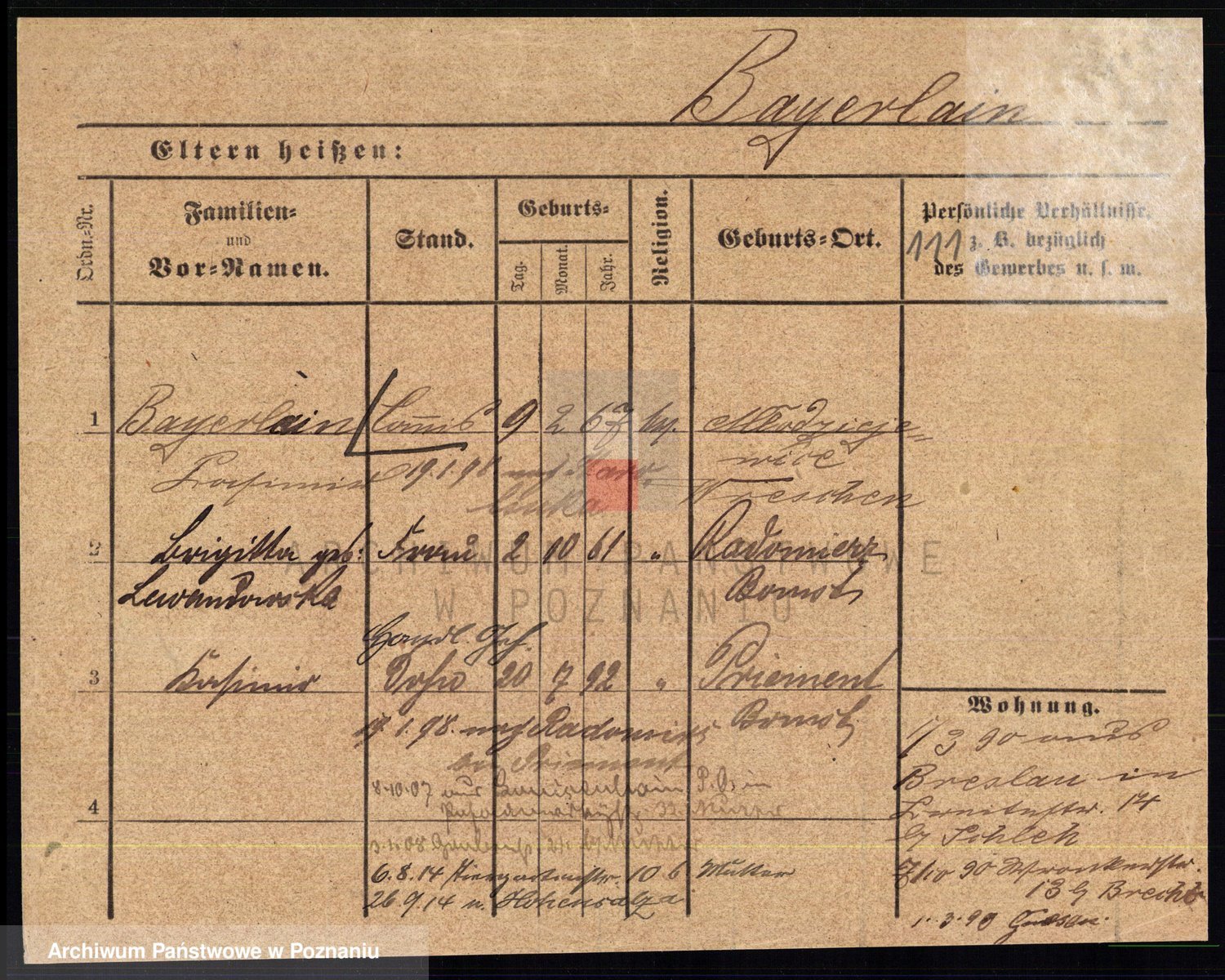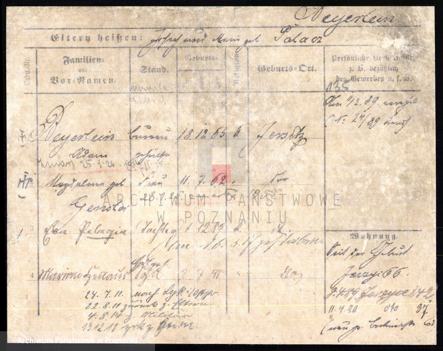 Podgląd karty osobowej dostępny jest po kliknięciu na nazwisko lub ikonkę karty. Można dokonywać powiększenia (ikony na górze) lub przechodzić między kolejnymi skanami (strzałki po bokach).
