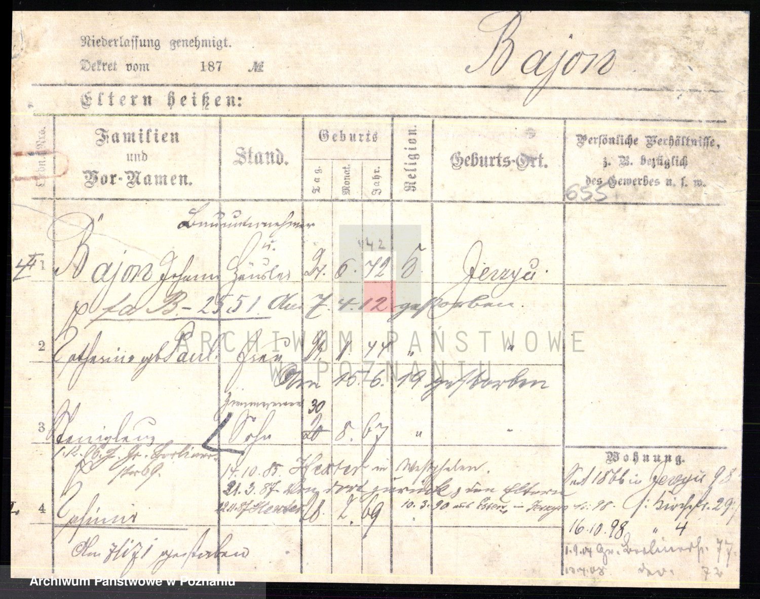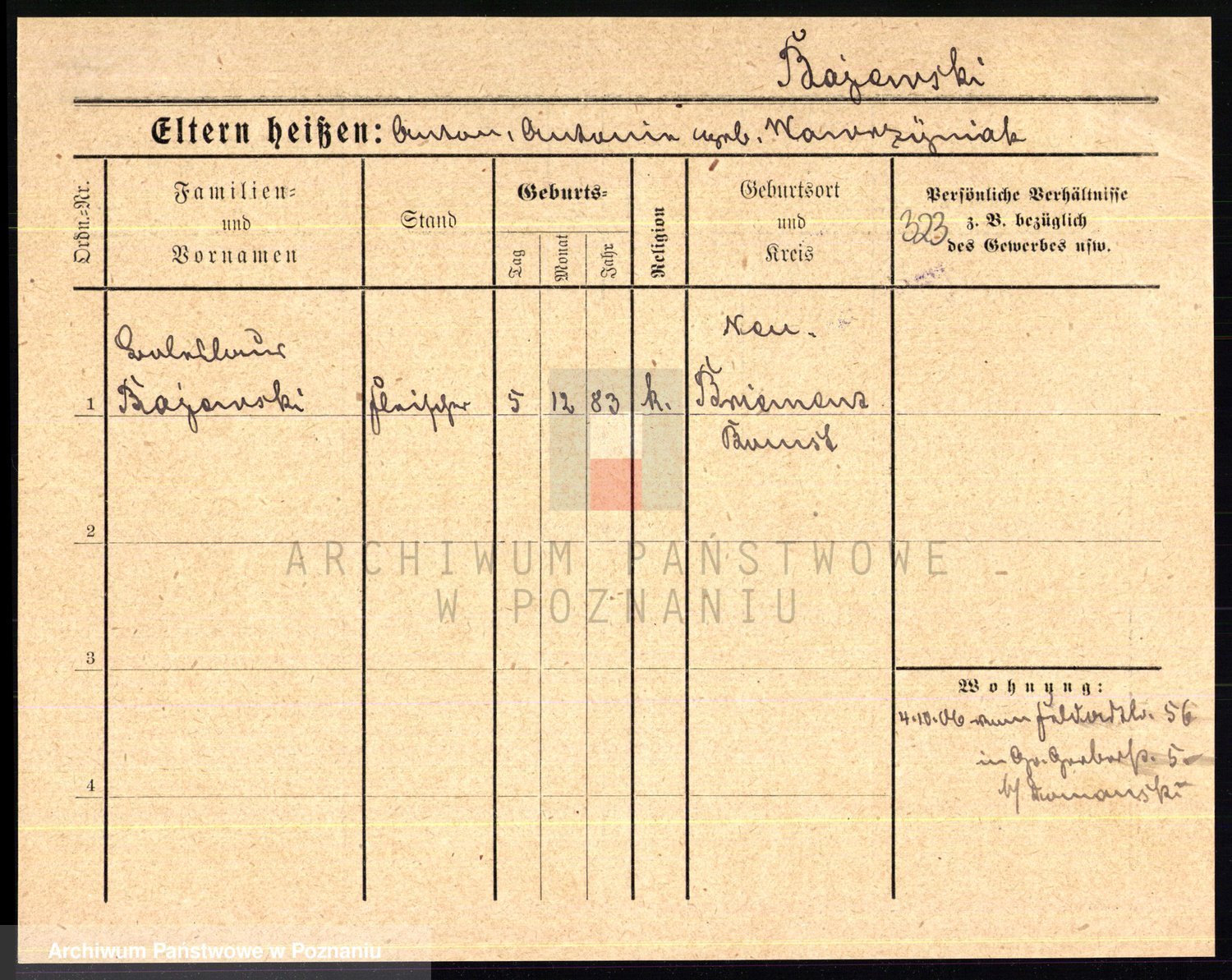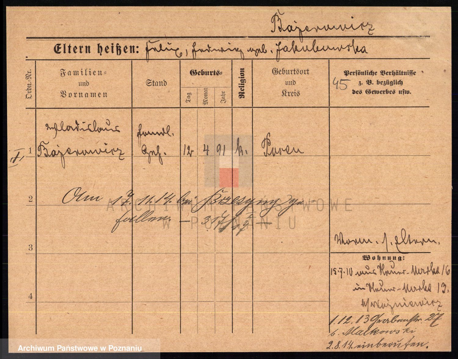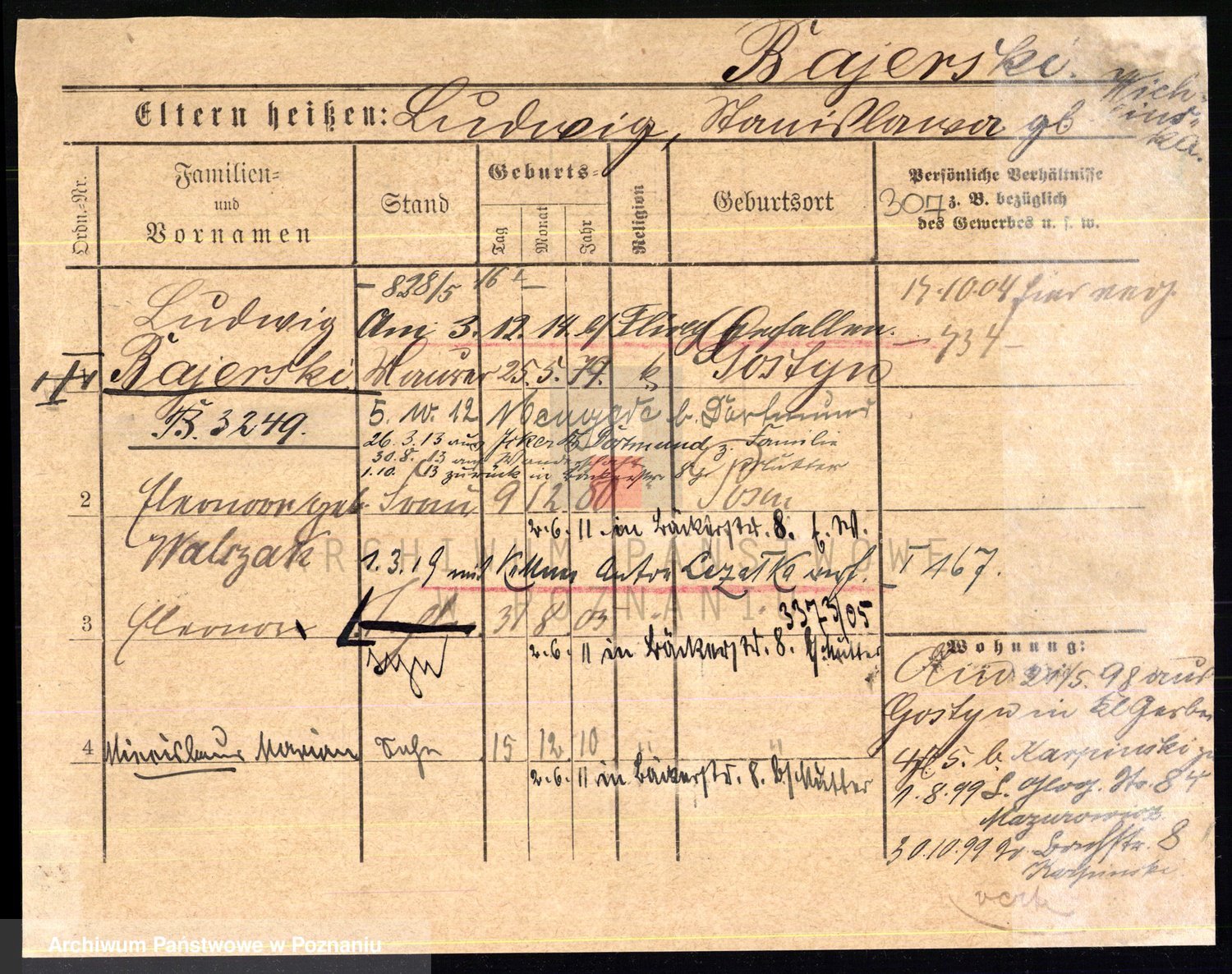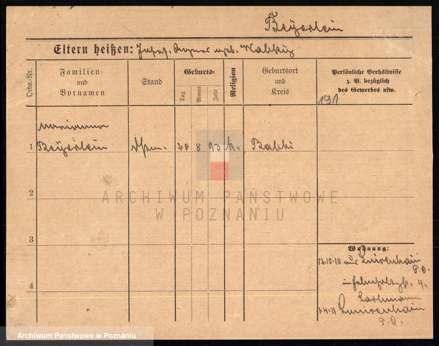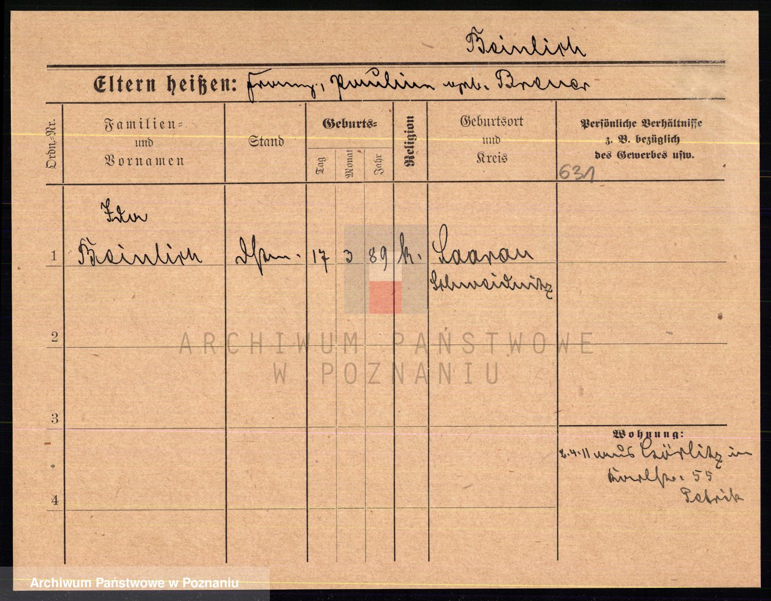 Podgląd karty osobowej dostępny jest po kliknięciu na nazwisko lub ikonkę karty. Można dokonywać powiększenia (ikony na górze) lub przechodzić między kolejnymi skanami (strzałki po bokach).