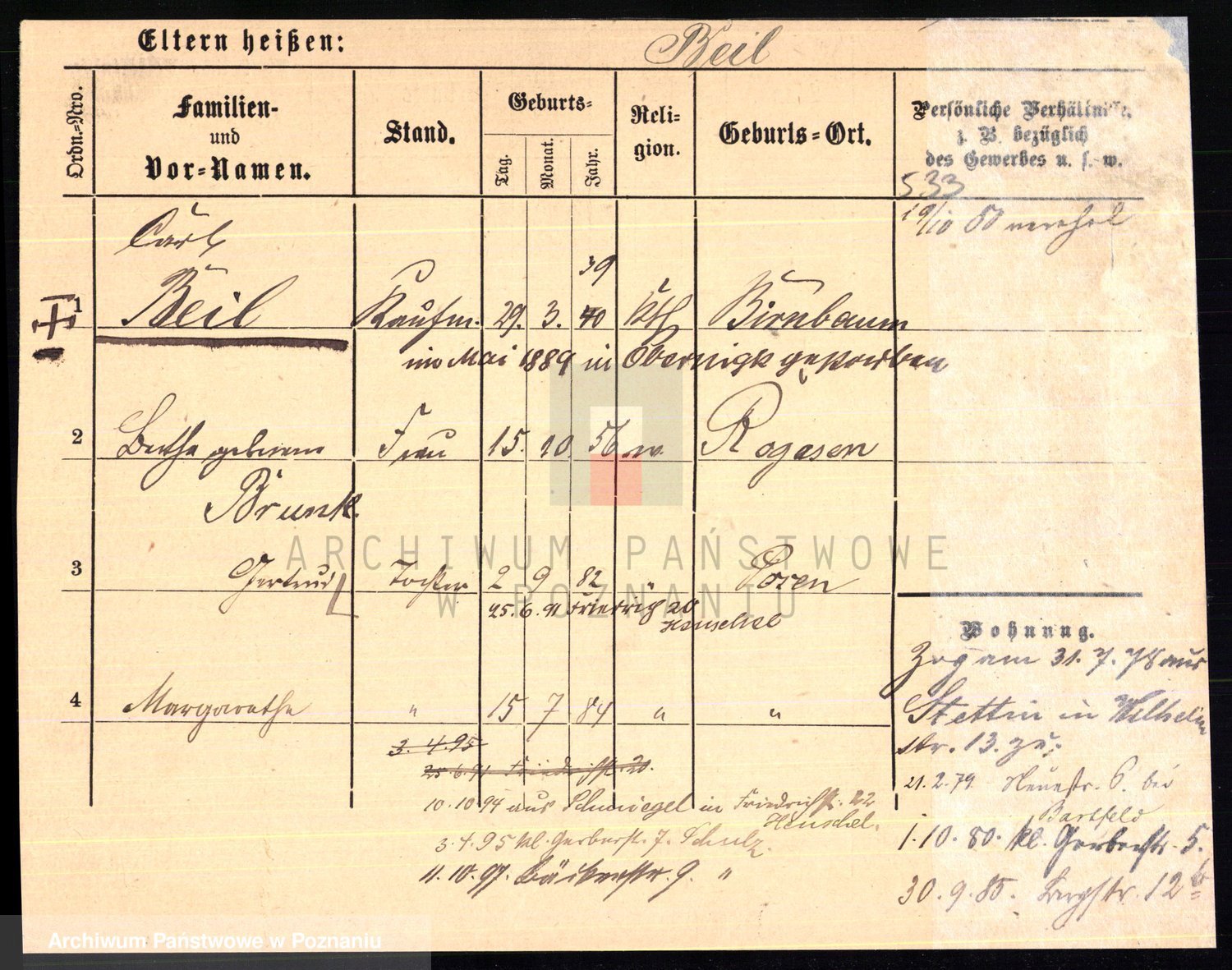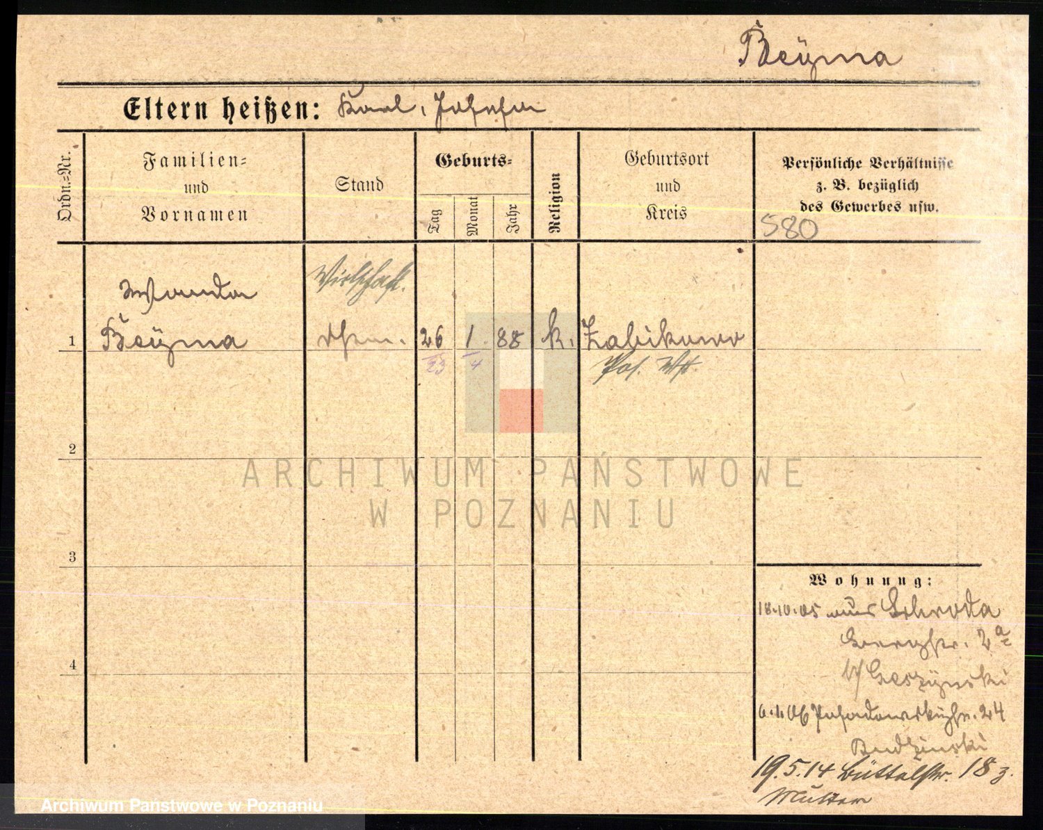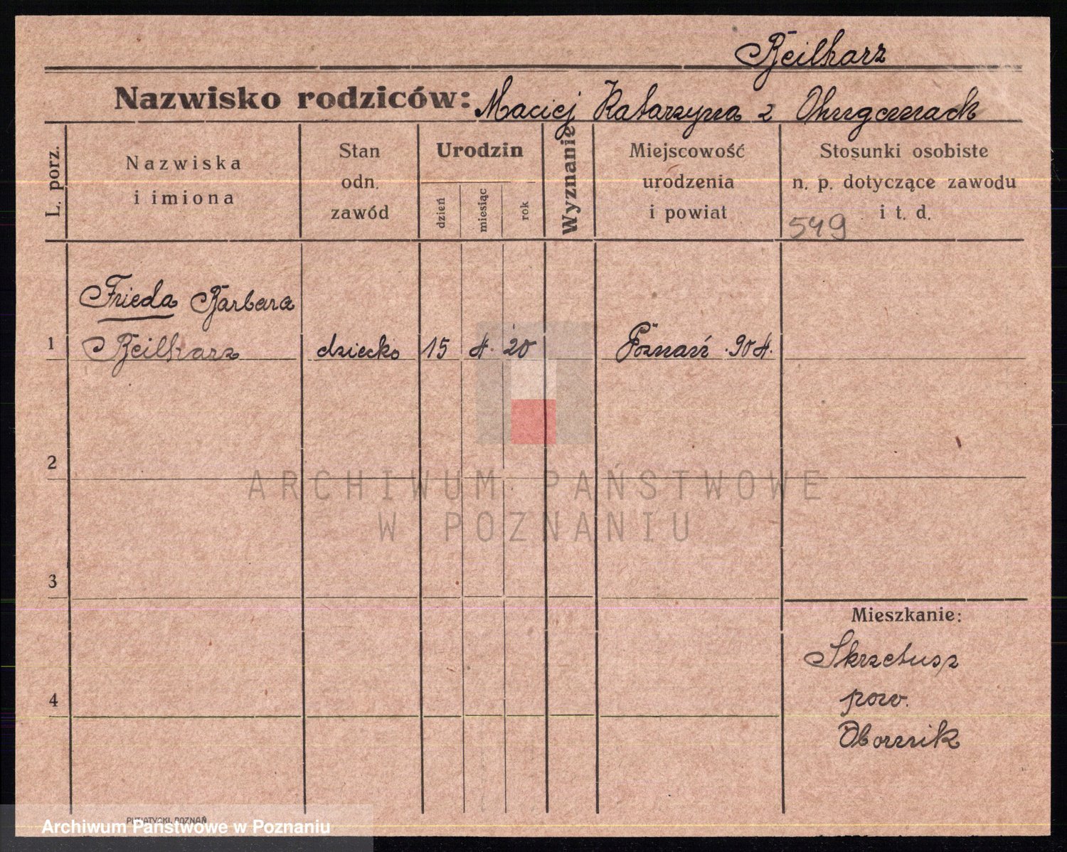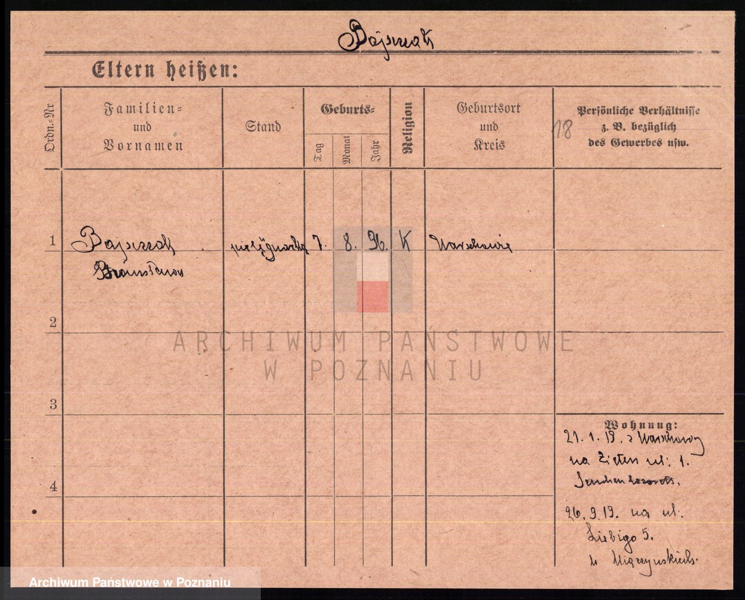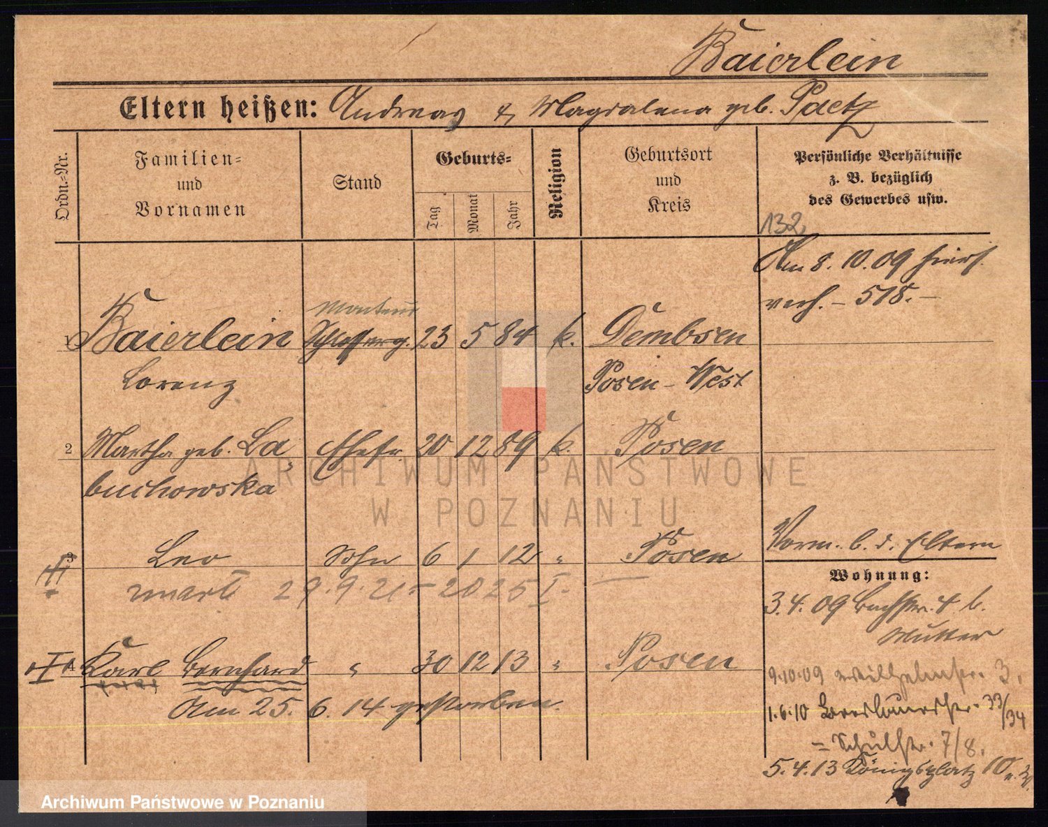 Podgląd karty osobowej dostępny jest po kliknięciu na nazwisko lub ikonkę karty. Można dokonywać powiększenia (ikony na górze) lub przechodzić między kolejnymi skanami (strzałki po bokach).