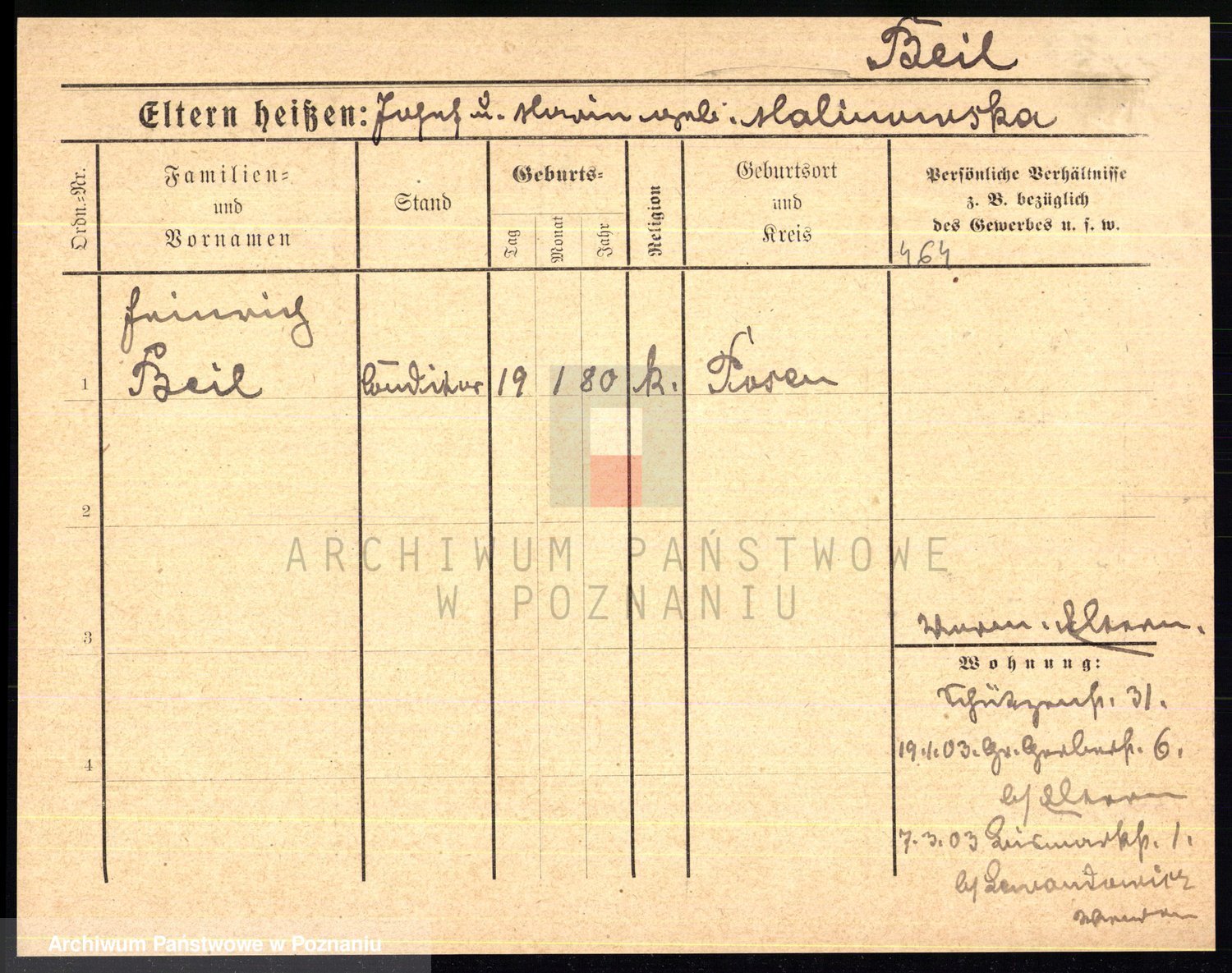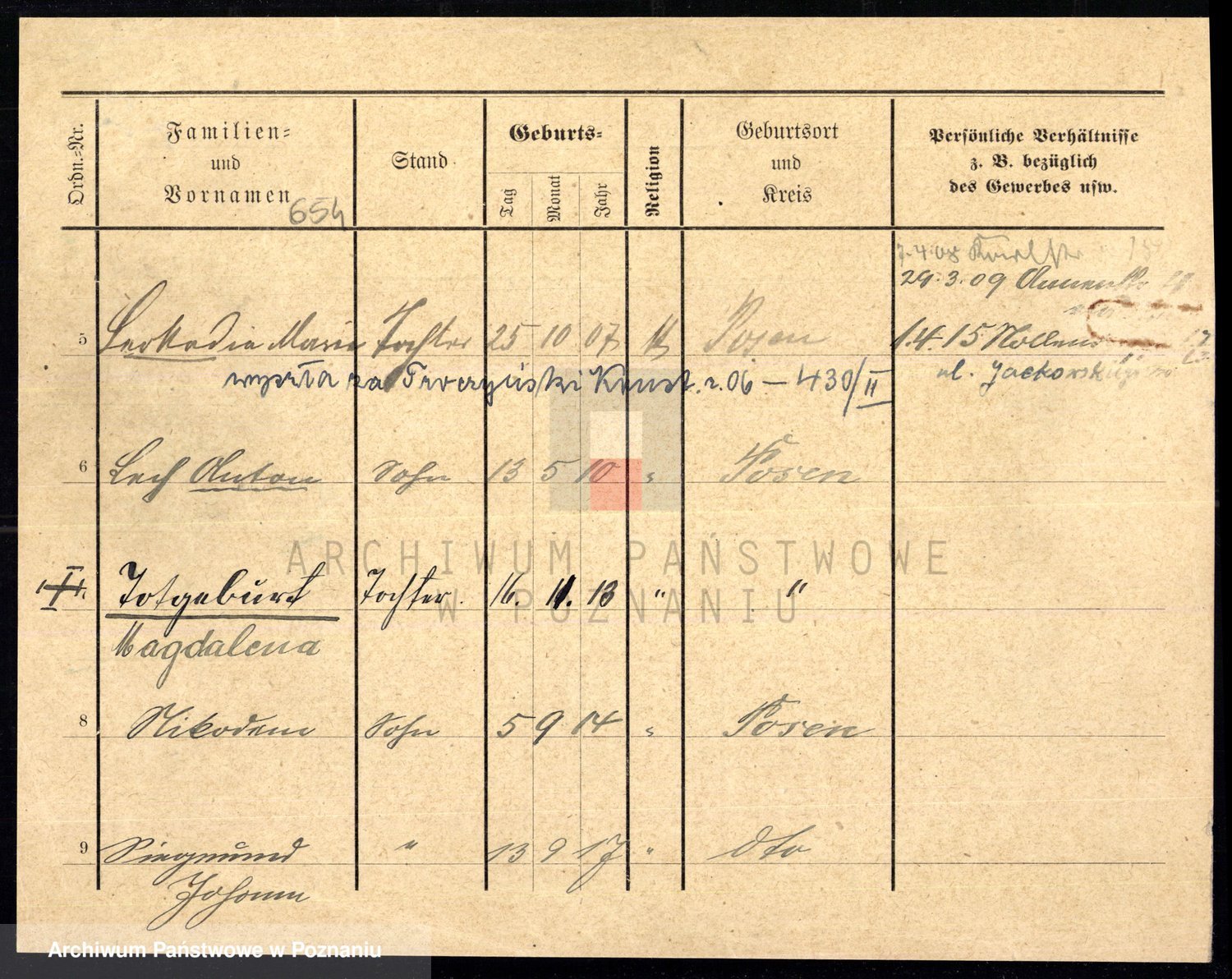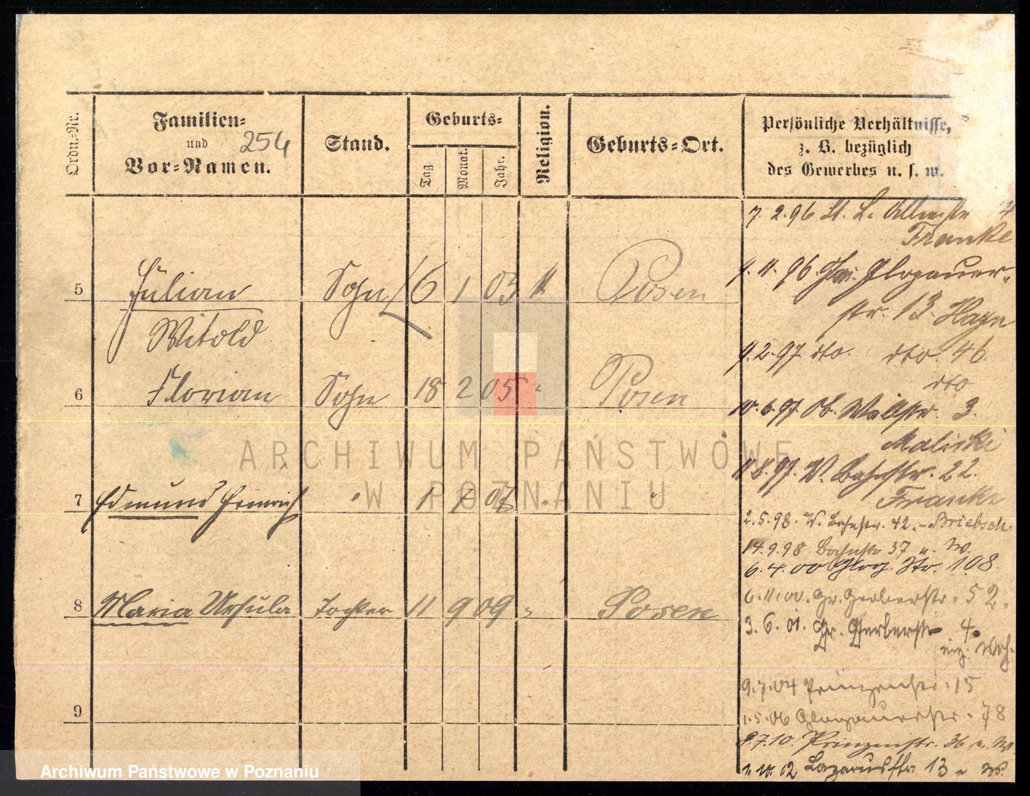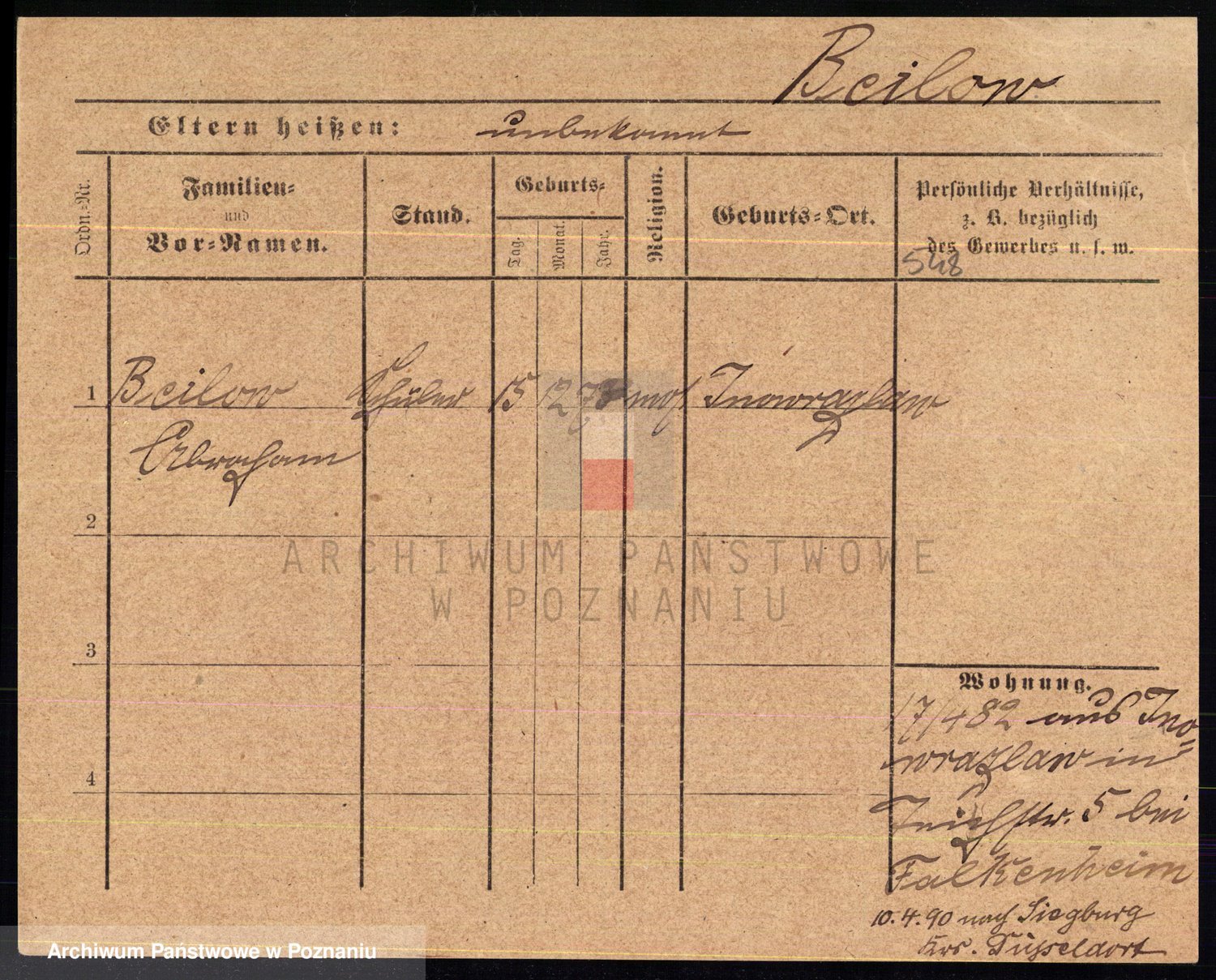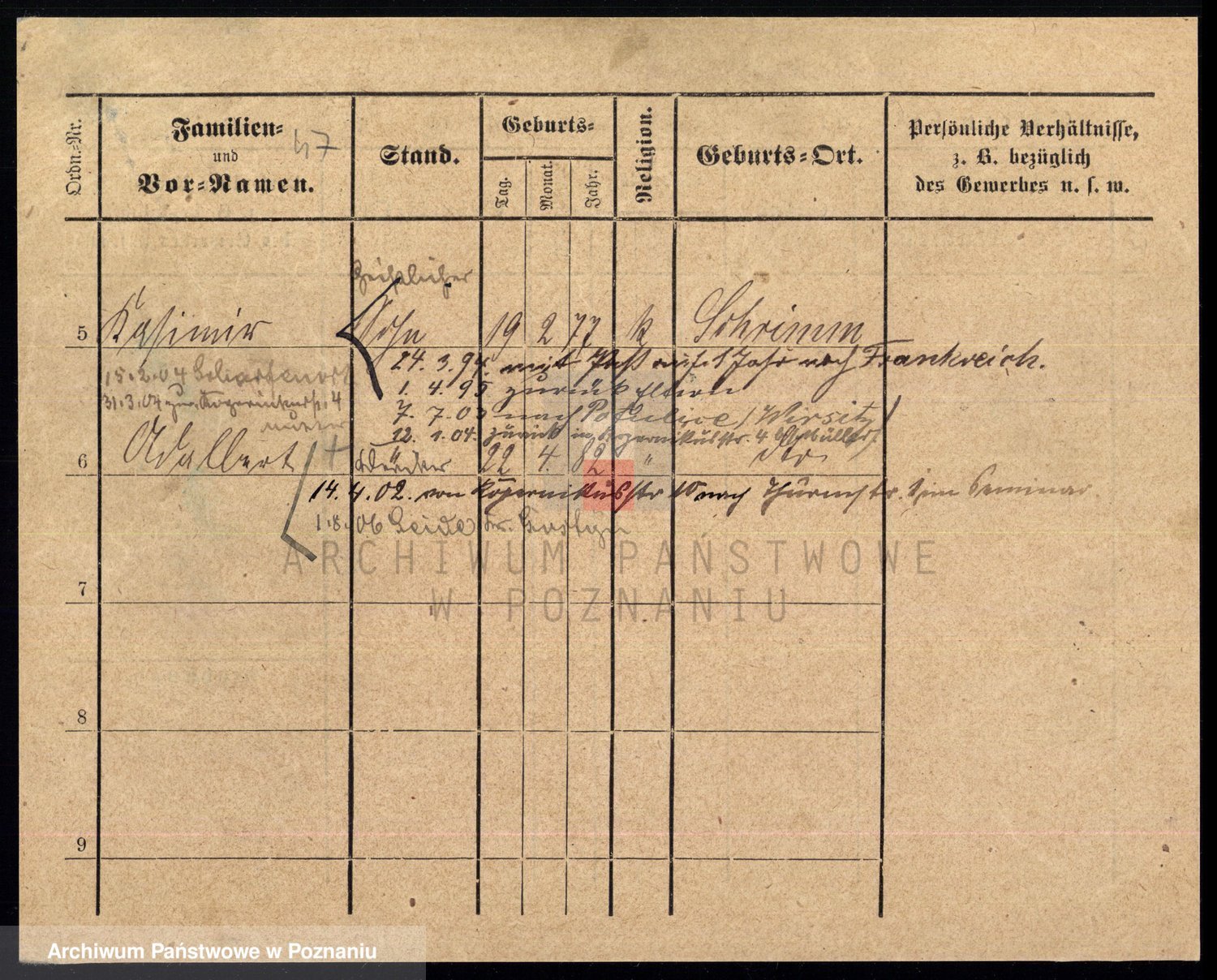 Podgląd karty osobowej dostępny jest po kliknięciu na nazwisko lub ikonkę karty. Można dokonywać powiększenia (ikony na górze) lub przechodzić między kolejnymi skanami (strzałki po bokach).