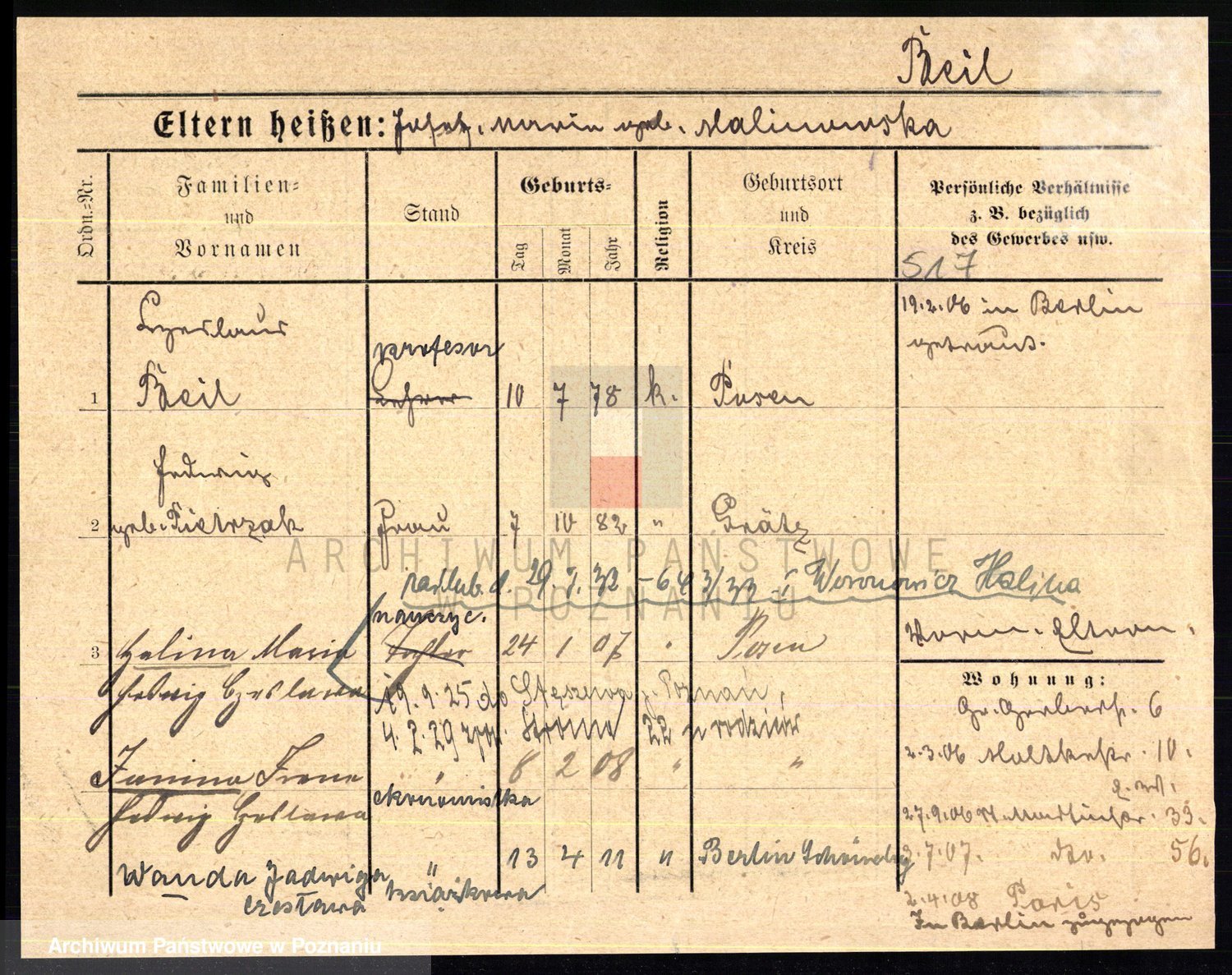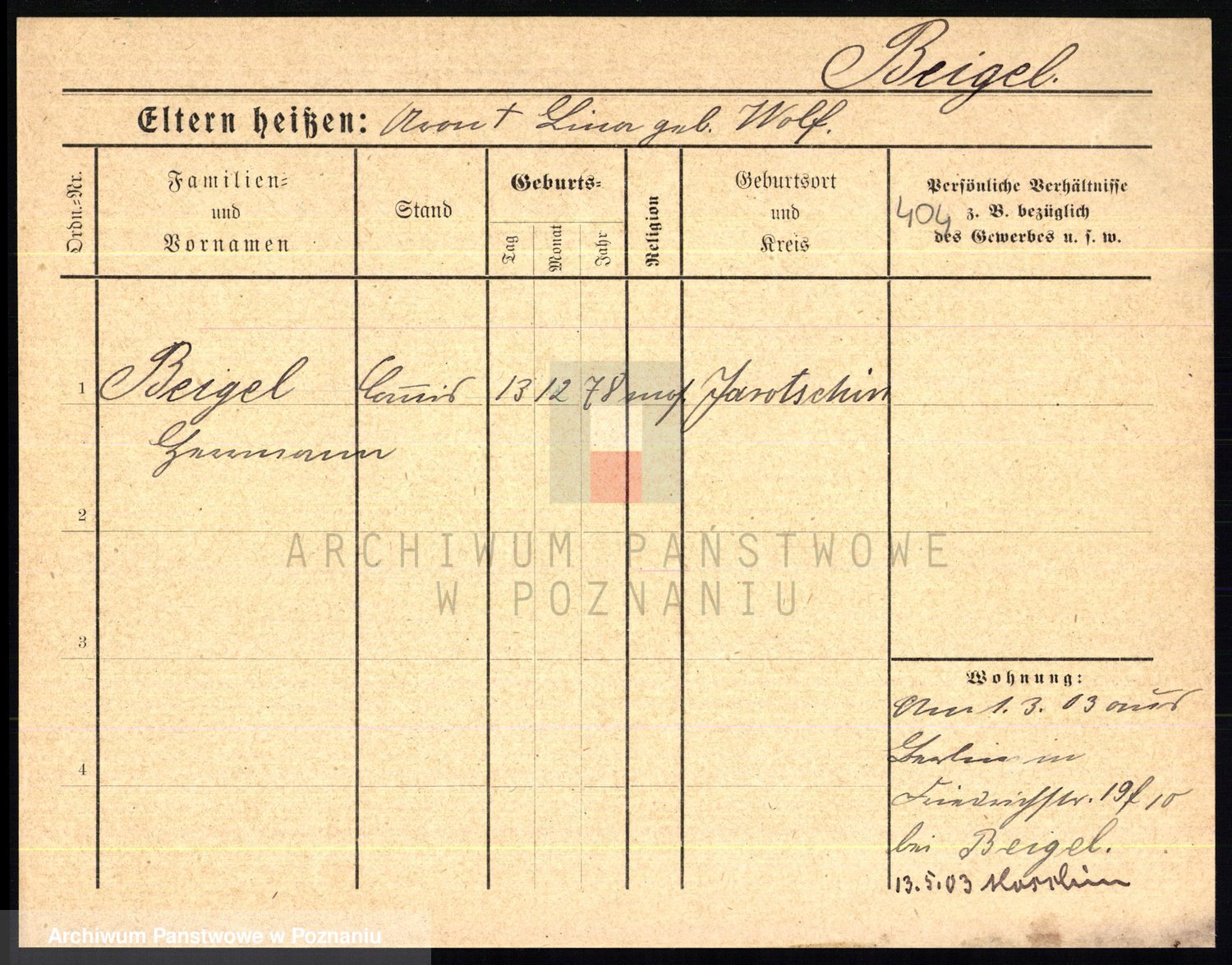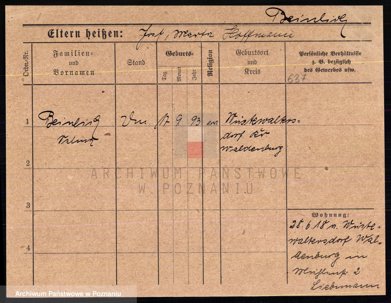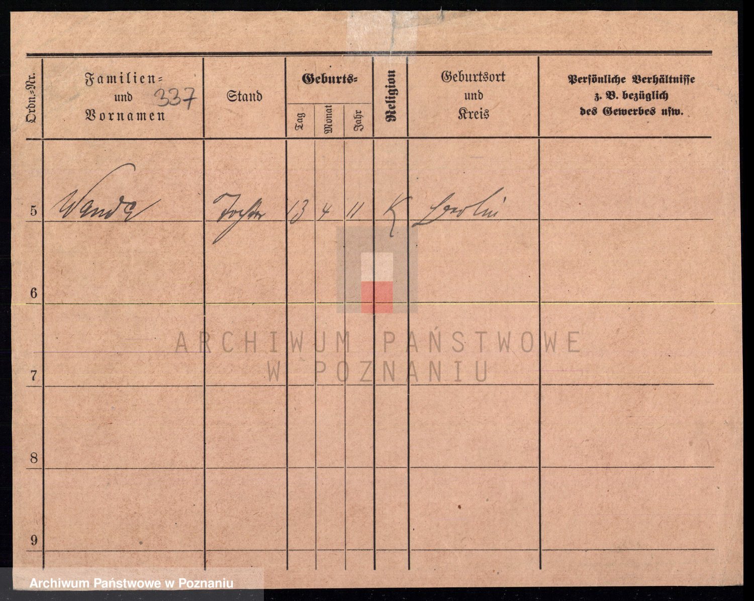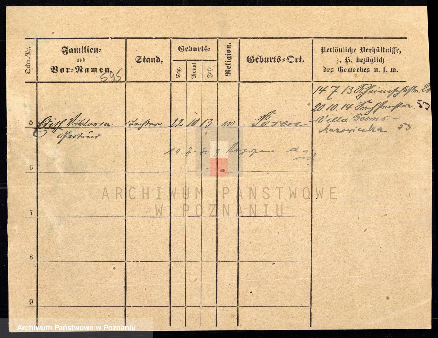 Podgląd karty osobowej dostępny jest po kliknięciu na nazwisko lub ikonkę karty. Można dokonywać powiększenia (ikony na górze) lub przechodzić między kolejnymi skanami (strzałki po bokach).