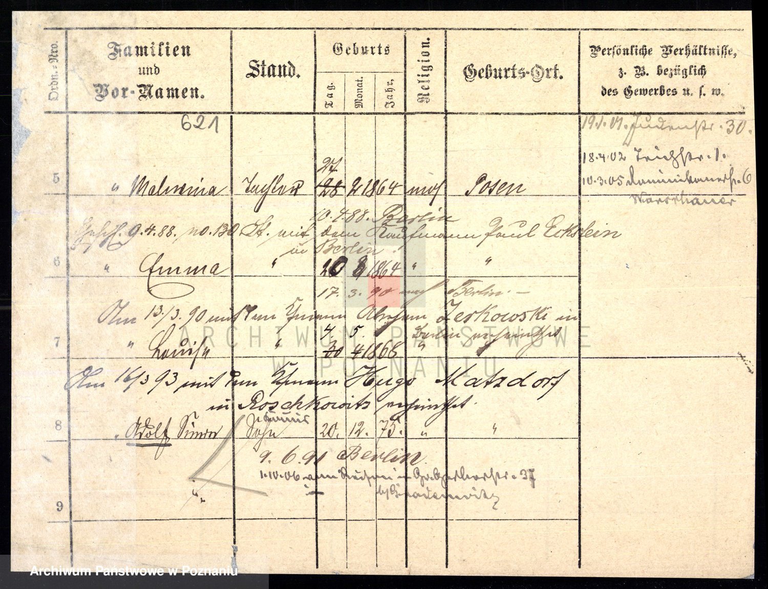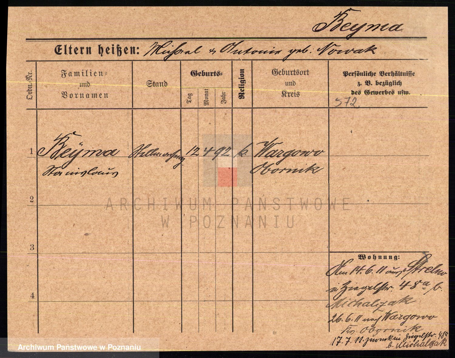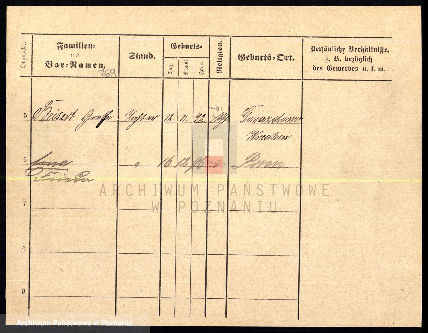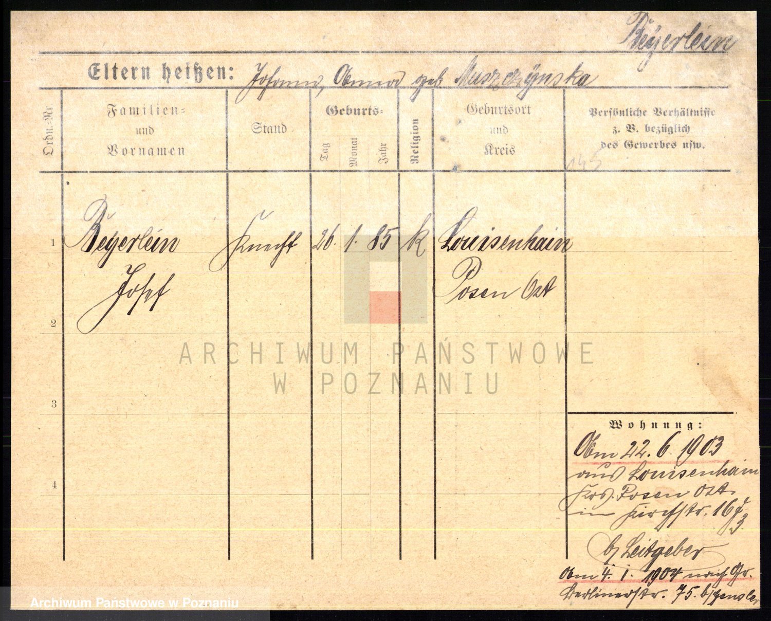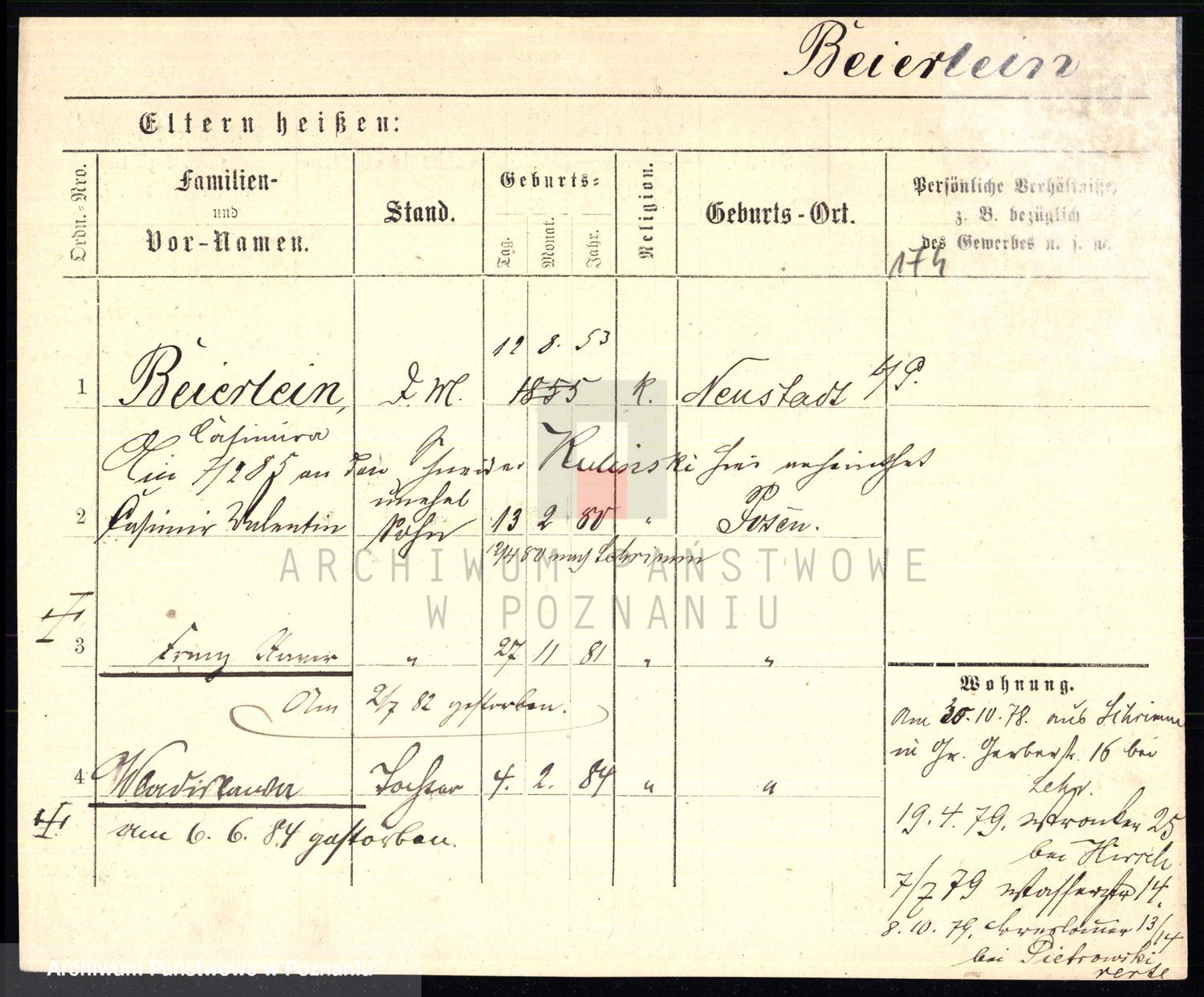 Podgląd karty osobowej dostępny jest po kliknięciu na nazwisko lub ikonkę karty. Można dokonywać powiększenia (ikony na górze) lub przechodzić między kolejnymi skanami (strzałki po bokach).