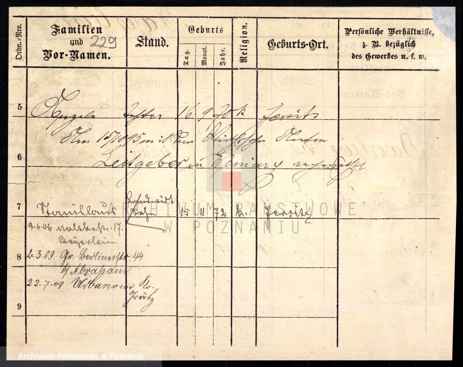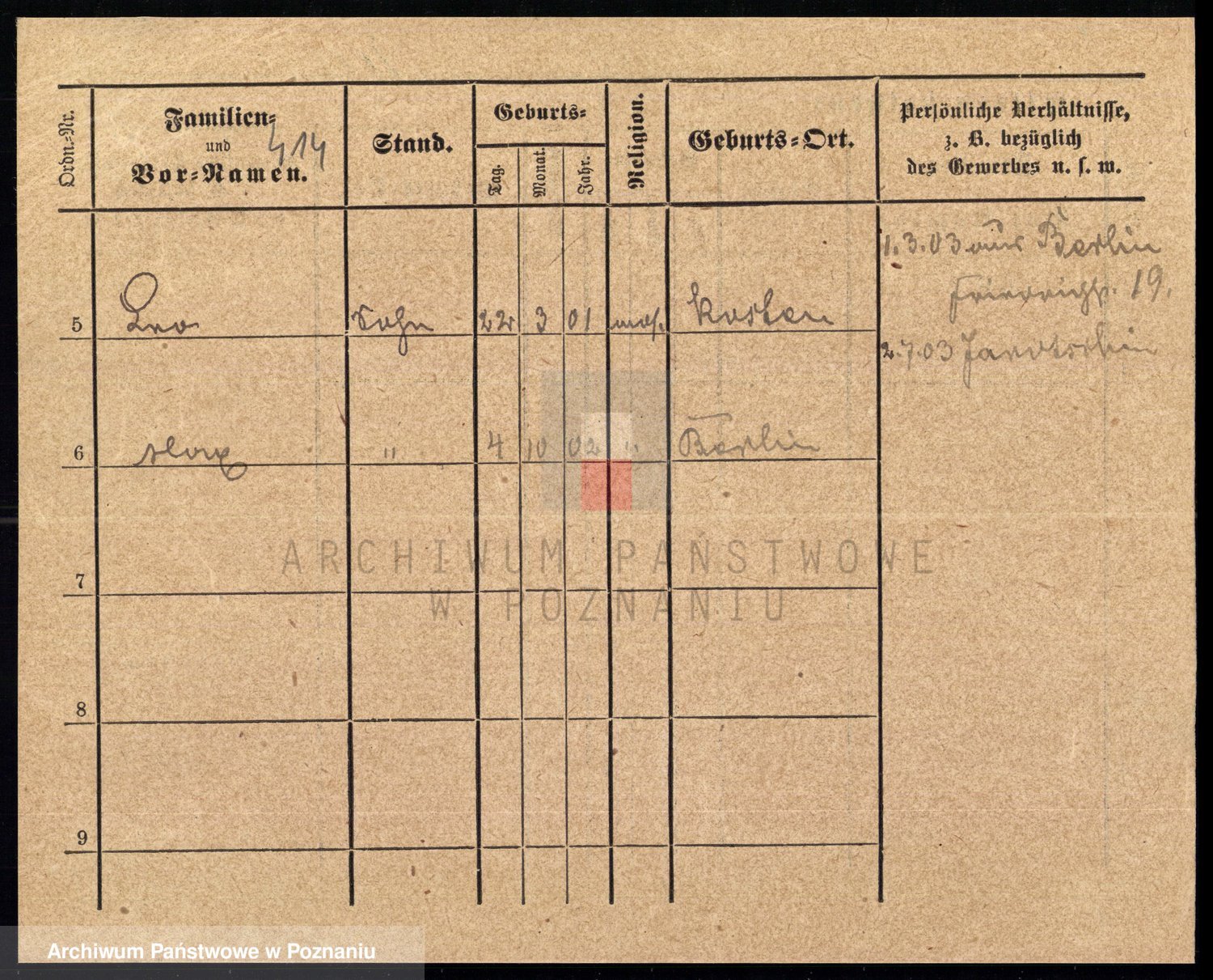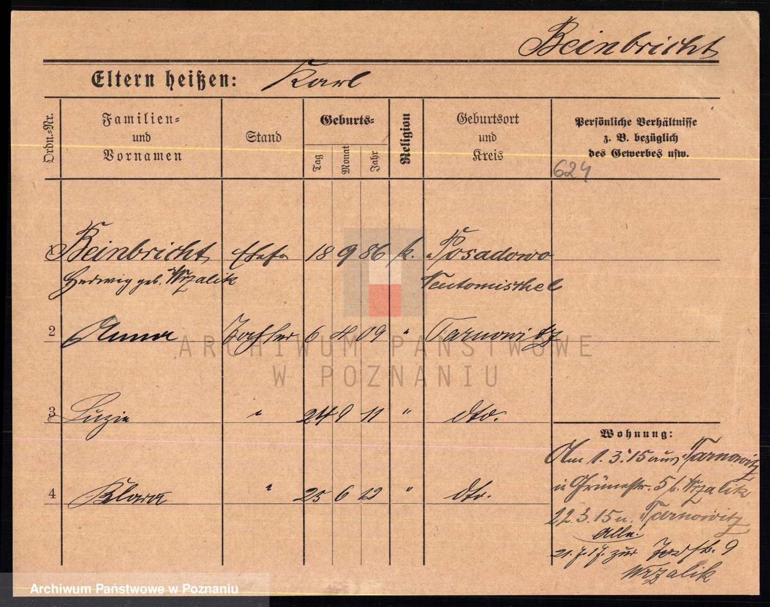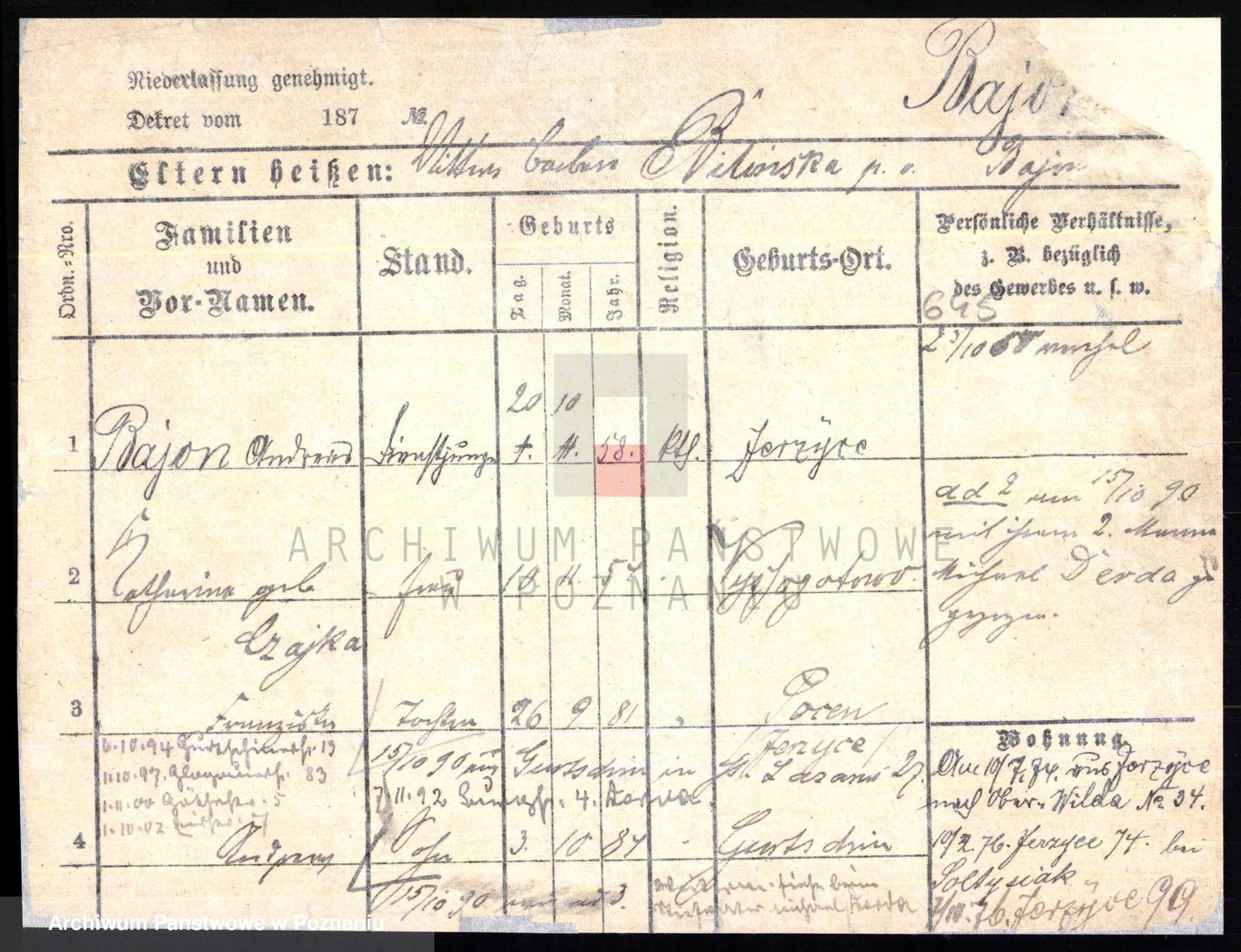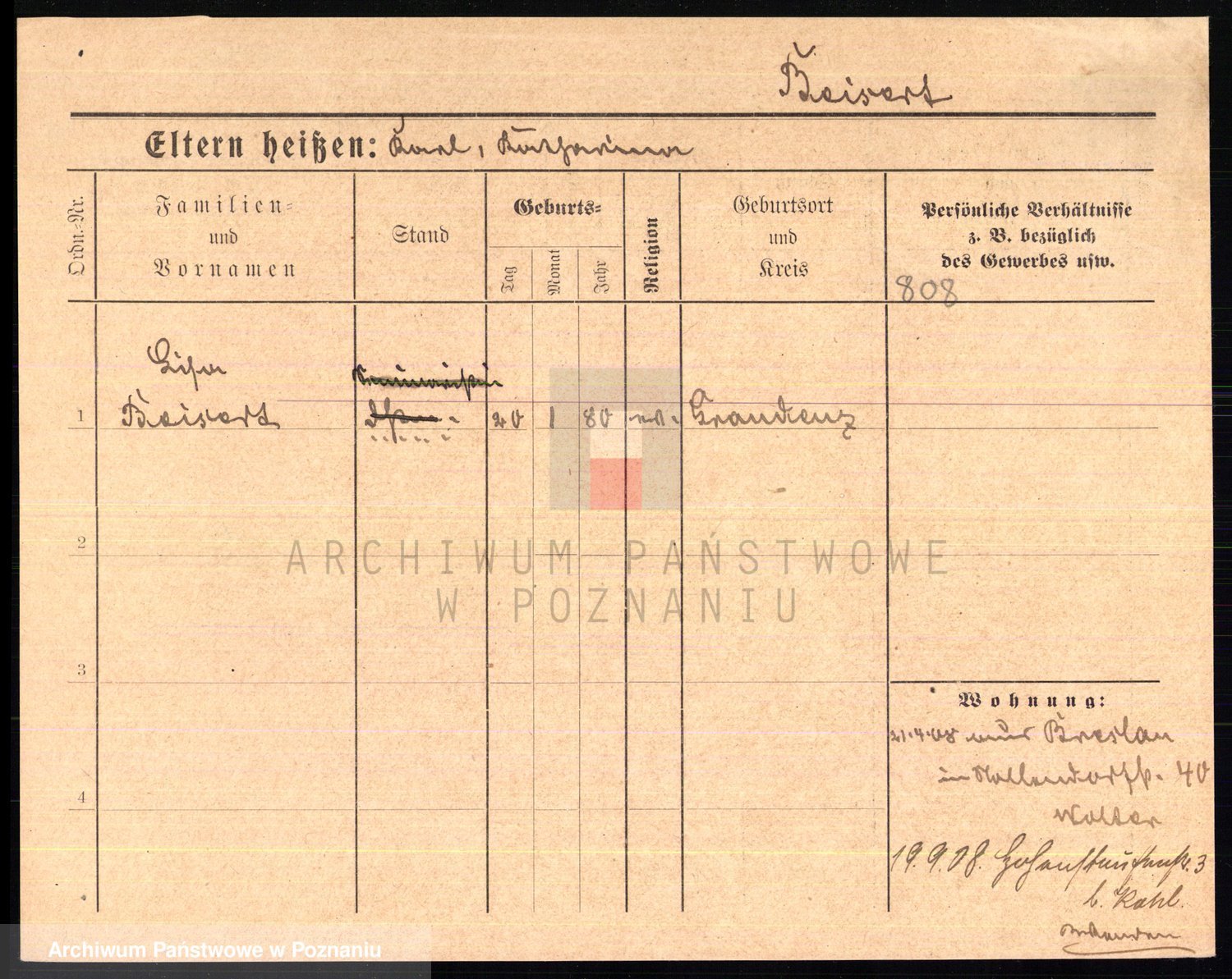 Podgląd karty osobowej dostępny jest po kliknięciu na nazwisko lub ikonkę karty. Można dokonywać powiększenia (ikony na górze) lub przechodzić między kolejnymi skanami (strzałki po bokach).