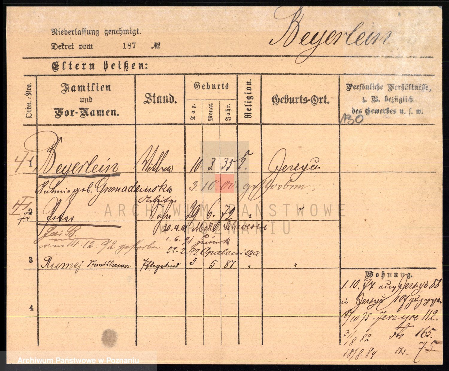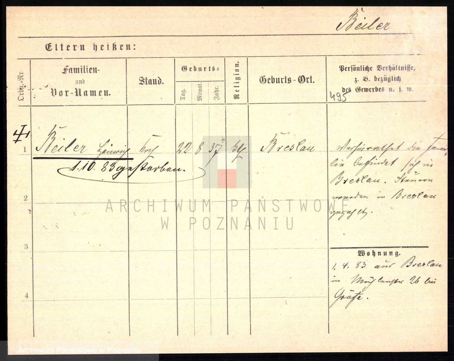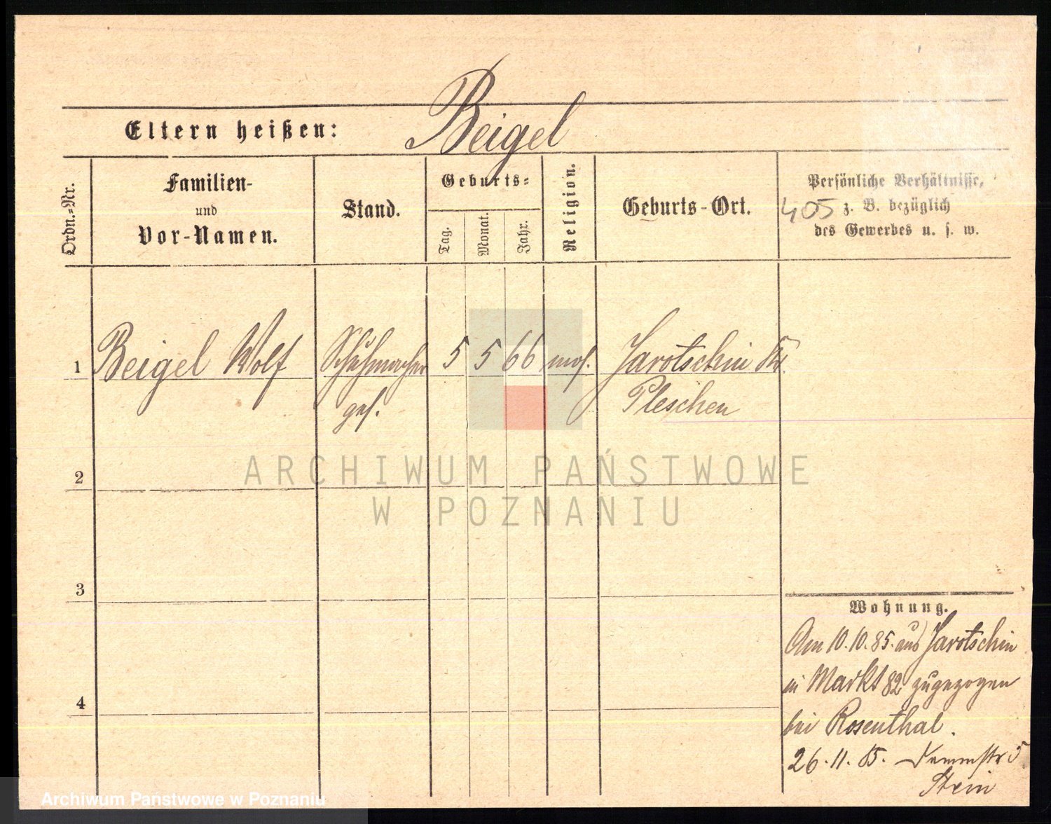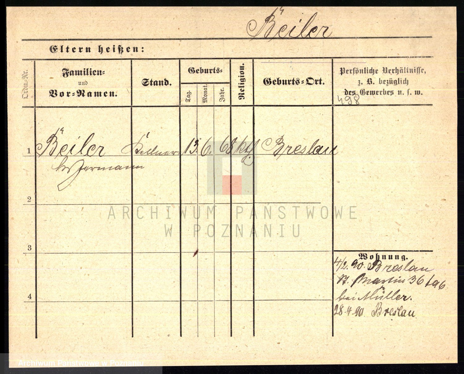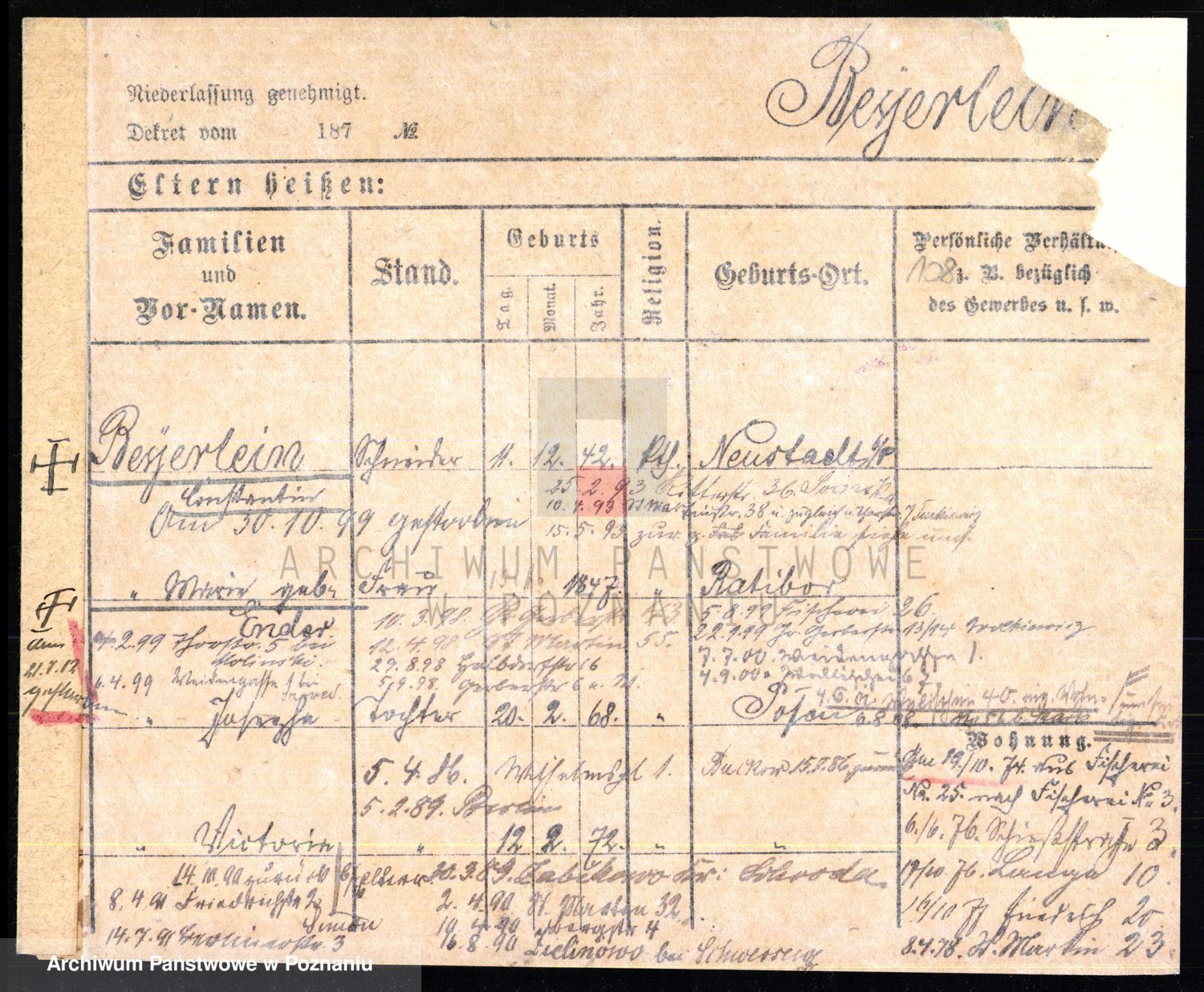 Podgląd karty osobowej dostępny jest po kliknięciu na nazwisko lub ikonkę karty. Można dokonywać powiększenia (ikony na górze) lub przechodzić między kolejnymi skanami (strzałki po bokach).